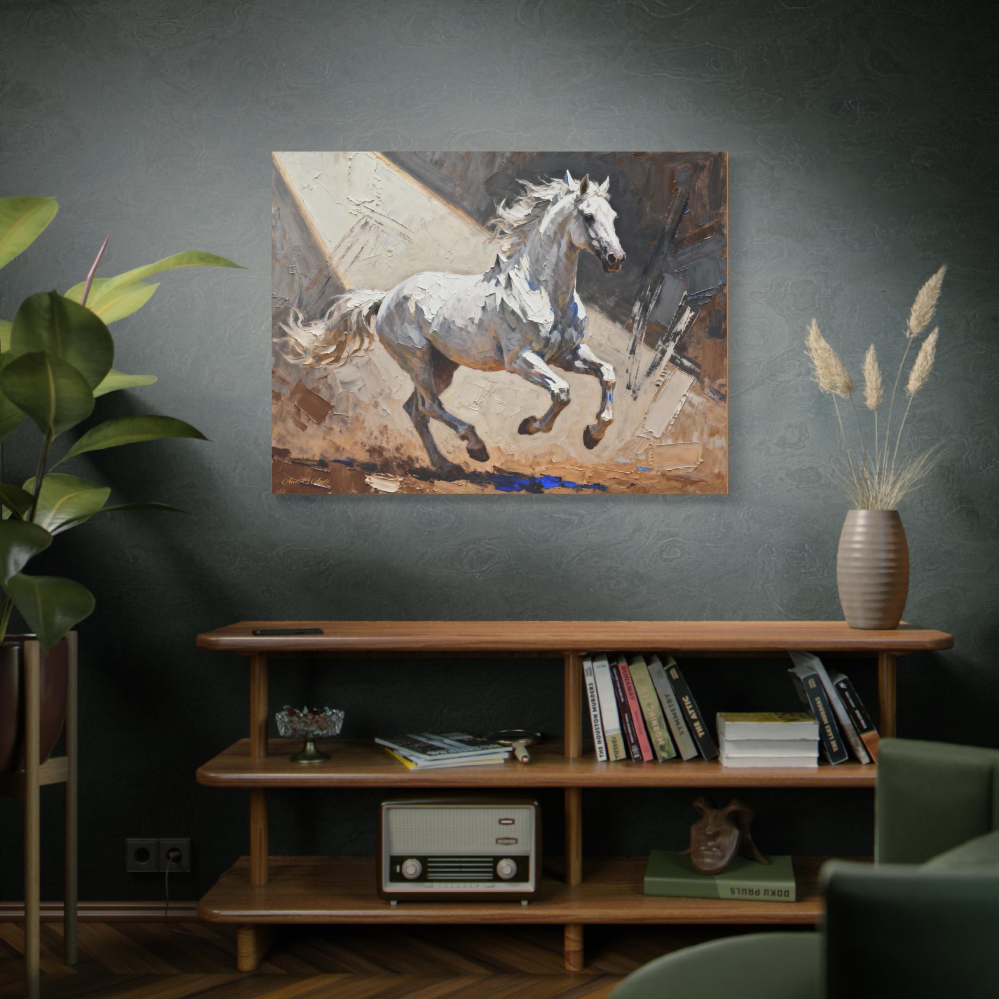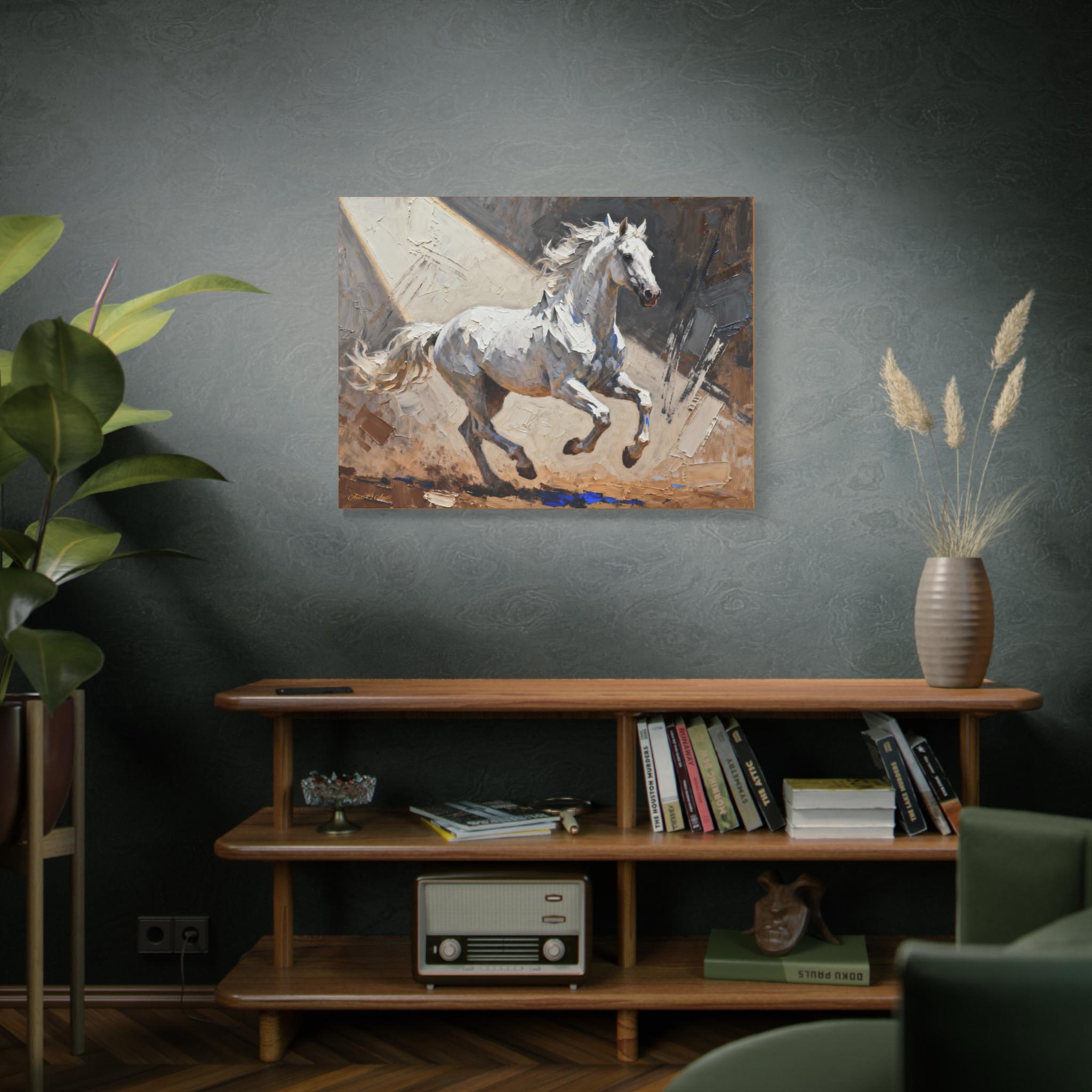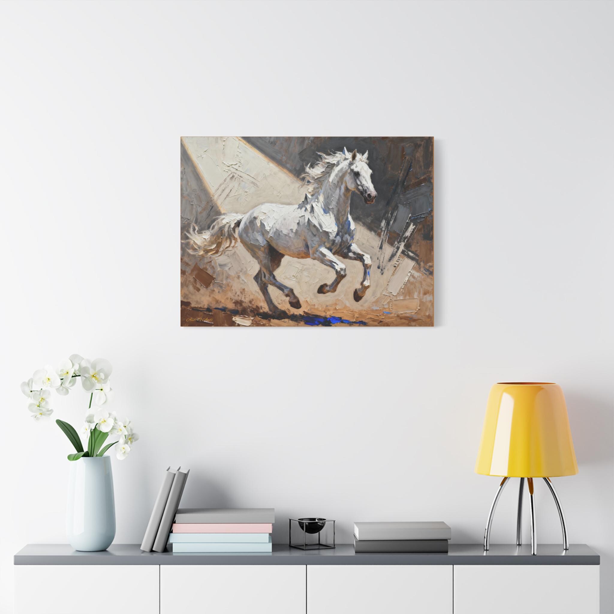Canvas Print, White Stallion Art, Horse Lover Decor, Animal Wall Art, Equestrian Home Decor, Matte Stretched Painting, 1 25 inch, Gift for