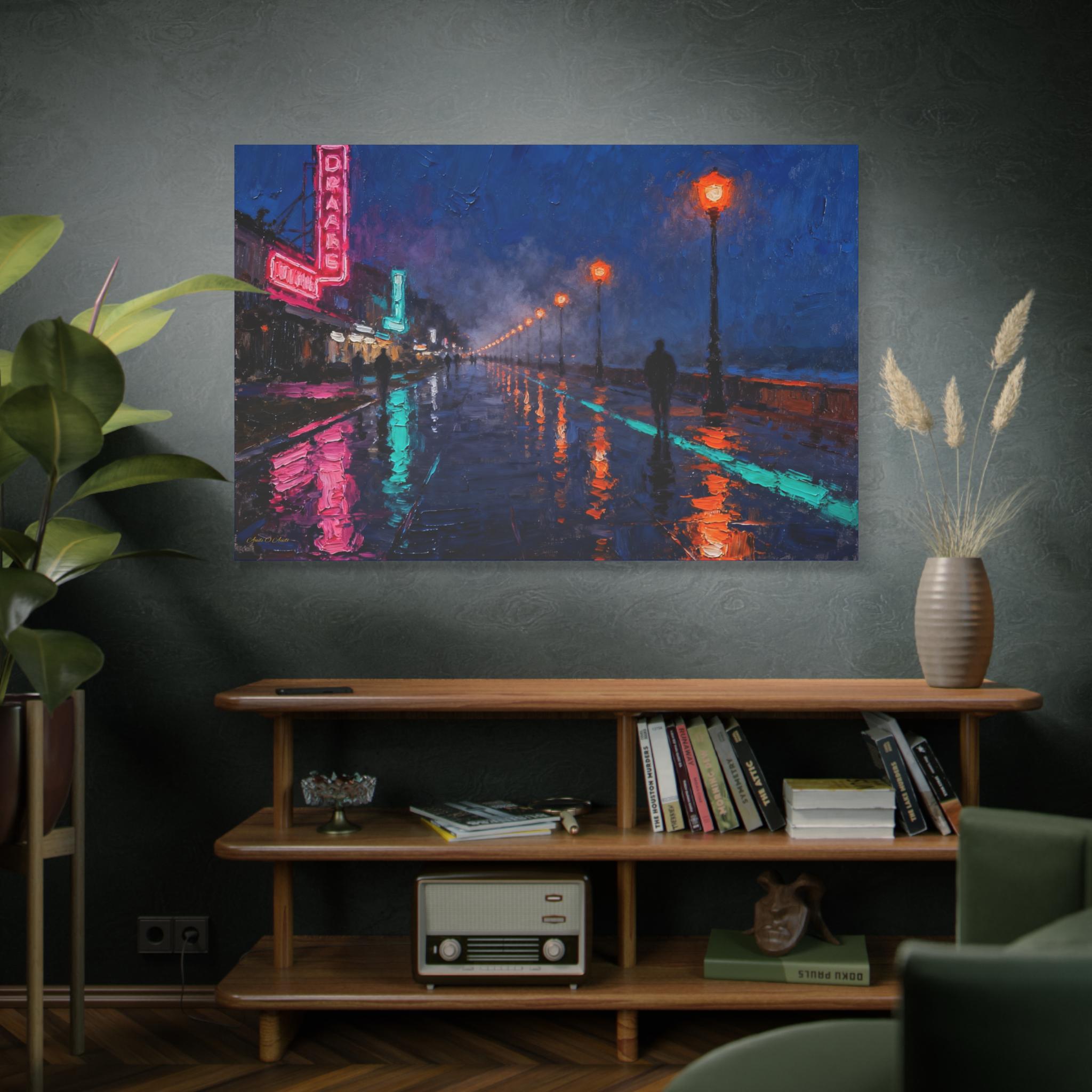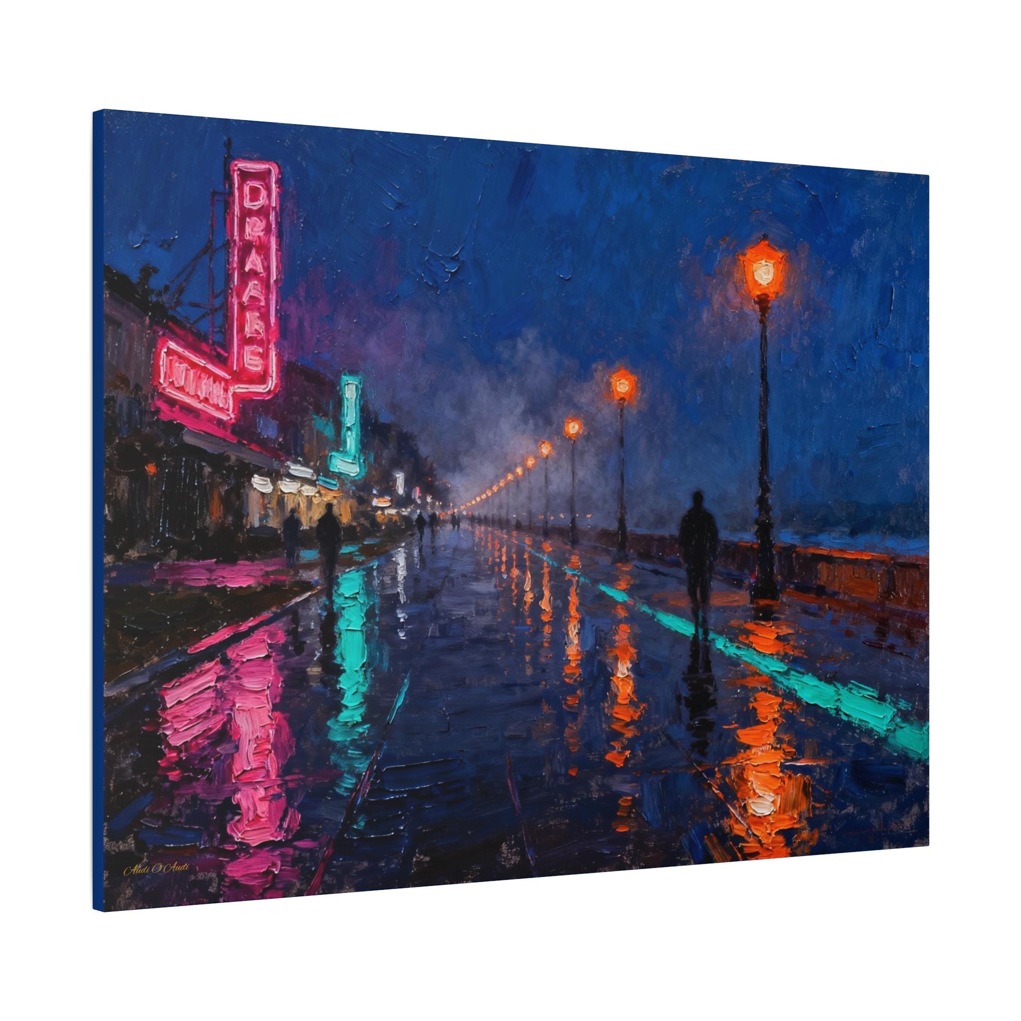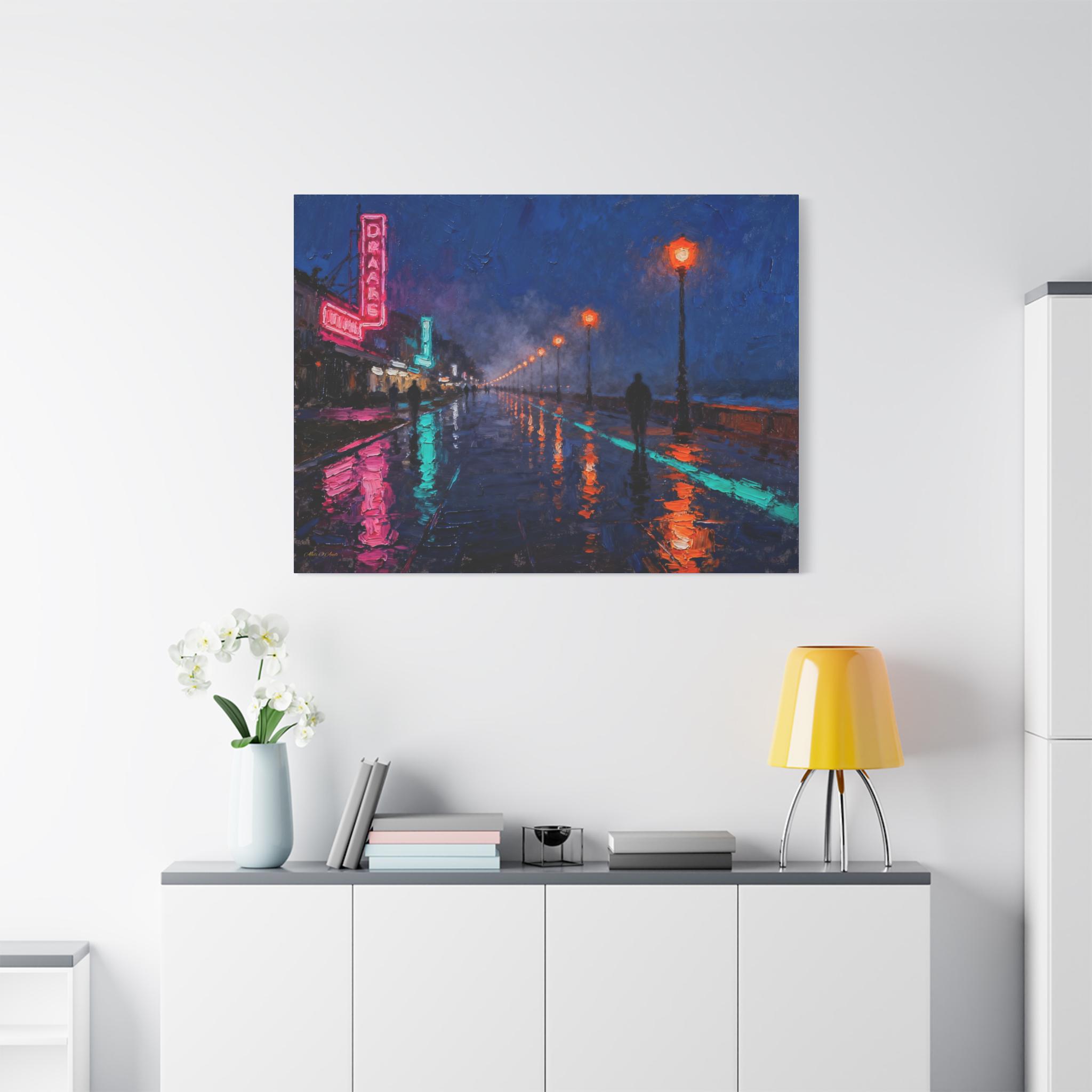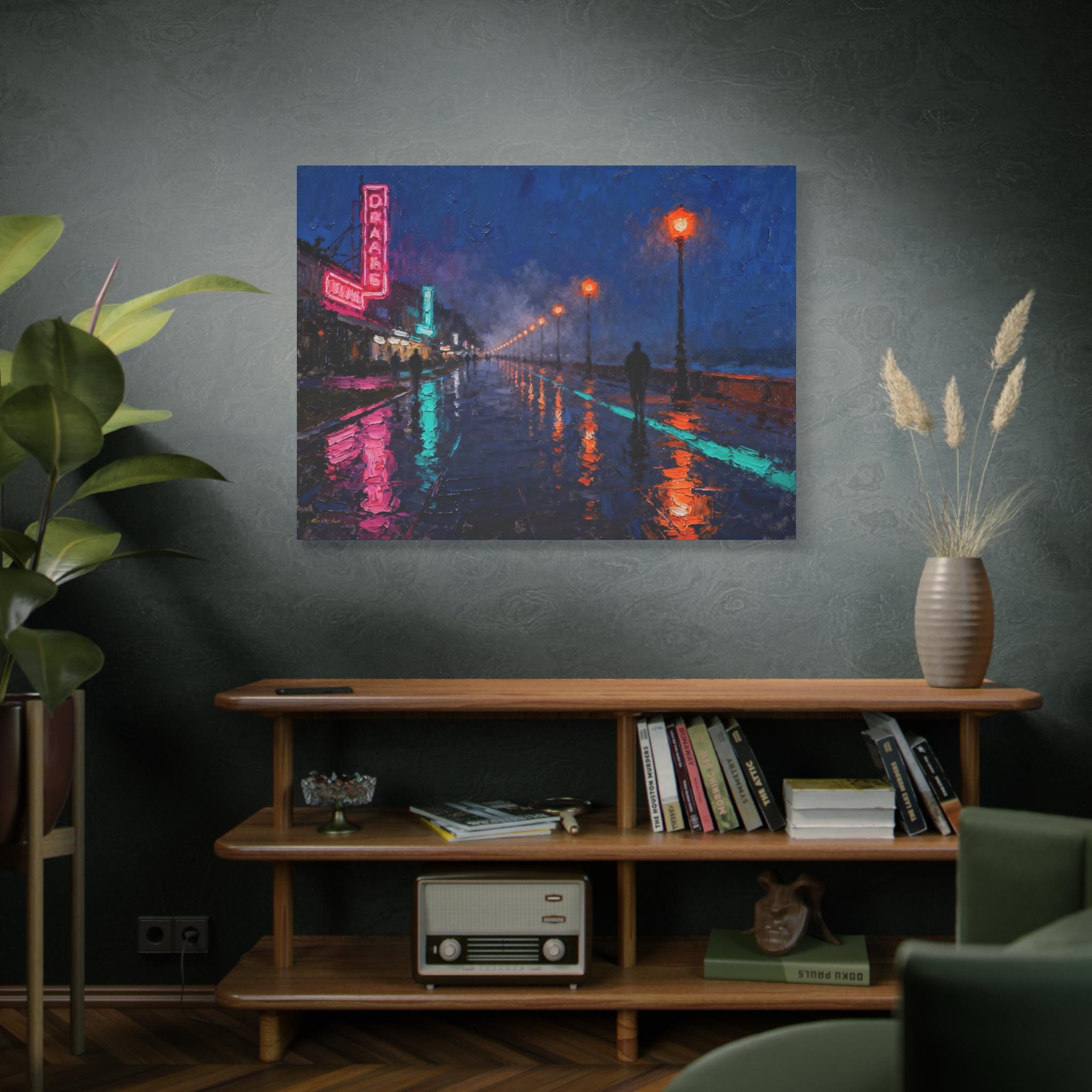 Nighttime Boulevard, Mood Lighting Matte Canvas, Stretched Wall Decor, Modern Home Decoration, Unique Gift Idea, Cozy Atmosphere