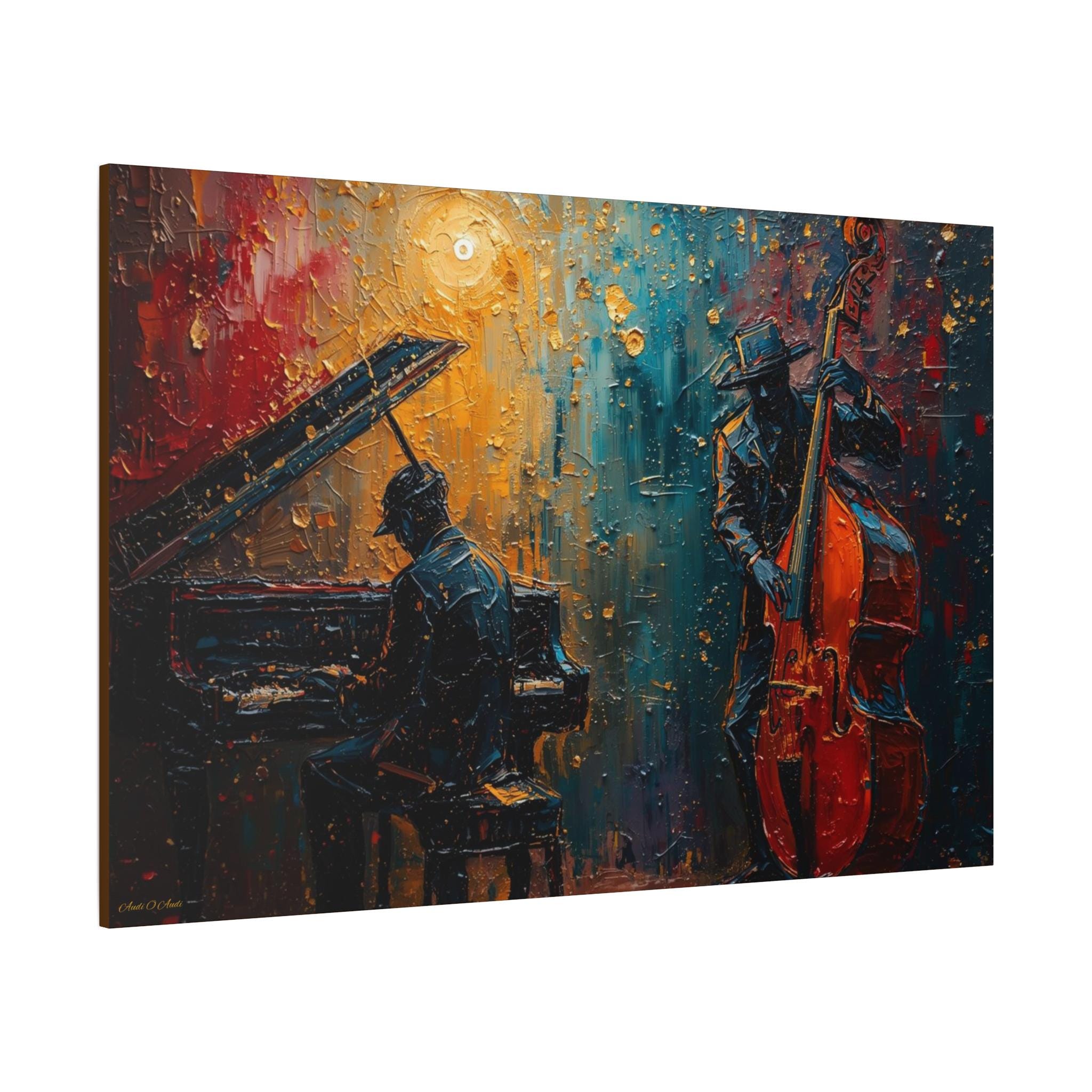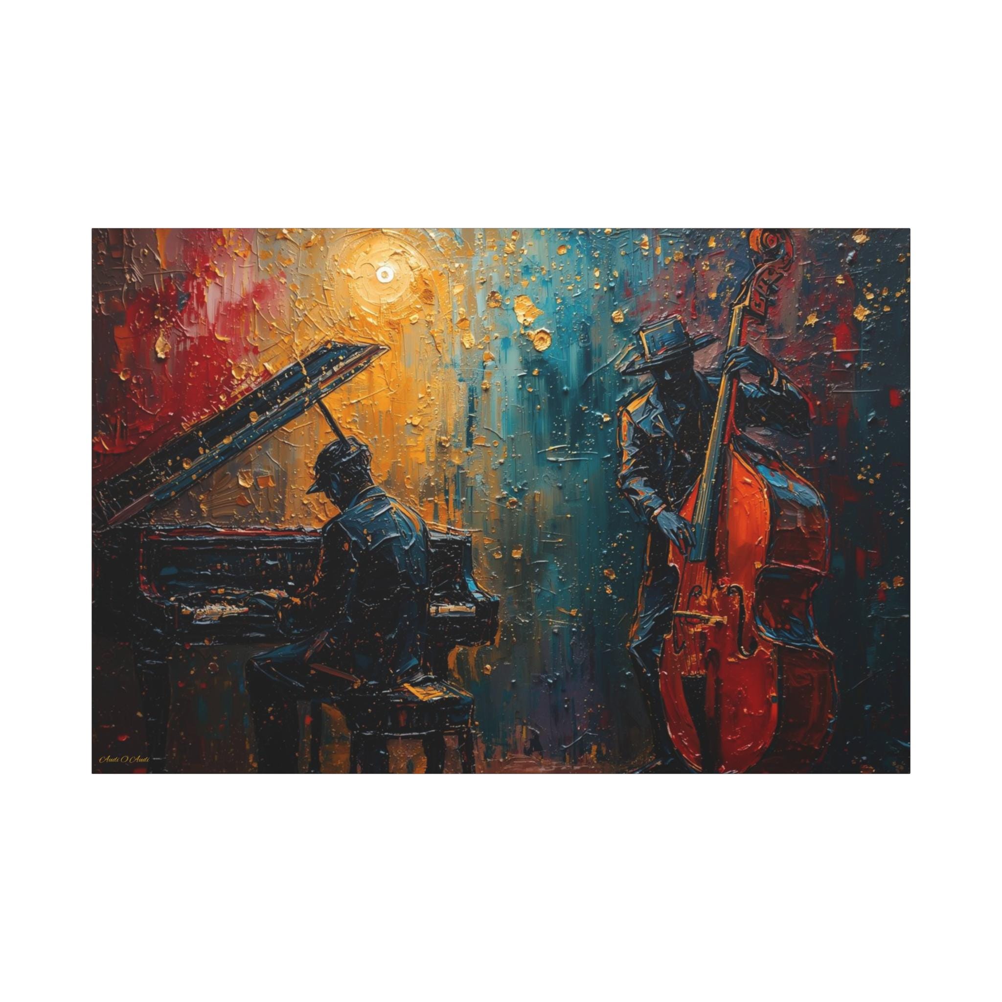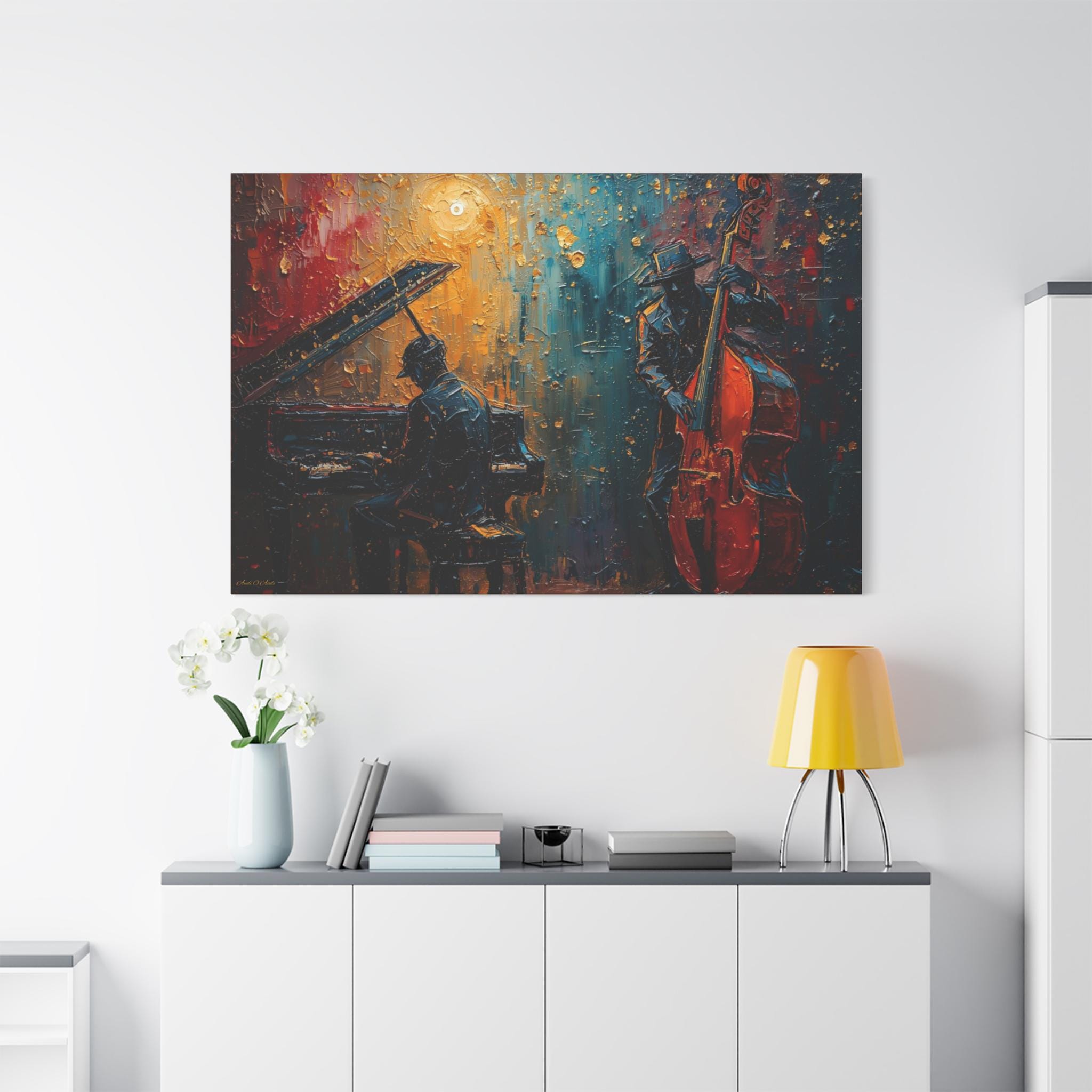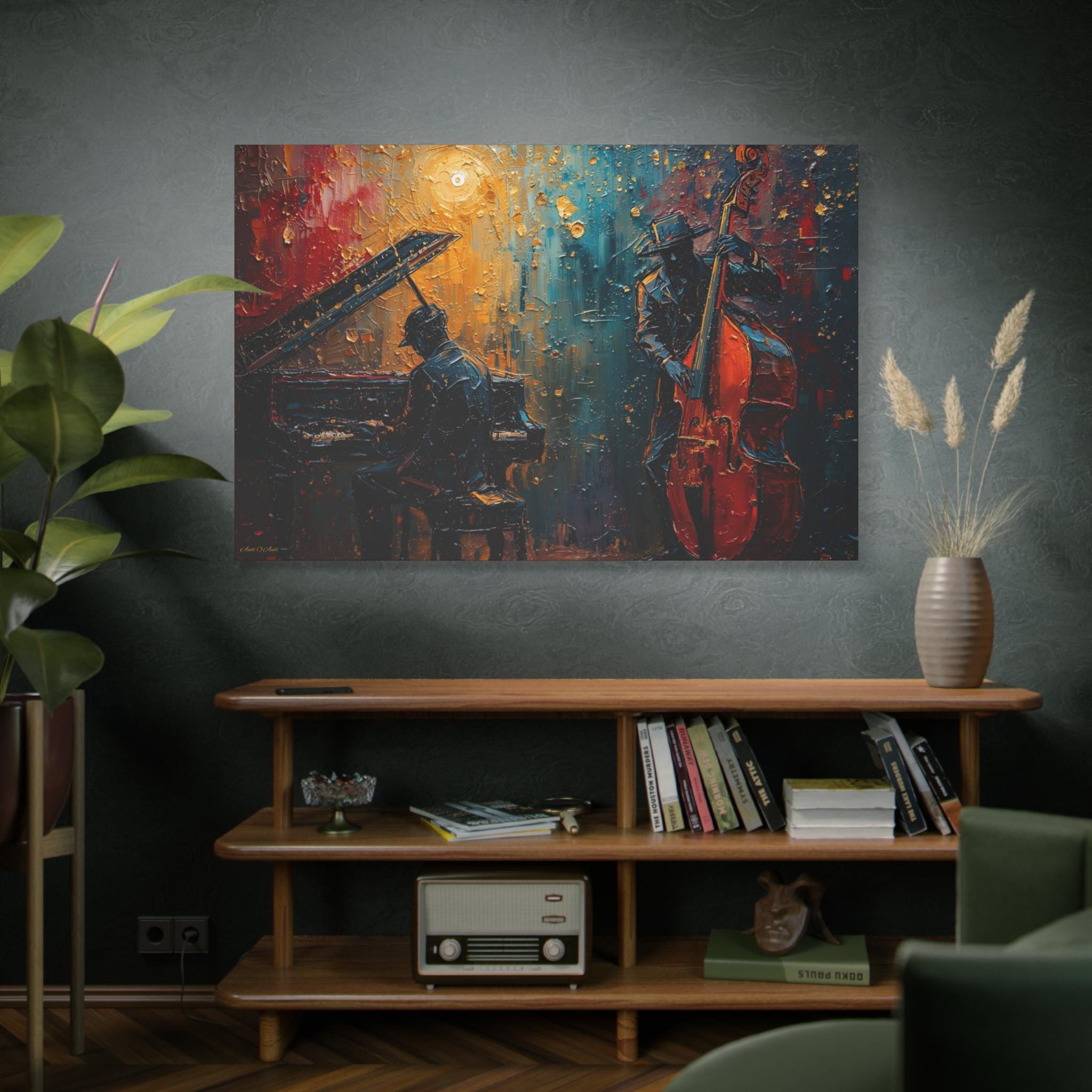 Jazz Night Canvas Artwork, Stretched Wall Art, Piano and Bass Painting, Home Decor, Music Lover Gift