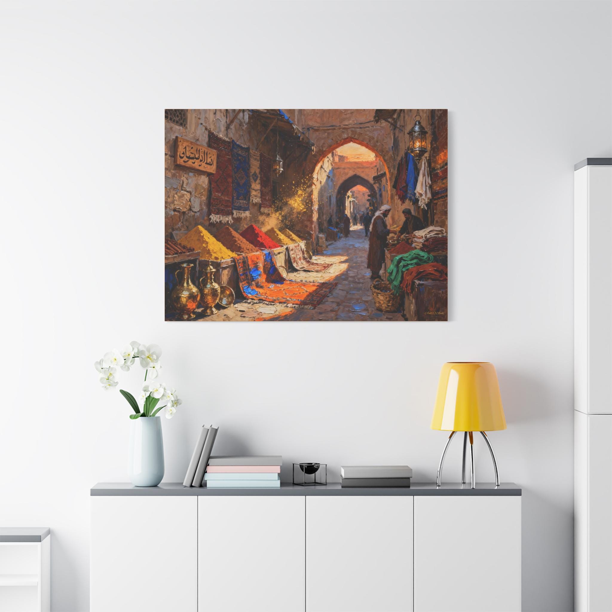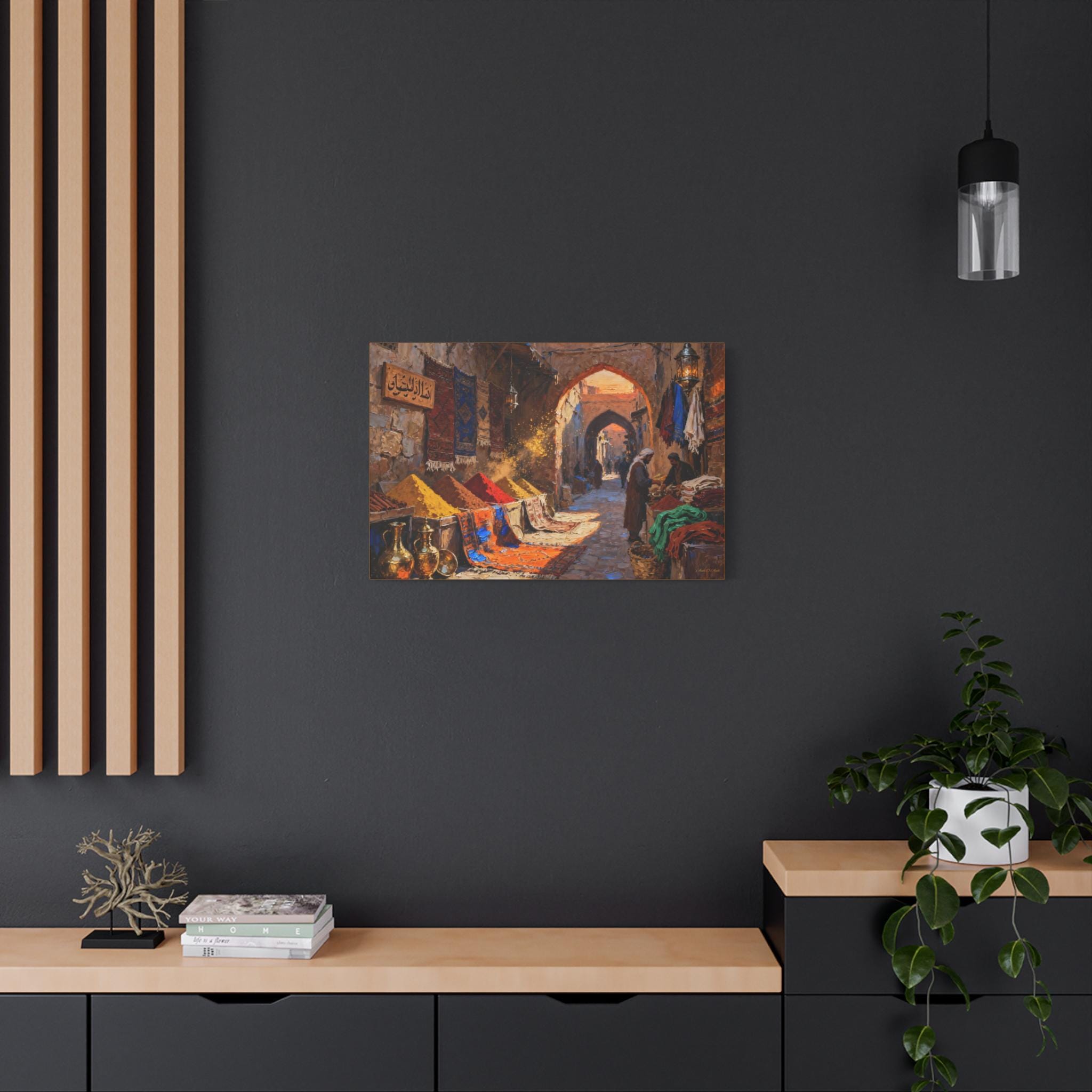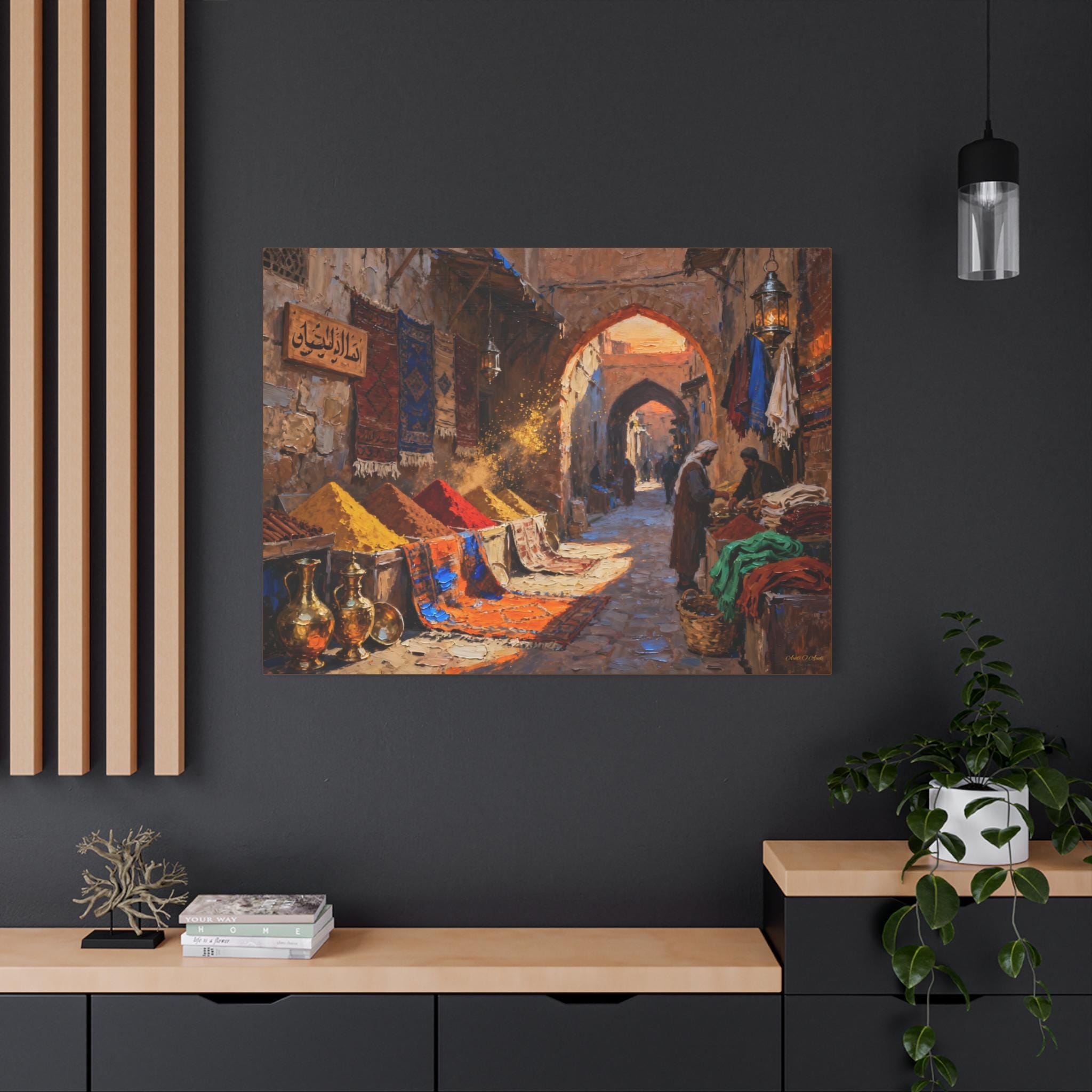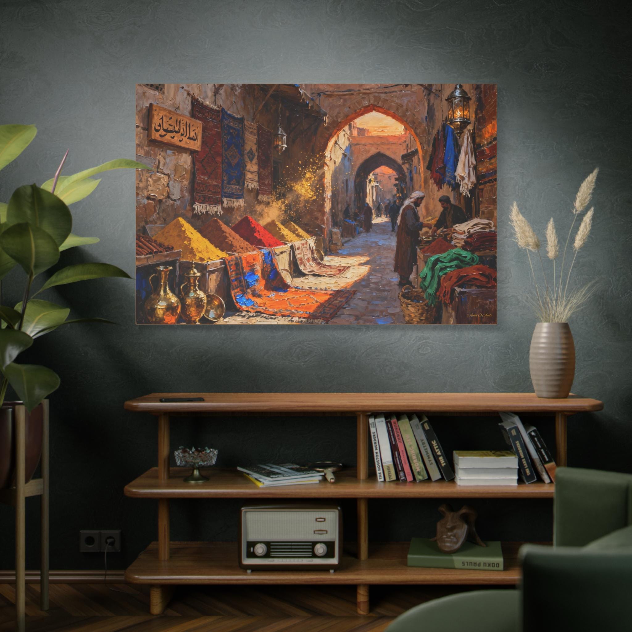 El Souk, Artistic Stretched Canvas Print, Colorful Market Scene Wall Art for Home decor, Gifts for Art Lovers, Bohemian Style Decor