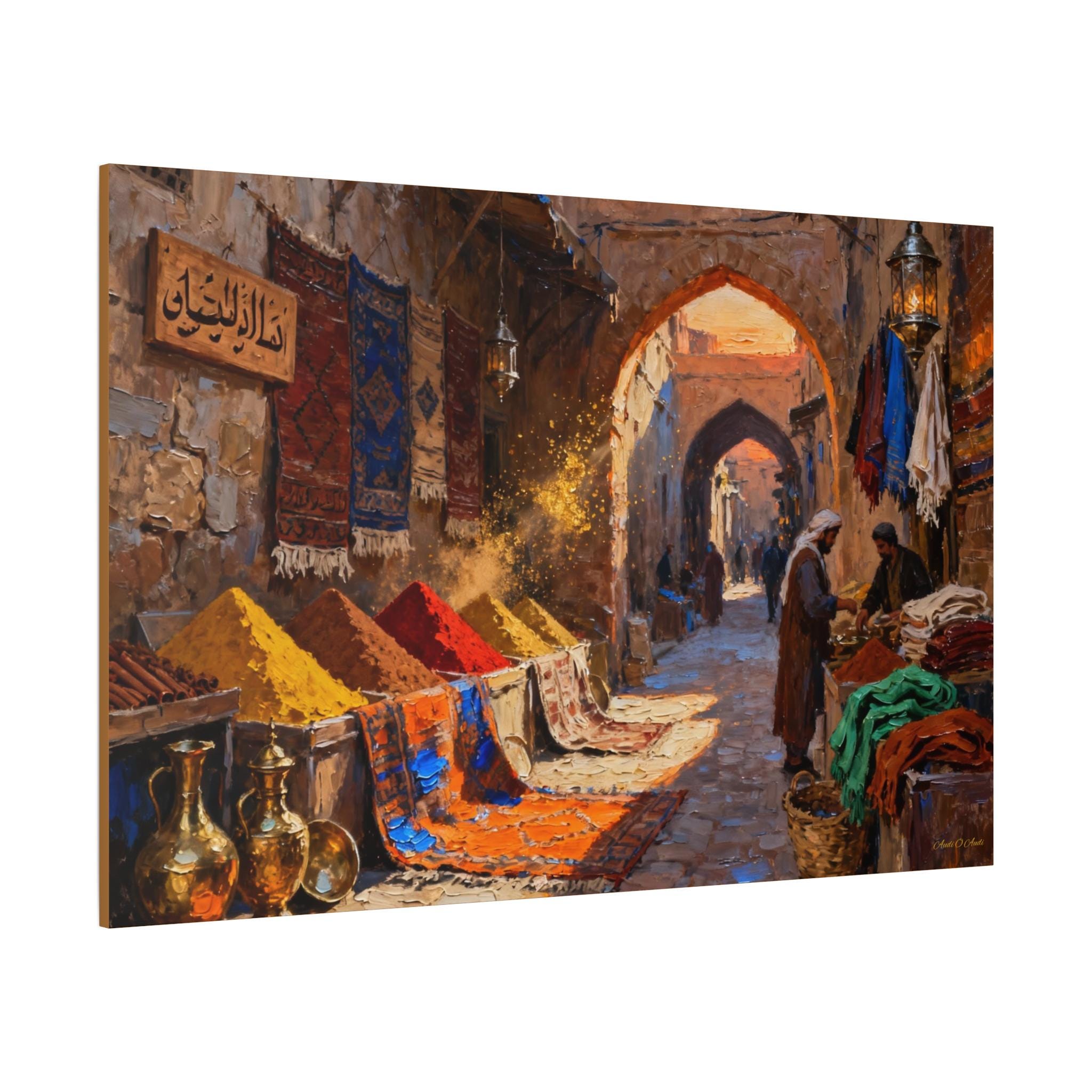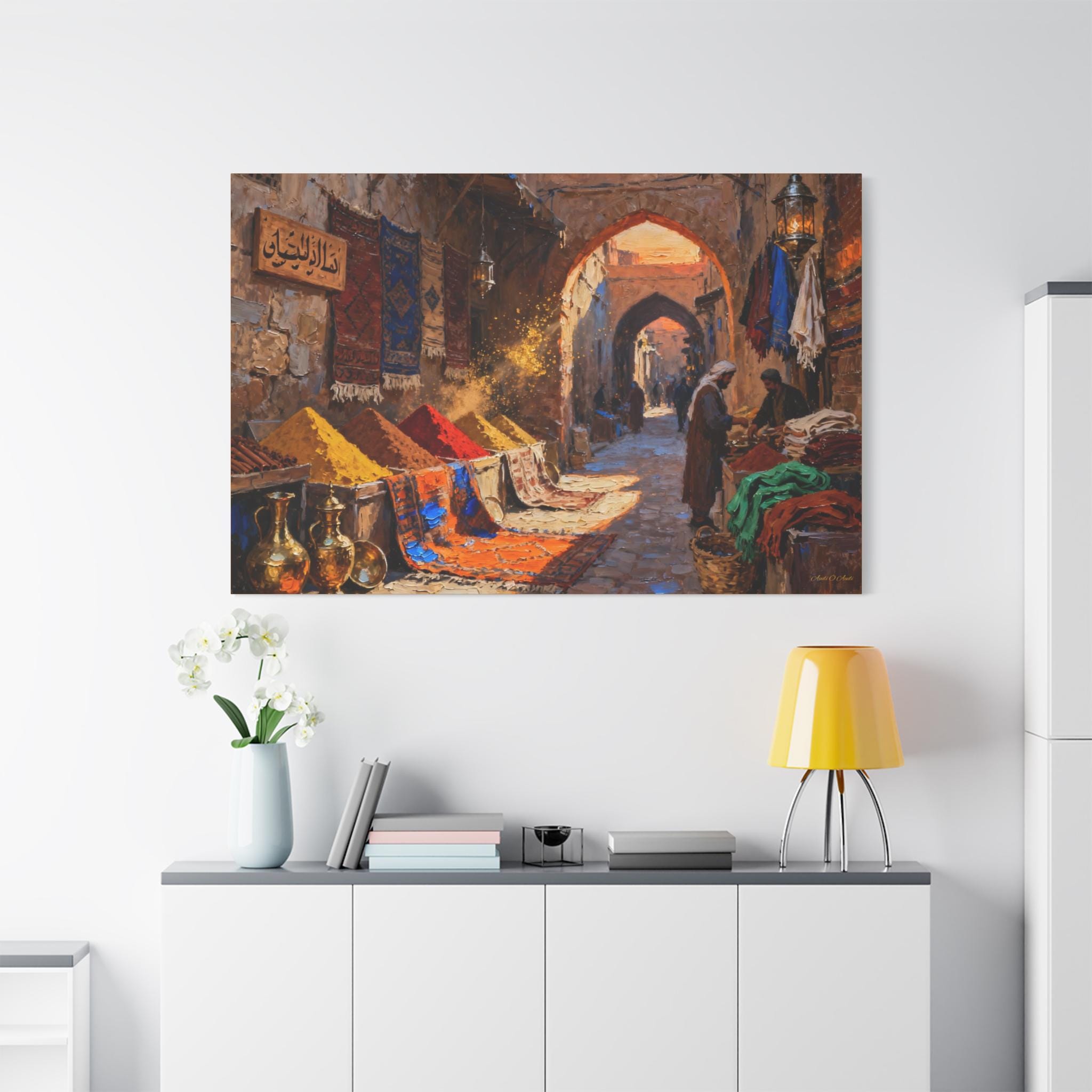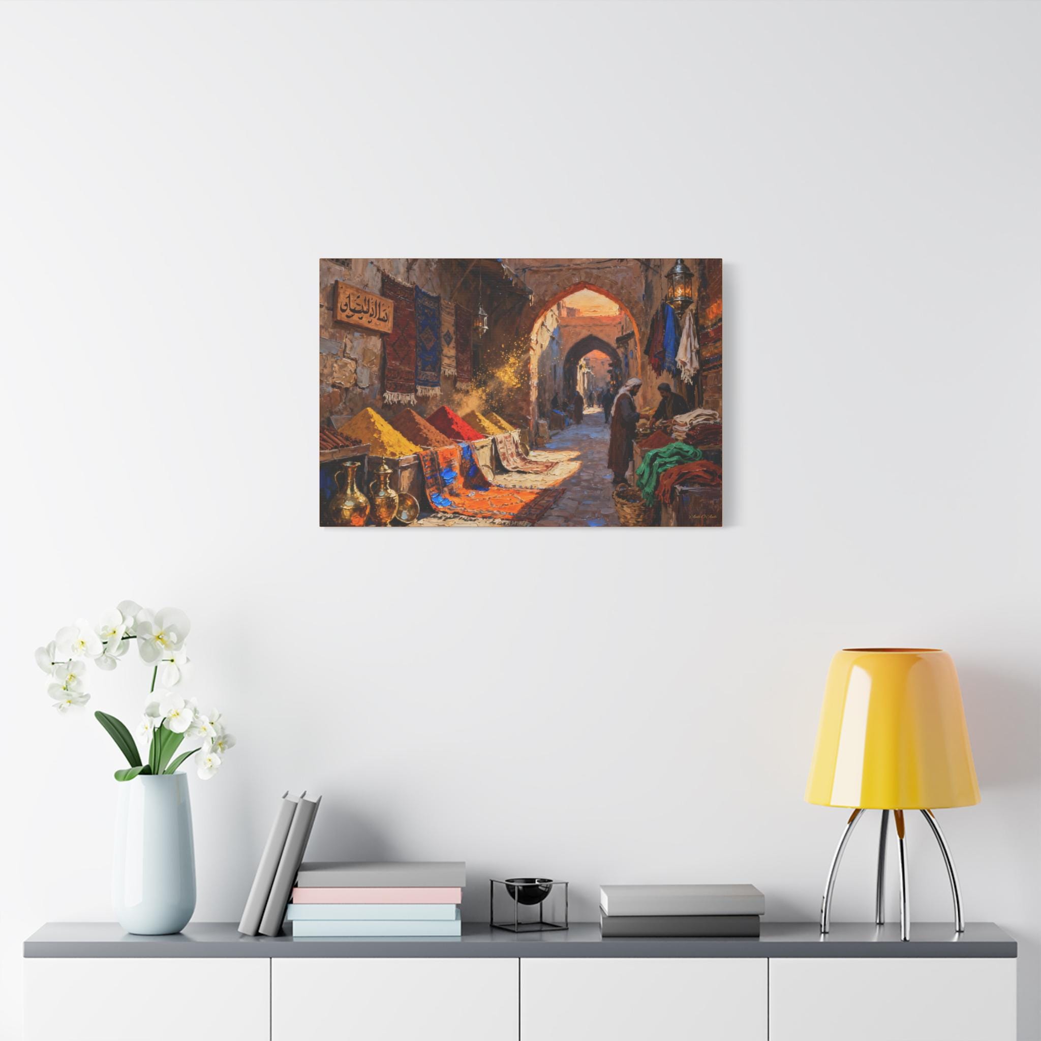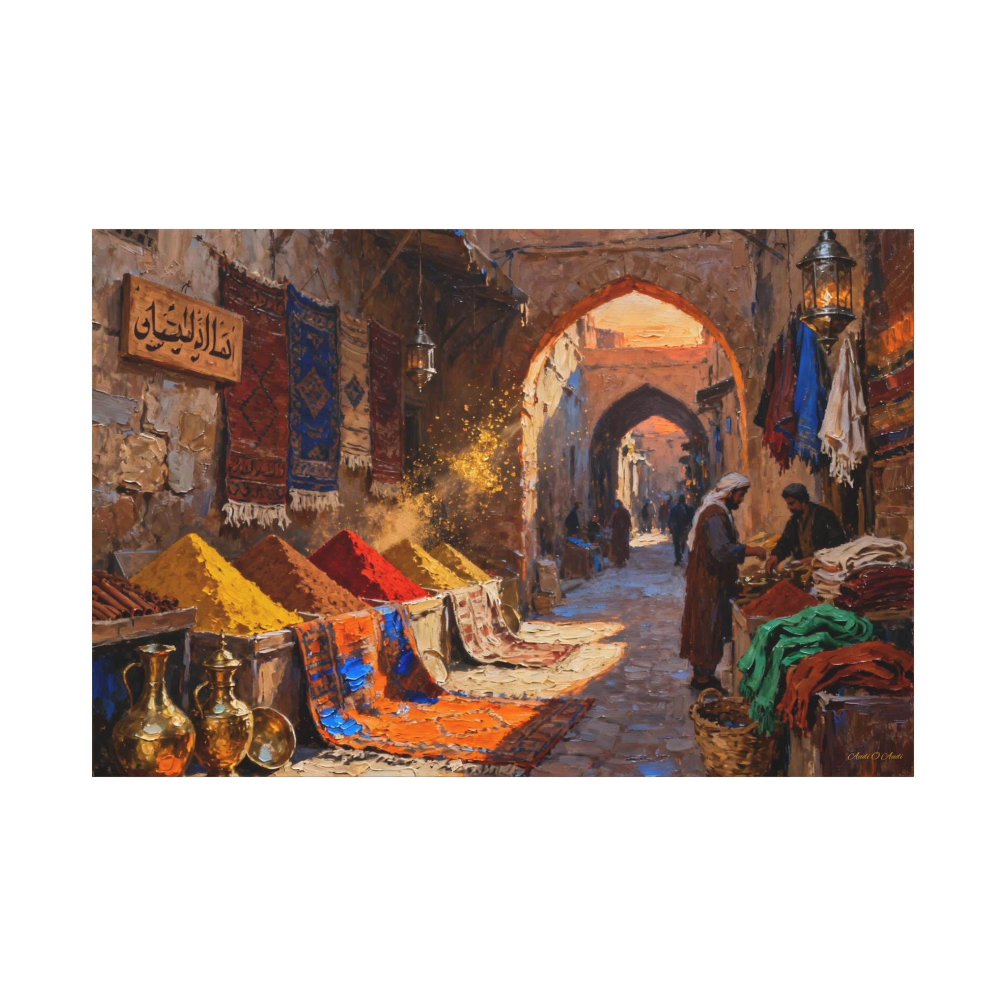 El Souk, Artistic Stretched Canvas Print, Colorful Market Scene Wall Art for Home decor, Gifts for Art Lovers, Bohemian Style Decor