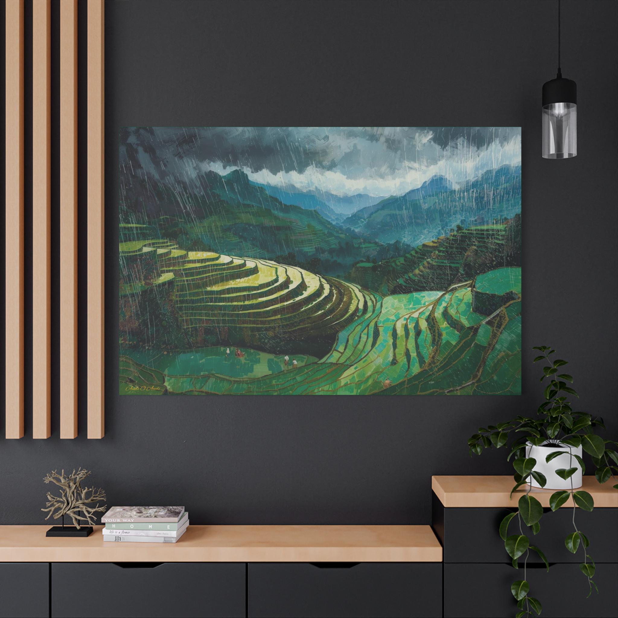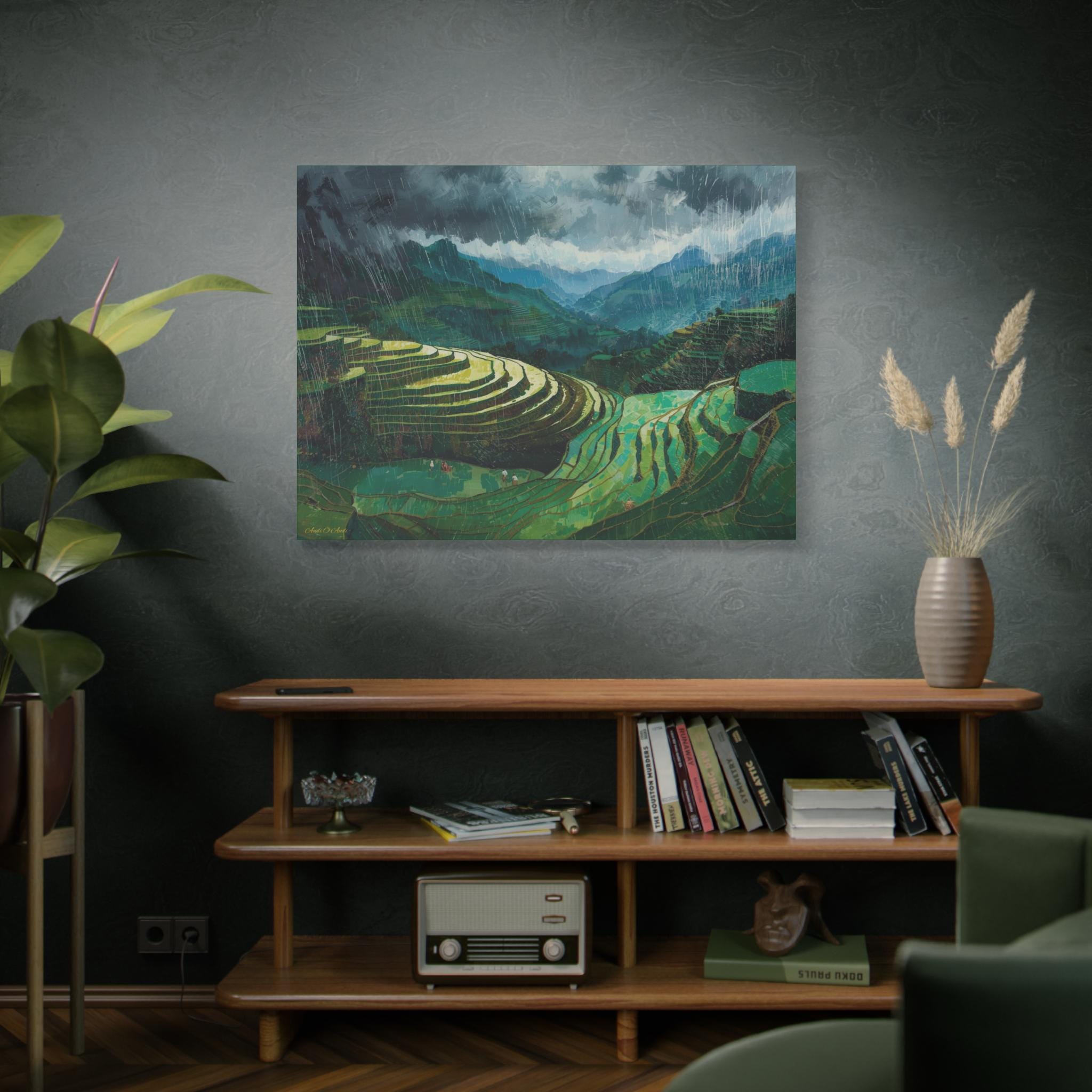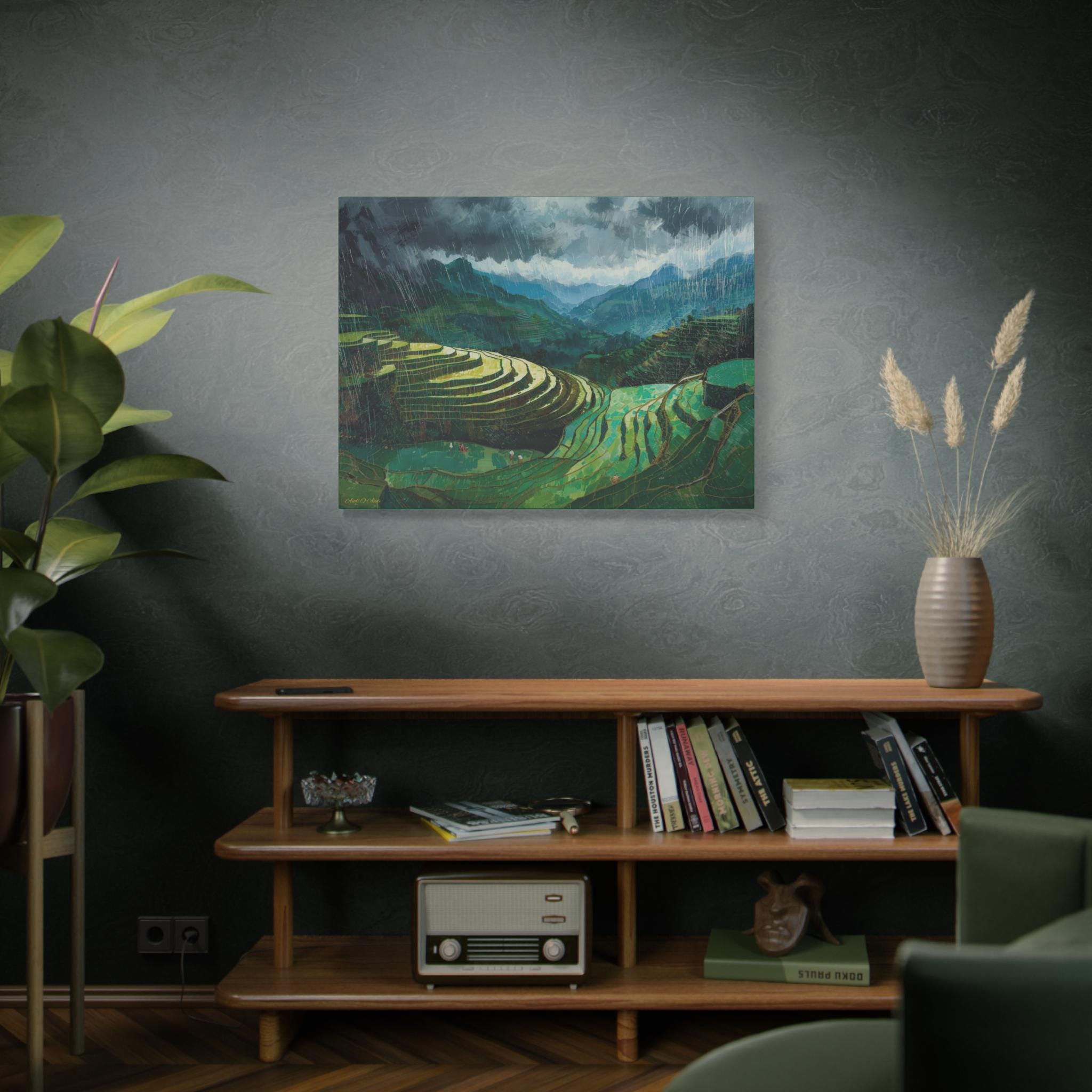 Monsoon Stairways, Serene Landscape Canvas Print, Greenery Art for Home Decor, Nature Wall Art, Gift for Nature Lovers, Rainy Day Aesthetic