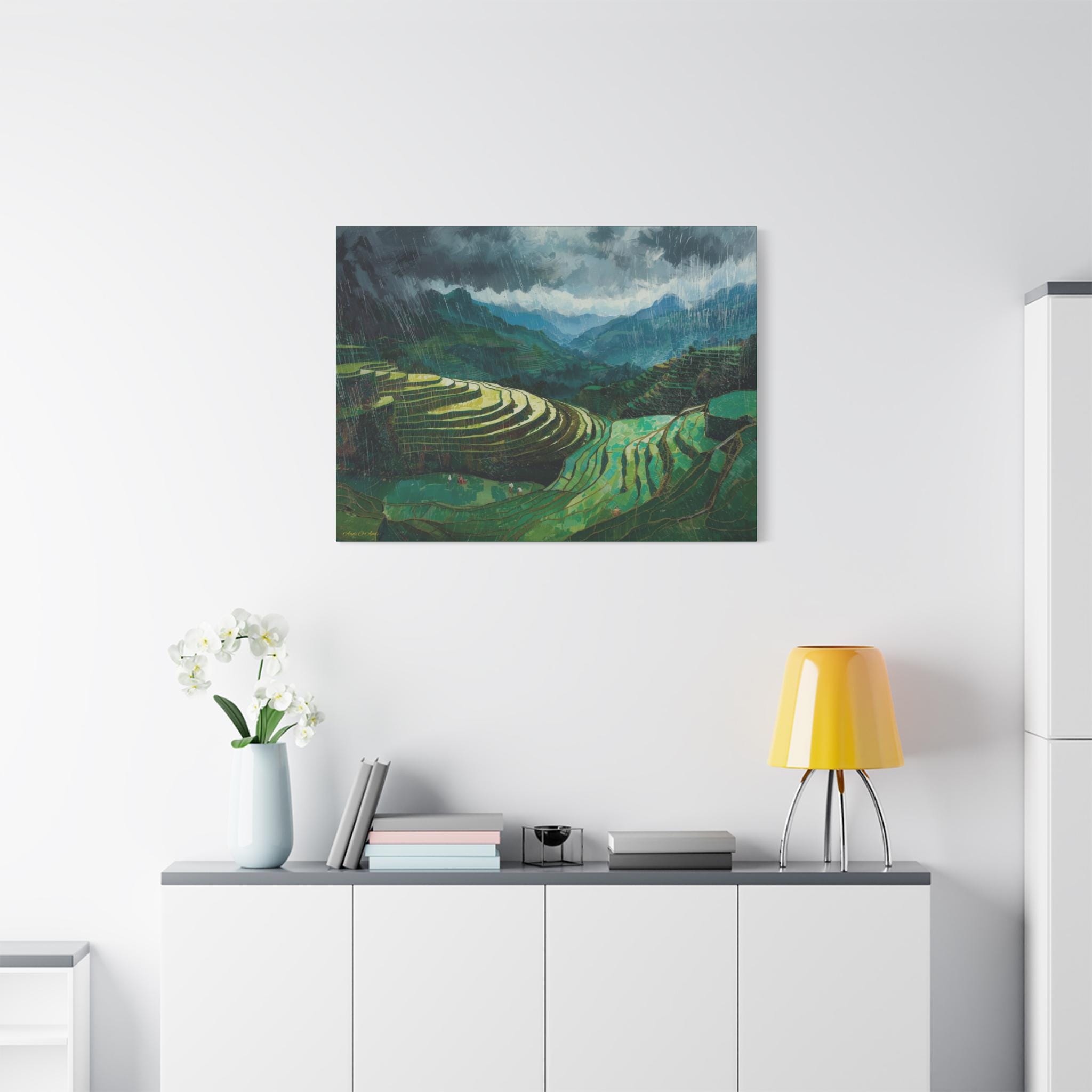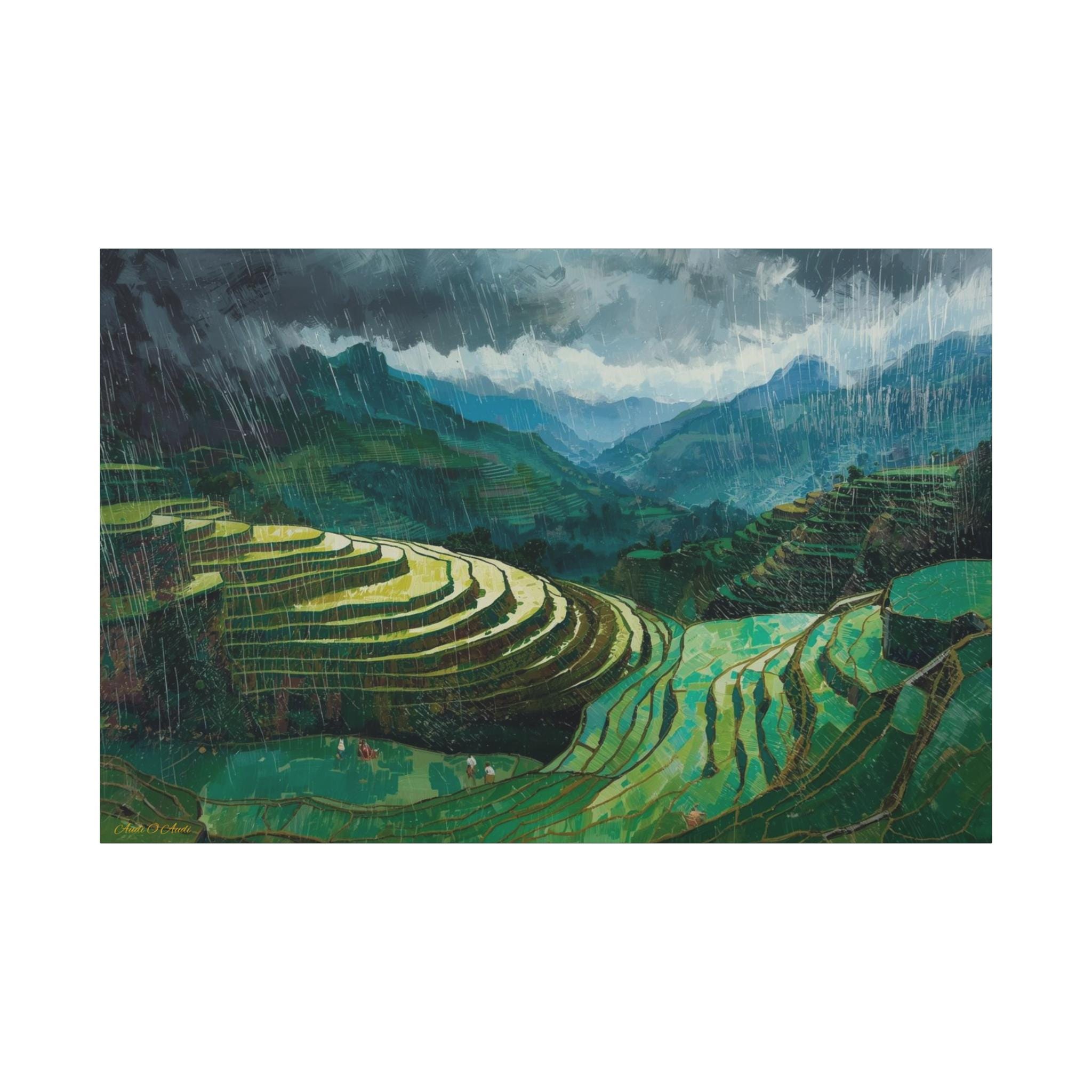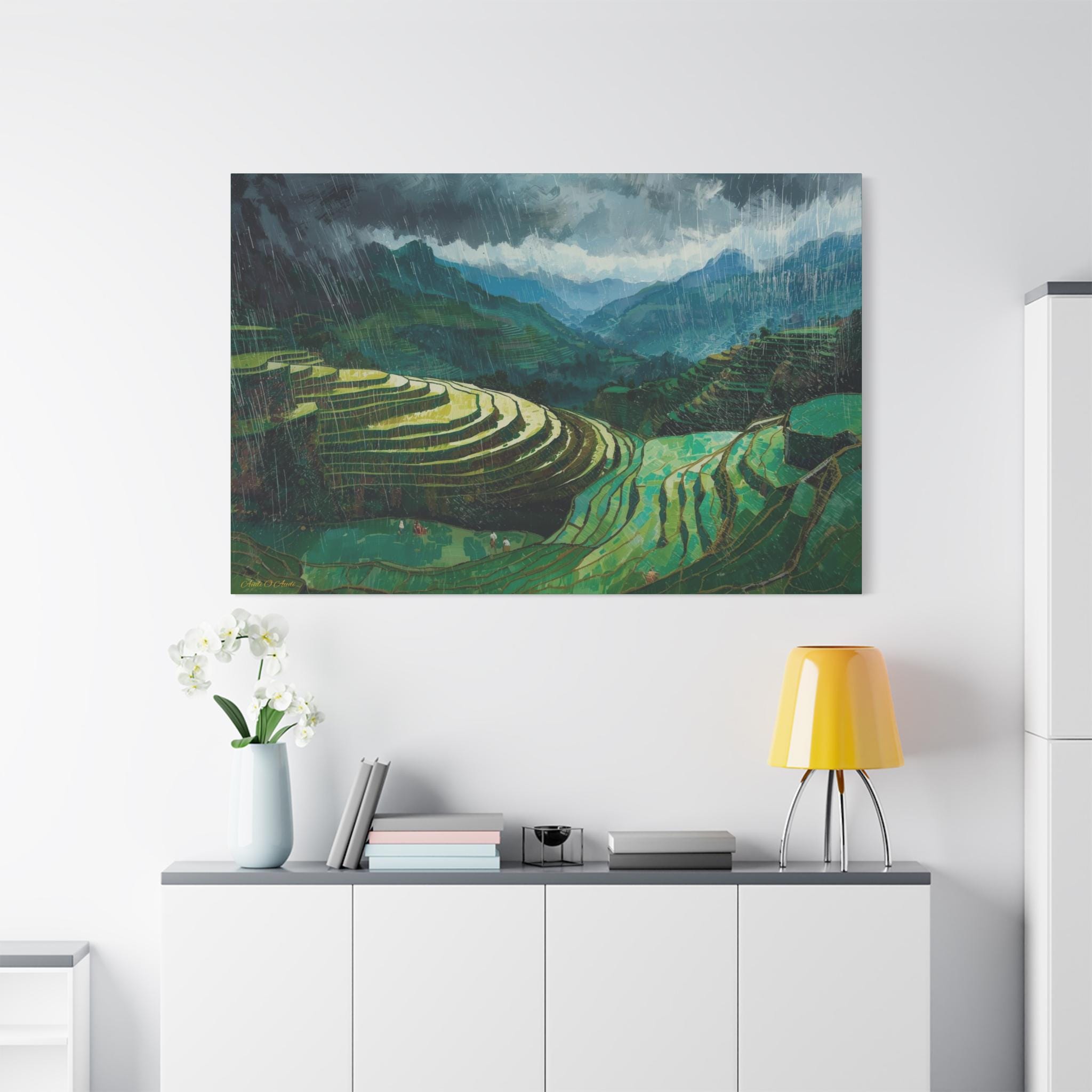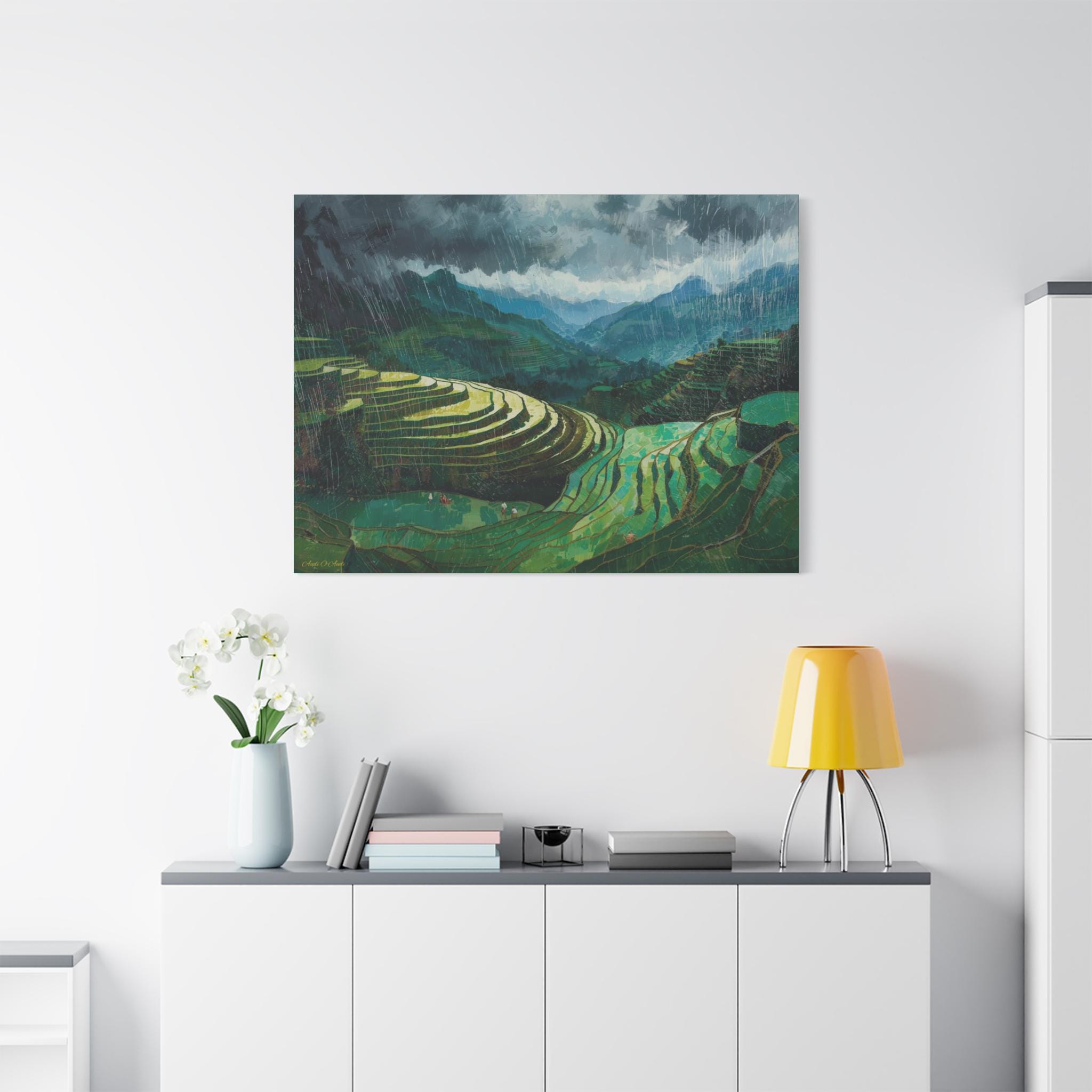 Monsoon Stairways, Serene Landscape Canvas Print, Greenery Art for Home Decor, Nature Wall Art, Gift for Nature Lovers, Rainy Day Aesthetic