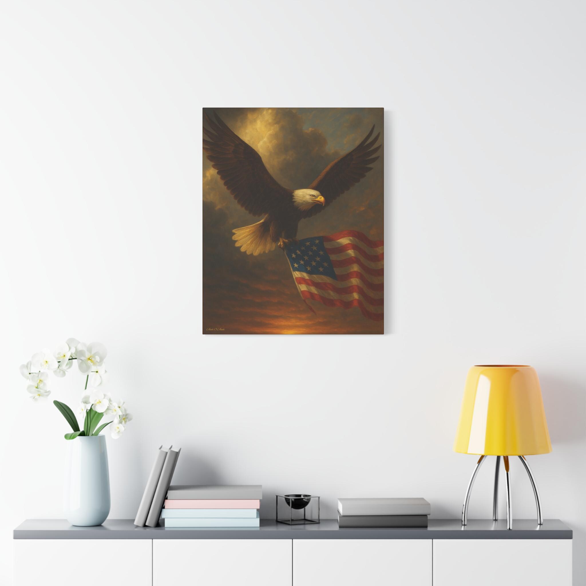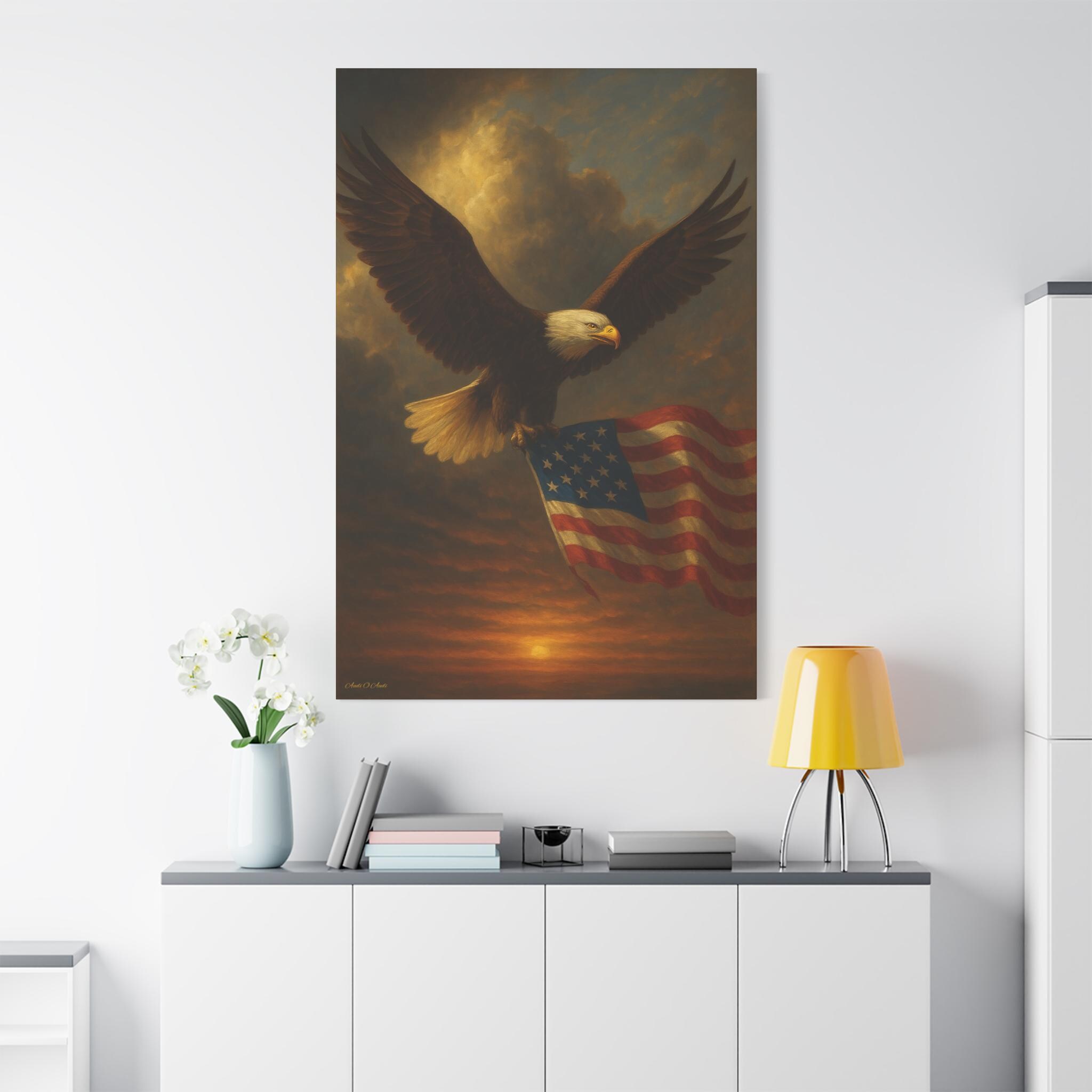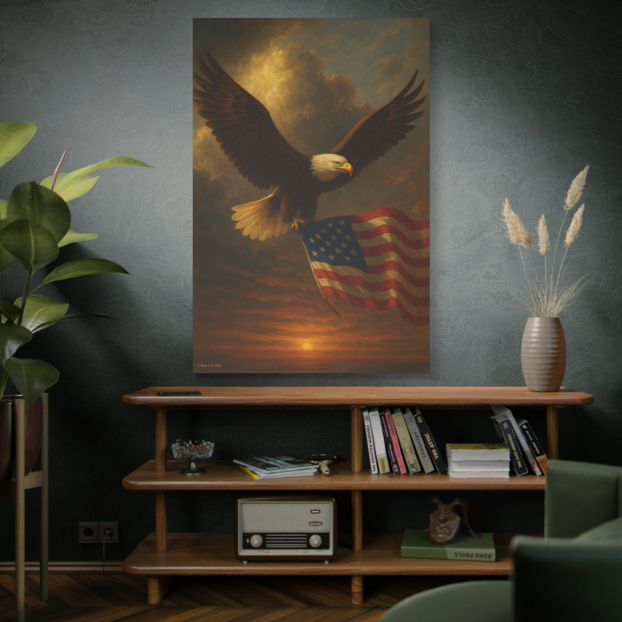 Bring a sense of patriotism and pride to your home with this Guardian of the Flag Patriotic Eagle Canvas Print. Perfect for veterans and those celebrating Independence Day, this American flag art piece will add a touch of Americana to any room. The unique canvas coating ensures high-quality images, while the sustainable materials used make it an eco-friendly choice.