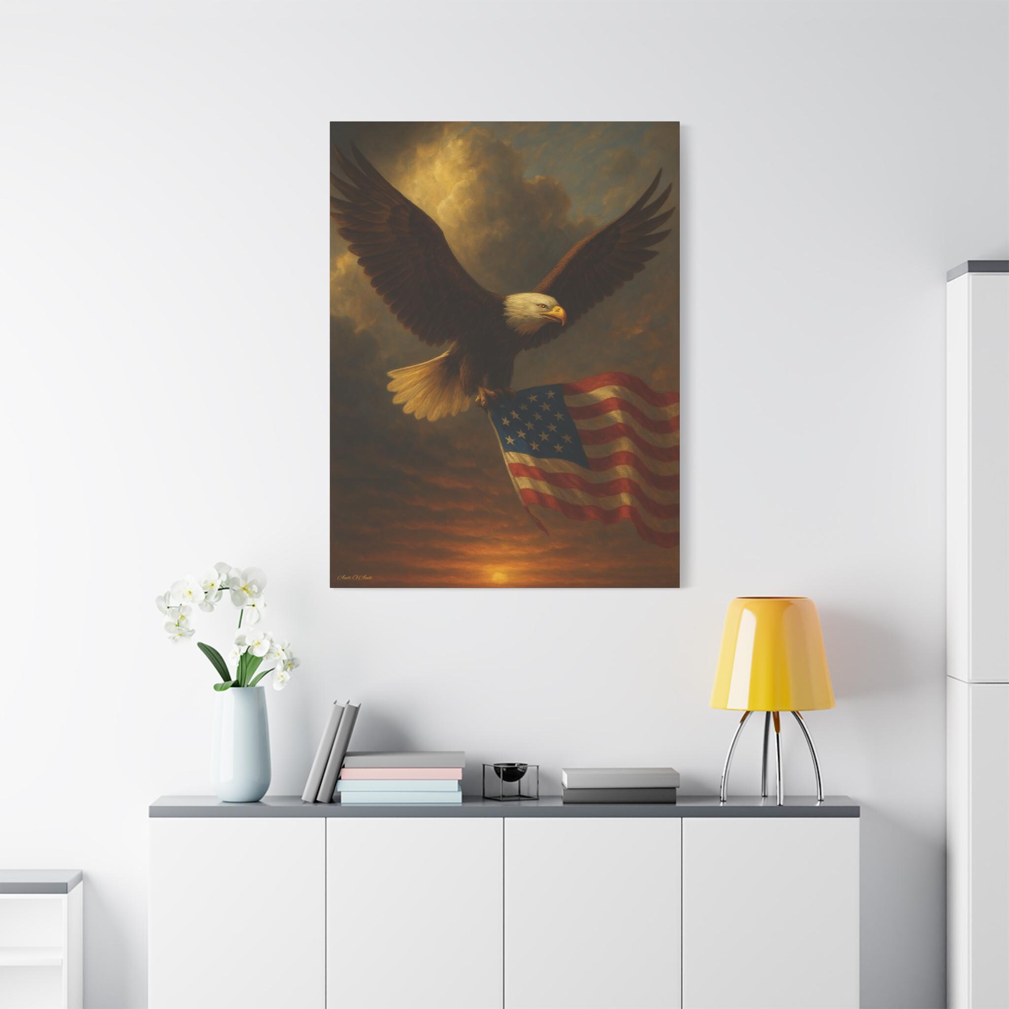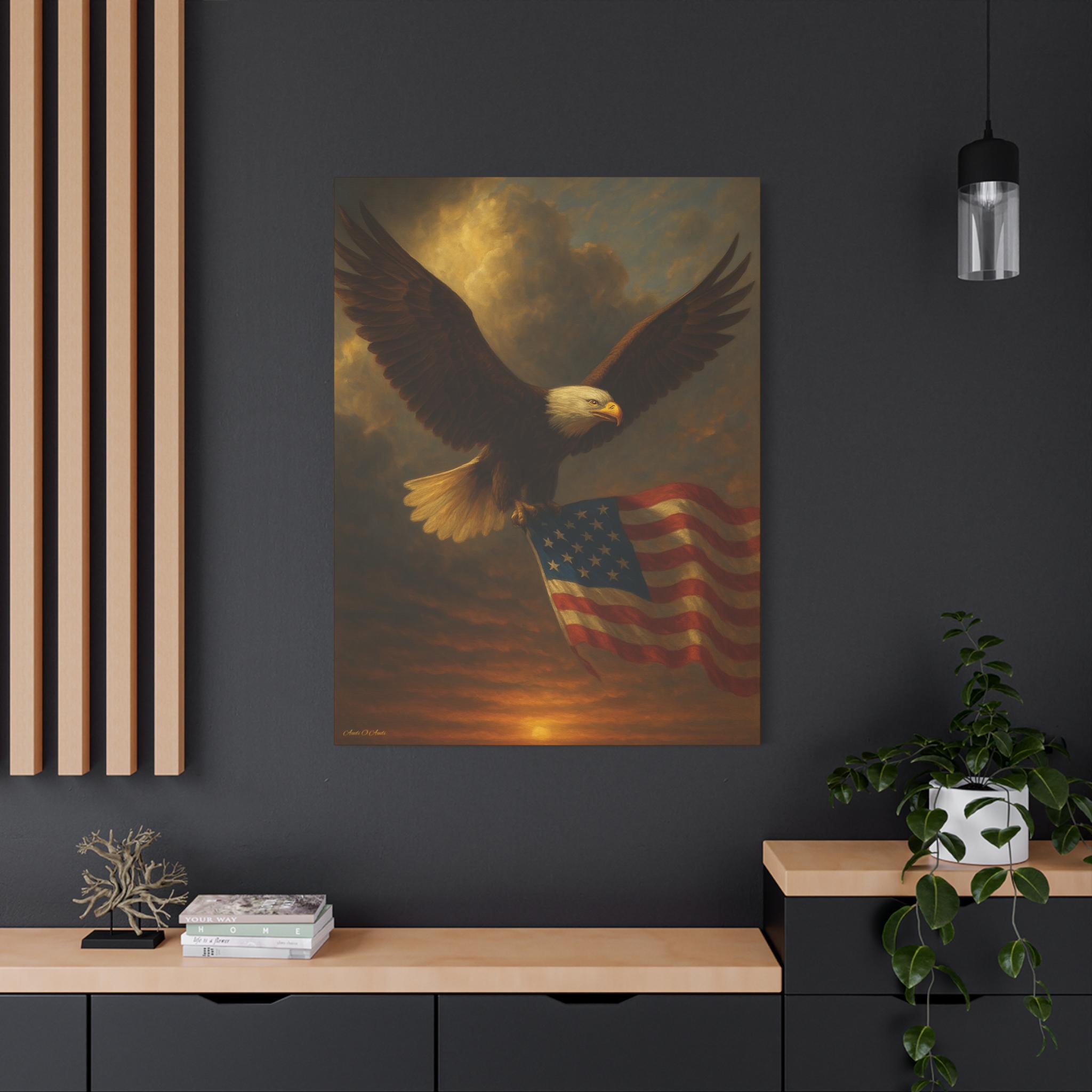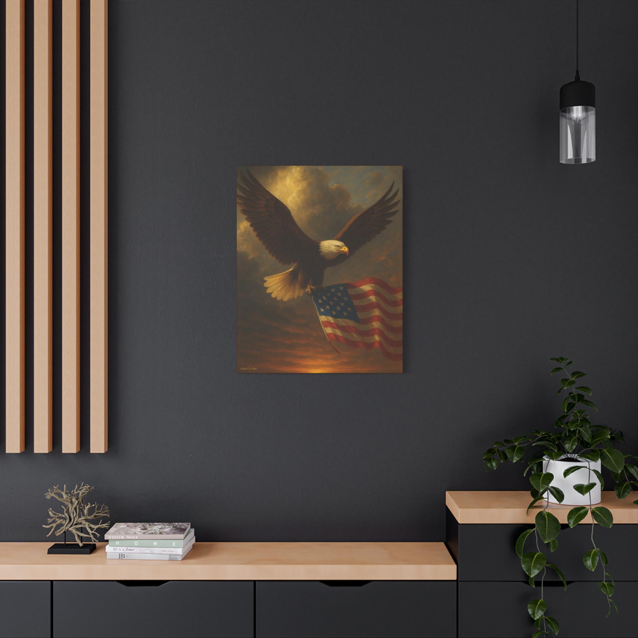 Bring a sense of patriotism and pride to your home with this Guardian of the Flag Patriotic Eagle Canvas Print. Perfect for veterans and those celebrating Independence Day, this American flag art piece will add a touch of Americana to any room. The unique canvas coating ensures high-quality images, while the sustainable materials used make it an eco-friendly choice.