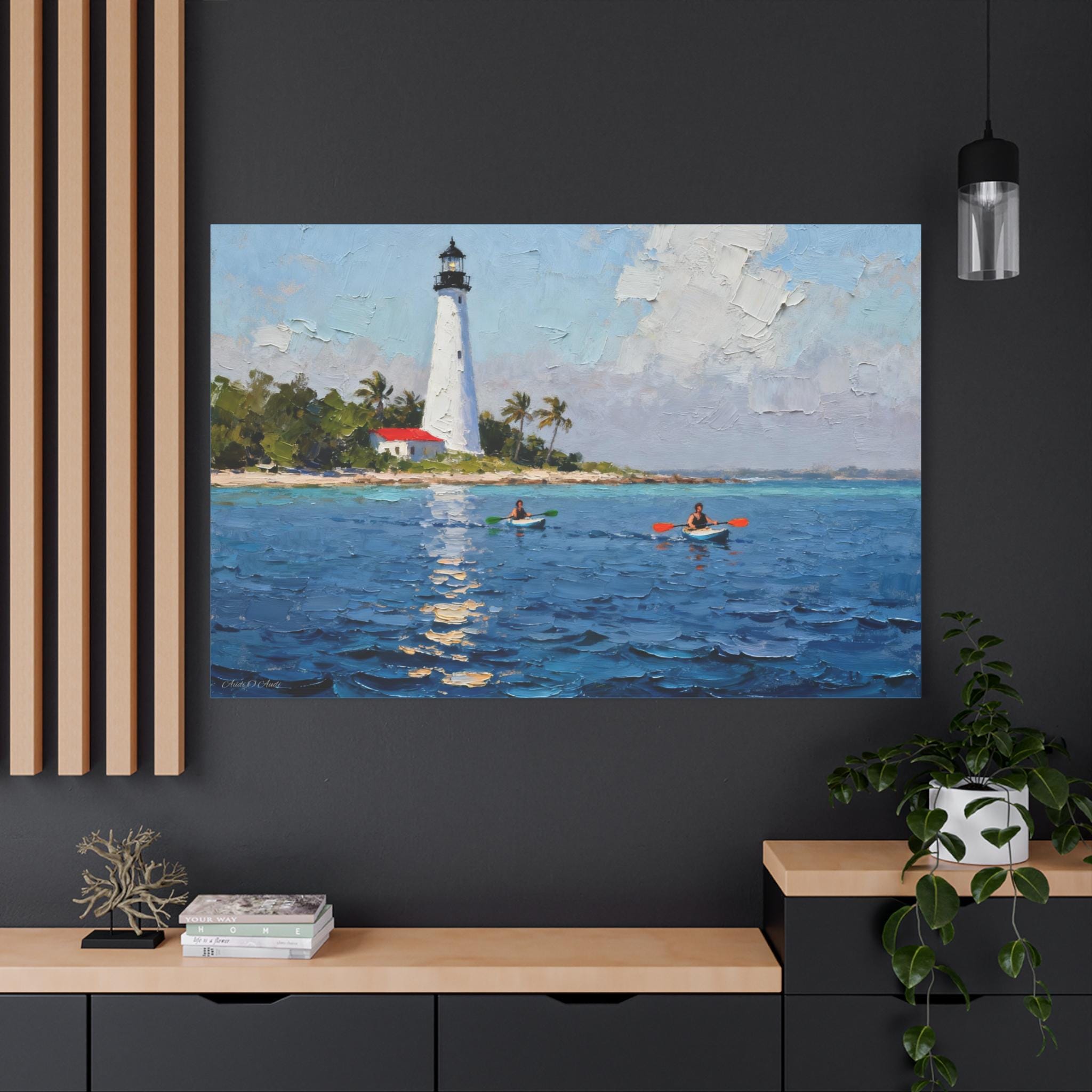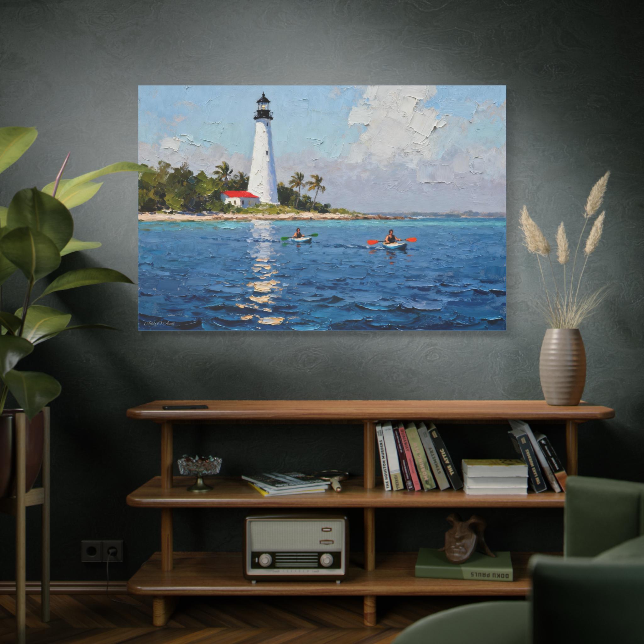 Lighthouse Canvas Wall Art, Nautical Home Decor, Ocean Landscape Stretched Print, Coastal Art for Beach Lovers, Gift for Sailors
