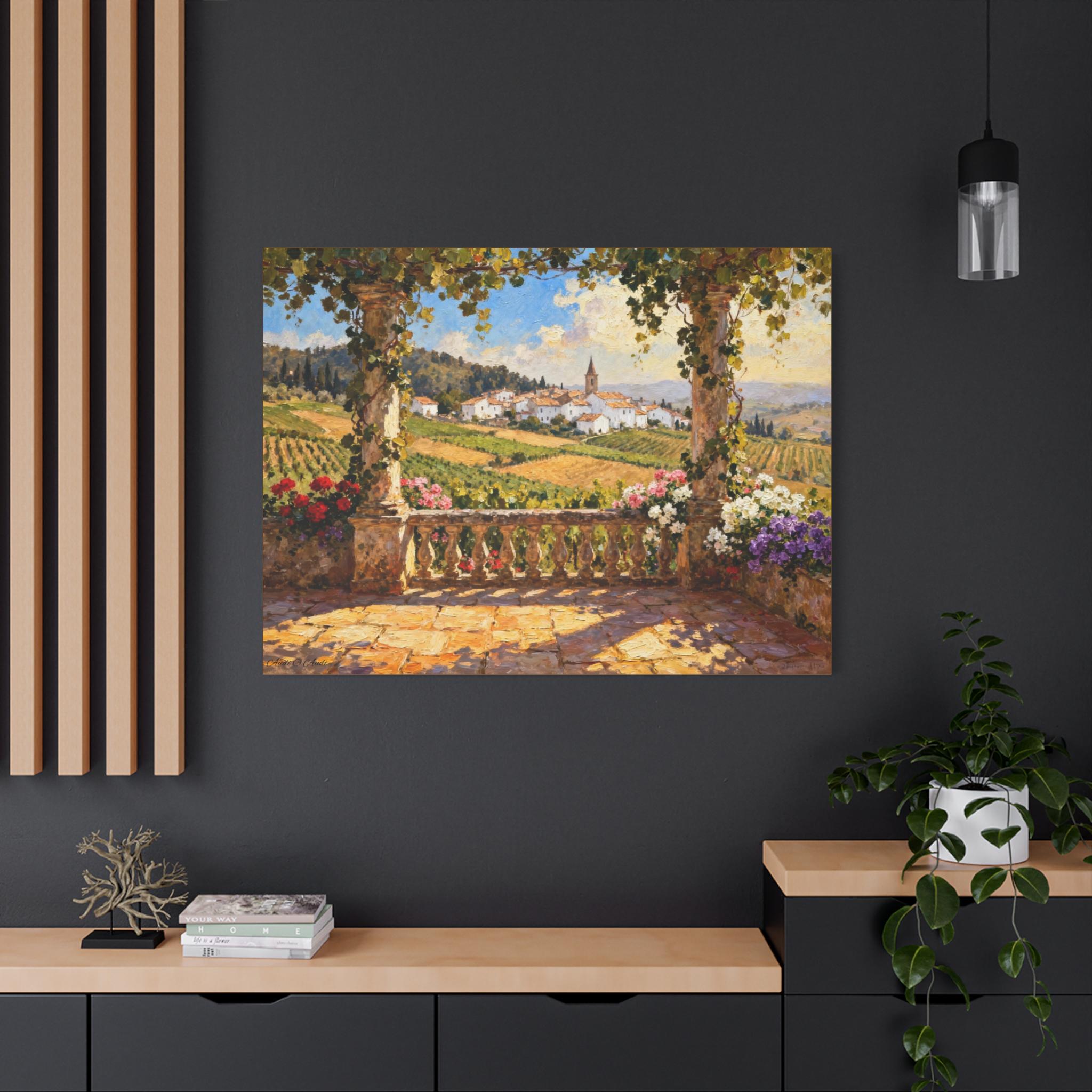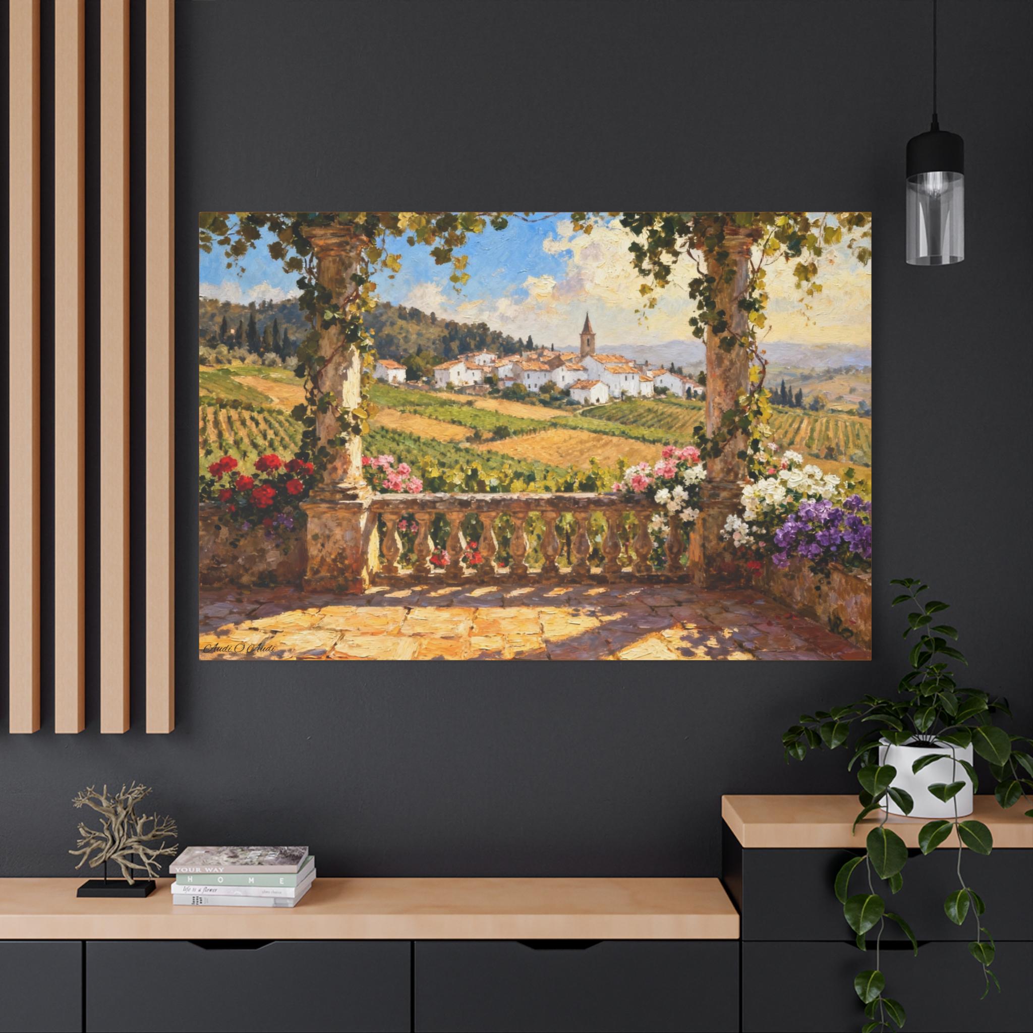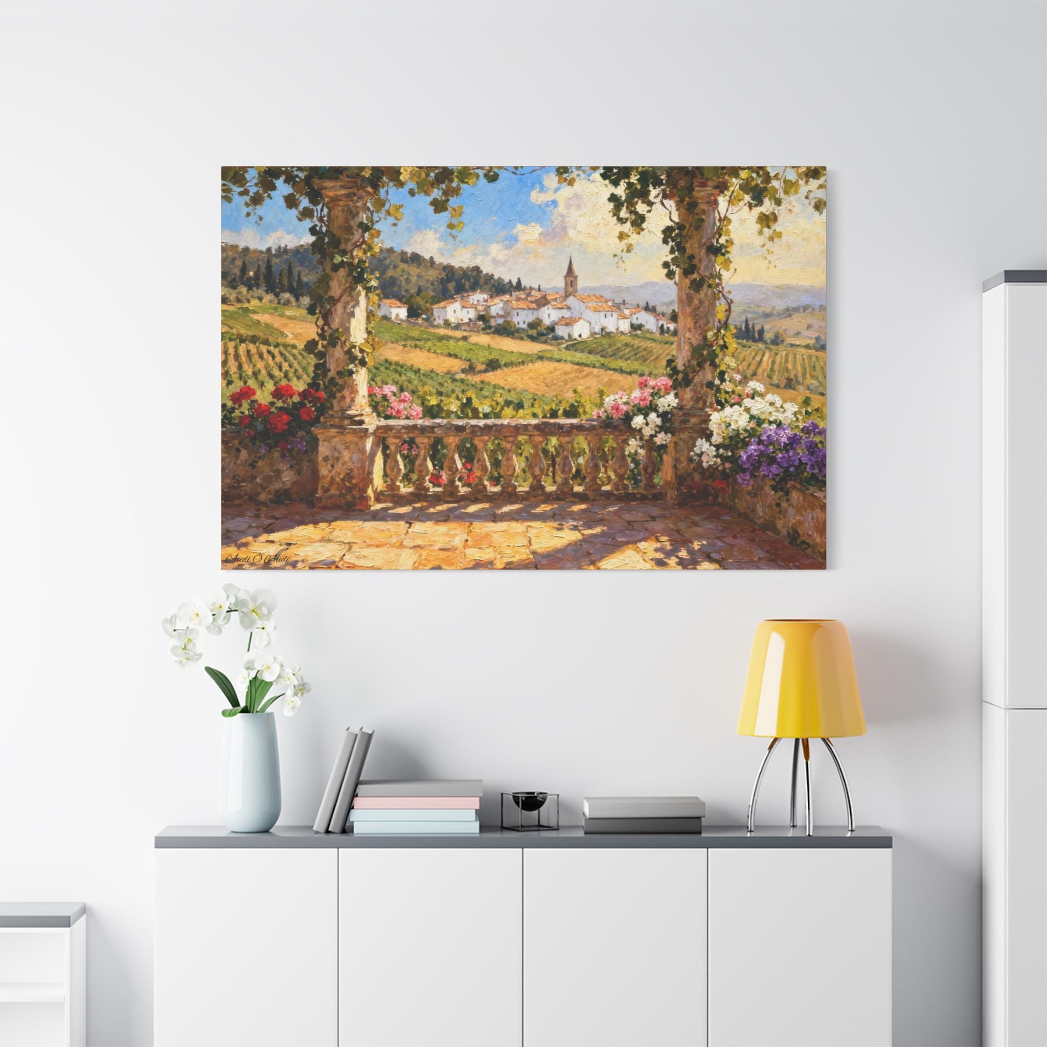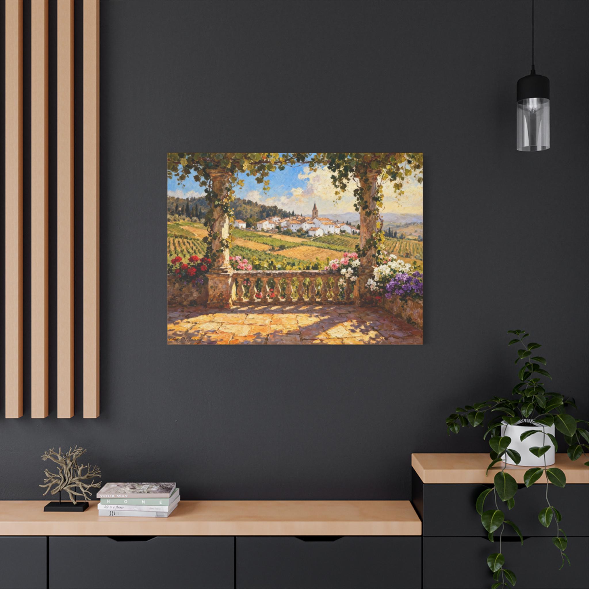 Transform your living space with this beautifully crafted matte canvas. Showcasing a picturesque view of rolling vineyards and charming architecture, it evokes a sense of serenity and connection to nature. Perfect for enhancing cozy nooks, brightening living rooms, or adding sophistication to workspaces, this canvas creates a welcoming atmosphere in any room.