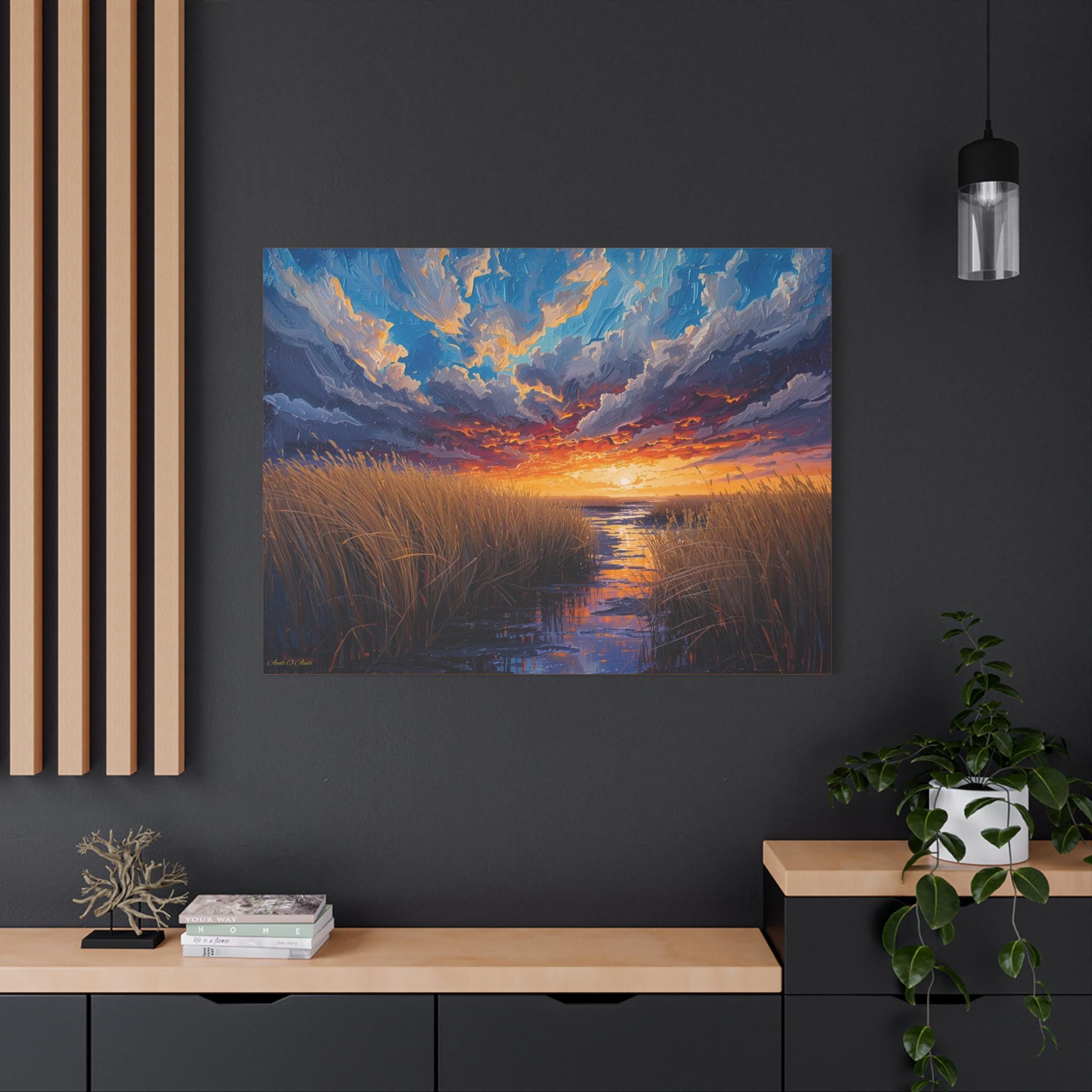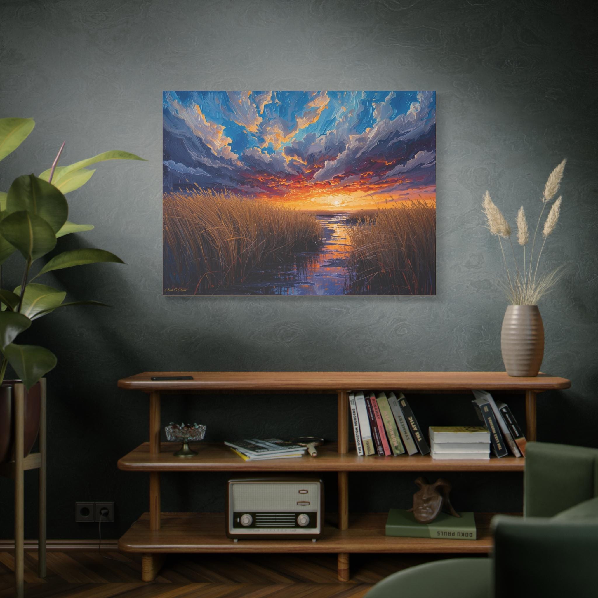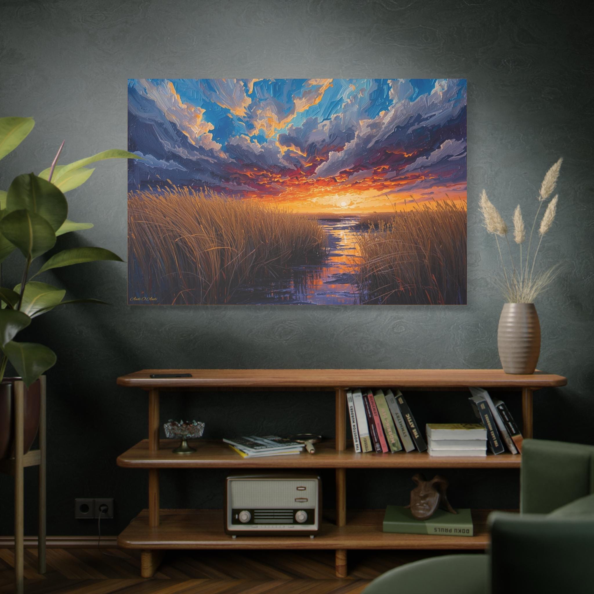Marshfire, Serene Landscape Canvas Print, Framed Wall Art, Nature Decor, Home Wall Decoration, Gift for Art Lovers, Tranquil Sunset Artwork