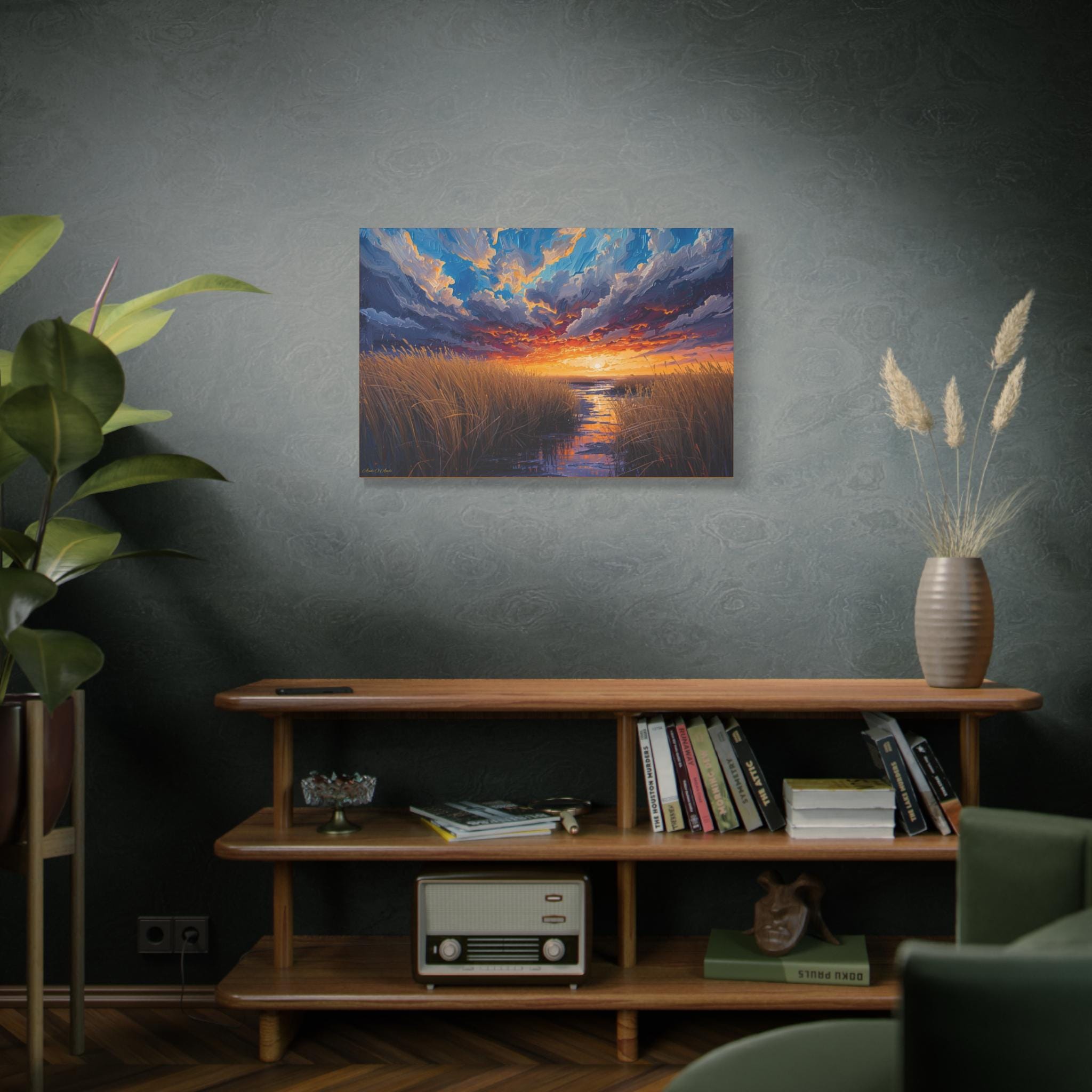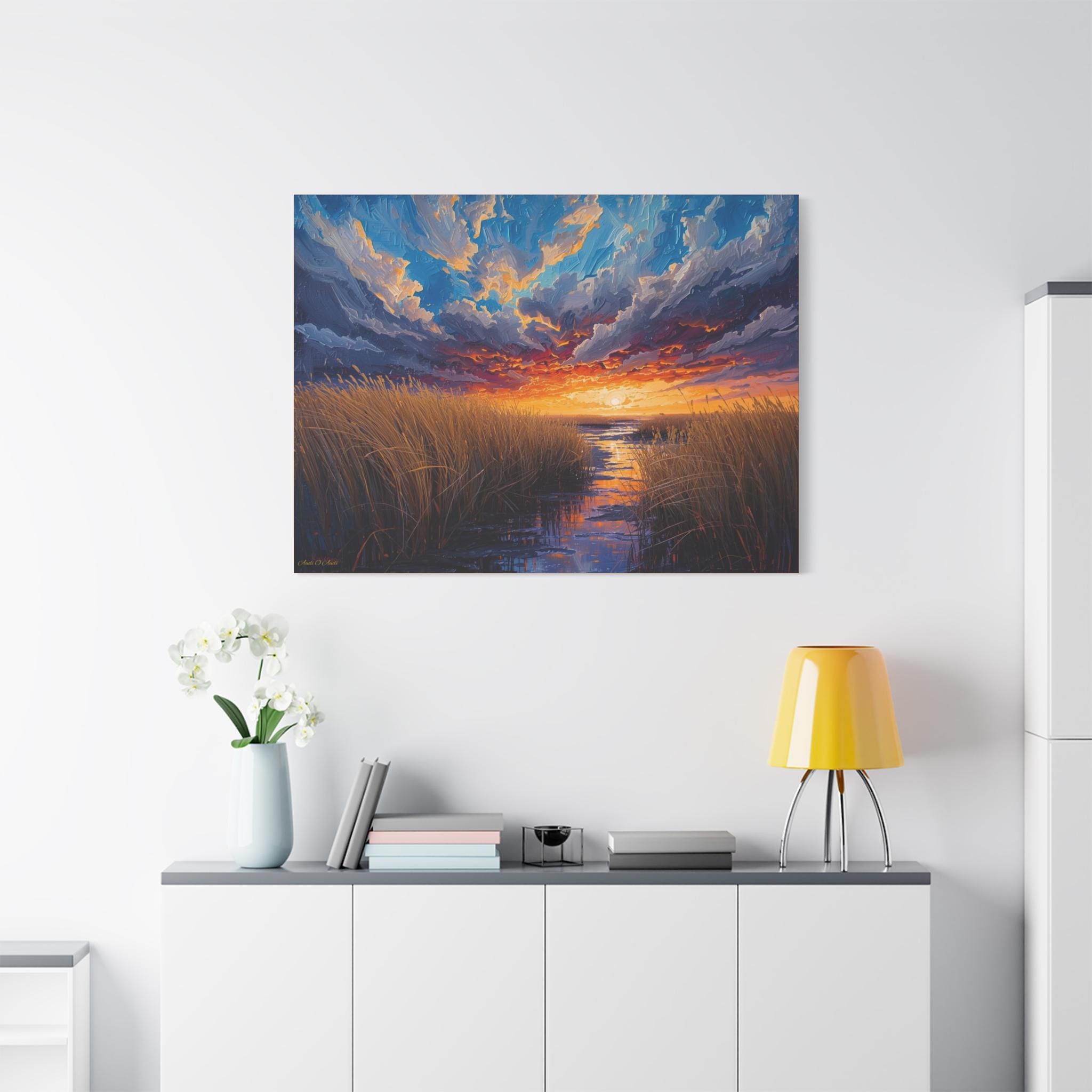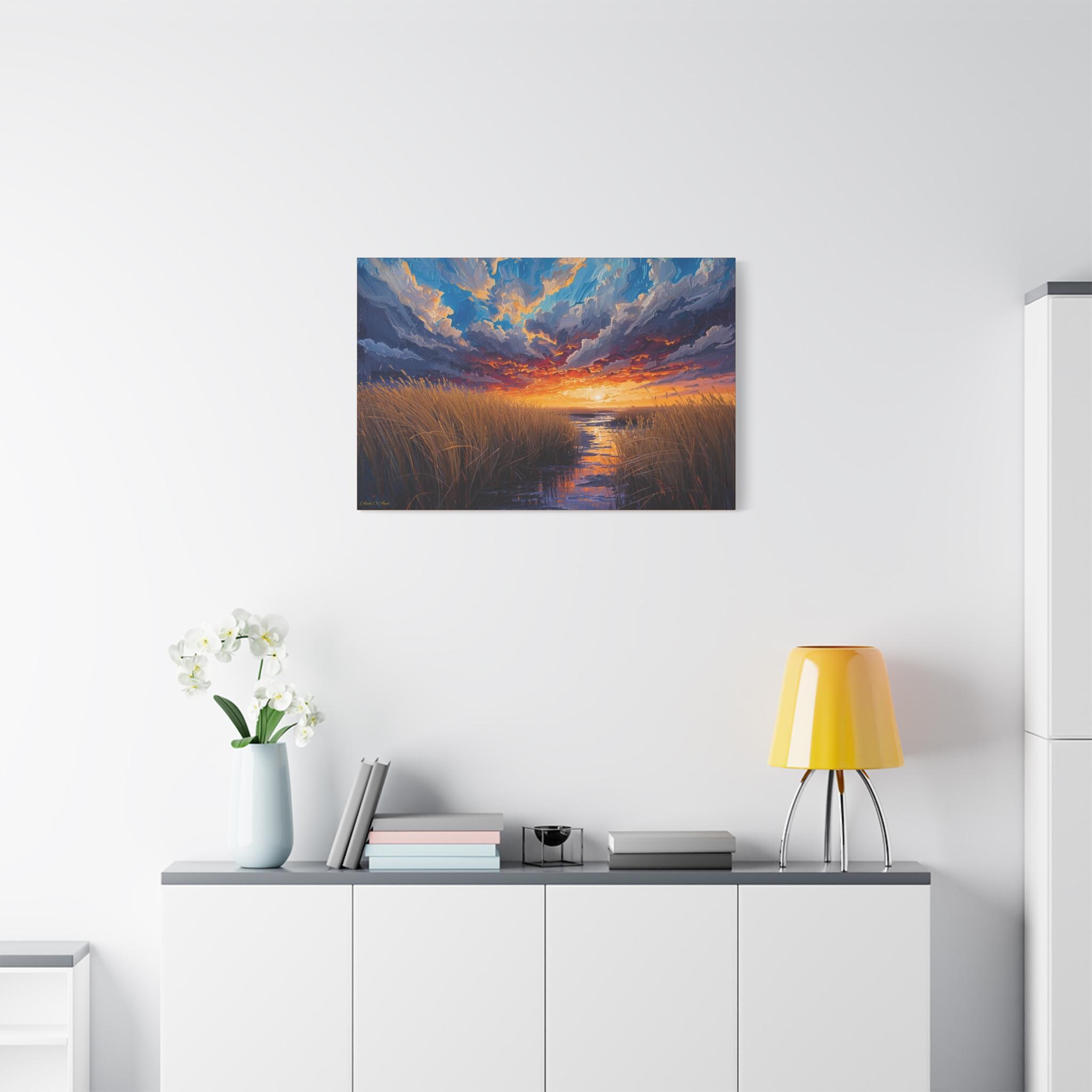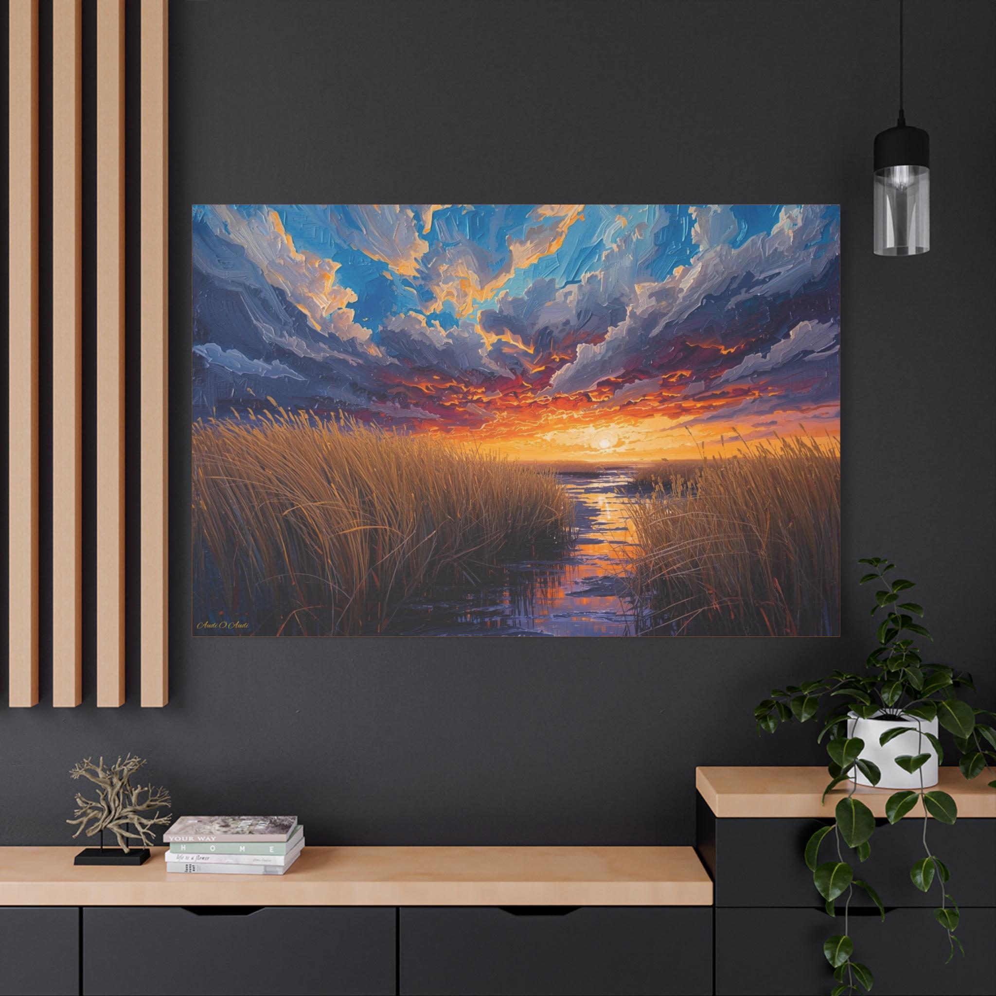 Marshfire, Serene Landscape Canvas Print, Framed Wall Art, Nature Decor, Home Wall Decoration, Gift for Art Lovers, Tranquil Sunset Artwork