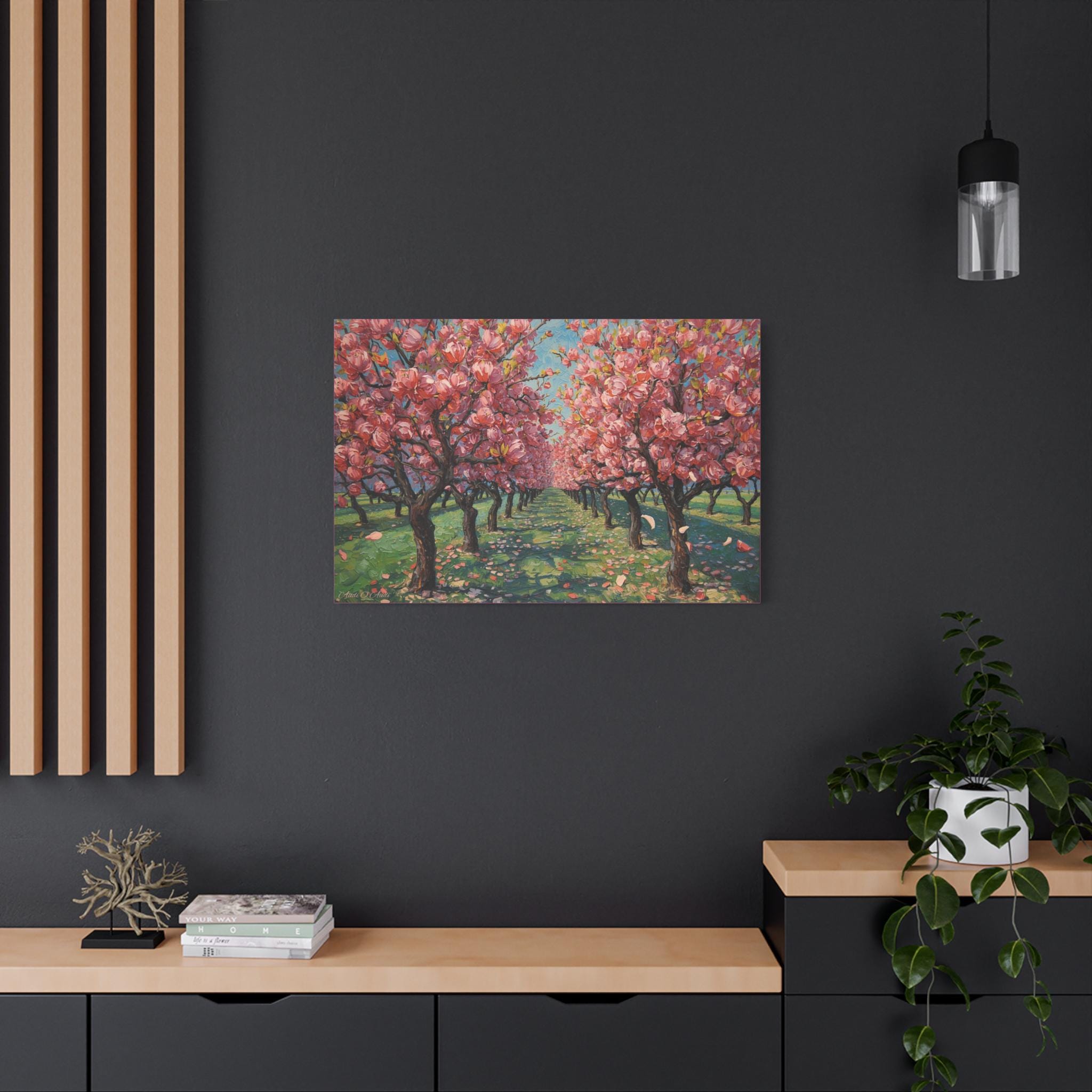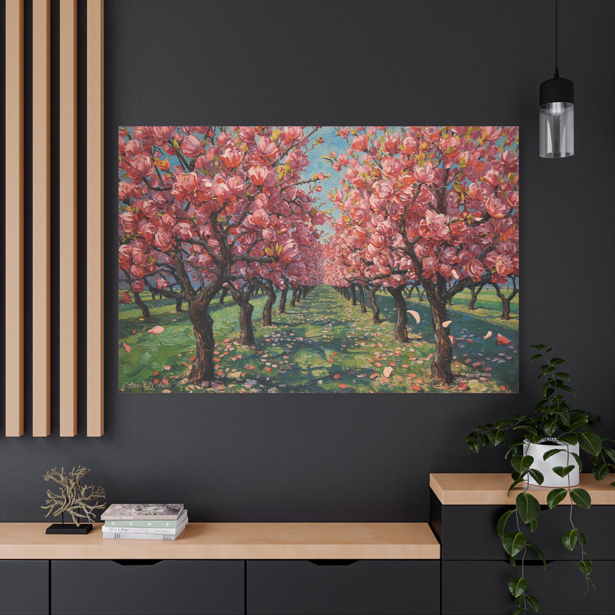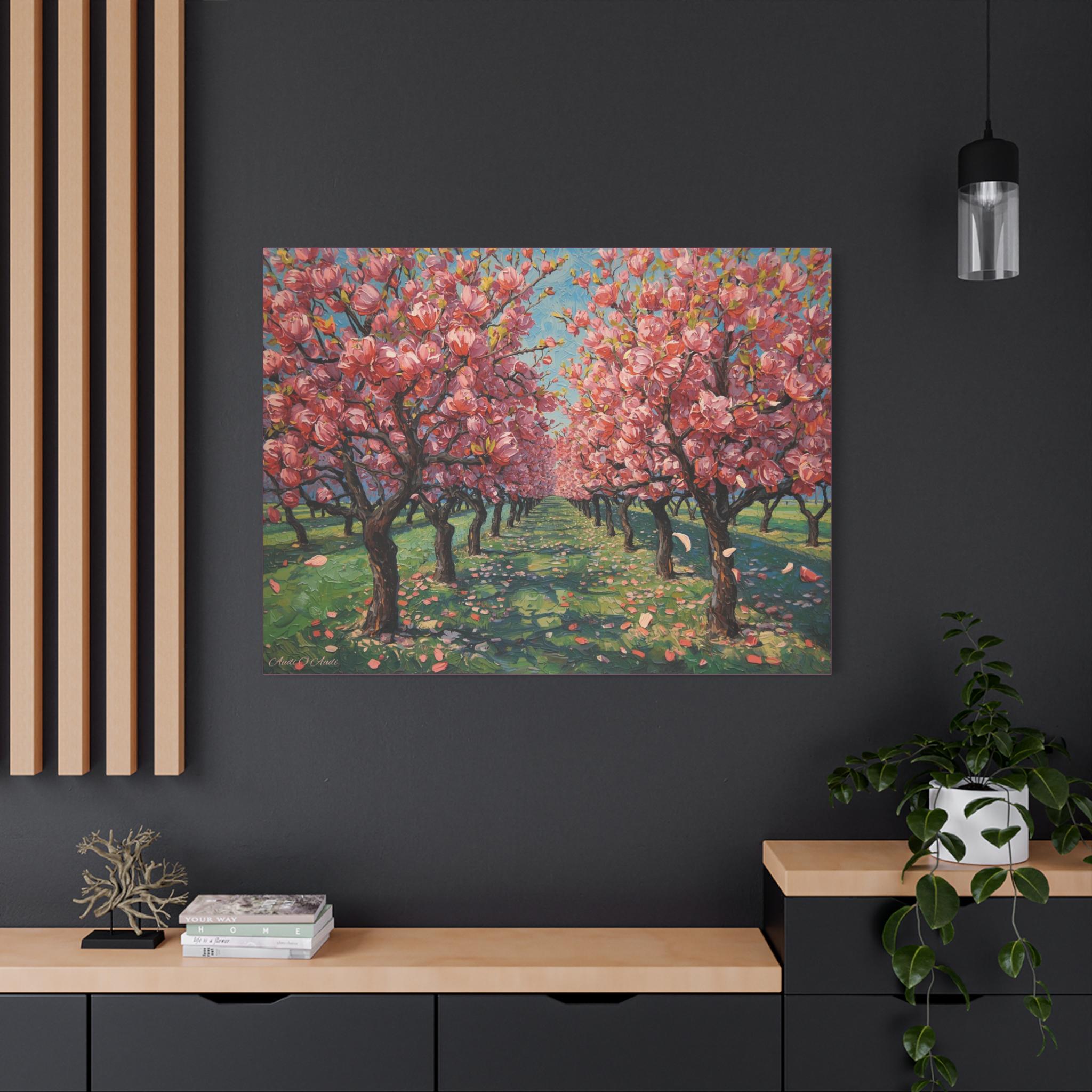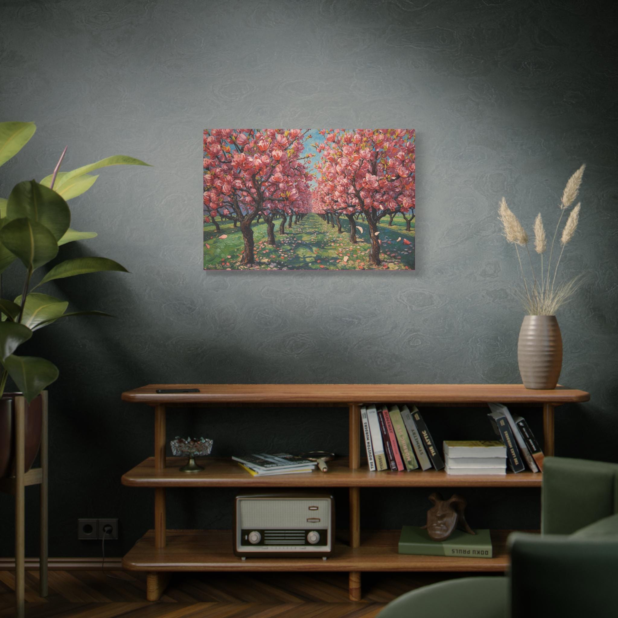 Canvas Print, Petal Avenue Pathway Vintage Floral Art, Spring Decor, Gift for Nature Lovers, Pink Blossom Artwork, Home Office Wall Art,