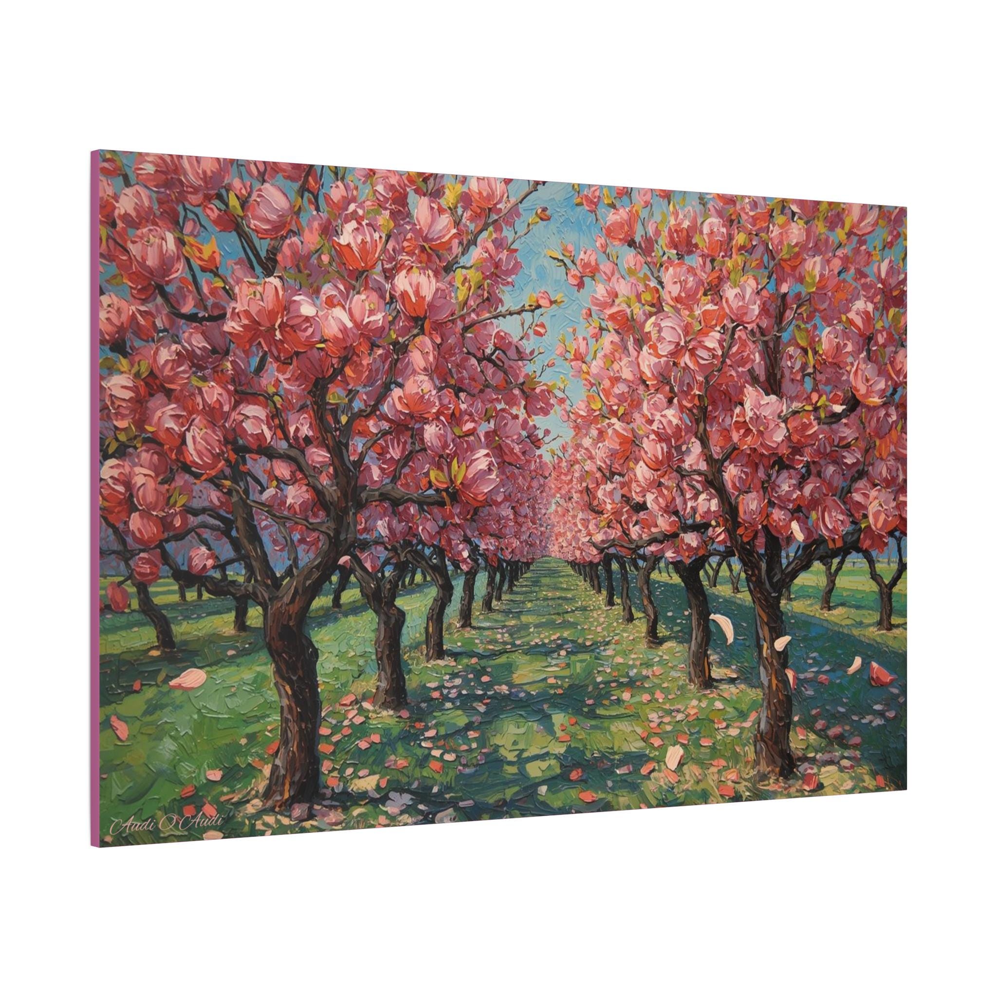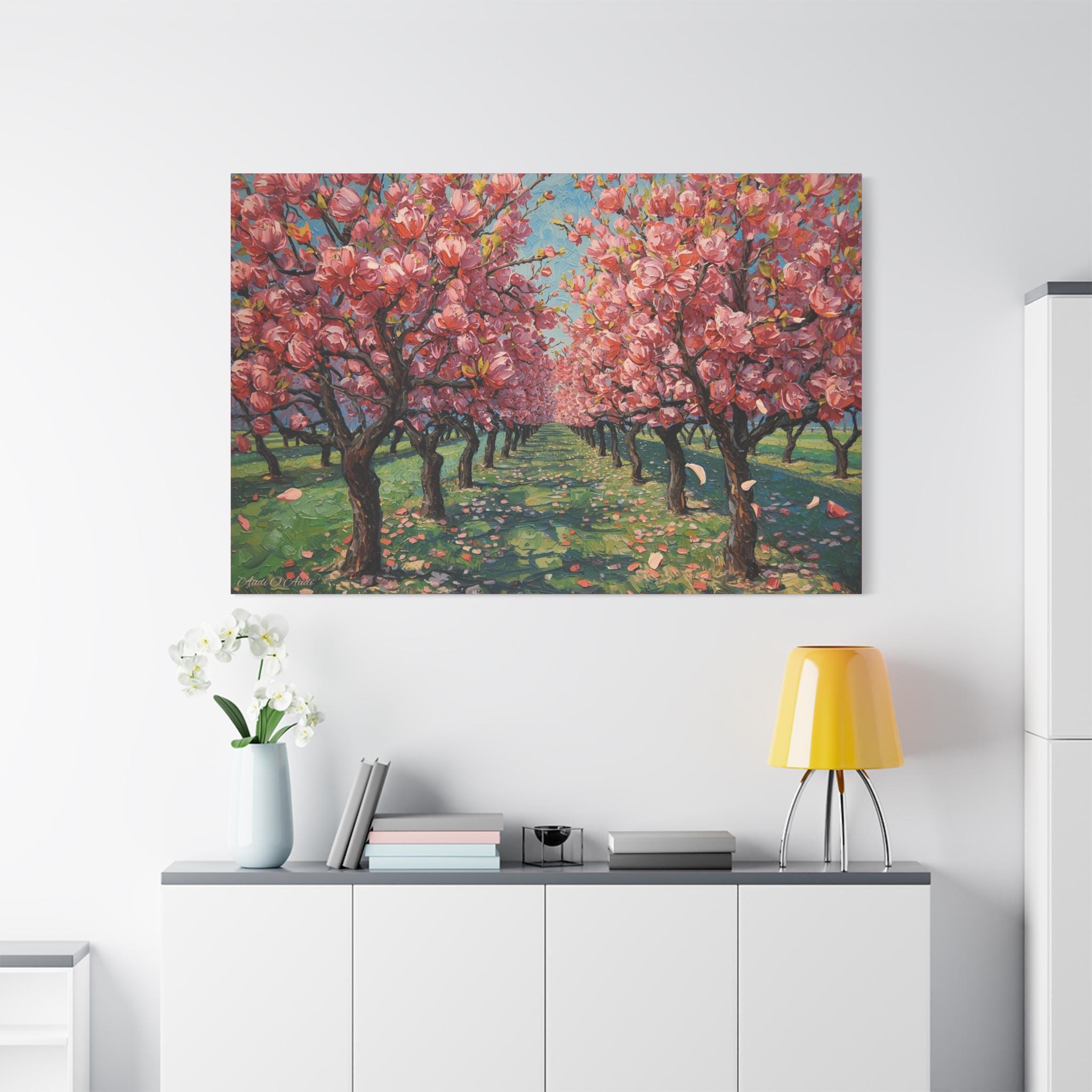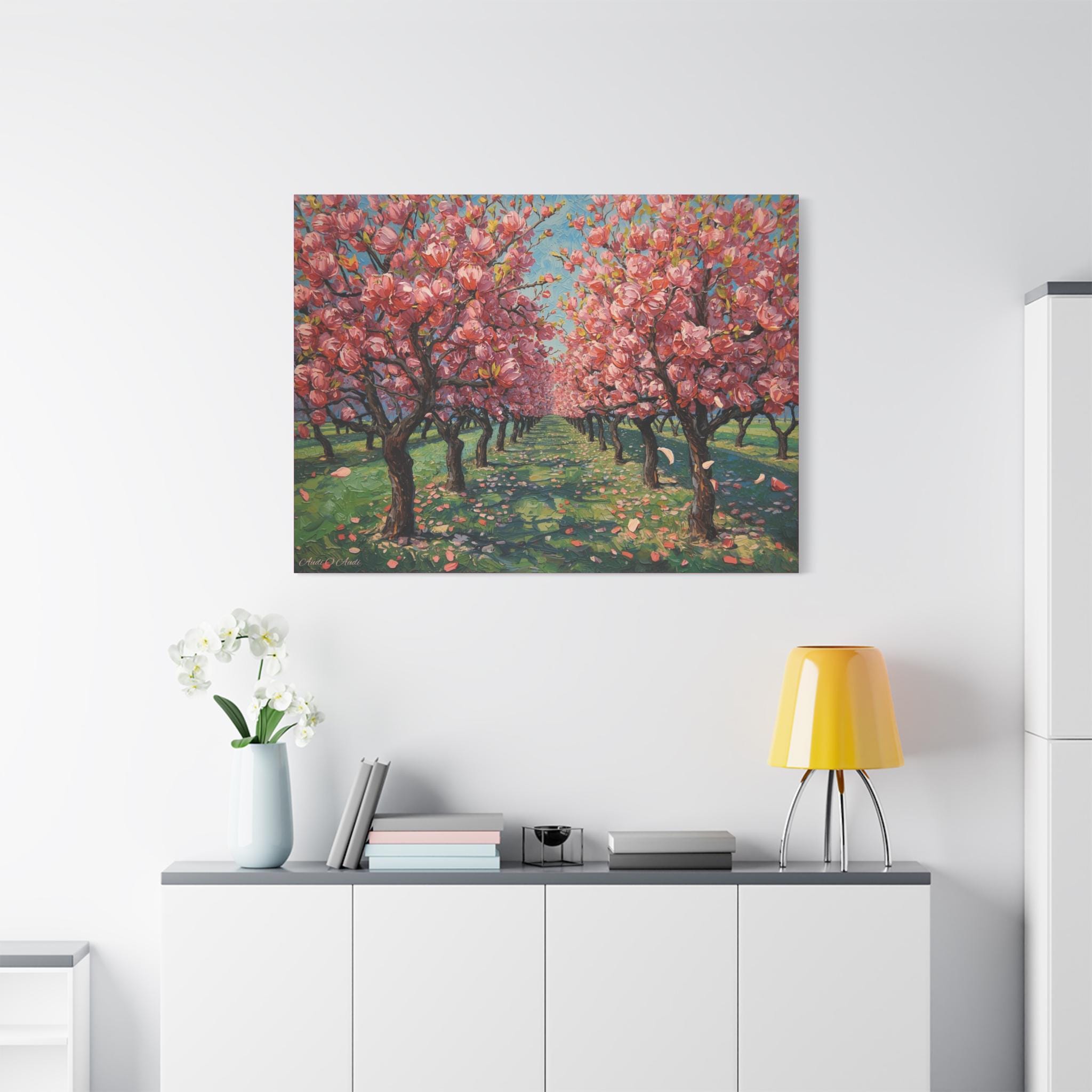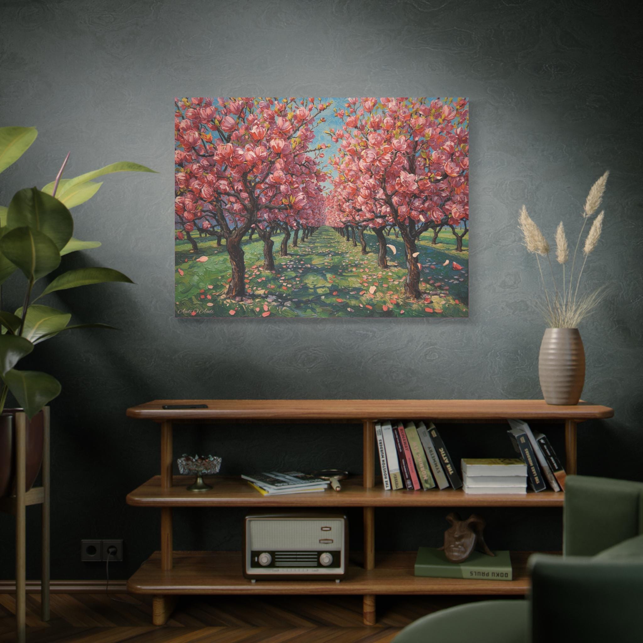 Canvas Print, Petal Avenue Pathway Vintage Floral Art, Spring Decor, Gift for Nature Lovers, Pink Blossom Artwork, Home Office Wall Art,