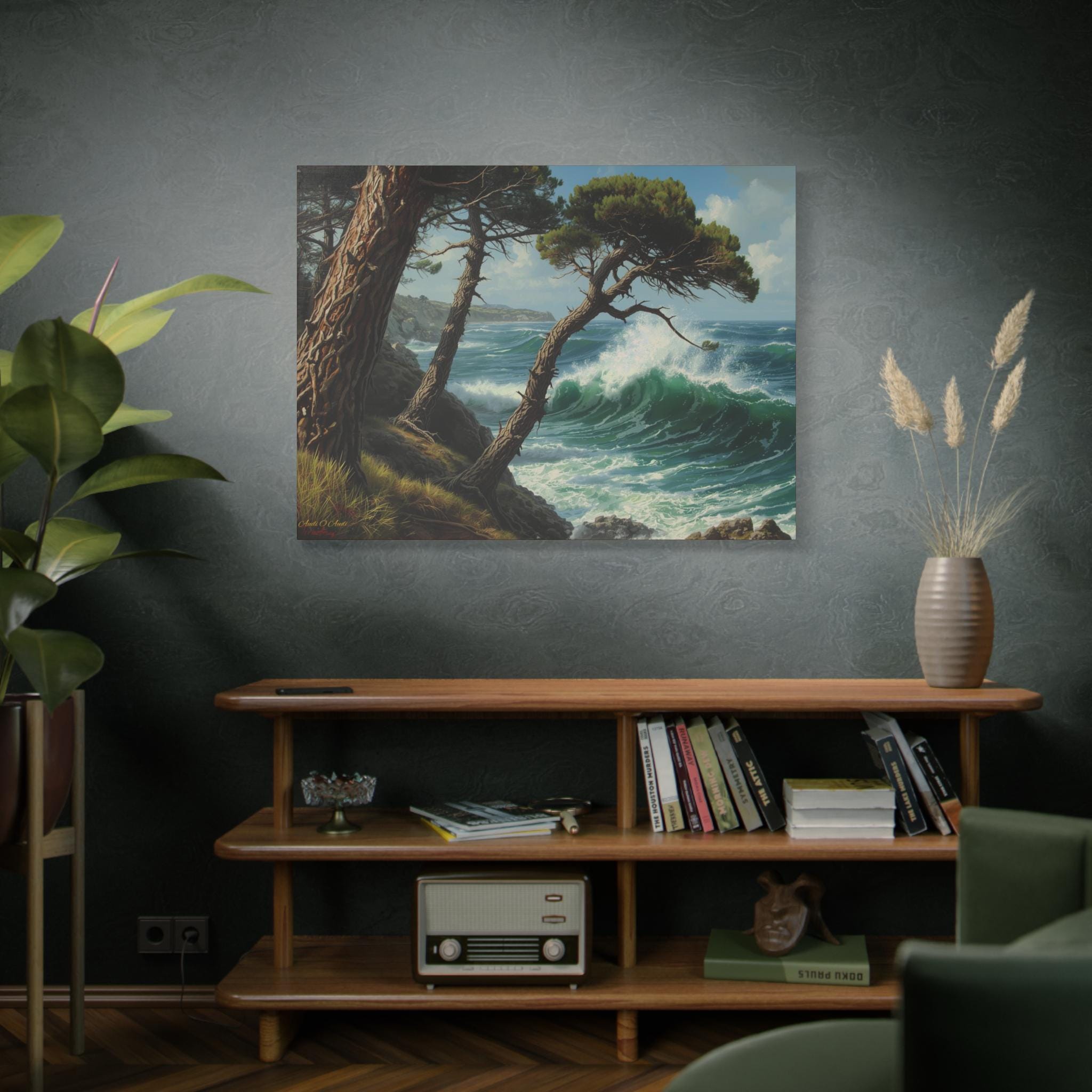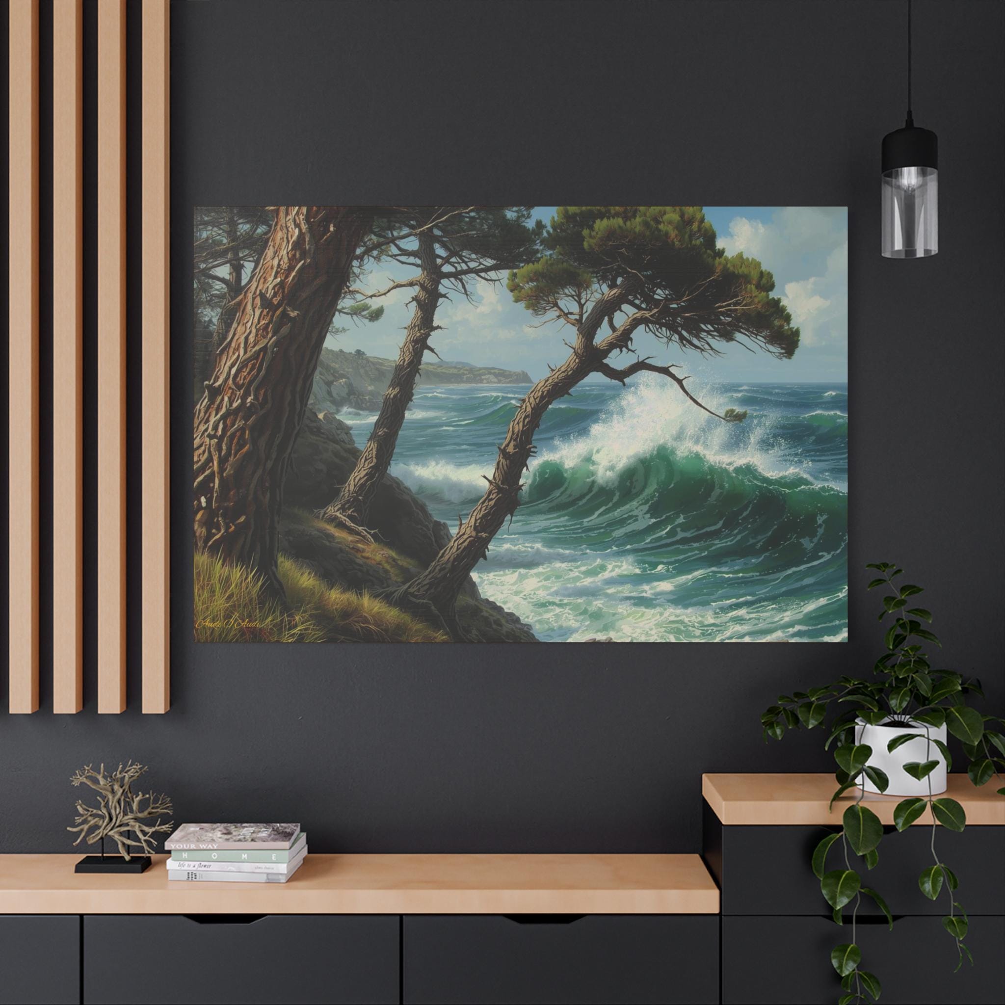 Canvas Art, Pines in the Salt Wind, Coastal Wave, Ocean Wall Decor, Seascape Home Decor, Gift for Beach Lovers, Stretched Matte