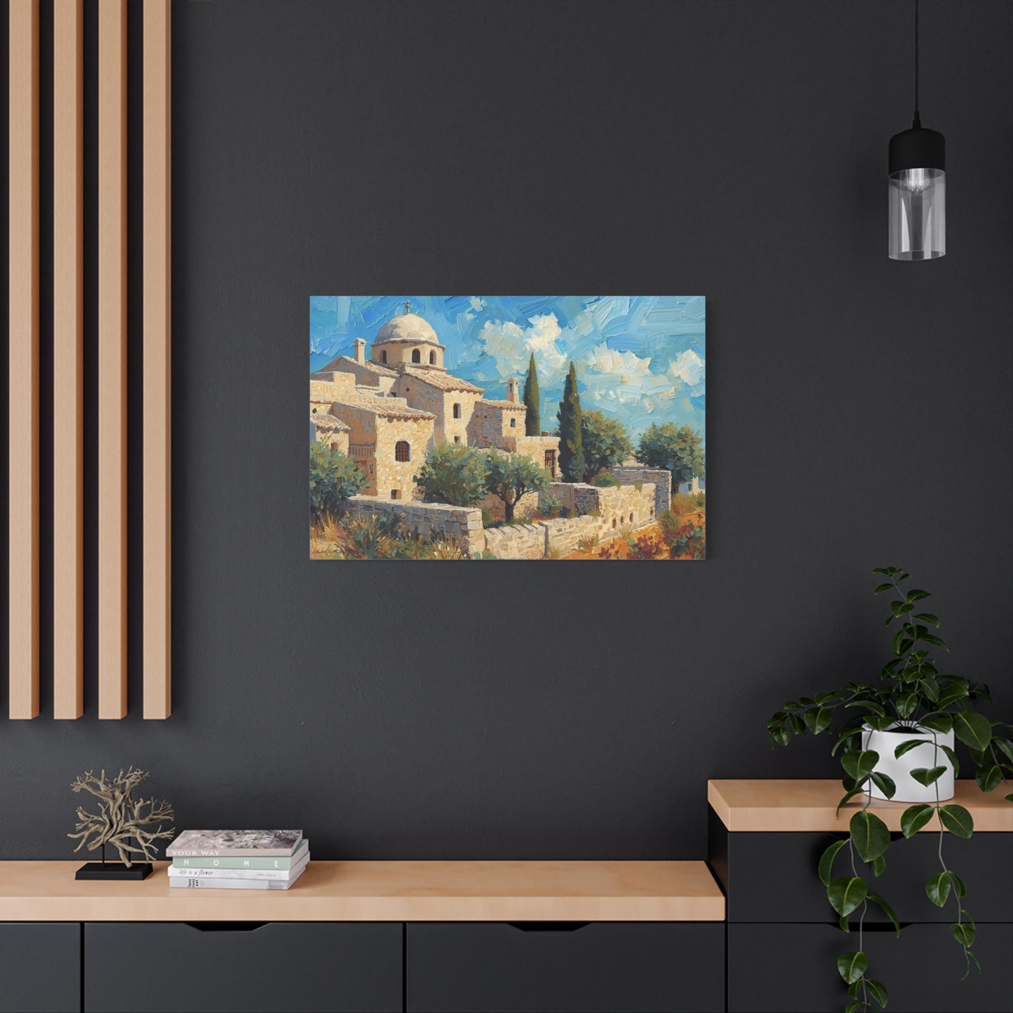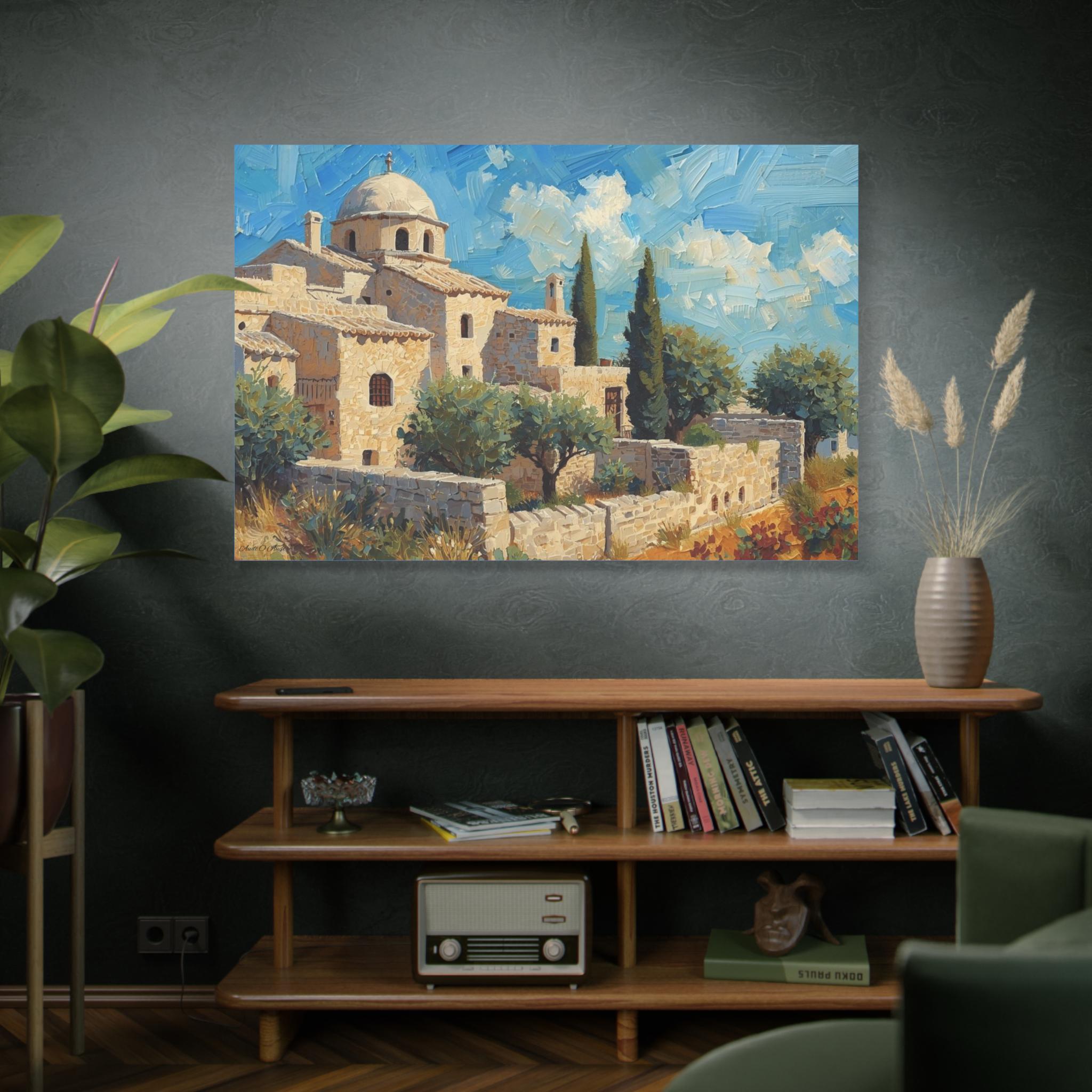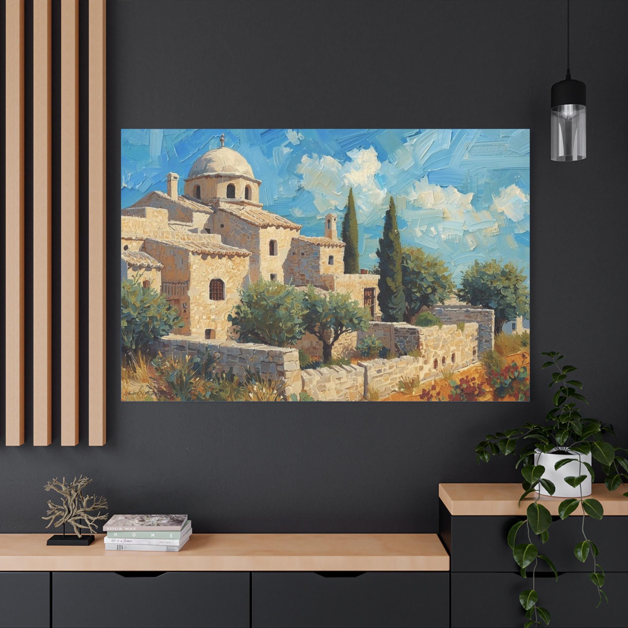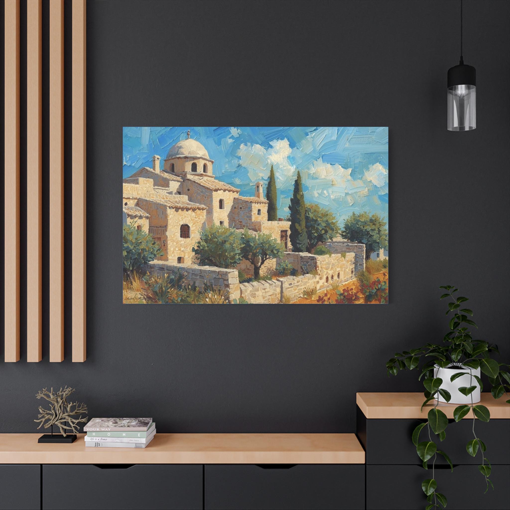 Olive Shadows, Sunlit Walls, Canvas Art Print, Landscape Wall Decor, Rustic Home Aesthetic, Gift for Art Lovers.