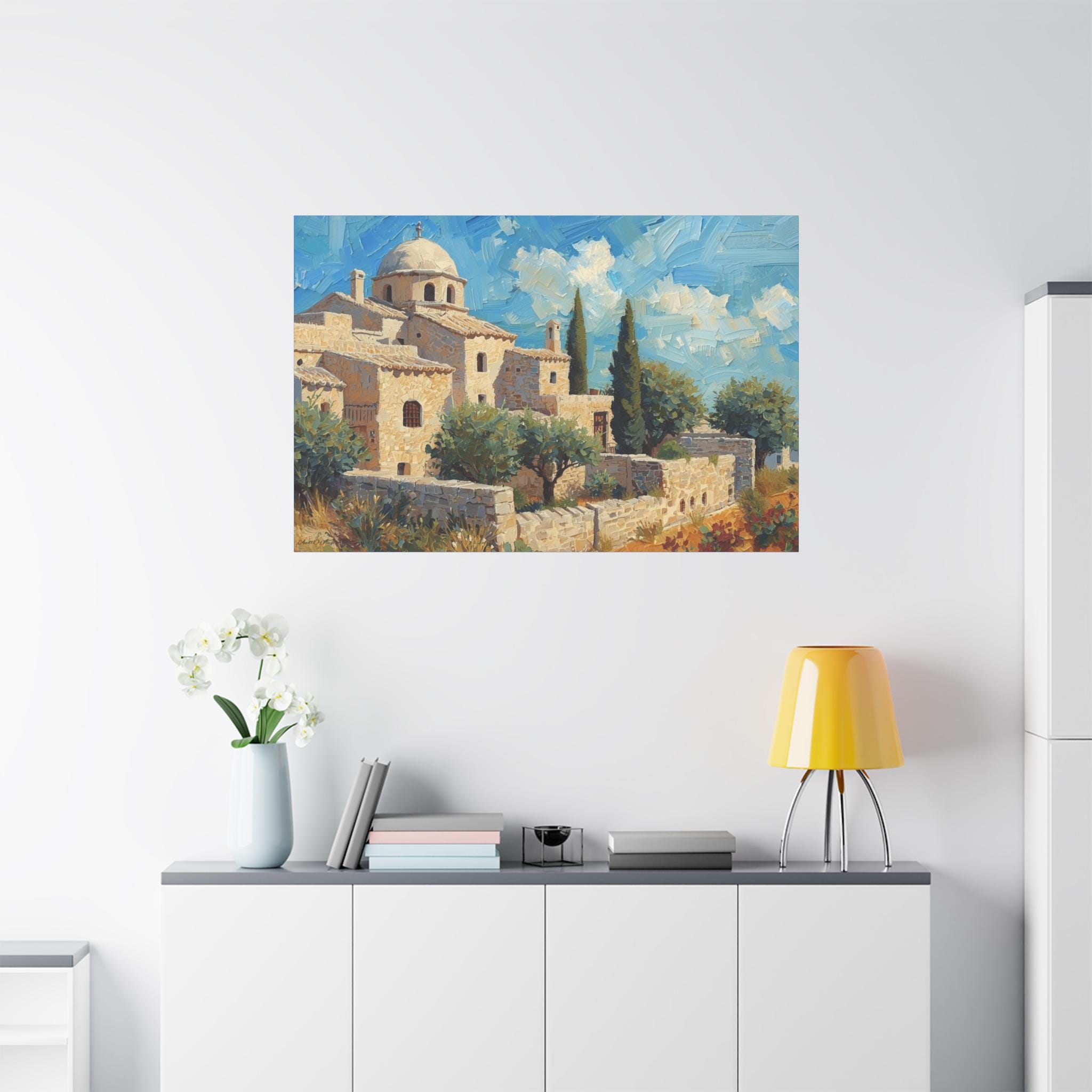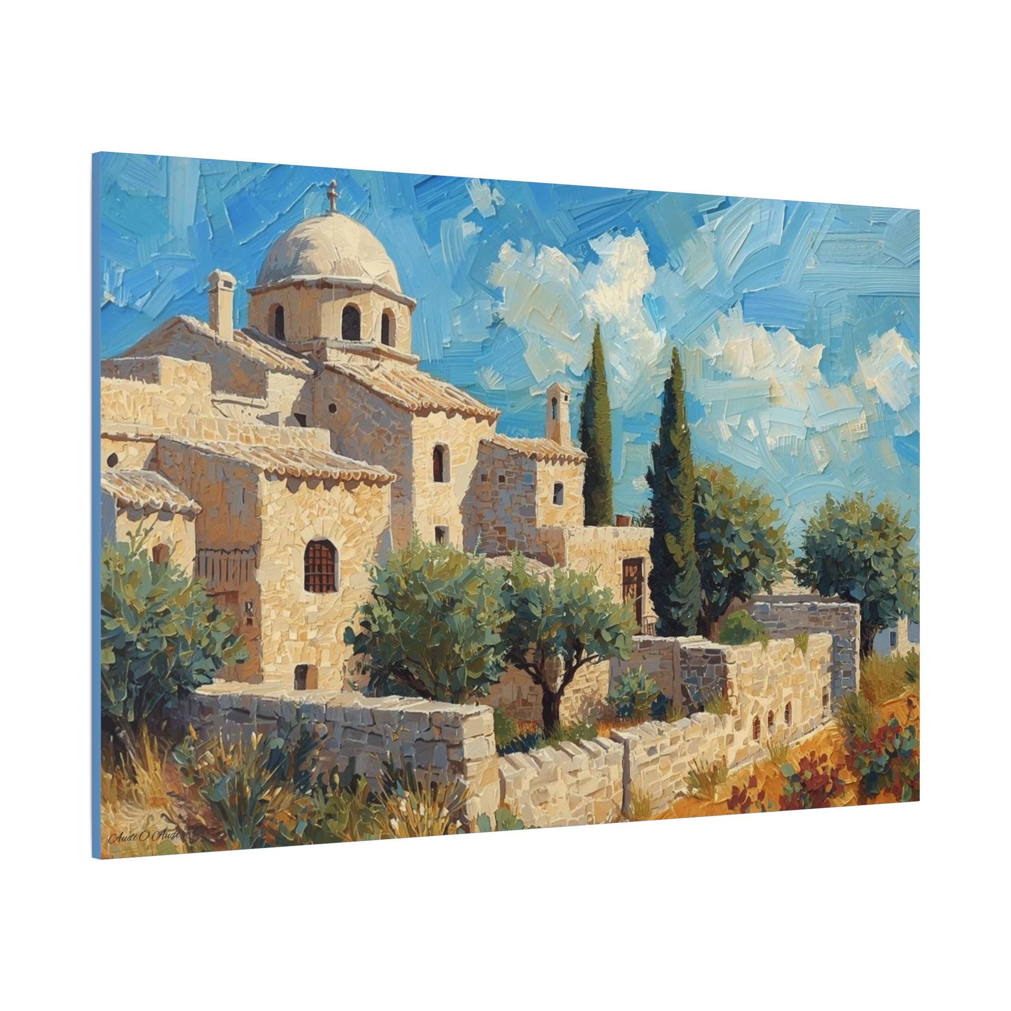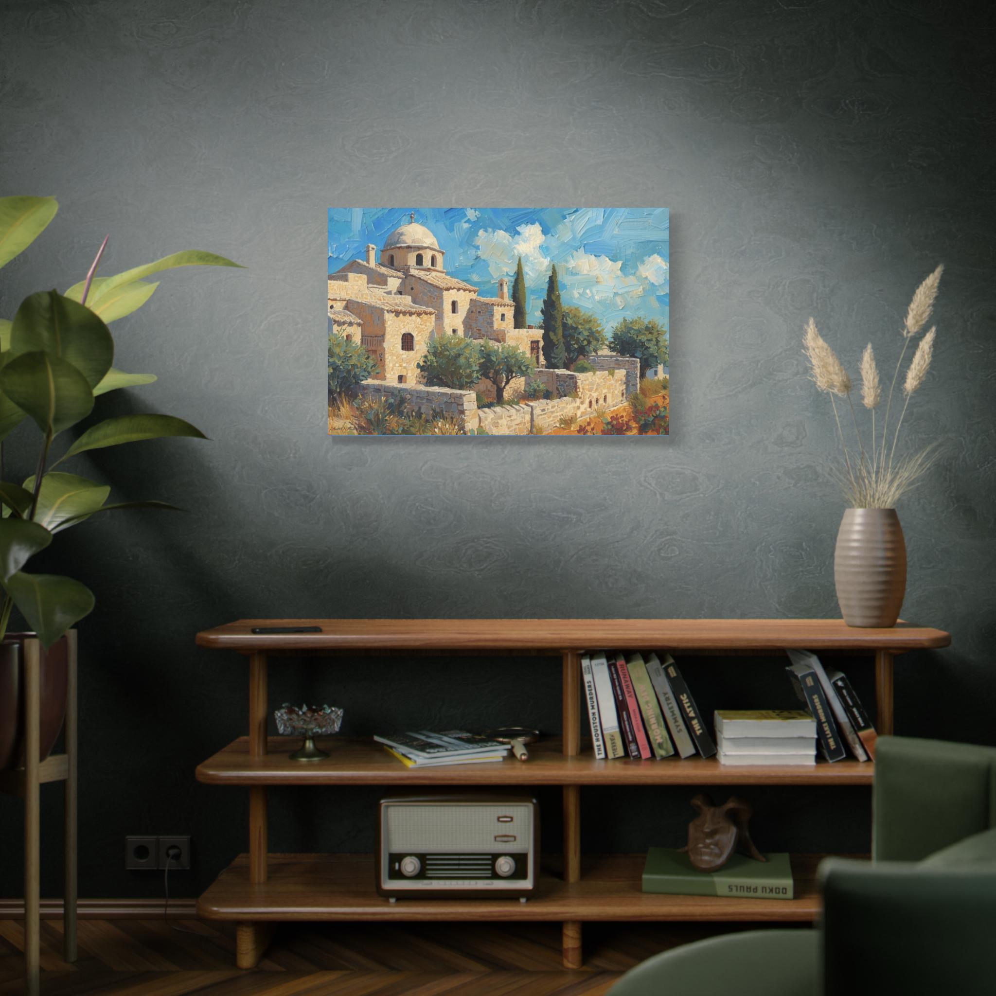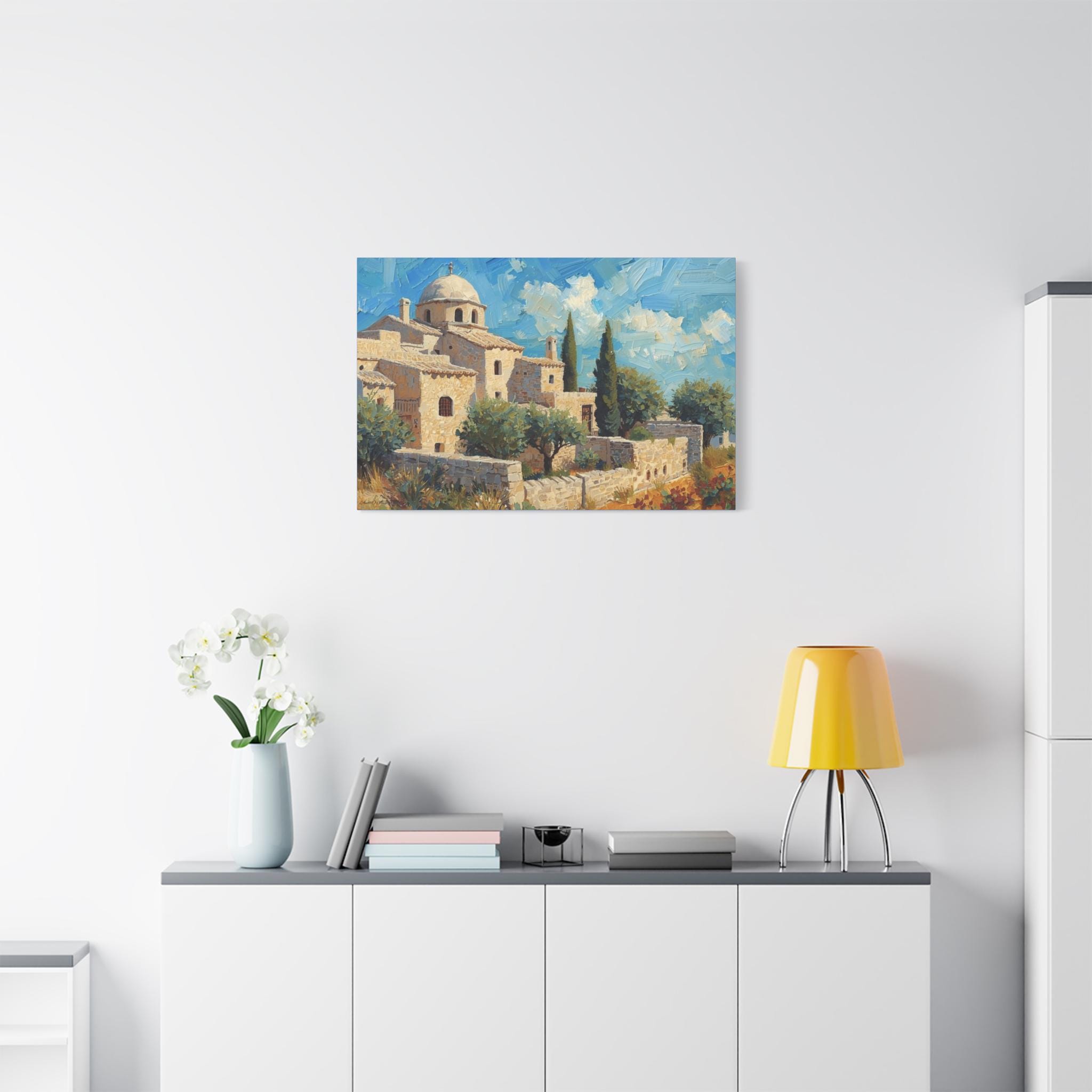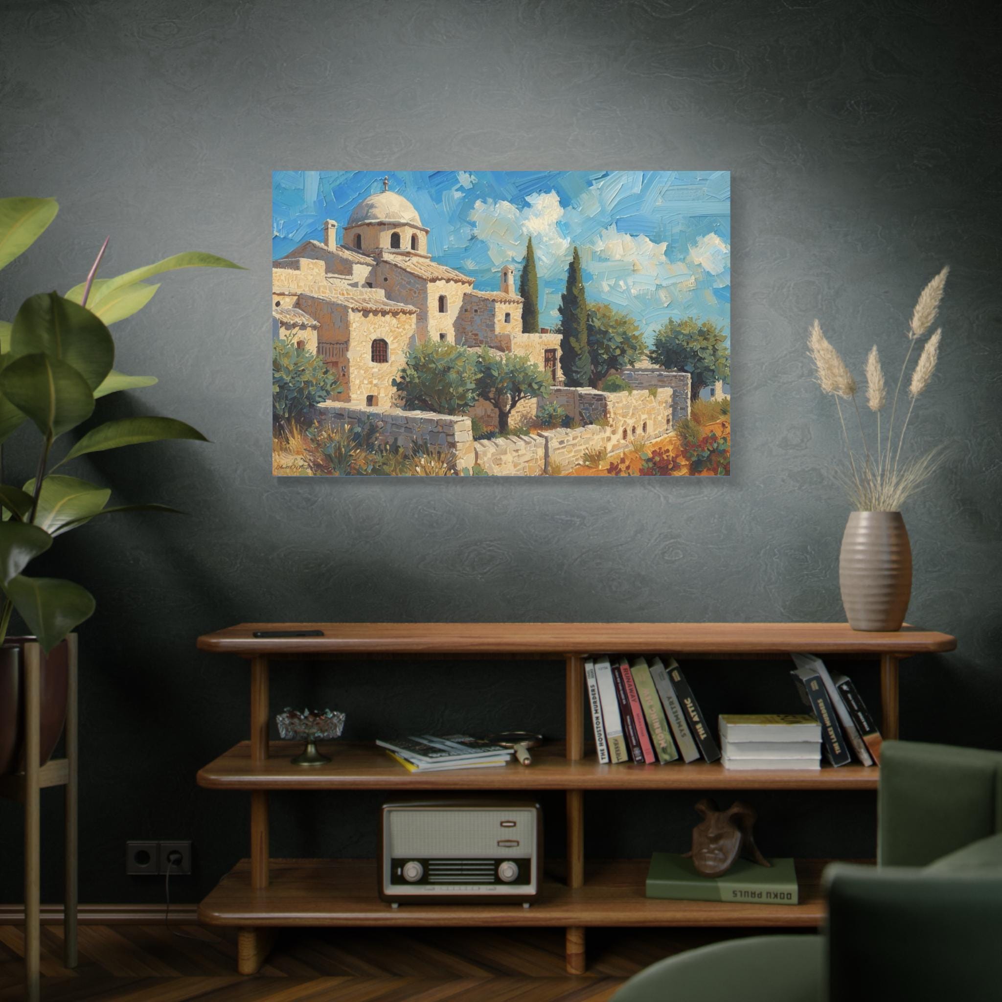Olive Shadows, Sunlit Walls, Canvas Art Print, Landscape Wall Decor, Rustic Home Aesthetic, Gift for Art Lovers.