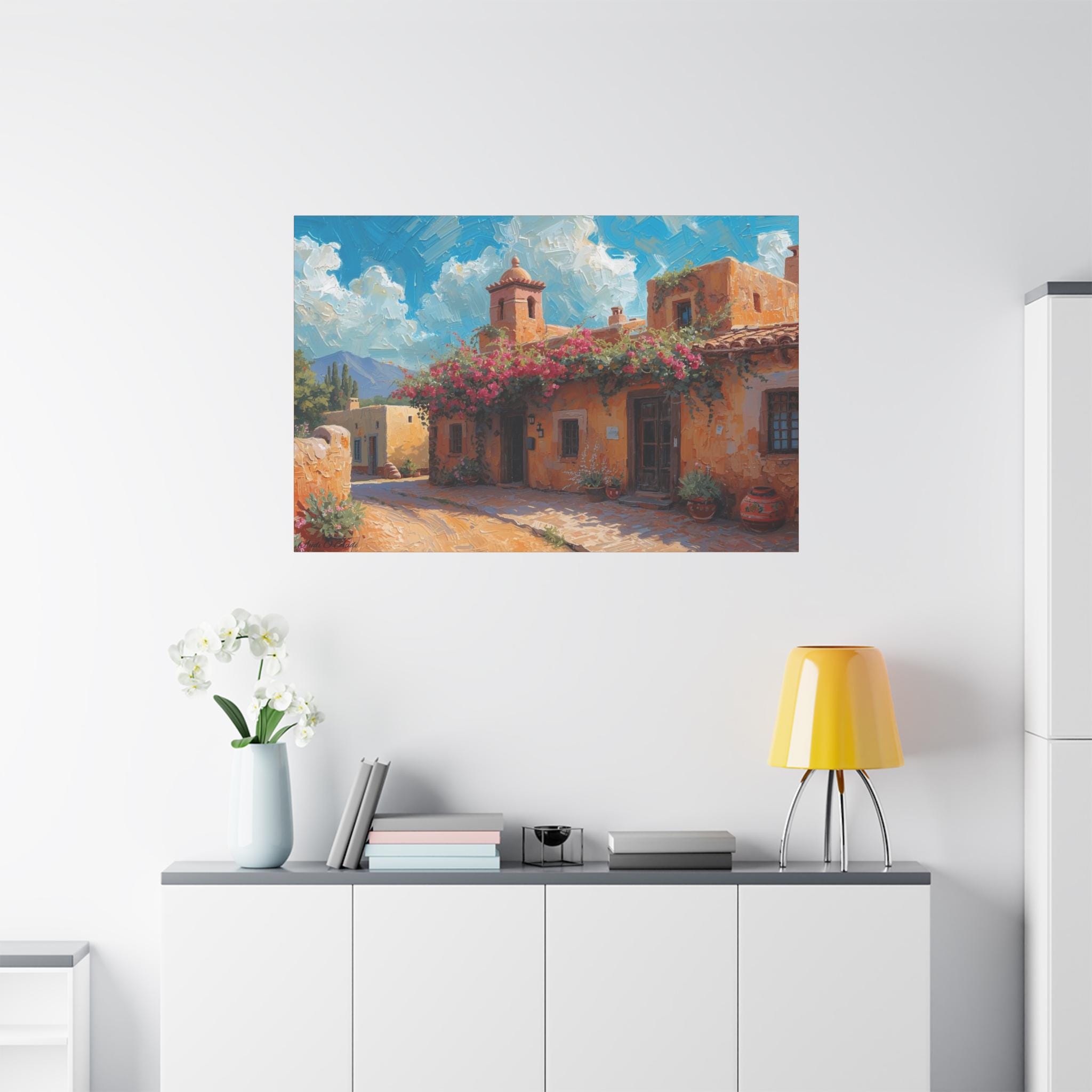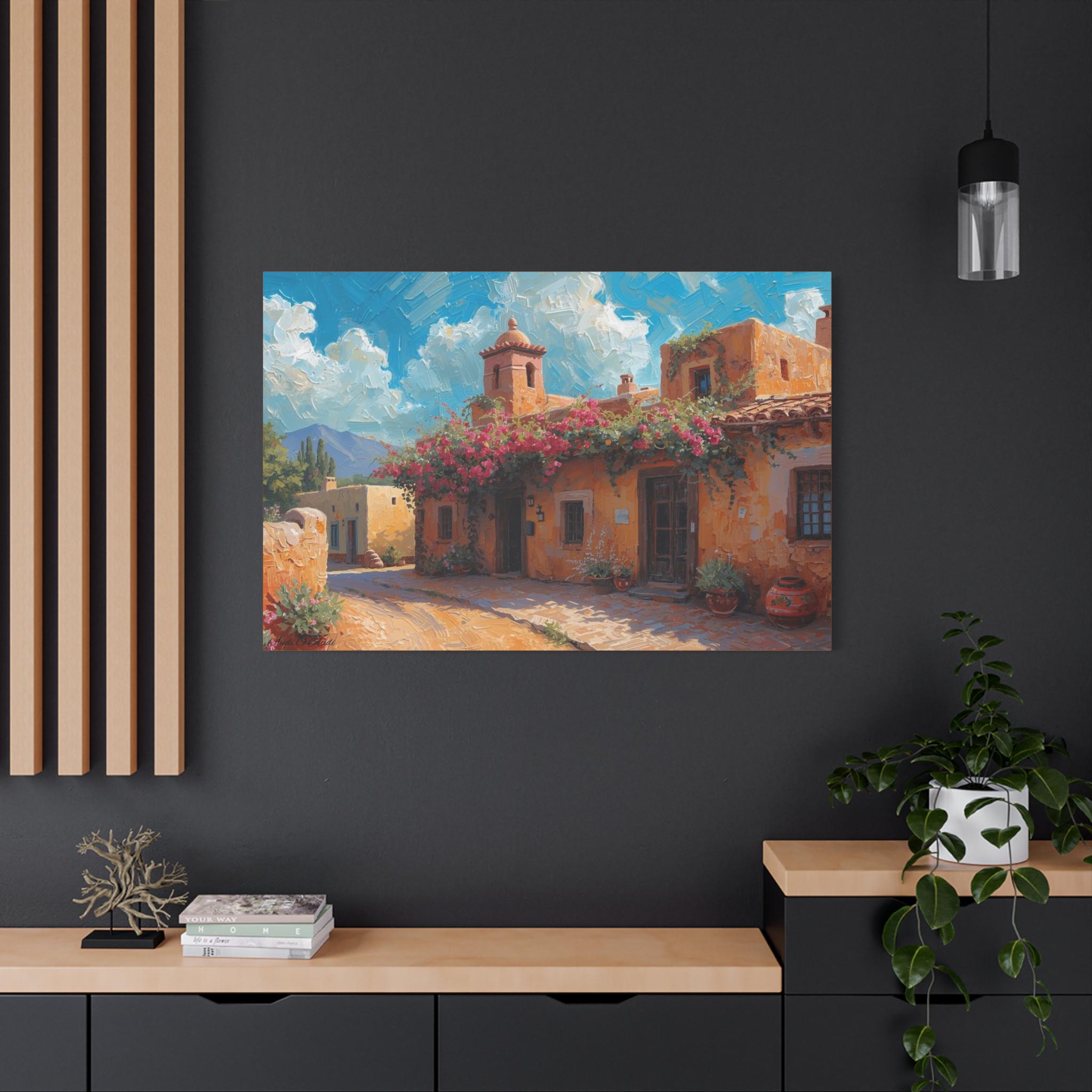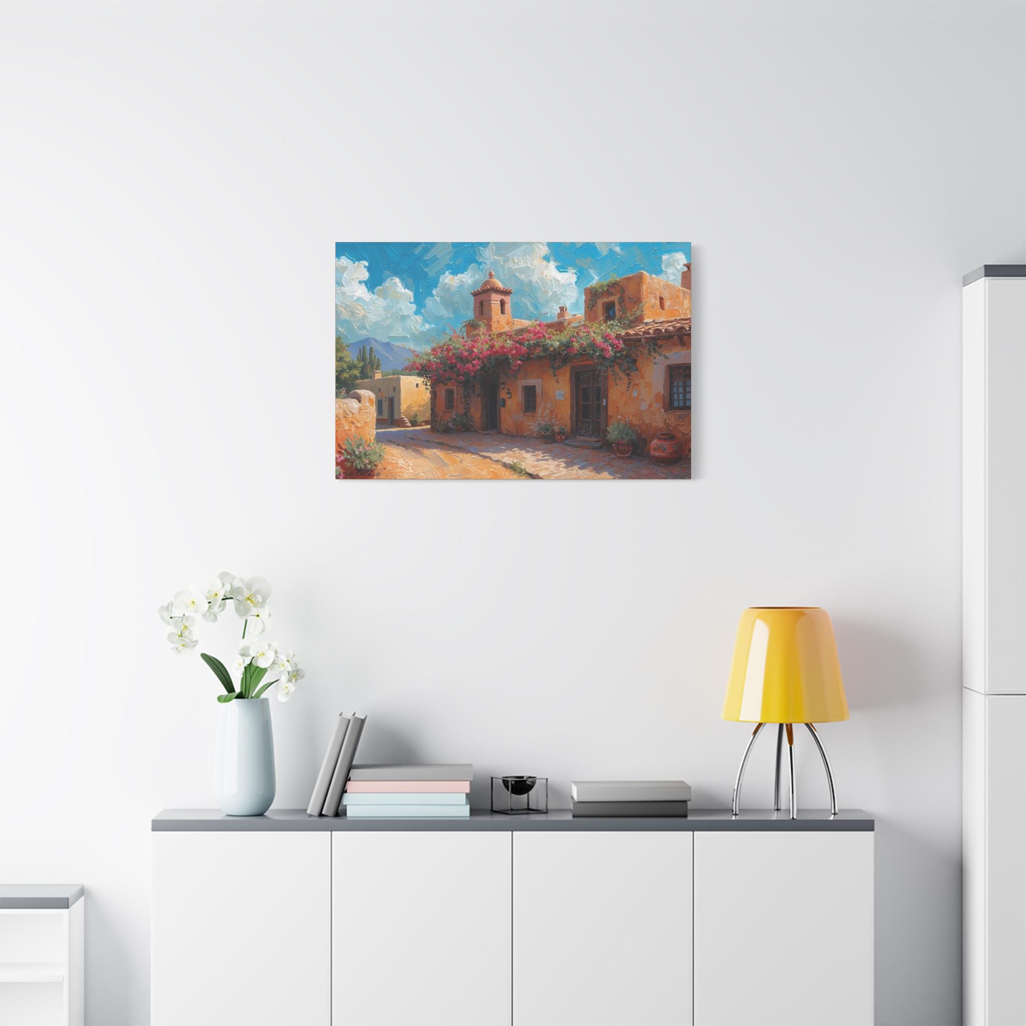 Sierra Beyond the Pueblo, Canvas Wall Art, Coastal Home Decor, Mediterranean Landscape, Living Room Accent, Gift for Art Lovers