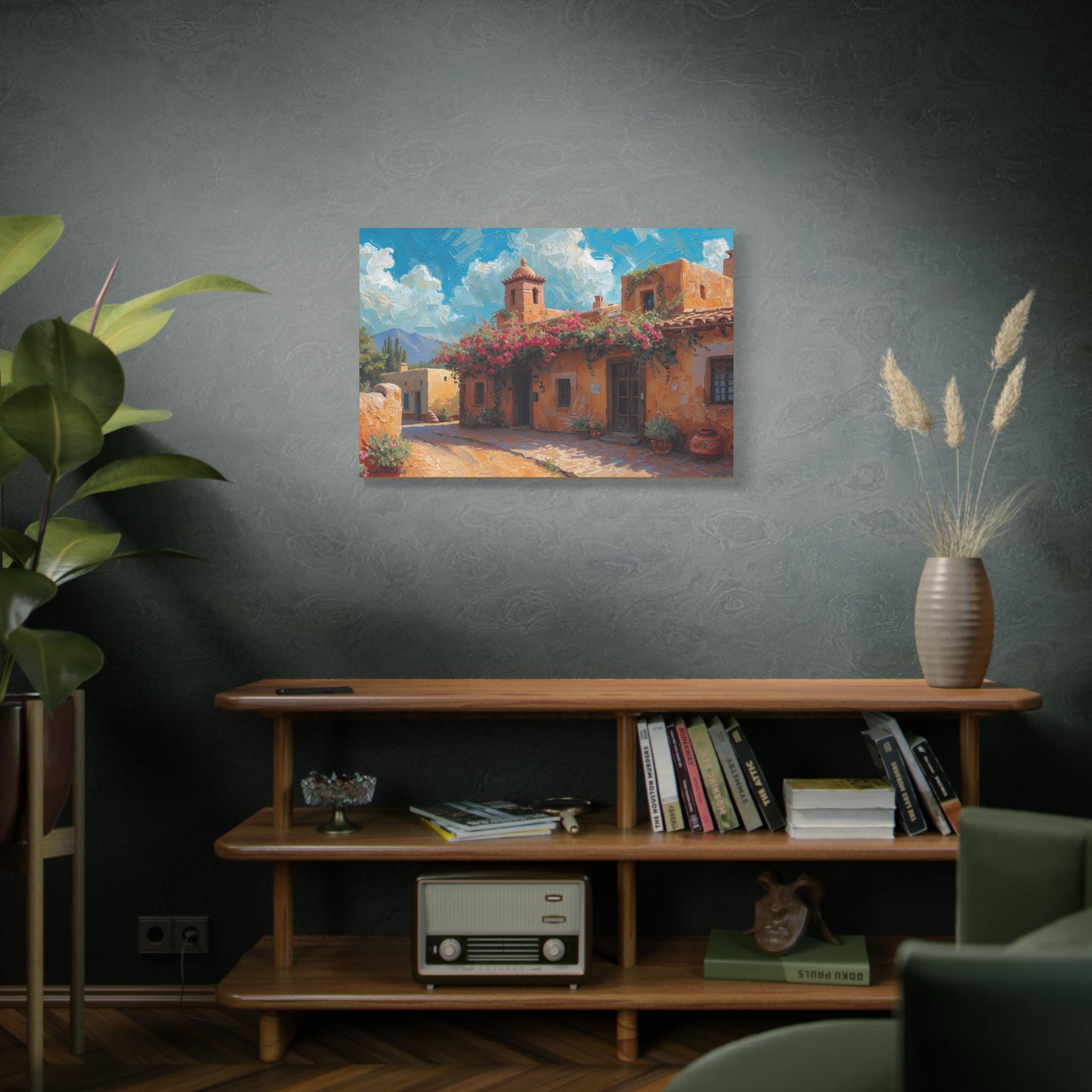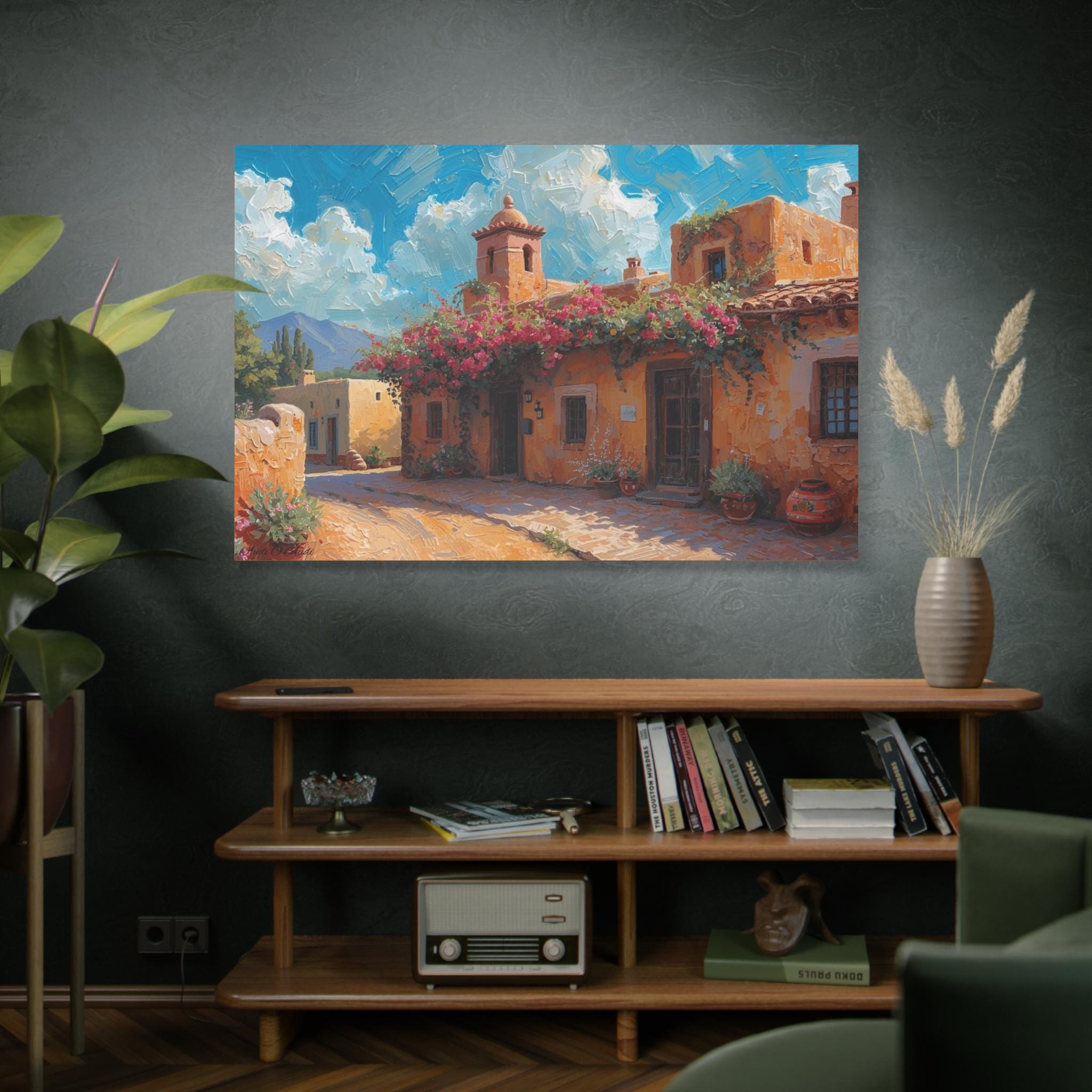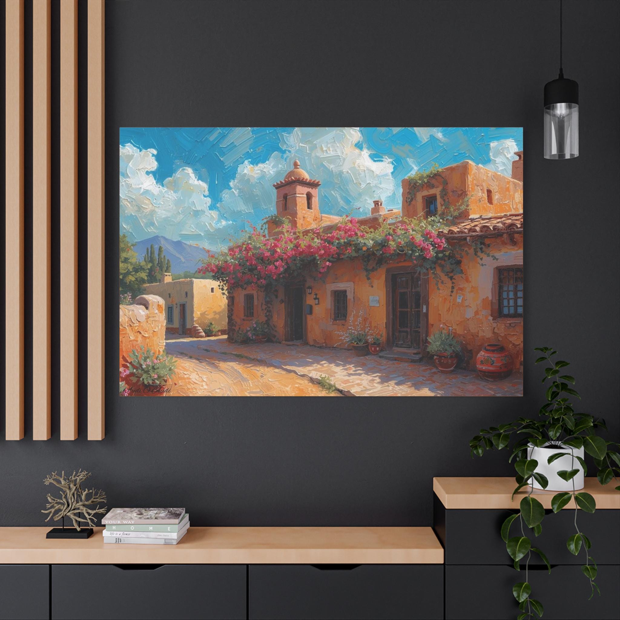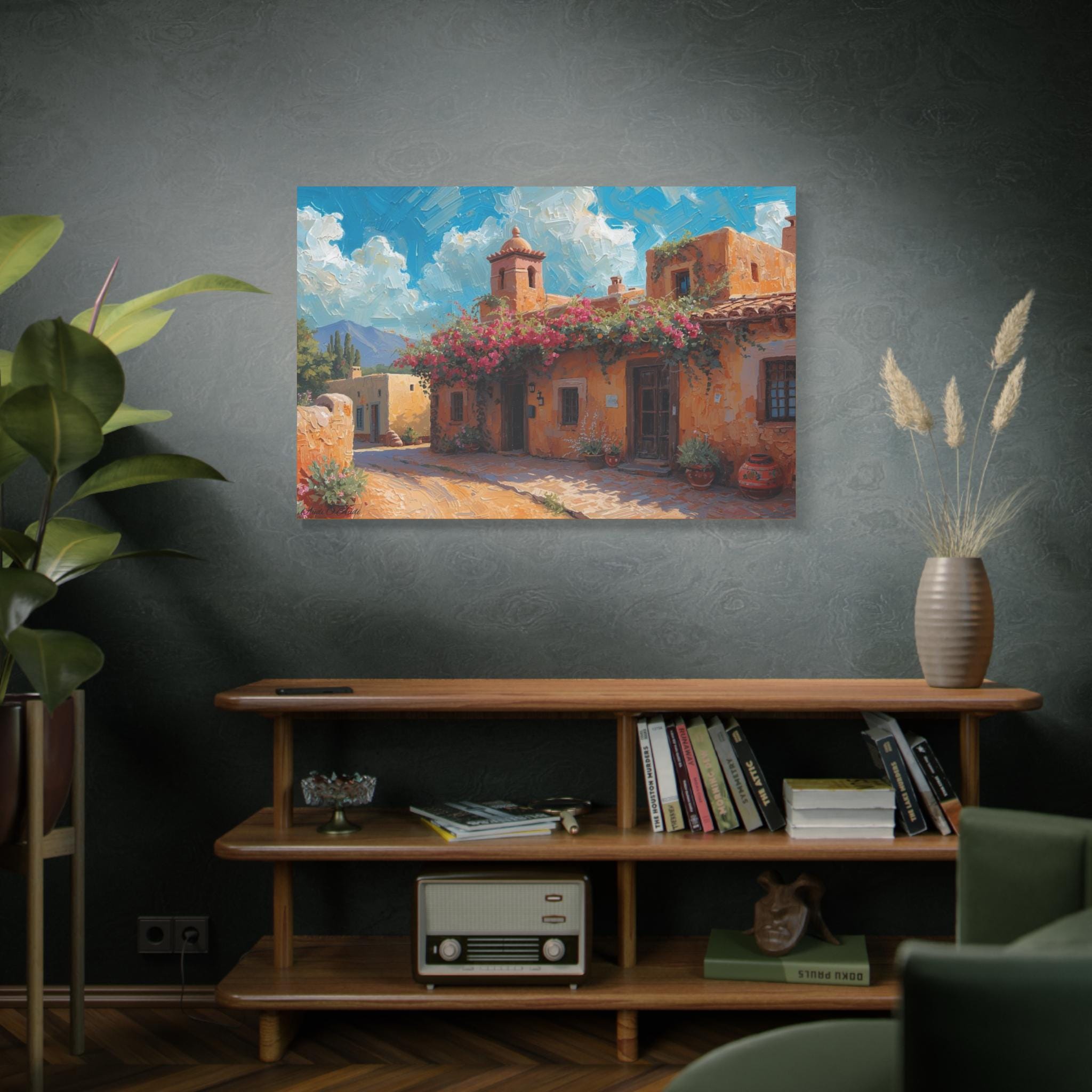 Sierra Beyond the Pueblo, Canvas Wall Art, Coastal Home Decor, Mediterranean Landscape, Living Room Accent, Gift for Art Lovers