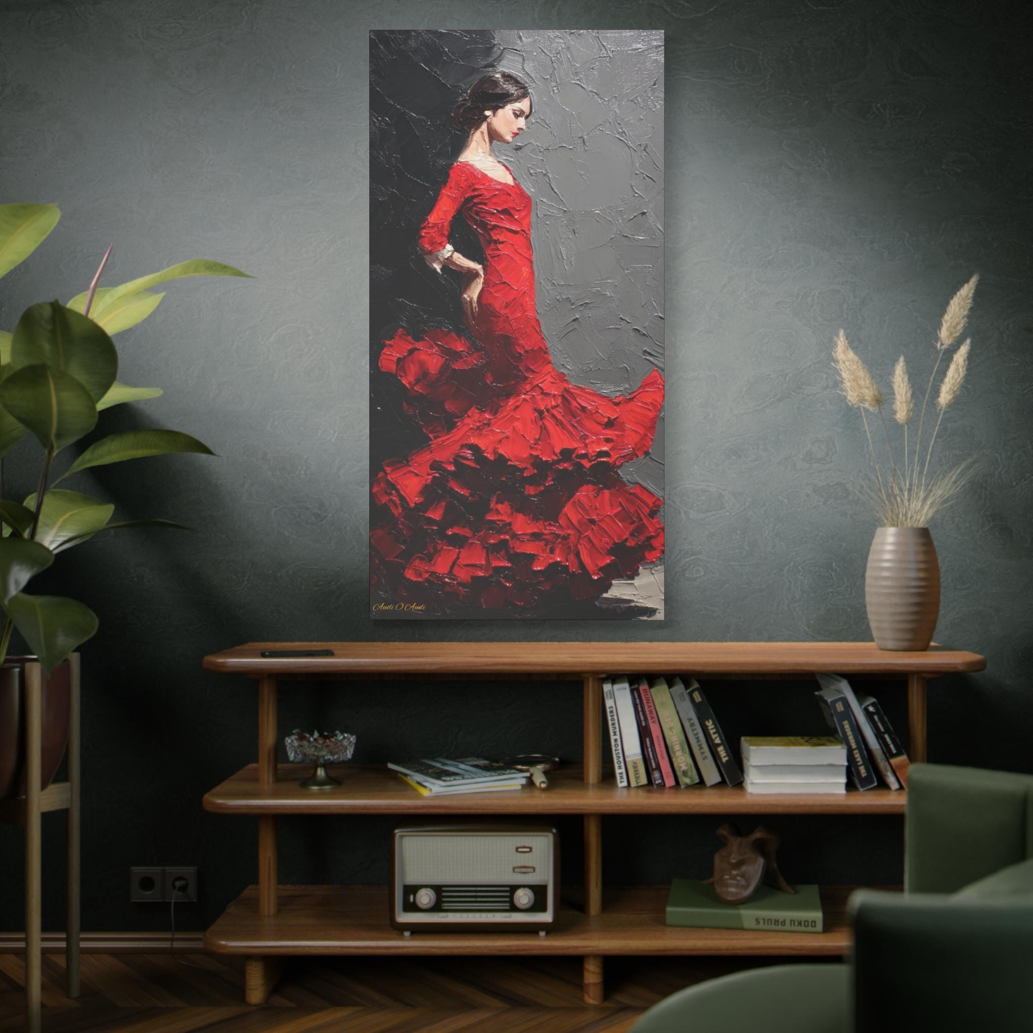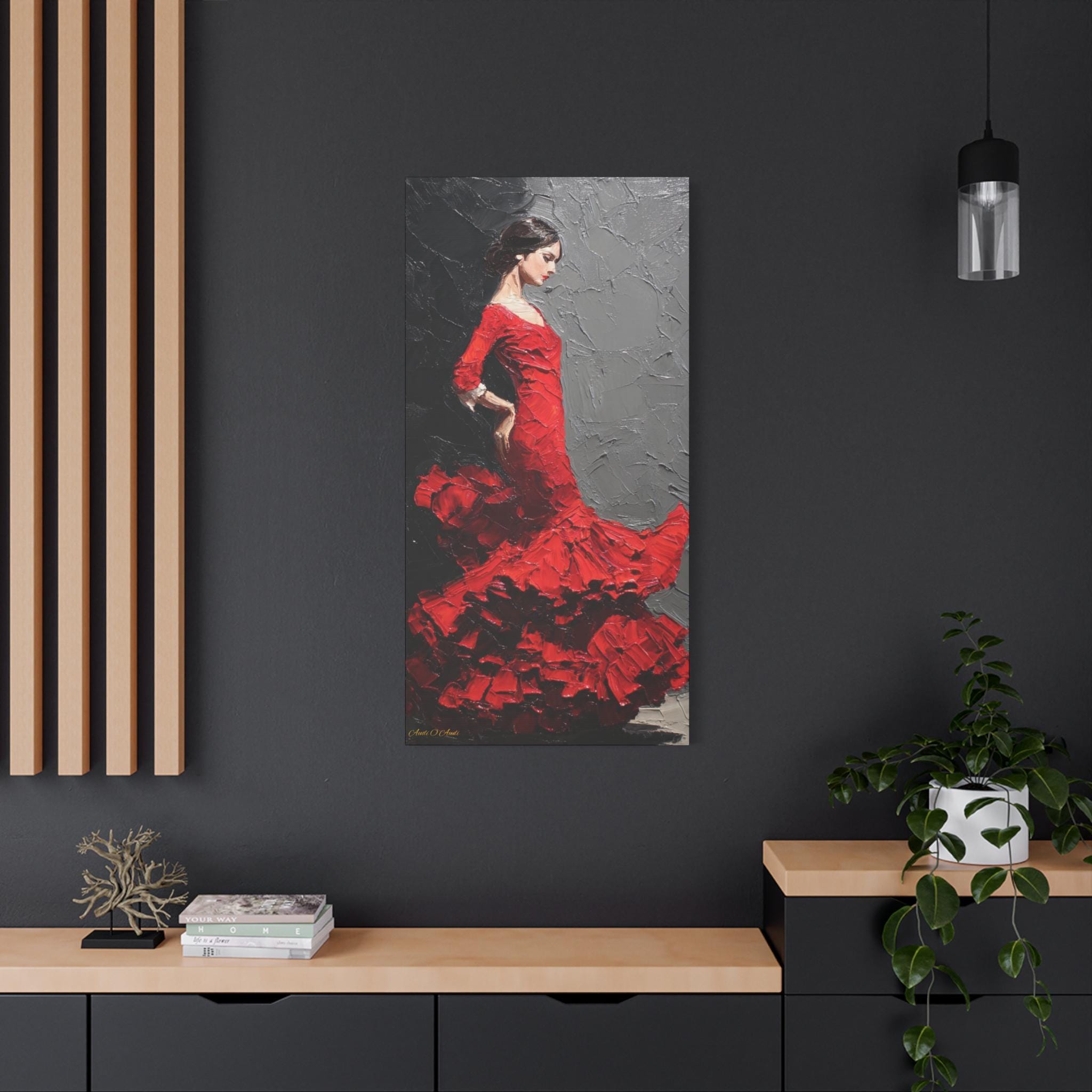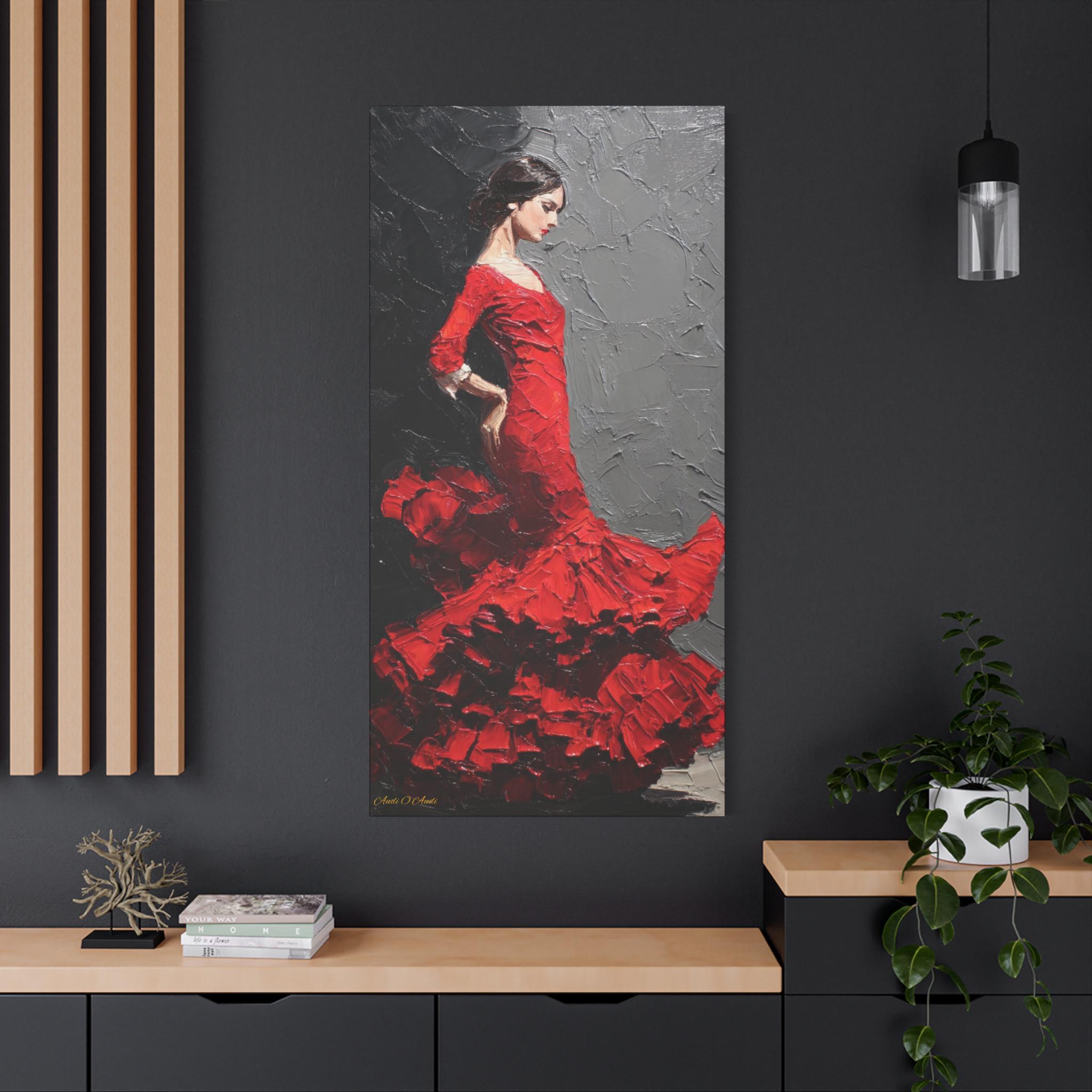 Lady in Red Dress Canvas Wall Art, Flamenco Art, Home Decor, Gift for Dancers, Spanish Dance Decor, Vibrant Art for Living Room