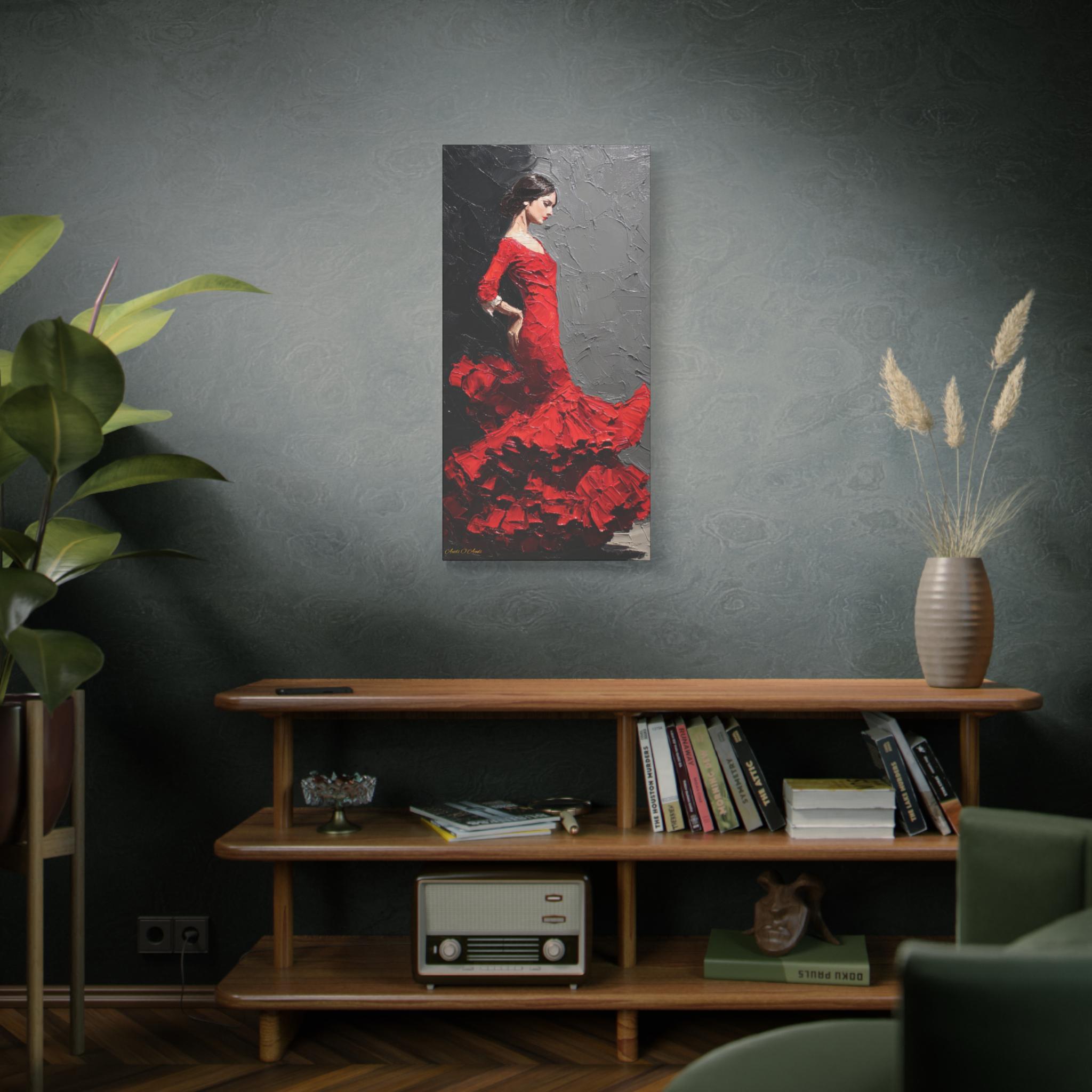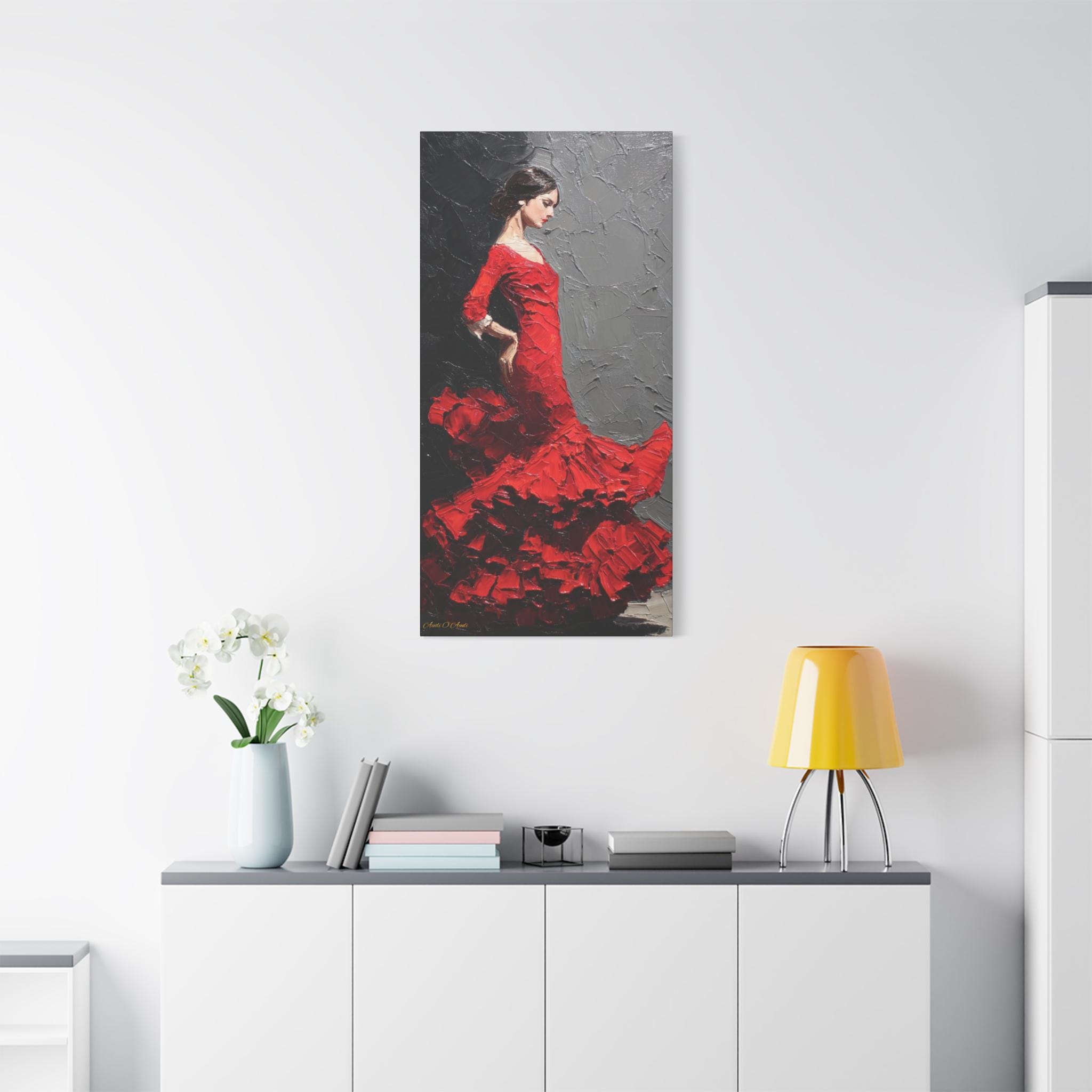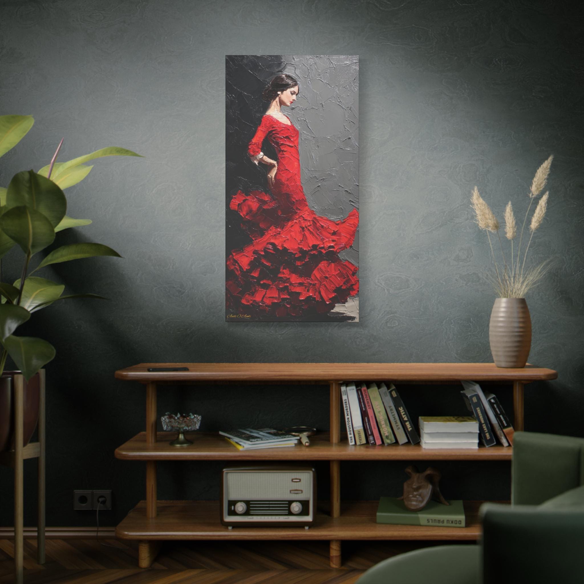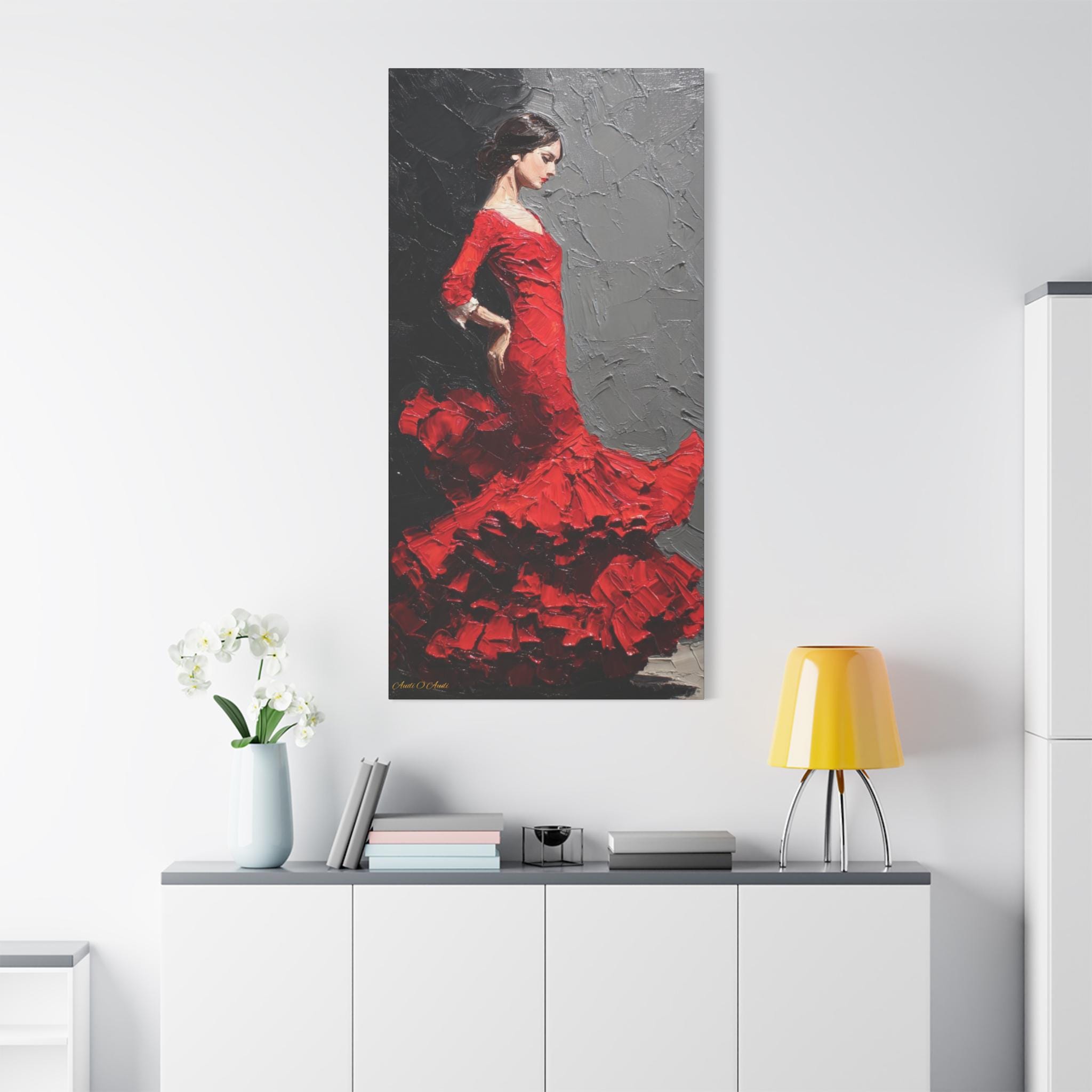 Lady in Red Dress Canvas Wall Art, Flamenco Art, Home Decor, Gift for Dancers, Spanish Dance Decor, Vibrant Art for Living Room