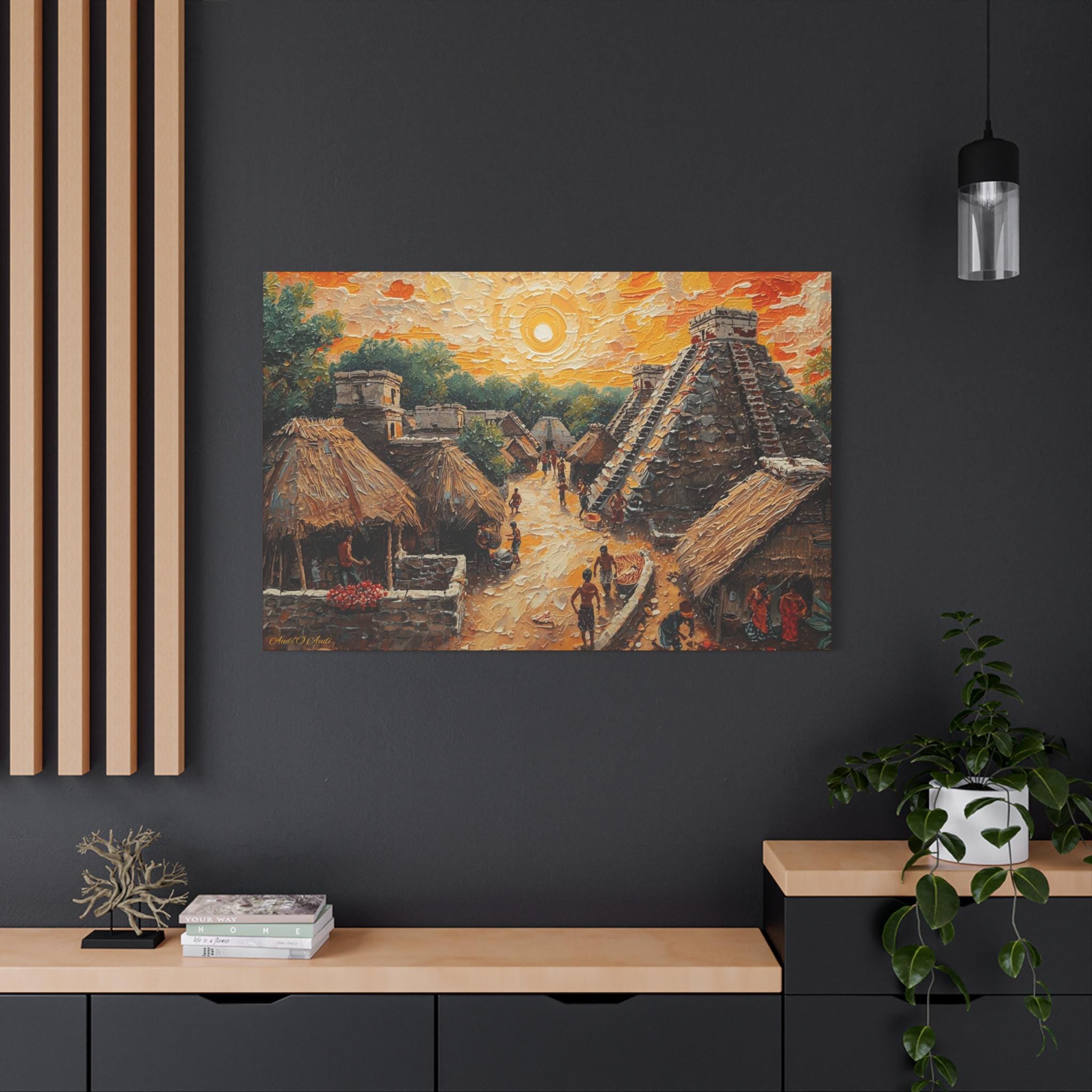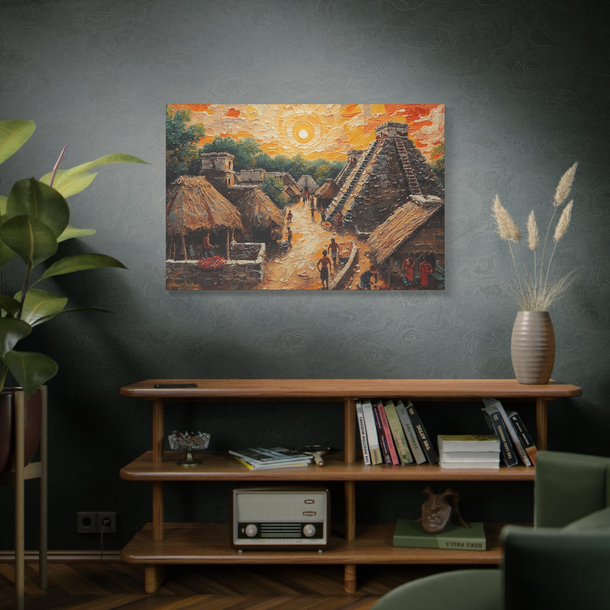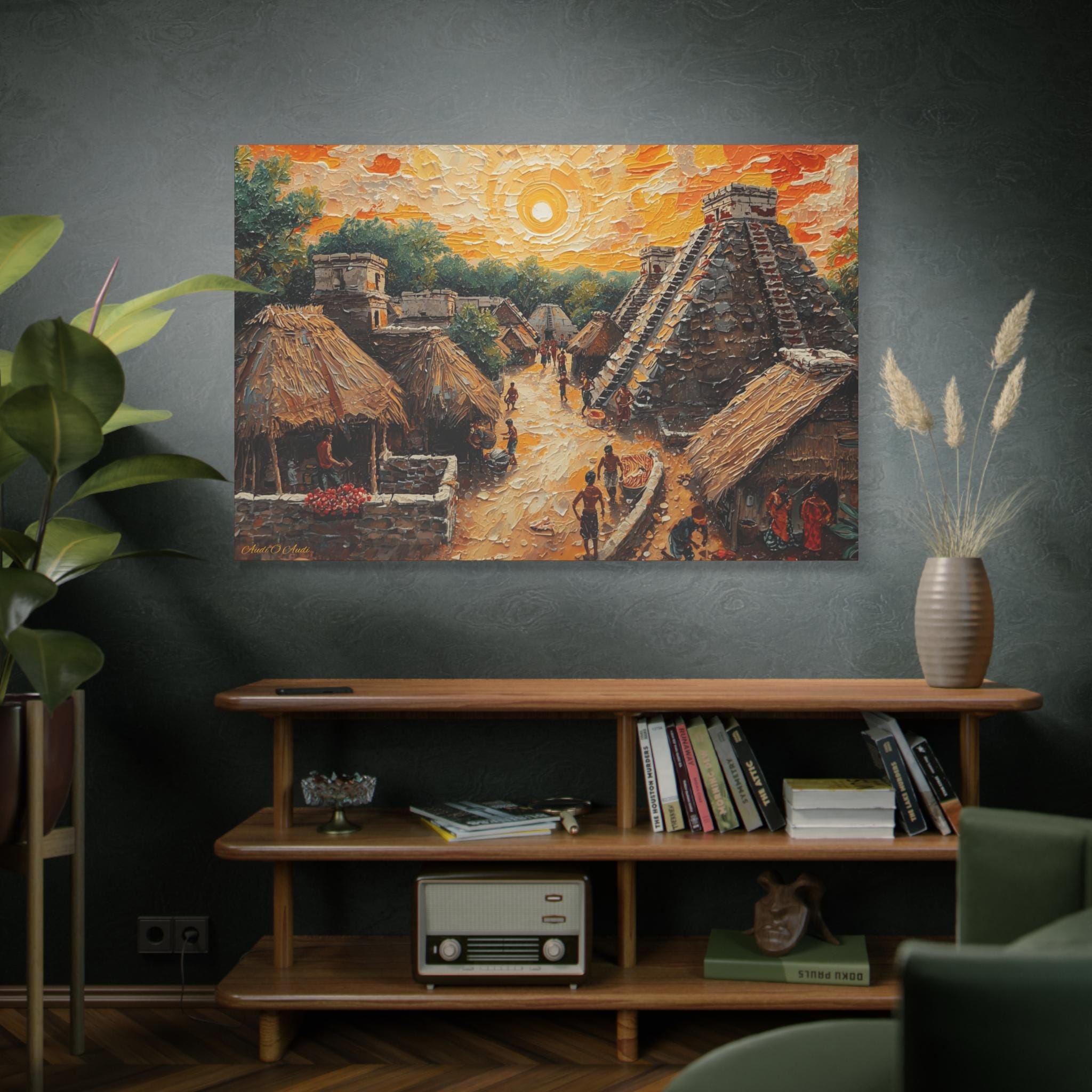 Sun of the Sacred Steps, Village Sunset Canvas Art, Home Decor, Wall Art, Gift for Art Lovers, Boho Decor, Vibrant Landscape