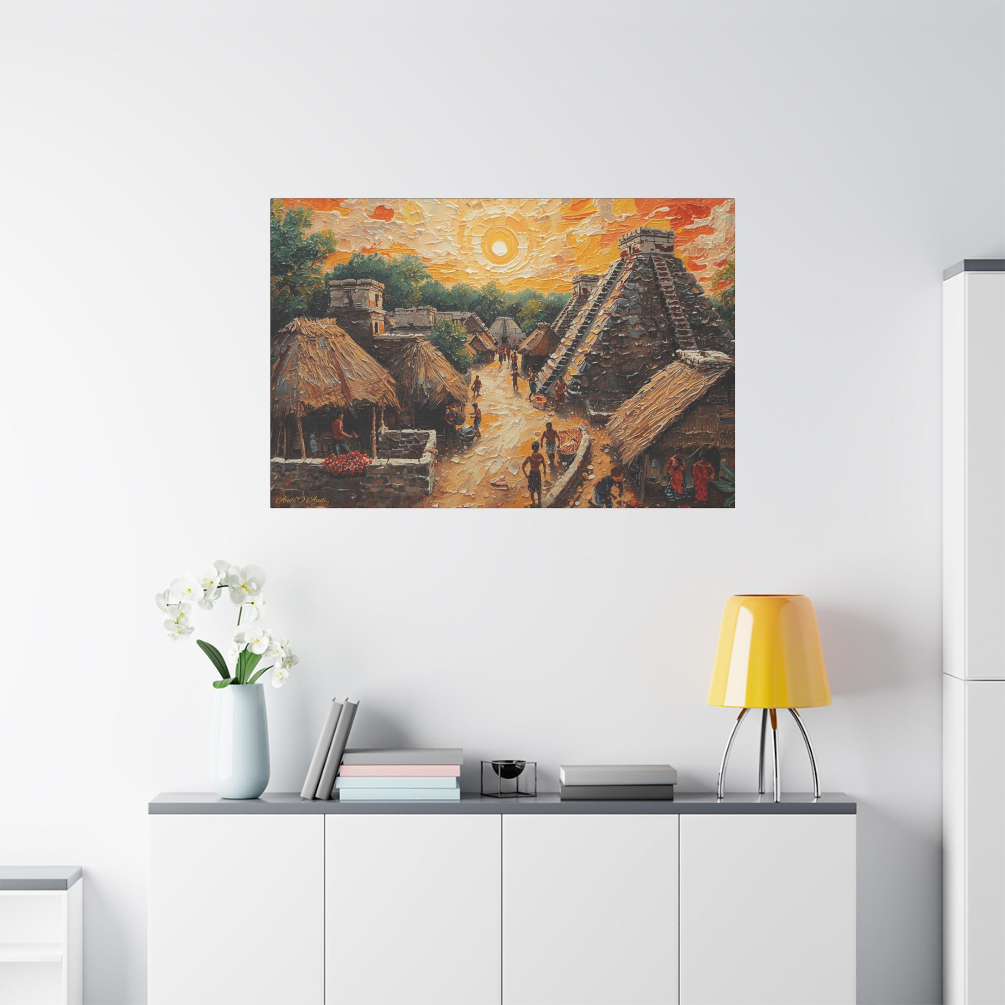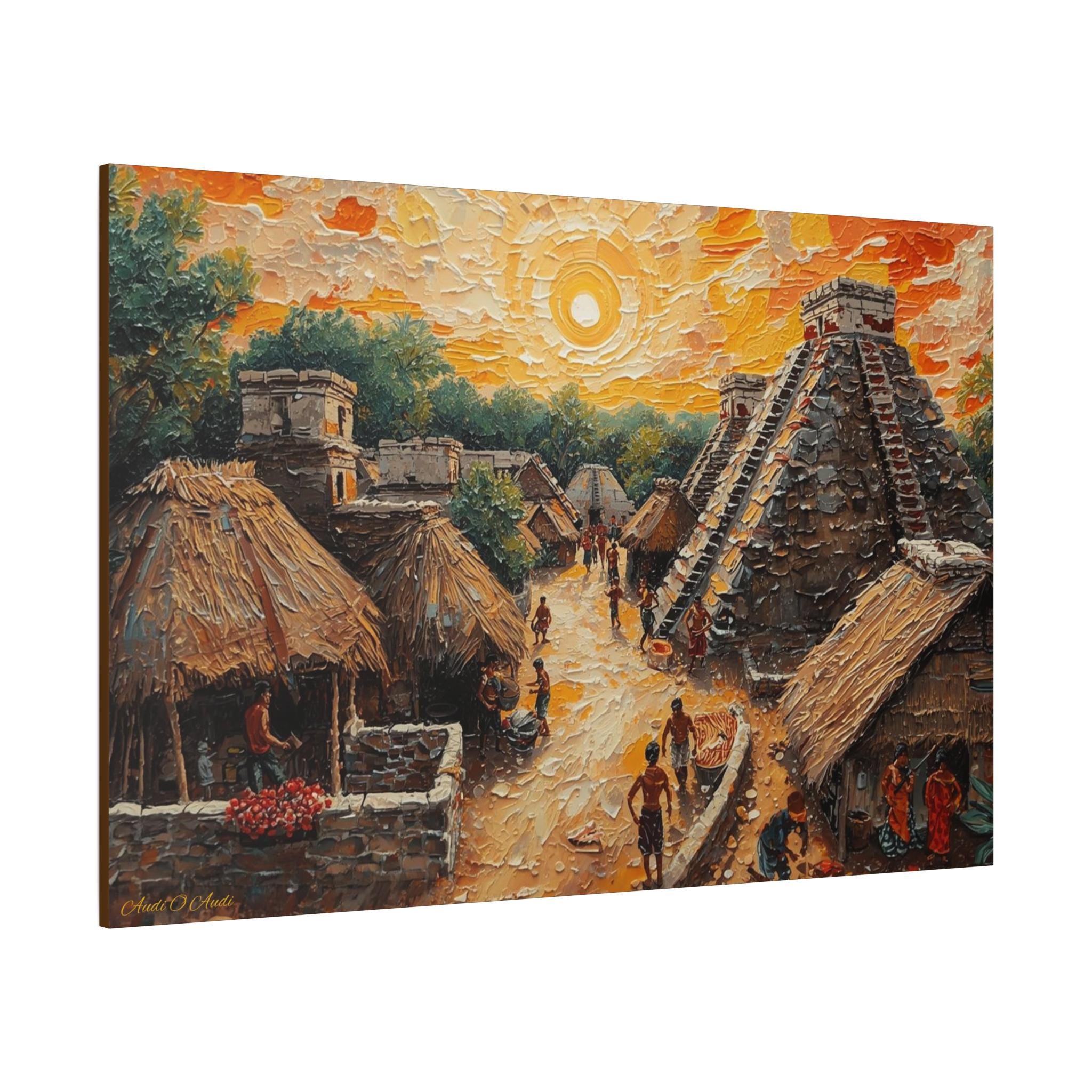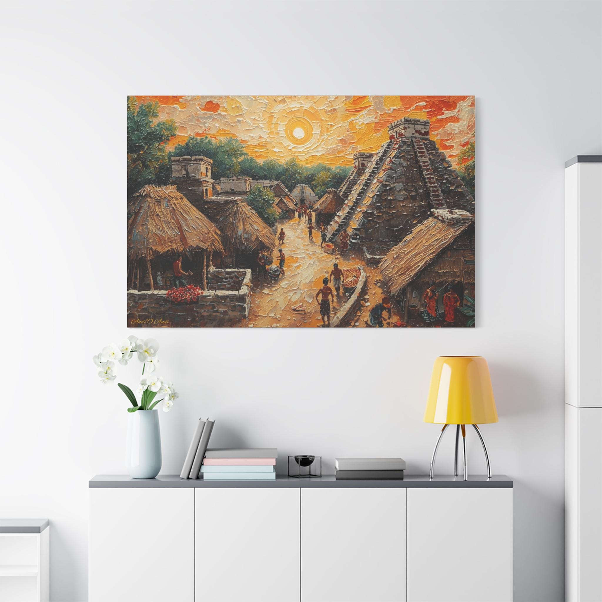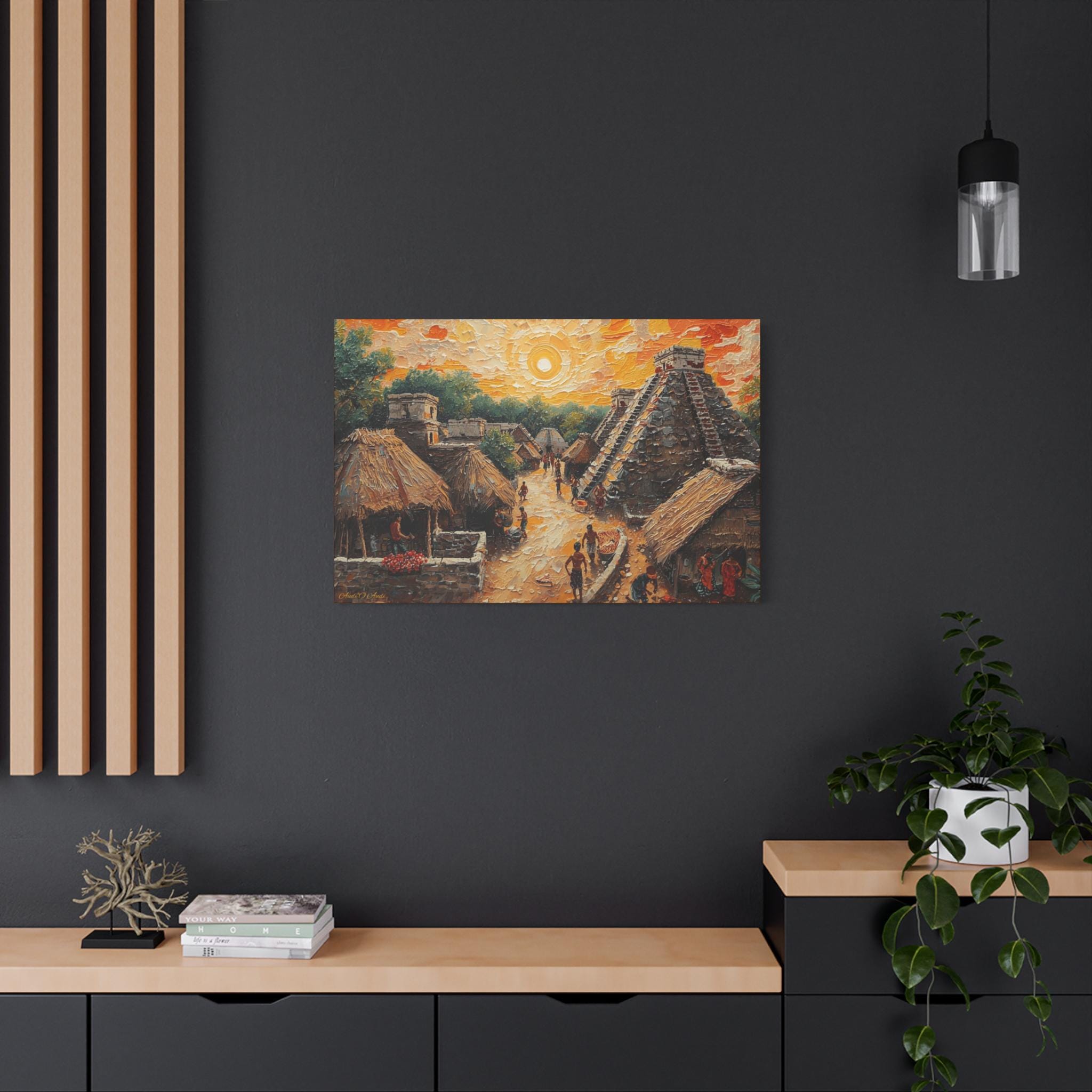 Sun of the Sacred Steps, Village Sunset Canvas Art, Home Decor, Wall Art, Gift for Art Lovers, Boho Decor, Vibrant Landscape