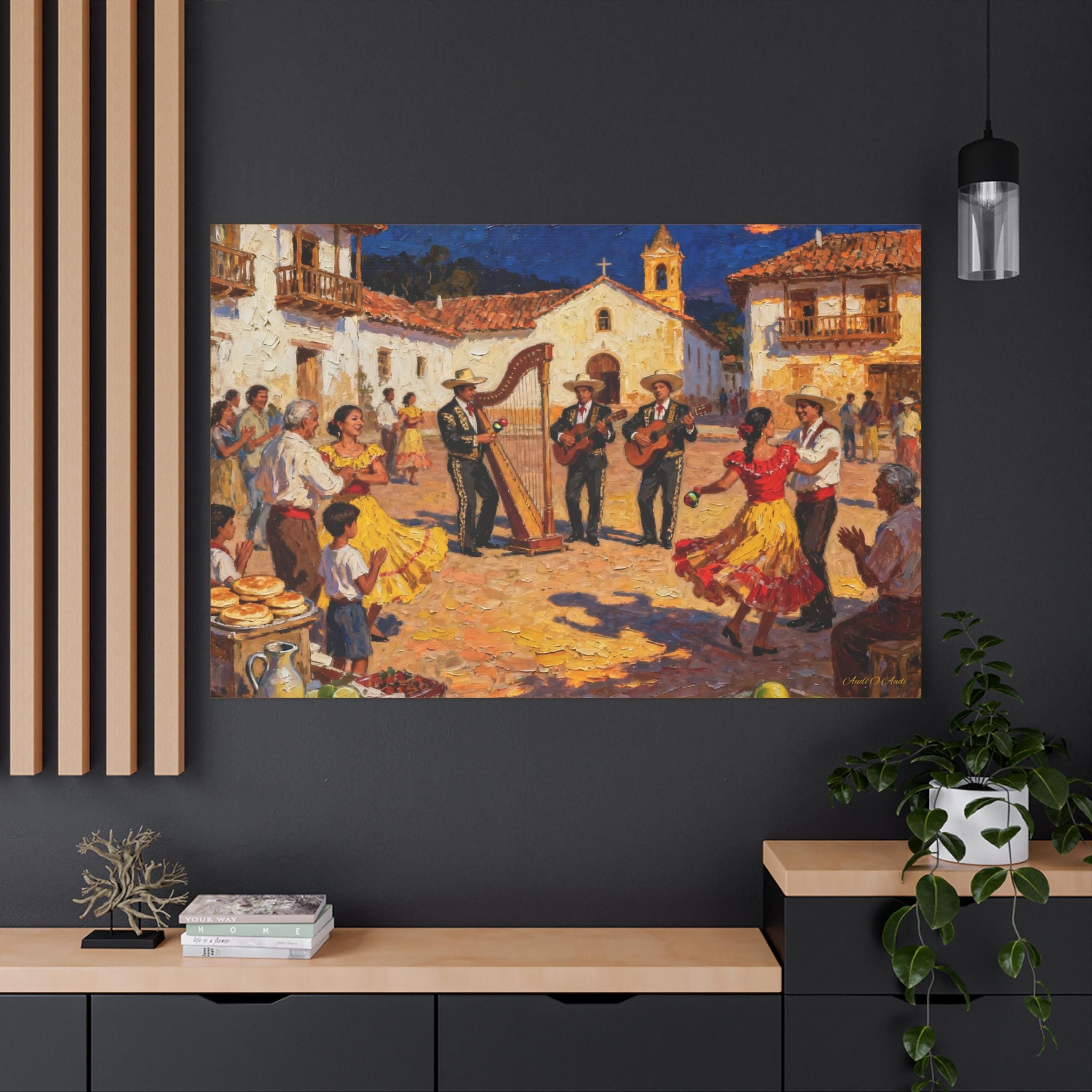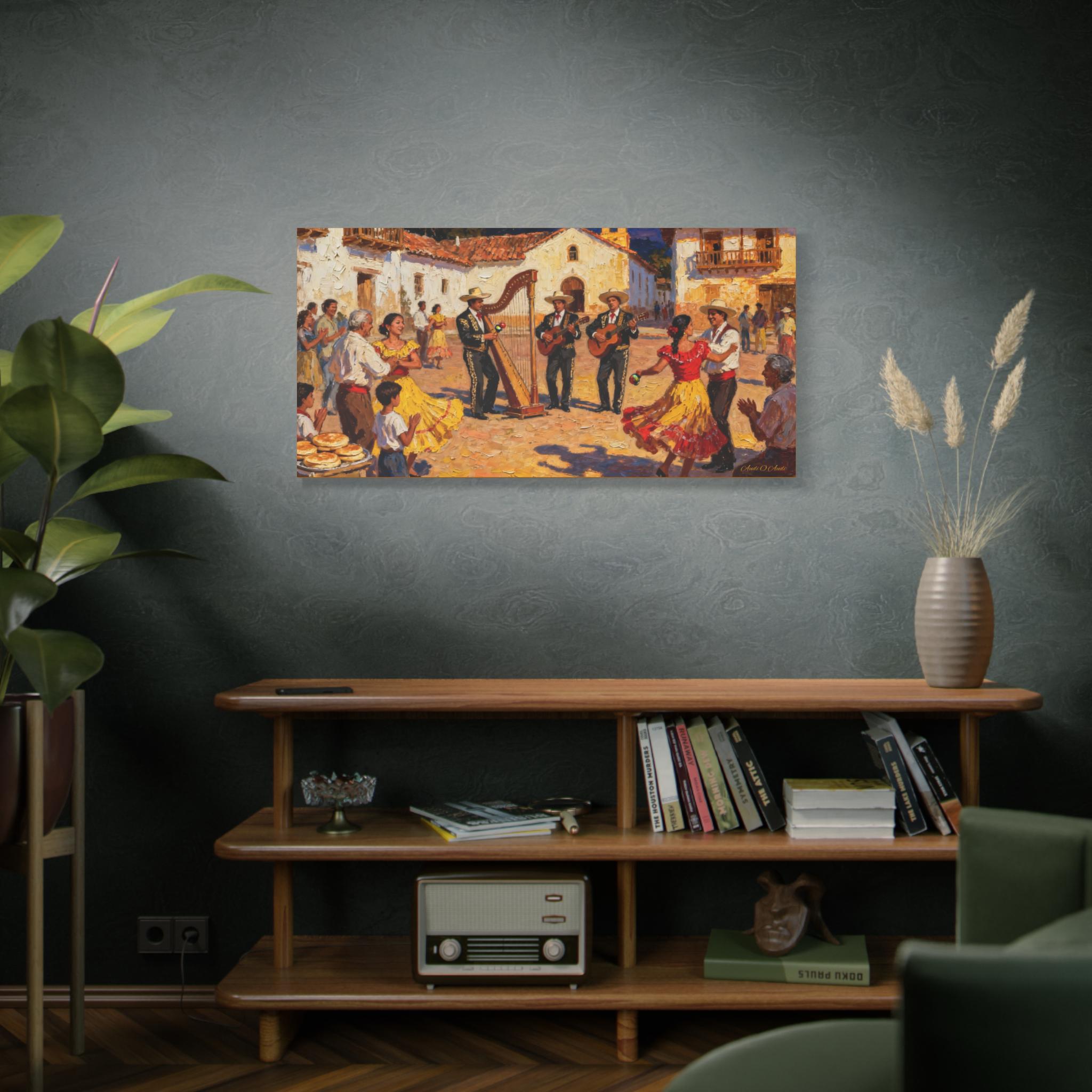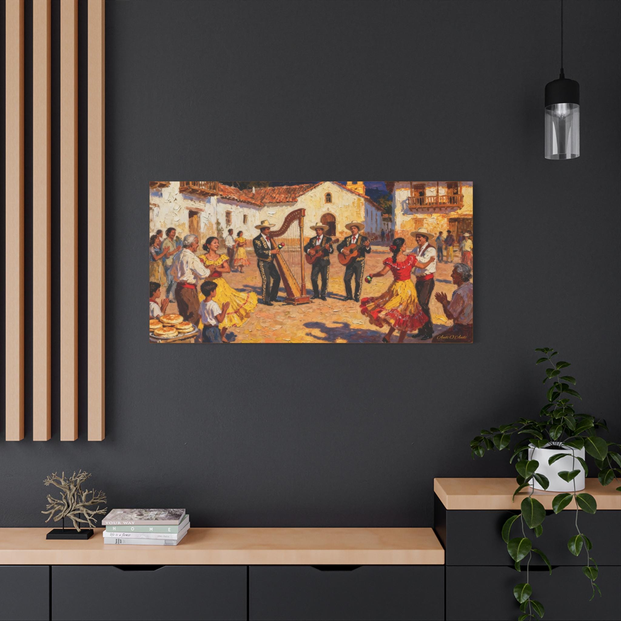 Venezuelan Musica Lianera Band, Vibrant Canvas Wall Art, Fiesta Decor, Colorful Home Artwork, Cultural Celebration Print.