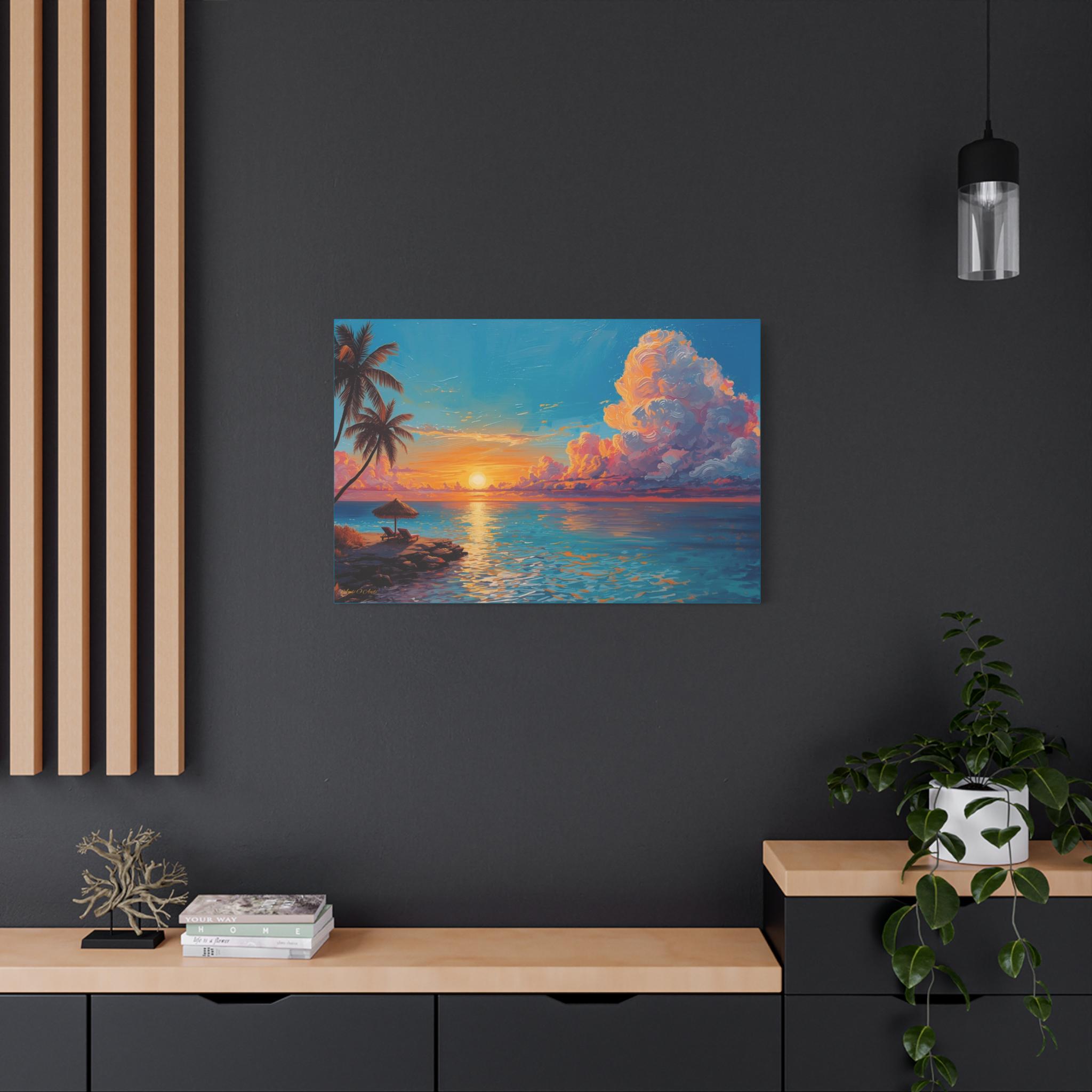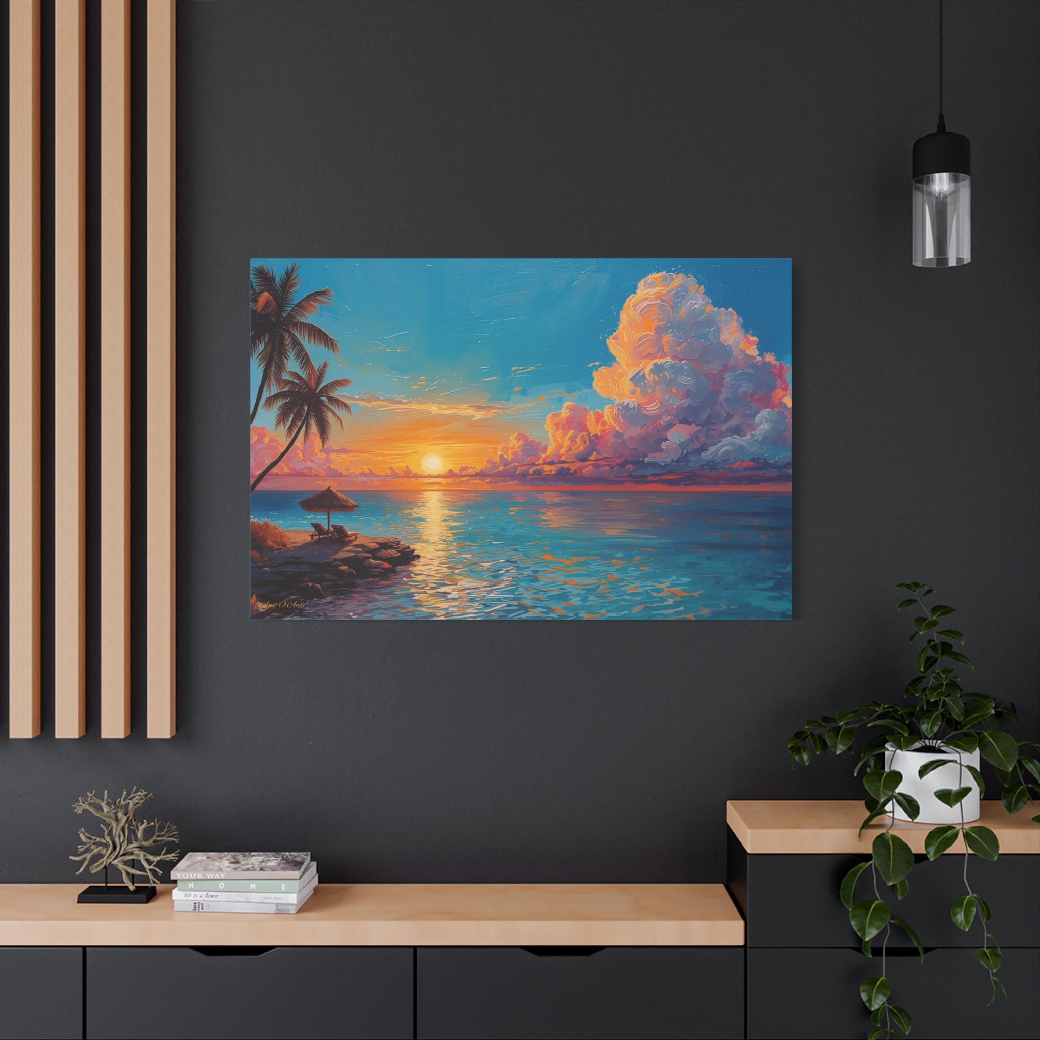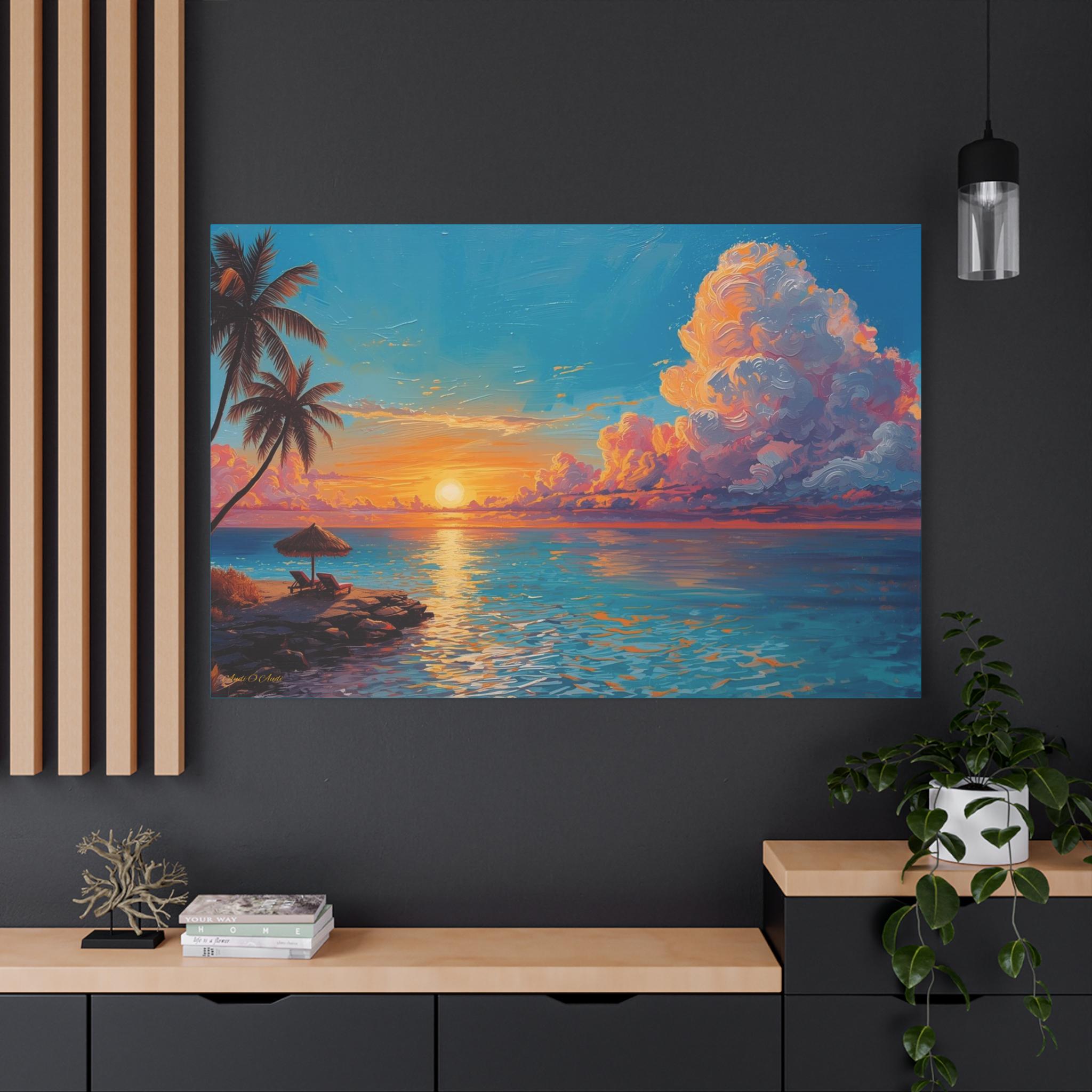 Tropical Sunset Canvas Print, Coastal Wall Art, Beach Decor, Gift for Nature Lovers, Home Office Artwork, Summer Vibes