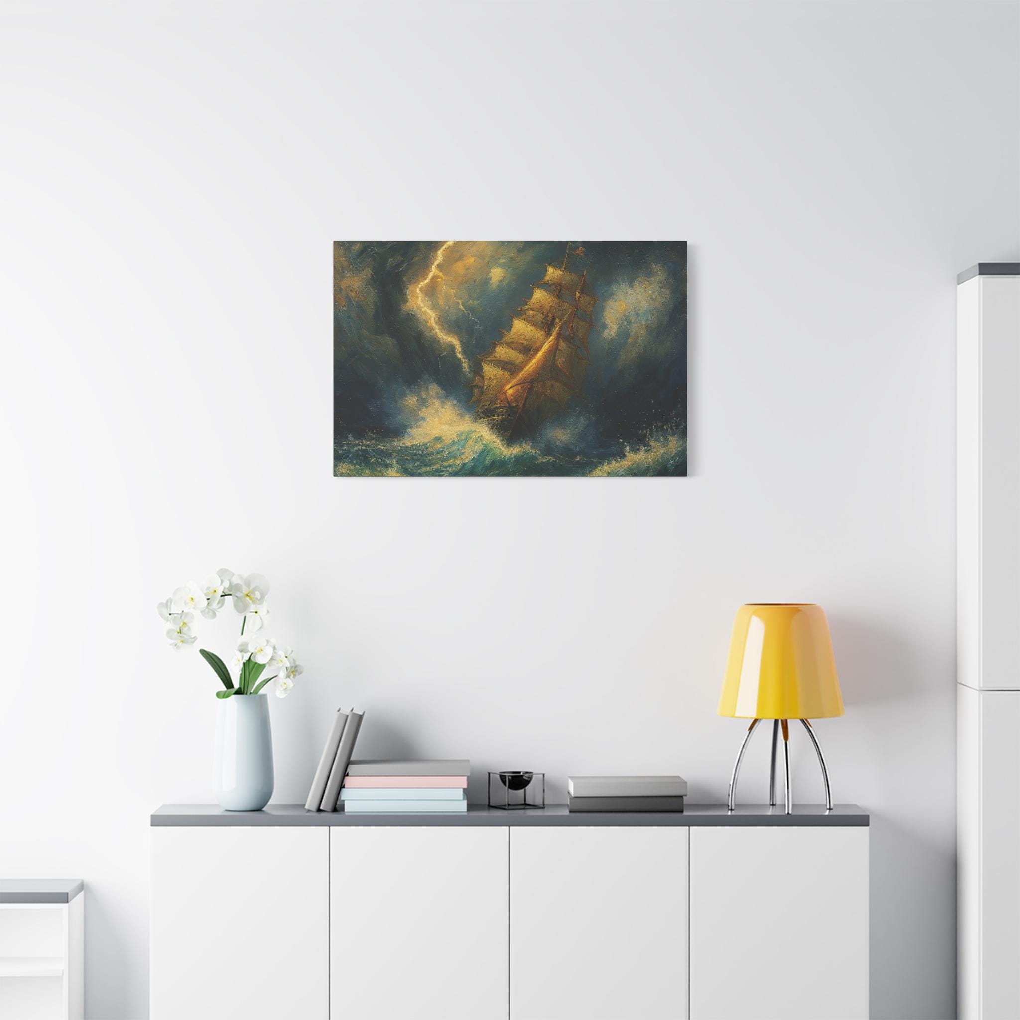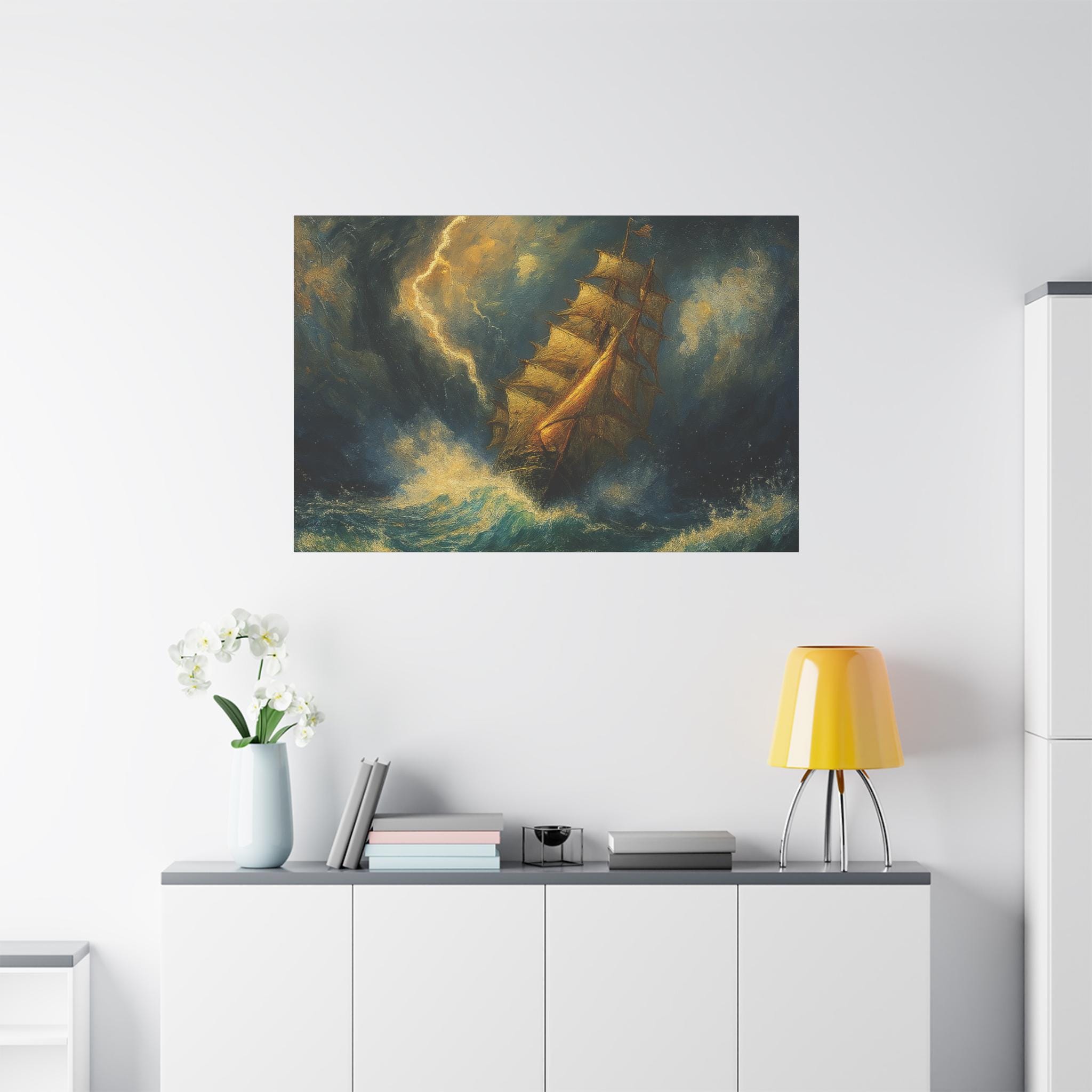 Transform your living space with this stunning matte canvas print, showcasing a dramatic seascape that evokes a sense of adventure and tranquility. Perfect for maritime enthusiasts or anyone looking to add a touch of drama to their decor, this canvas brings an atmospheric vibe that complements both modern and traditional interiors. It’s an ideal gift for housewarmings, birthdays, or even holidays like Christmas and Easter, making it a versatile choice for any occasion. Whether displayed in a cozy den, stylish office, or serene bedroom, this piece will inspire a sense of exploration and wonder.