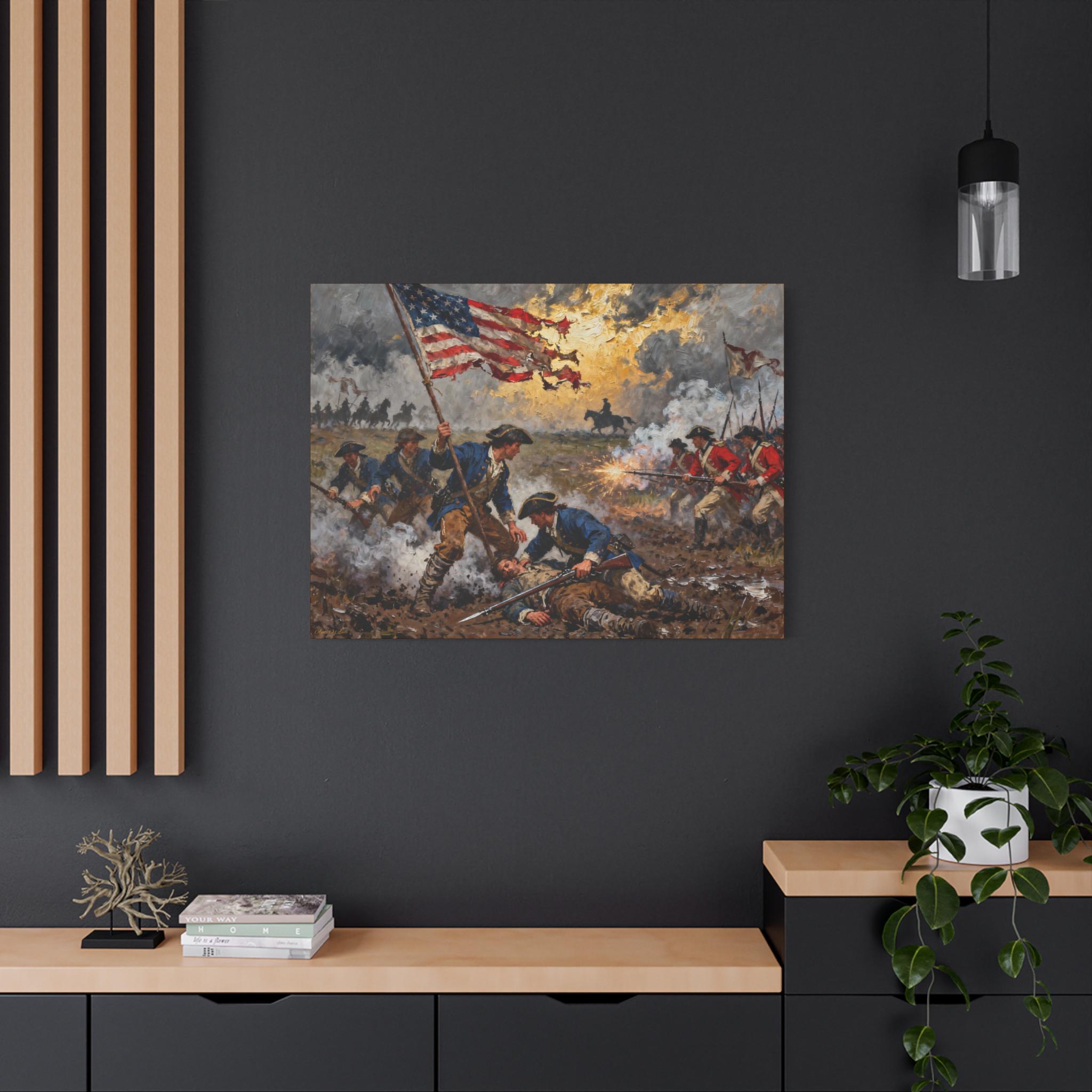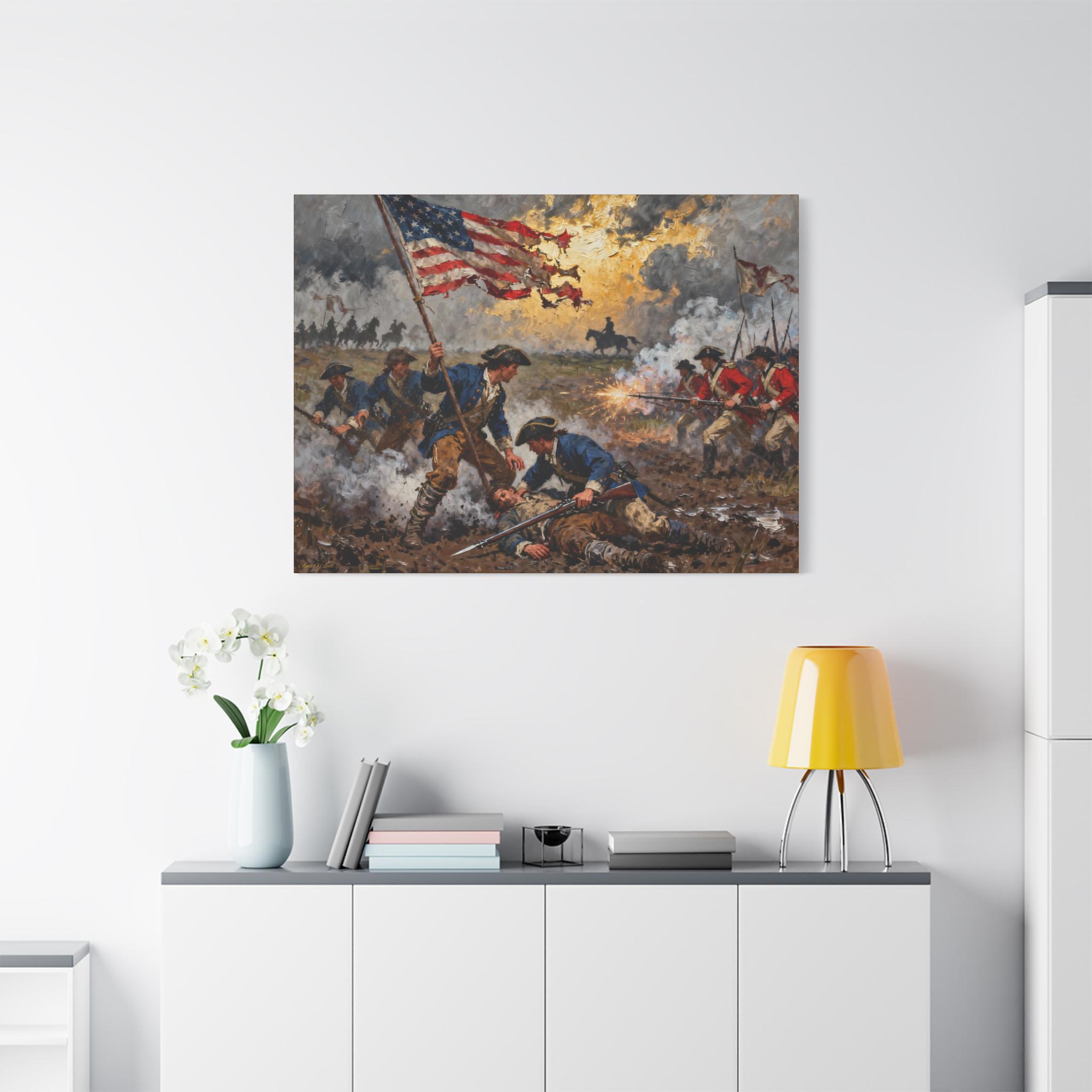 Holding the Line, Patriotic Canvas Art print , Civil War Battle Scene, Historical Wall Decor, Military Decor, American Flag Art.