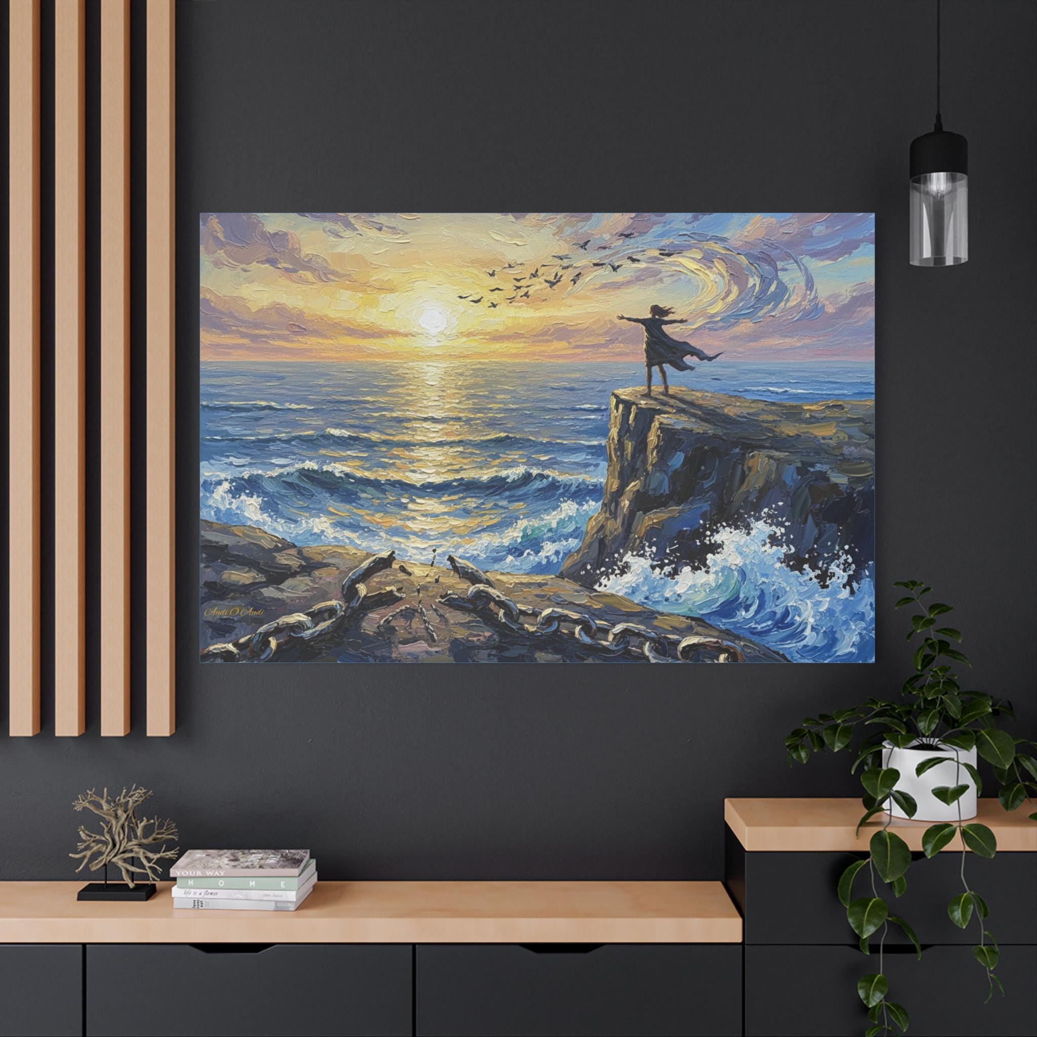 Transform your living space with this stunning Matte Canvas. Featuring breathtaking imagery of a sunset over the waves, this canvas adds an uplifting and serene vibe to any room. Perfect for creating a calming atmosphere, it’s ideal for bedrooms, living spaces, or offices. This piece not only enhances your decor, but also inspires feelings of freedom and adventure. Designed for art lovers and home decor enthusiasts alike, it makes a thoughtful gift for birthdays, housewarmings, or even holidays like Christmas and Thanksgiving, bringing a touch of nature indoors.