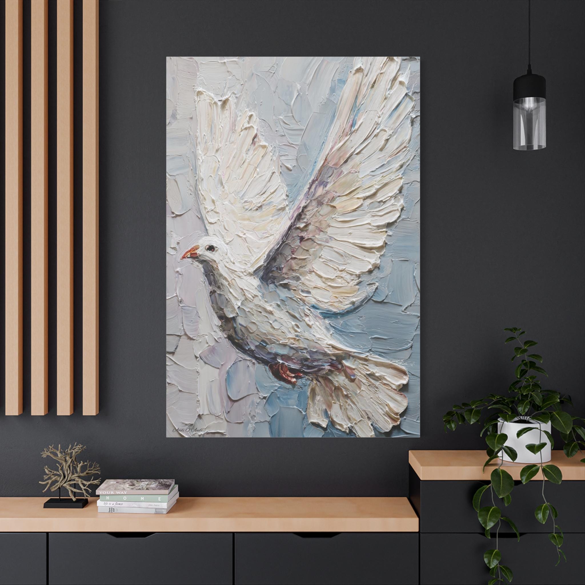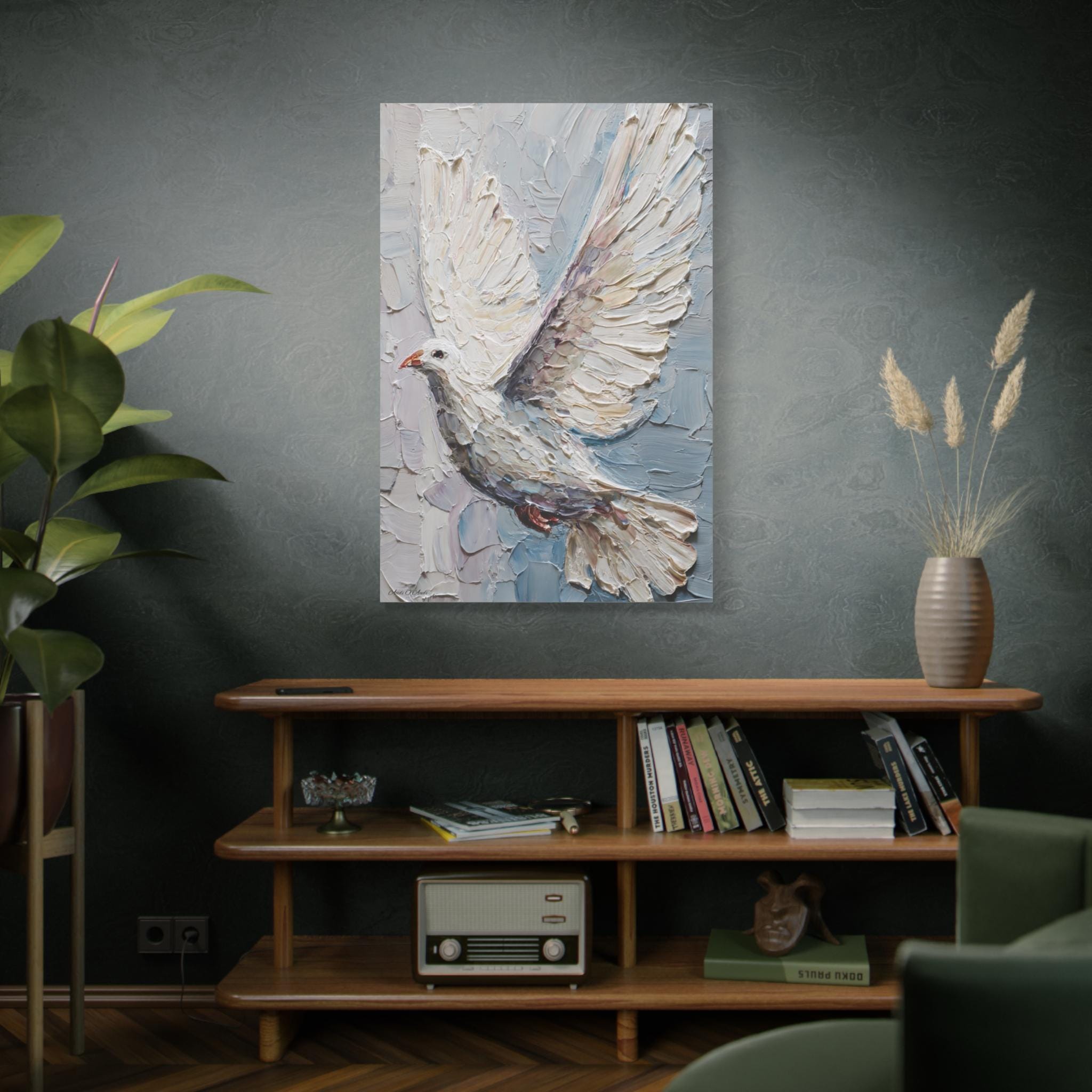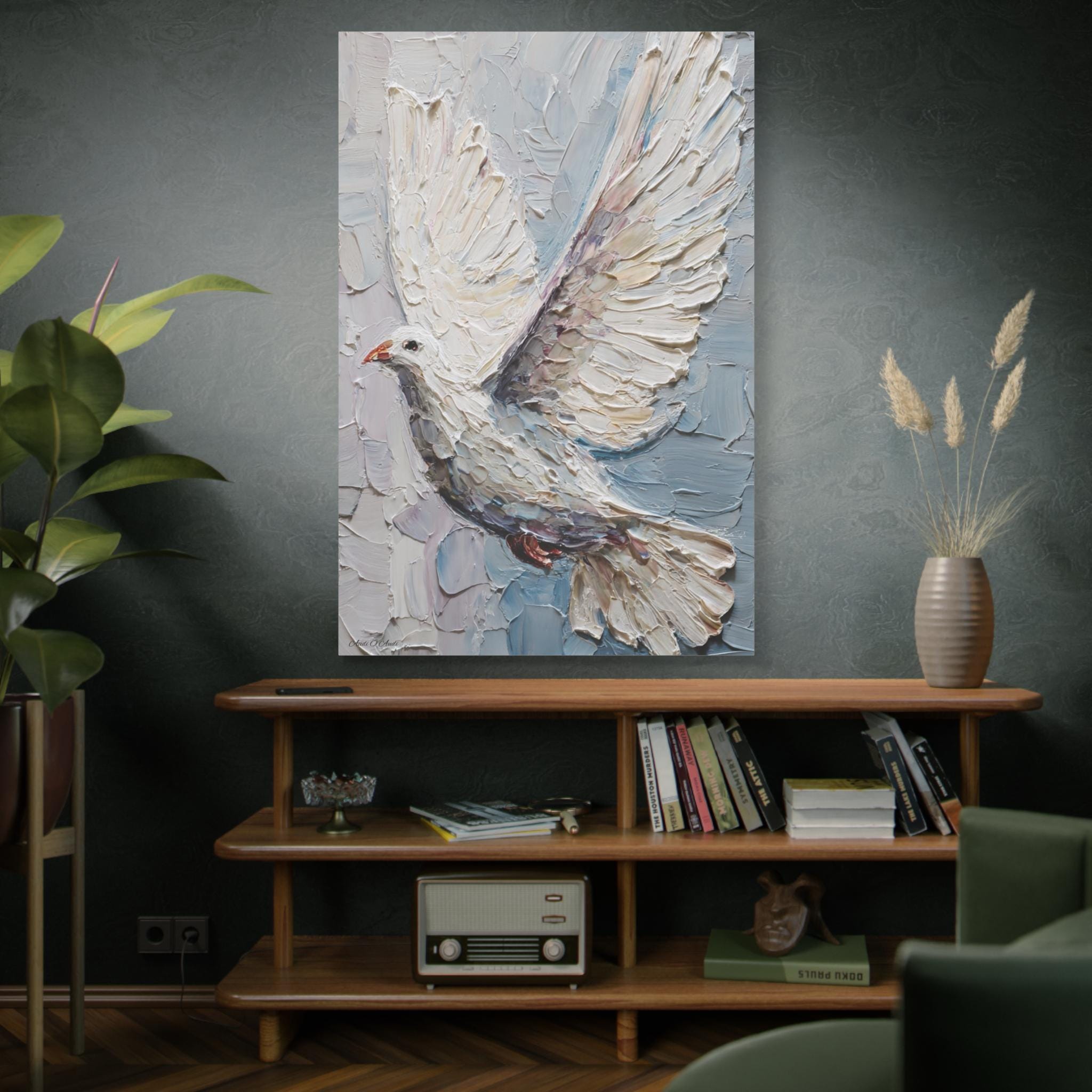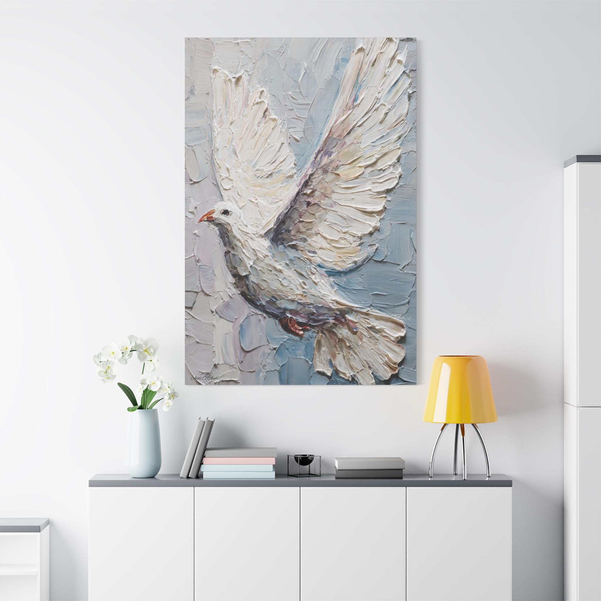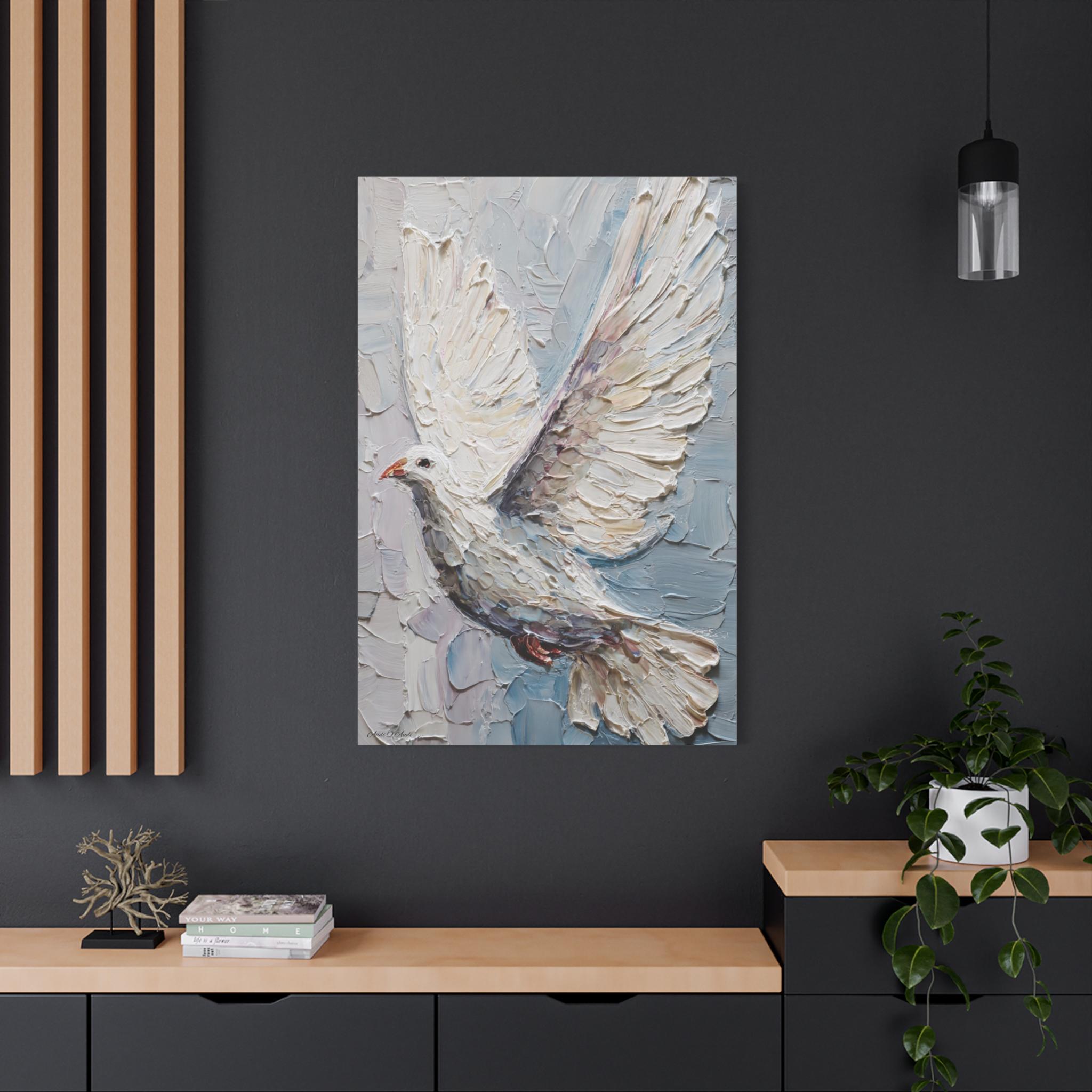Wings of Peace, White Dove Canvas Art Print, Inspirational Wall Decor, Modern Home Decor, Bird Artwork, Serene Living Space