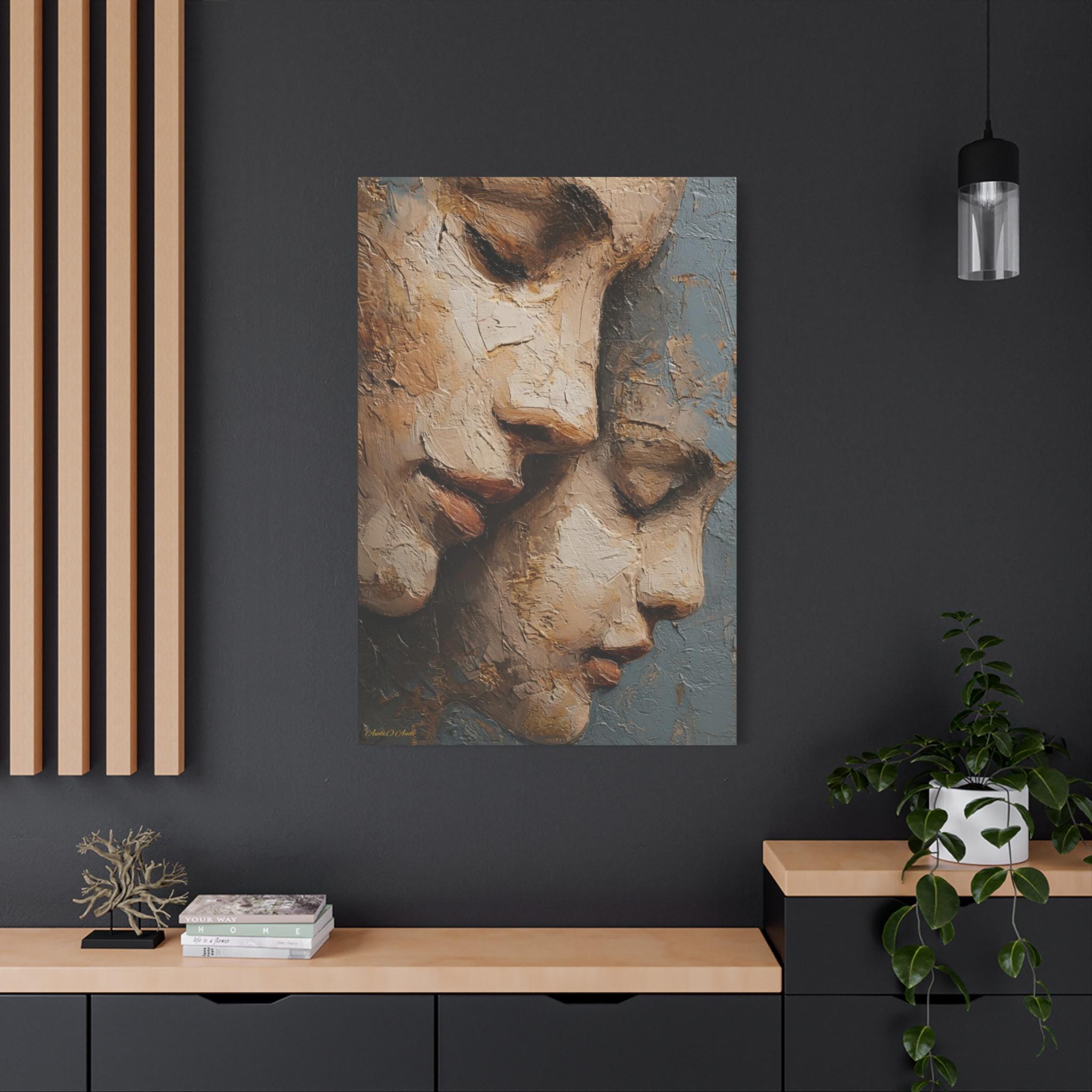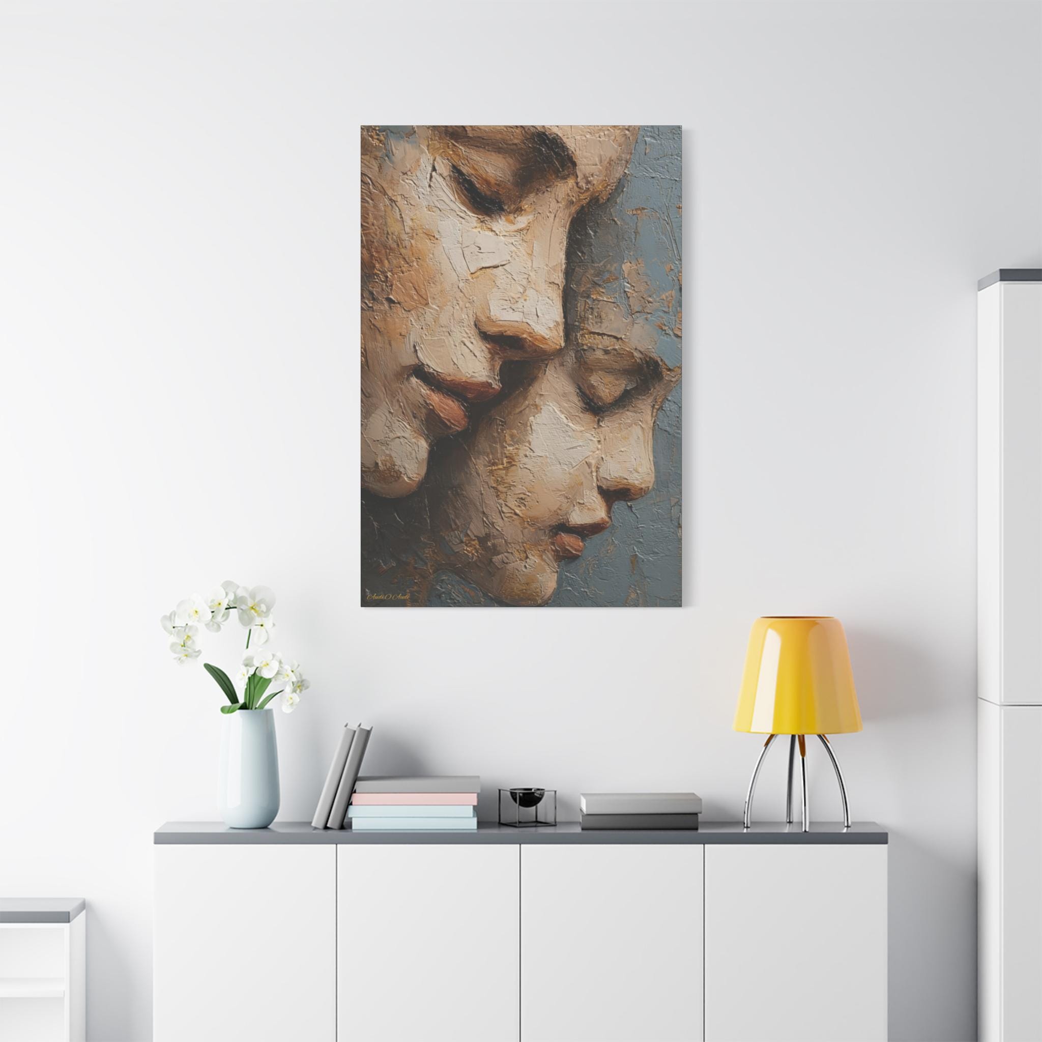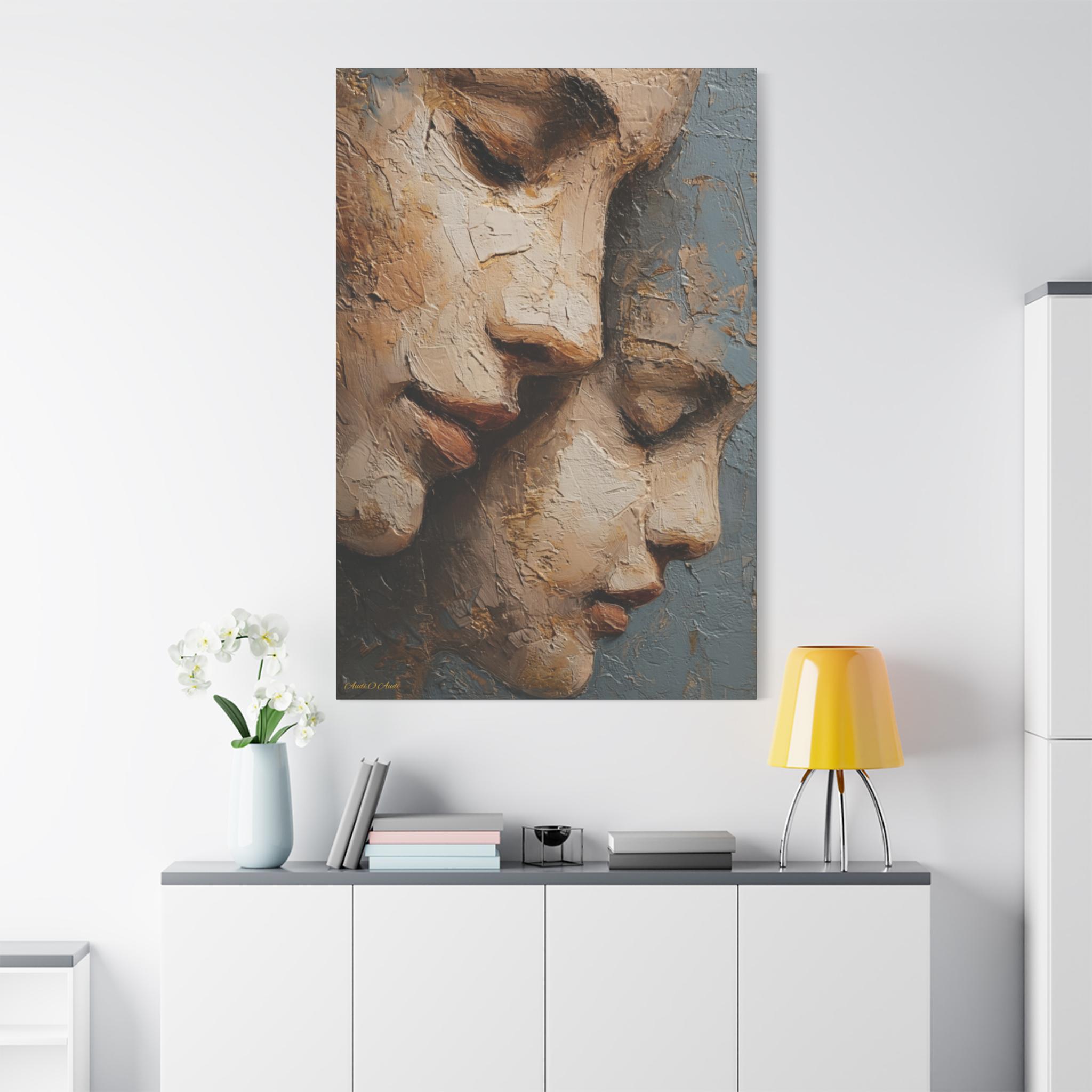 Transform your wall space with this stunning Stretched Canvas art piece, featuring a beautifully textured depiction of two intertwined faces. This artwork adds a touch of elegance and warmth to any room, creating a calm and loving atmosphere. Perfect for living rooms, nurseries, or personal sanctuaries, it invites admiration and contemplation, making it ideal for art lovers and those seeking to enhance their home decor. This canvas is a thoughtful gift for holidays like Mother’s Day, birthdays, or housewarming celebrations, appealing to friends, family, and anyone who appreciates profound artistry.