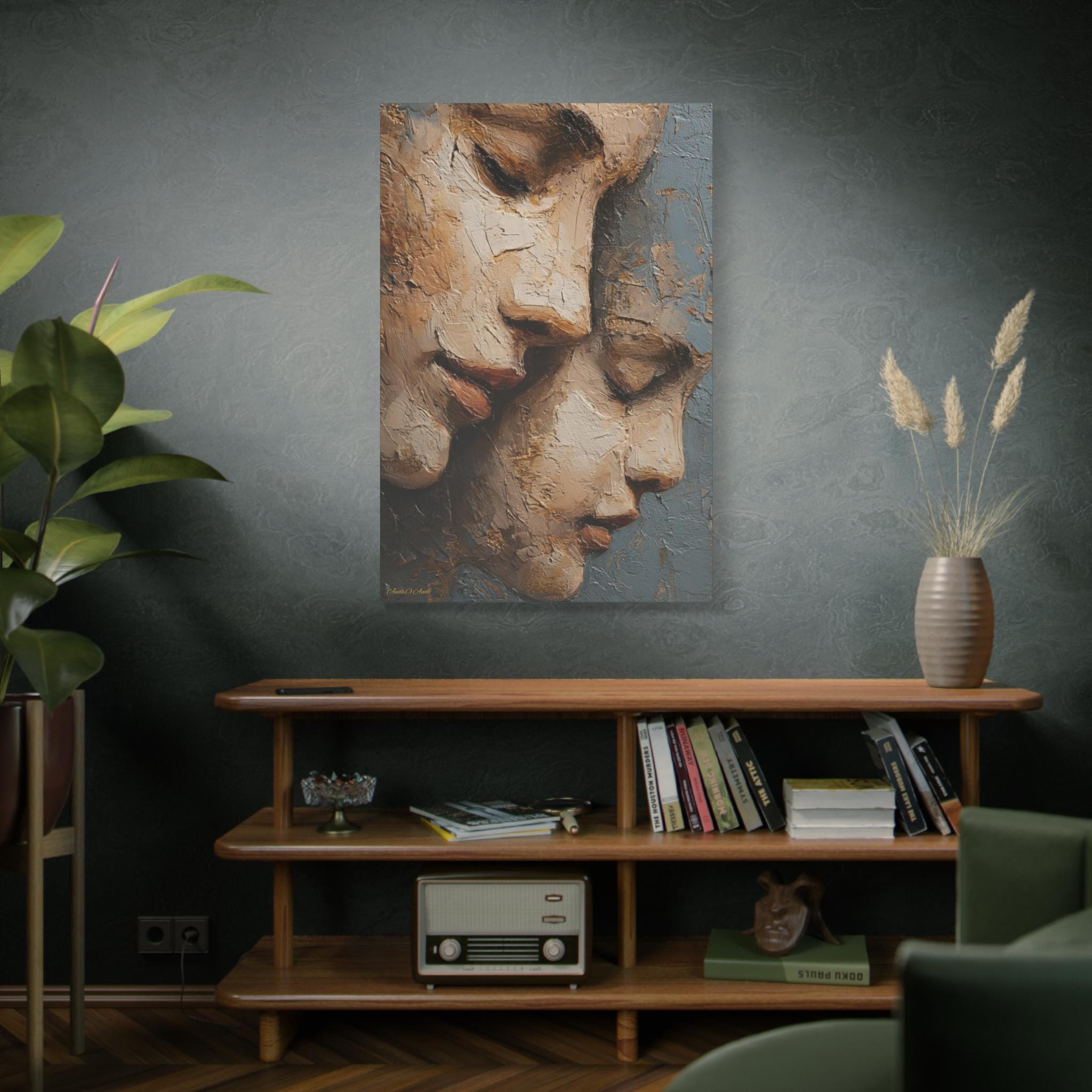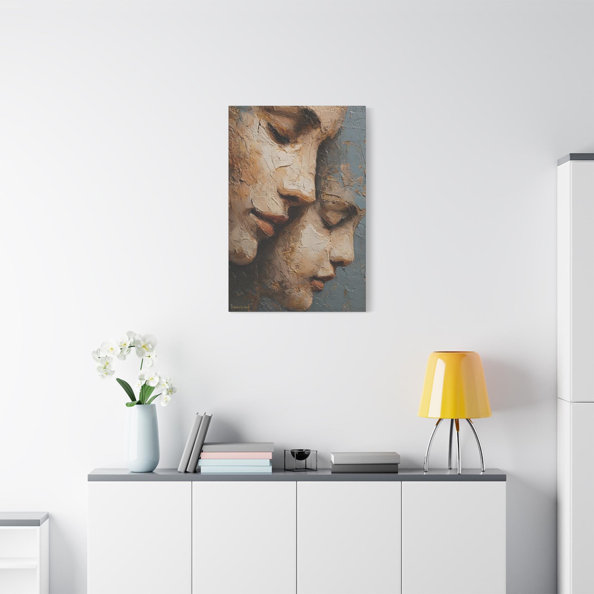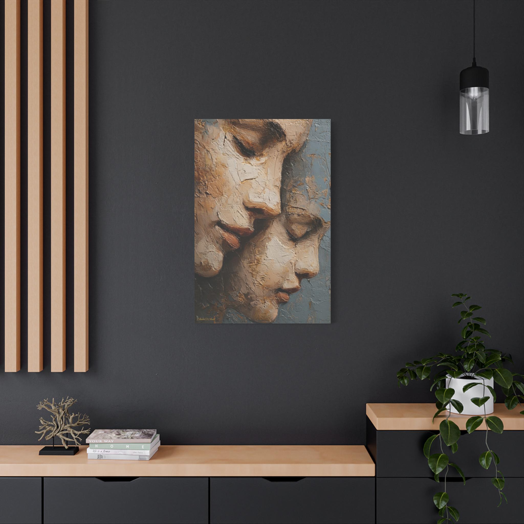 Transform your wall space with this stunning Stretched Canvas art piece, featuring a beautifully textured depiction of two intertwined faces. This artwork adds a touch of elegance and warmth to any room, creating a calm and loving atmosphere. Perfect for living rooms, nurseries, or personal sanctuaries, it invites admiration and contemplation, making it ideal for art lovers and those seeking to enhance their home decor. This canvas is a thoughtful gift for holidays like Mother’s Day, birthdays, or housewarming celebrations, appealing to friends, family, and anyone who appreciates profound artistry.