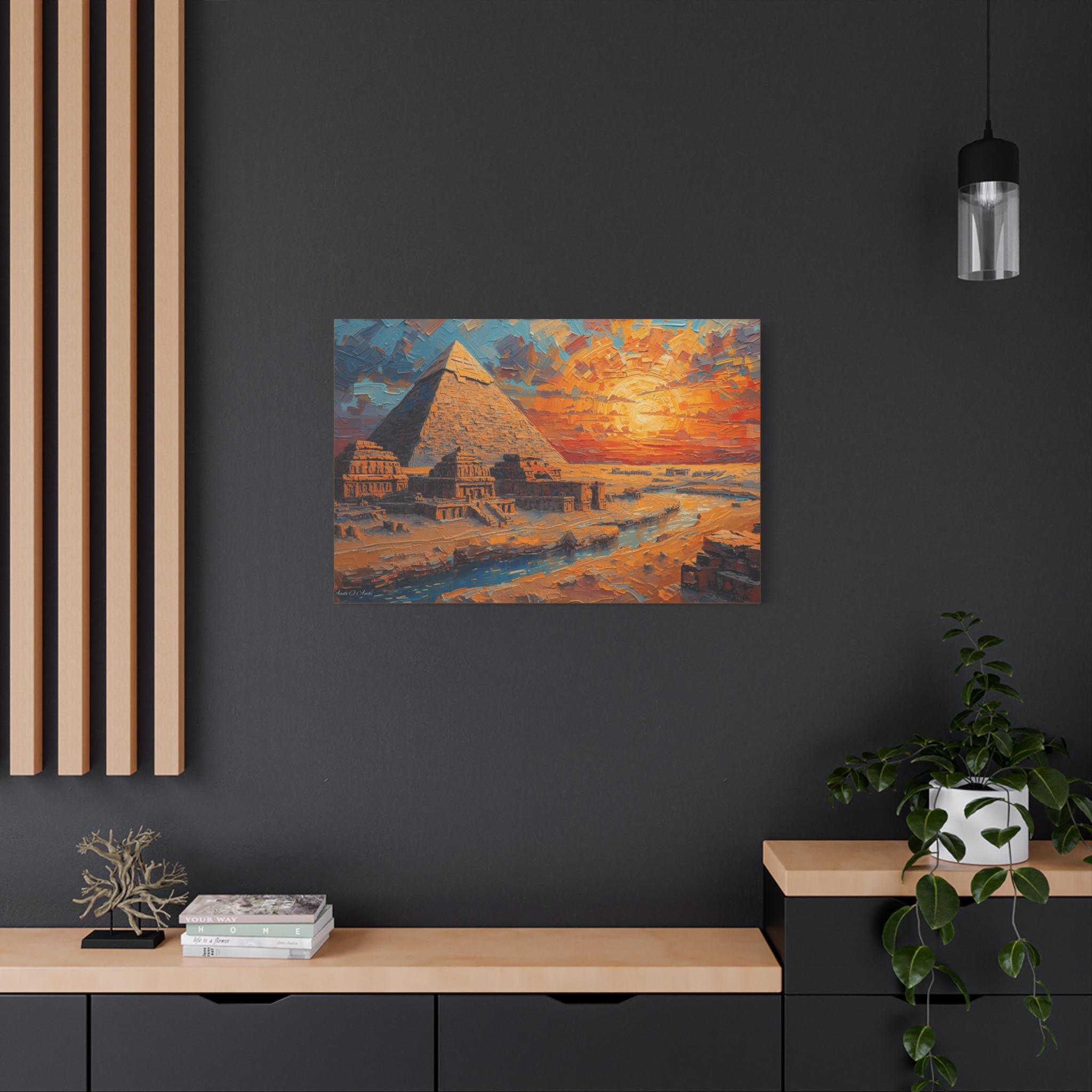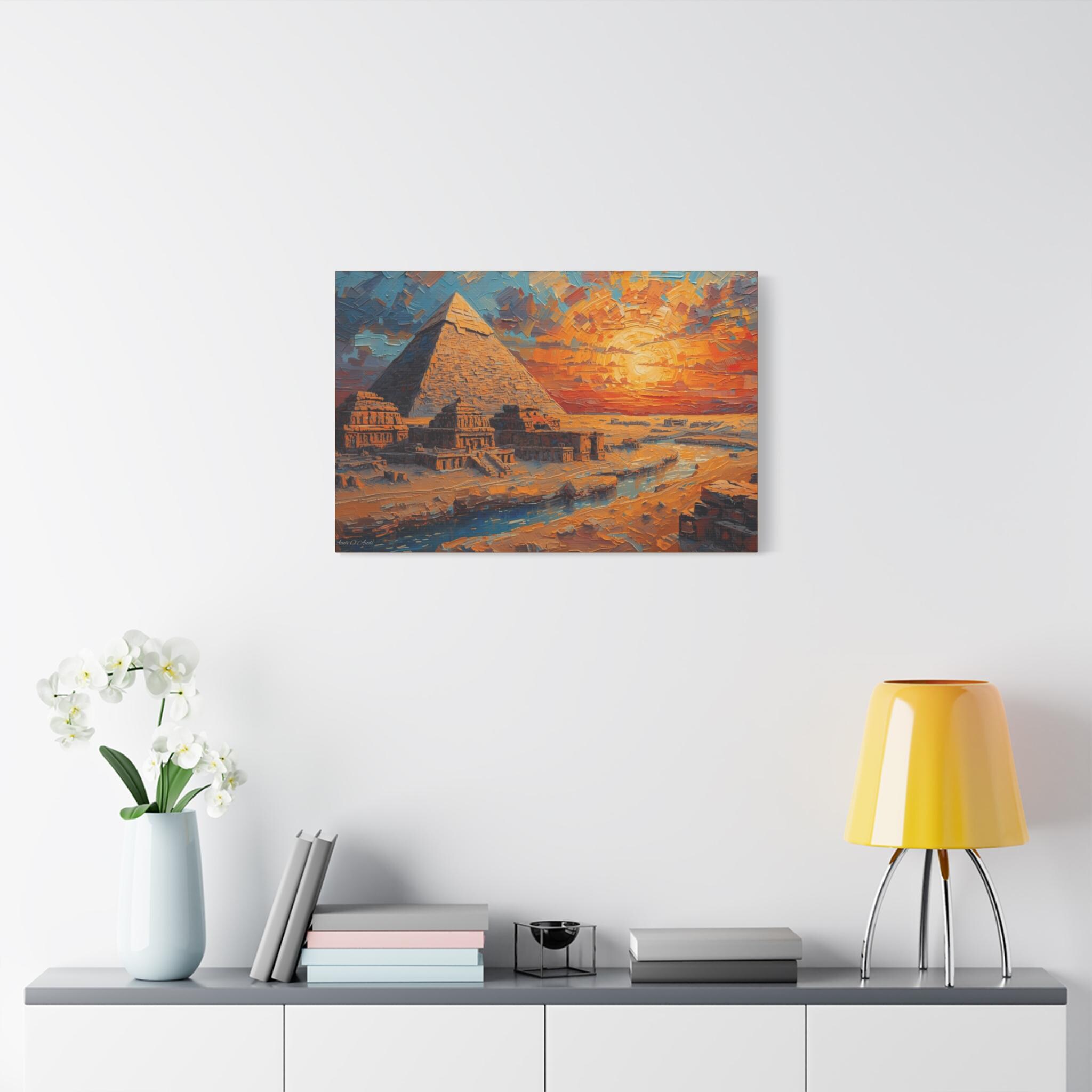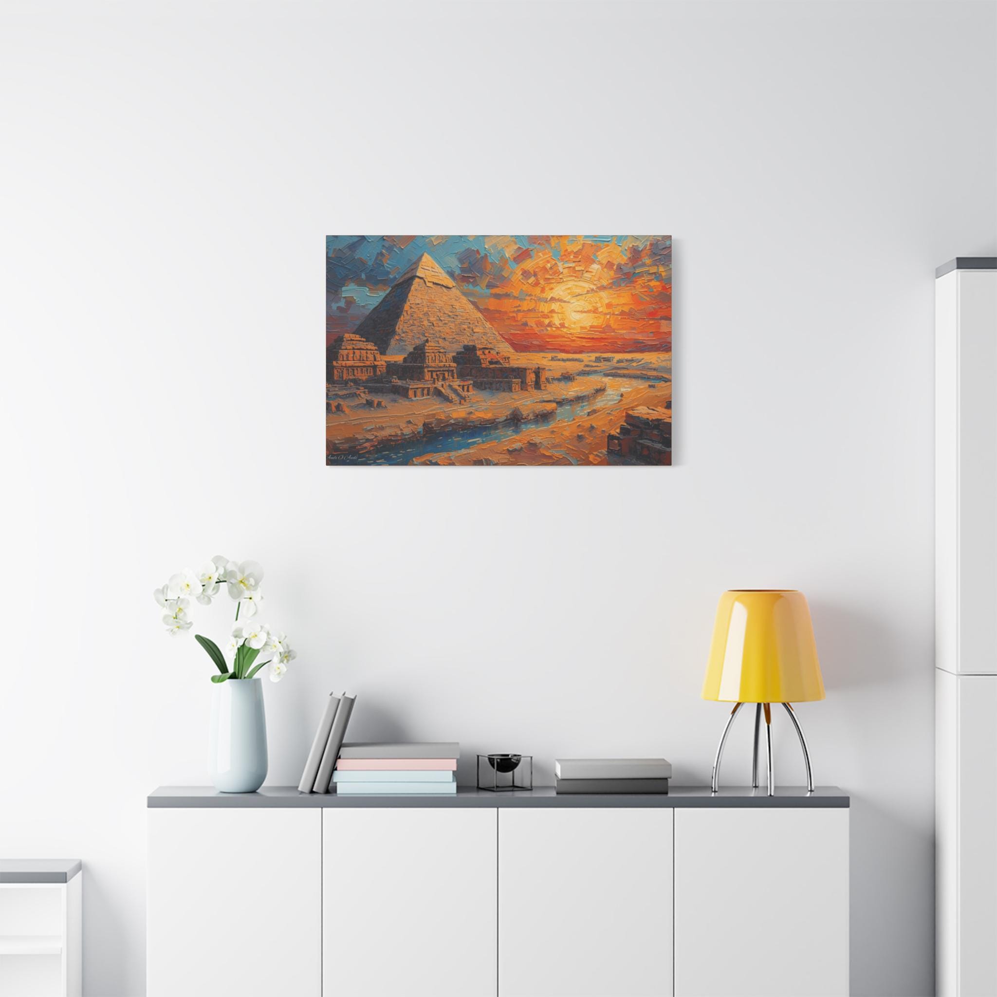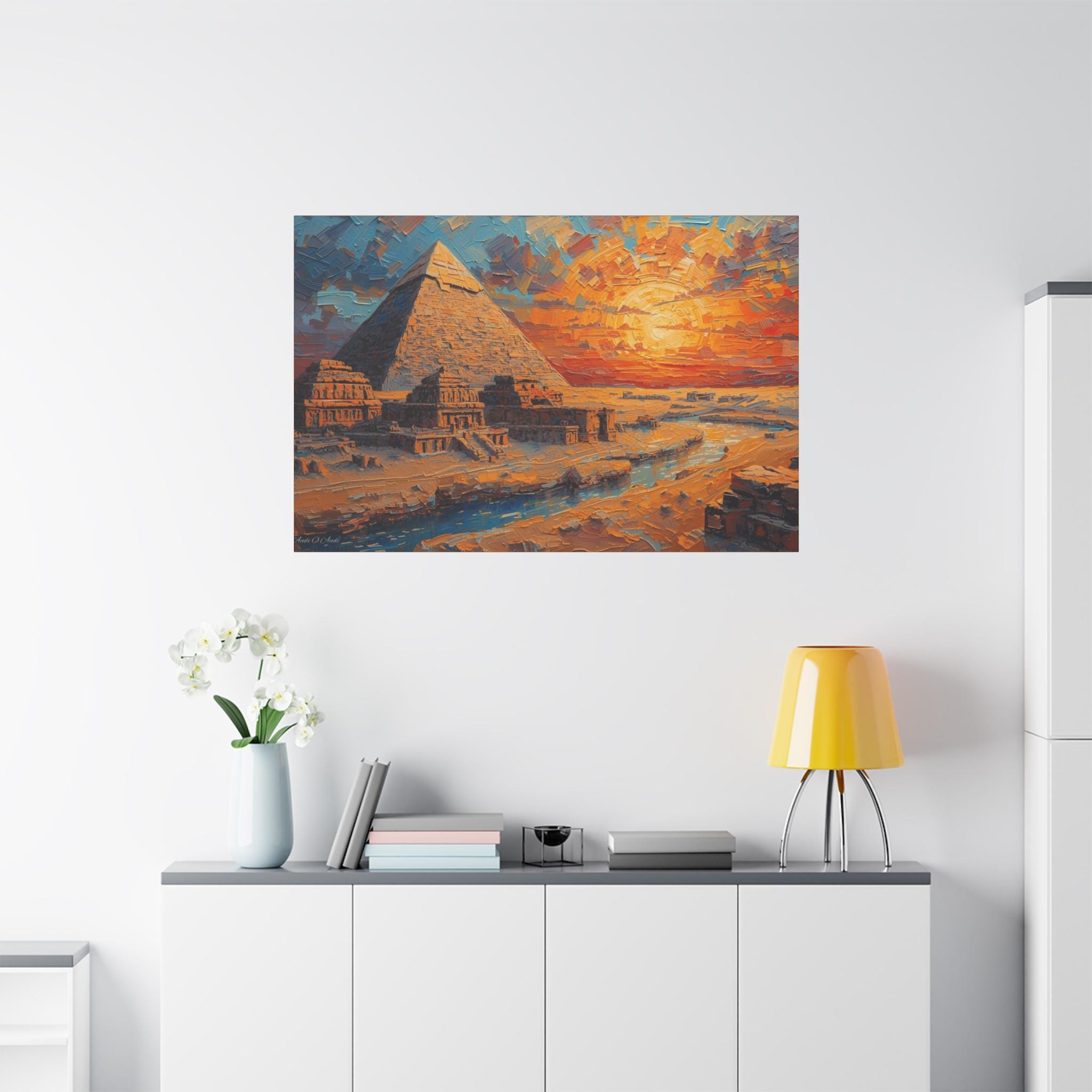 Transform your living space with this stunning Matte Canvas artwork. The vibrant colors and intricate details of the pyramid scene create a warm and inviting atmosphere, perfect for sparking conversation and admiration. This canvas fits seamlessly into various environments, from a cozy home to a modern office. Ideal for art lovers, history enthusiasts, or anyone who appreciates unique decor, it makes a thoughtful gift for housewarmings, birthdays, or special occasions like holidays and anniversaries. Let this piece of art elevate your space during gatherings or provide a soothing backdrop for quiet moments of reflection.