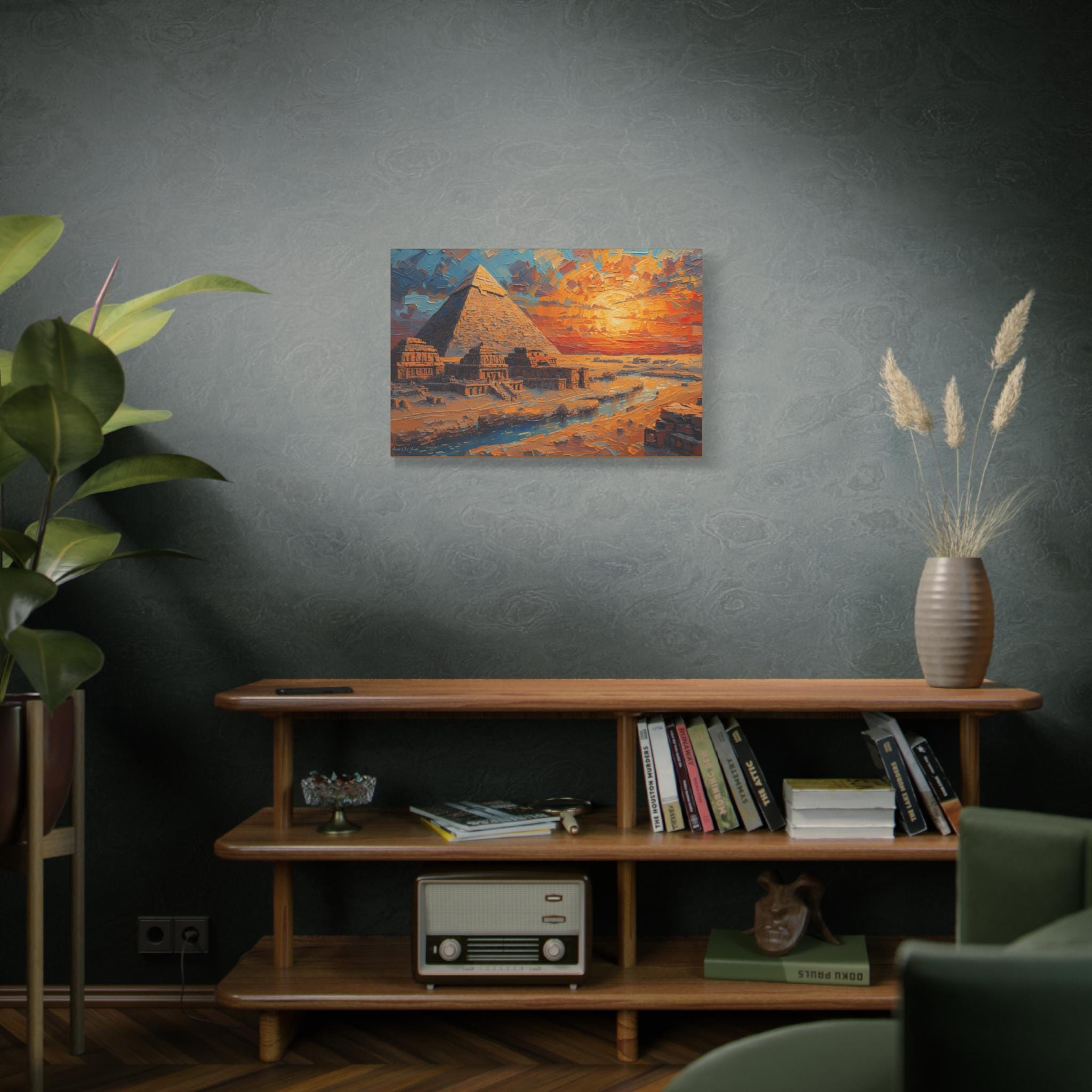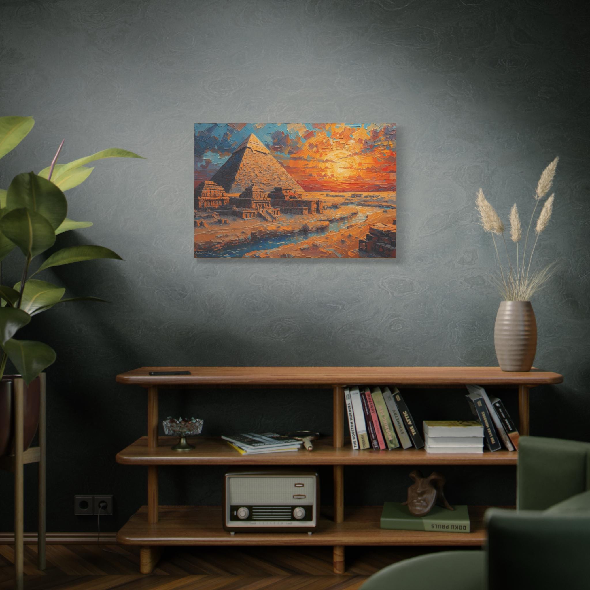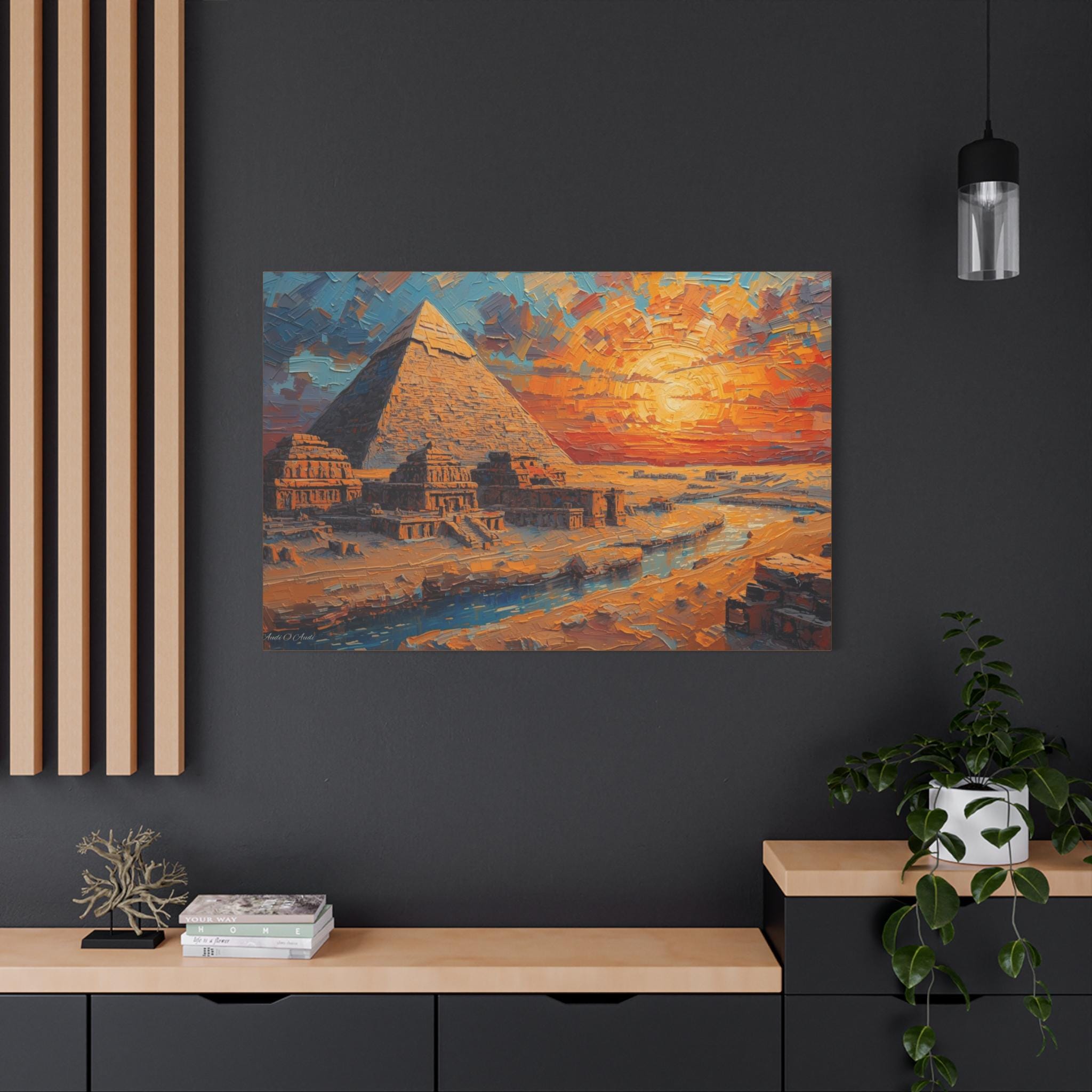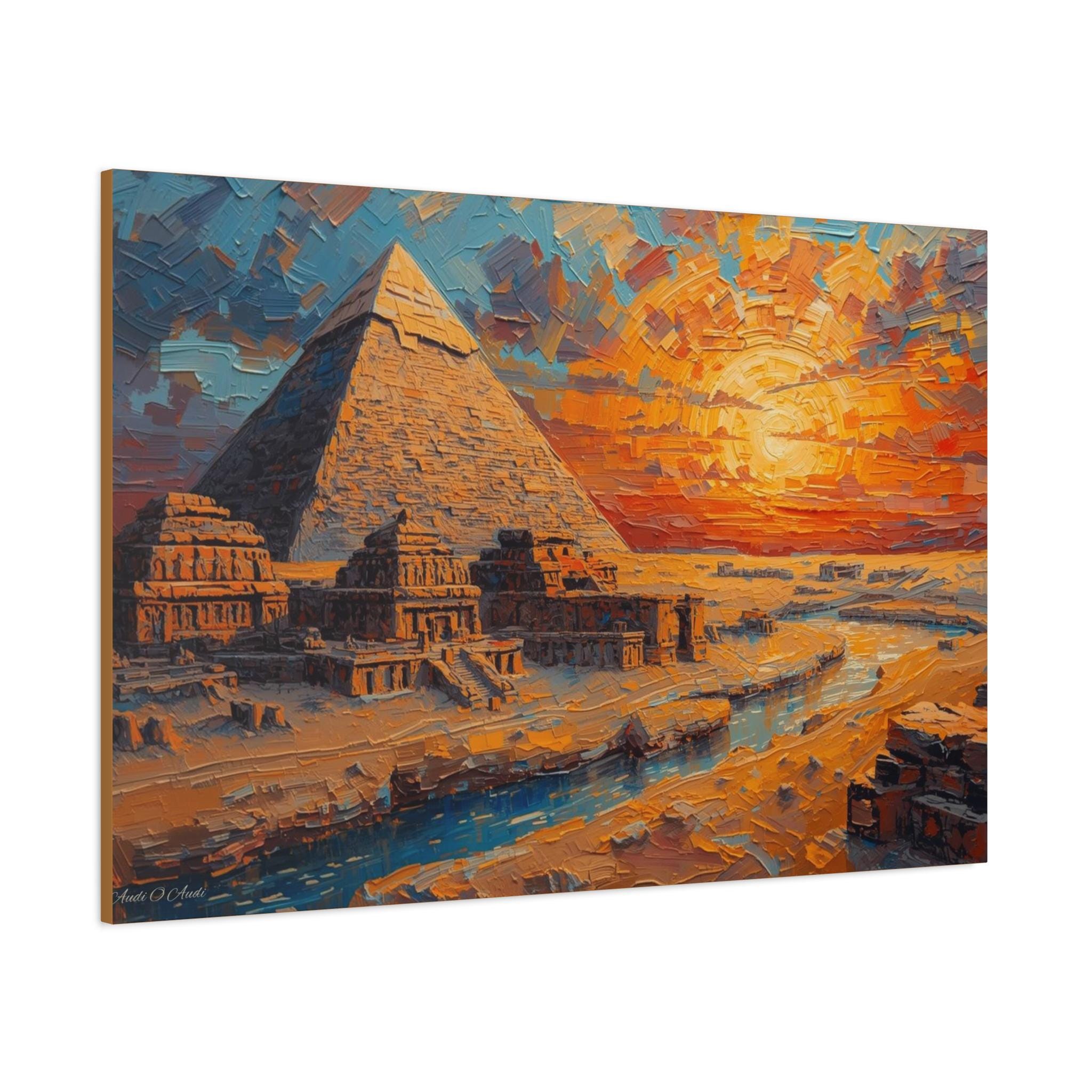 Transform your living space with this stunning Matte Canvas artwork. The vibrant colors and intricate details of the pyramid scene create a warm and inviting atmosphere, perfect for sparking conversation and admiration. This canvas fits seamlessly into various environments, from a cozy home to a modern office. Ideal for art lovers, history enthusiasts, or anyone who appreciates unique decor, it makes a thoughtful gift for housewarmings, birthdays, or special occasions like holidays and anniversaries. Let this piece of art elevate your space during gatherings or provide a soothing backdrop for quiet moments of reflection.