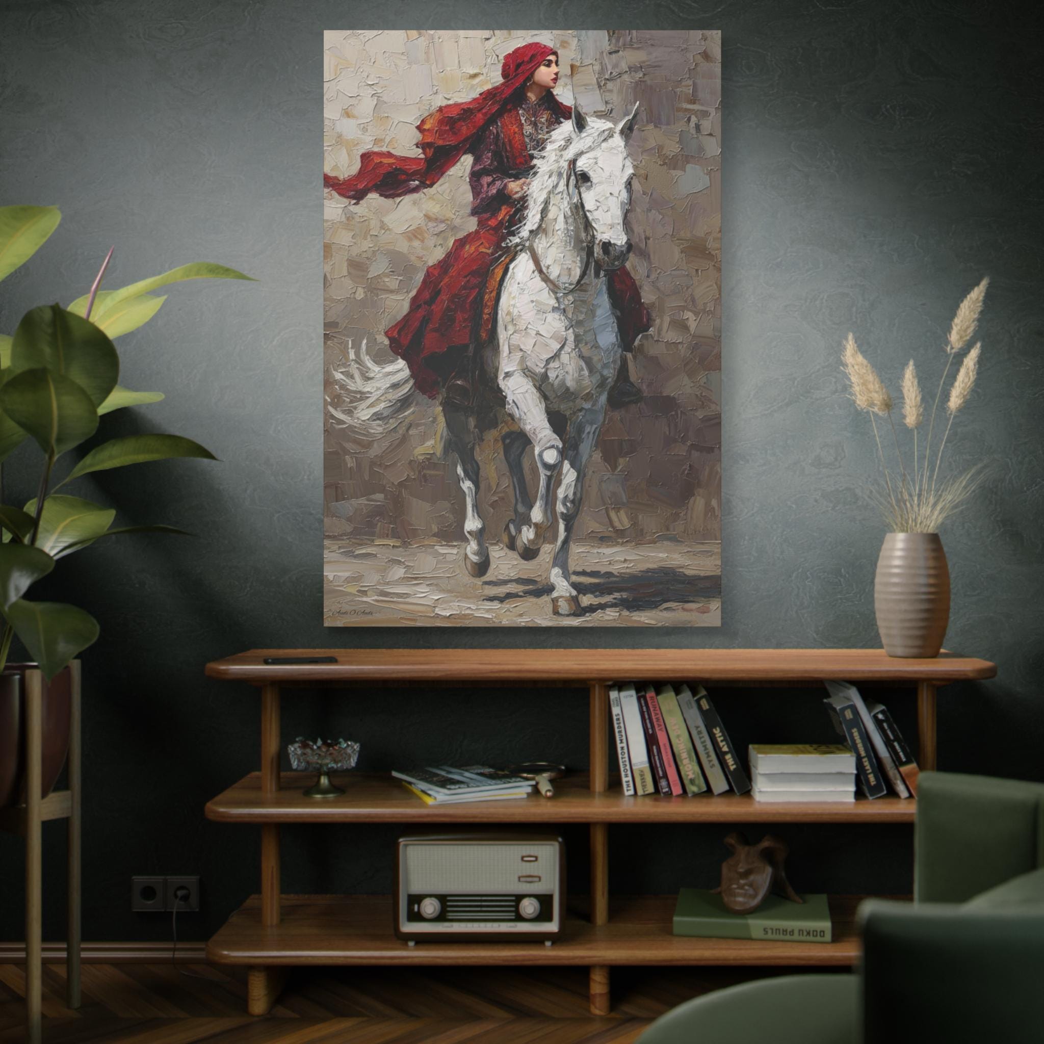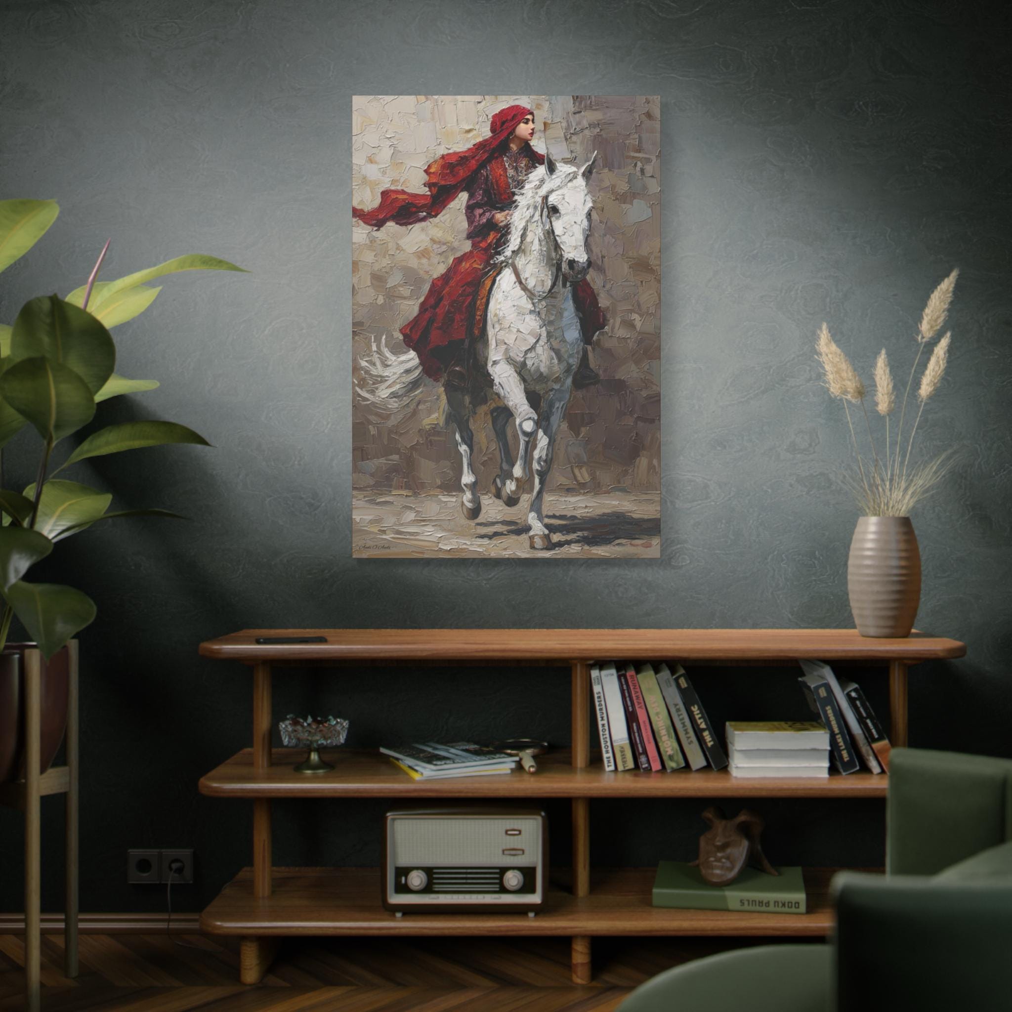 Crimson Wind, White Steed, Art Canvas, Horse Lover Gift, Rustic Home Decor, Wall Art for Living Room, Gallery Style Canvas.