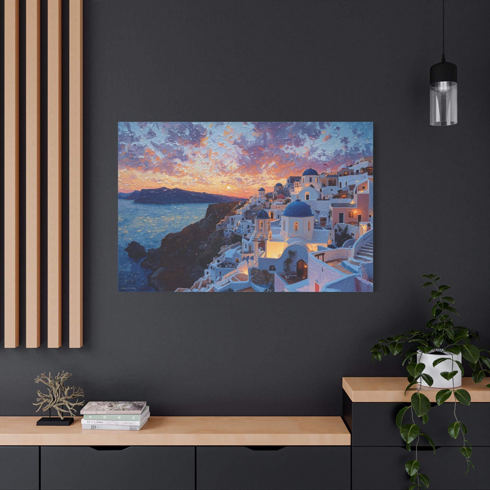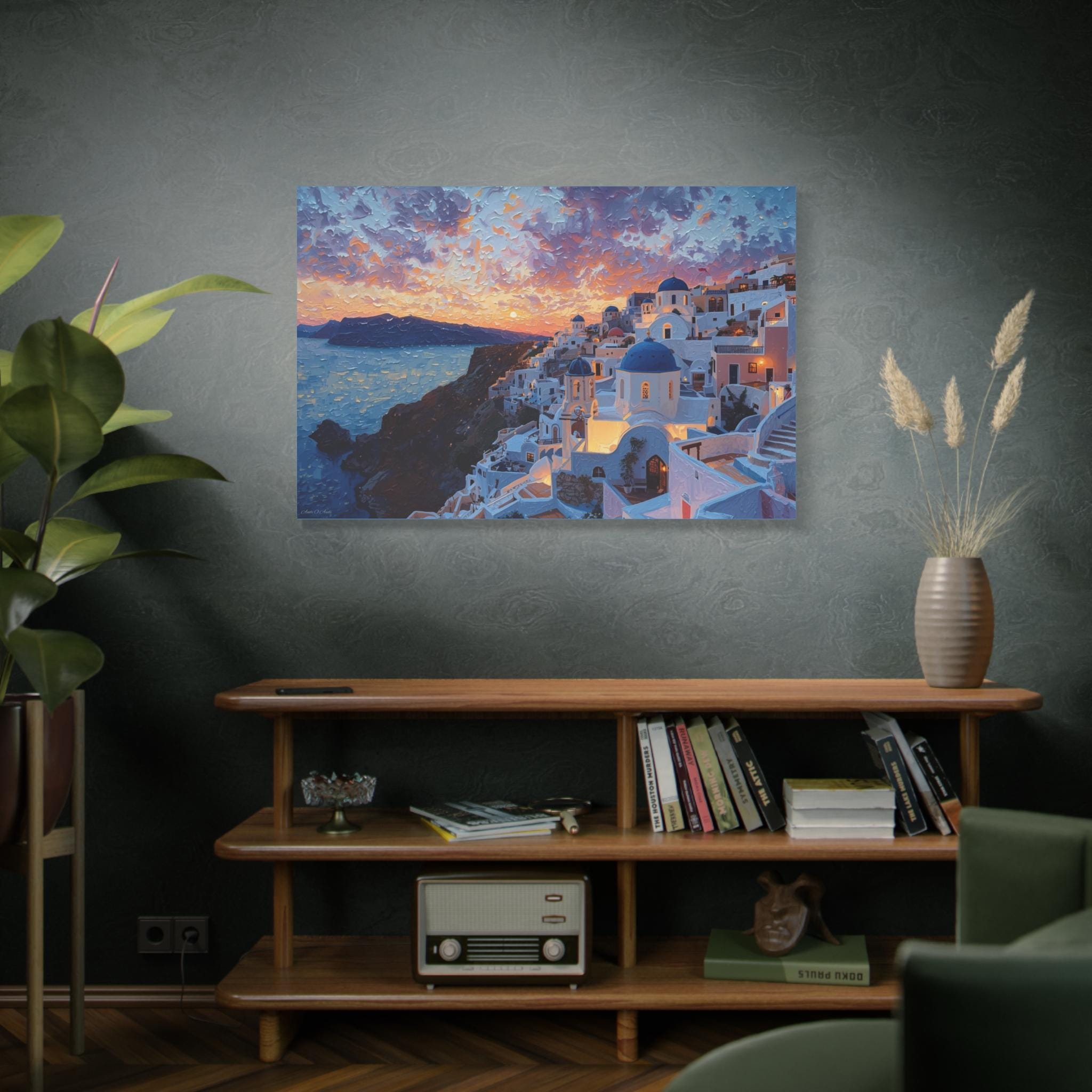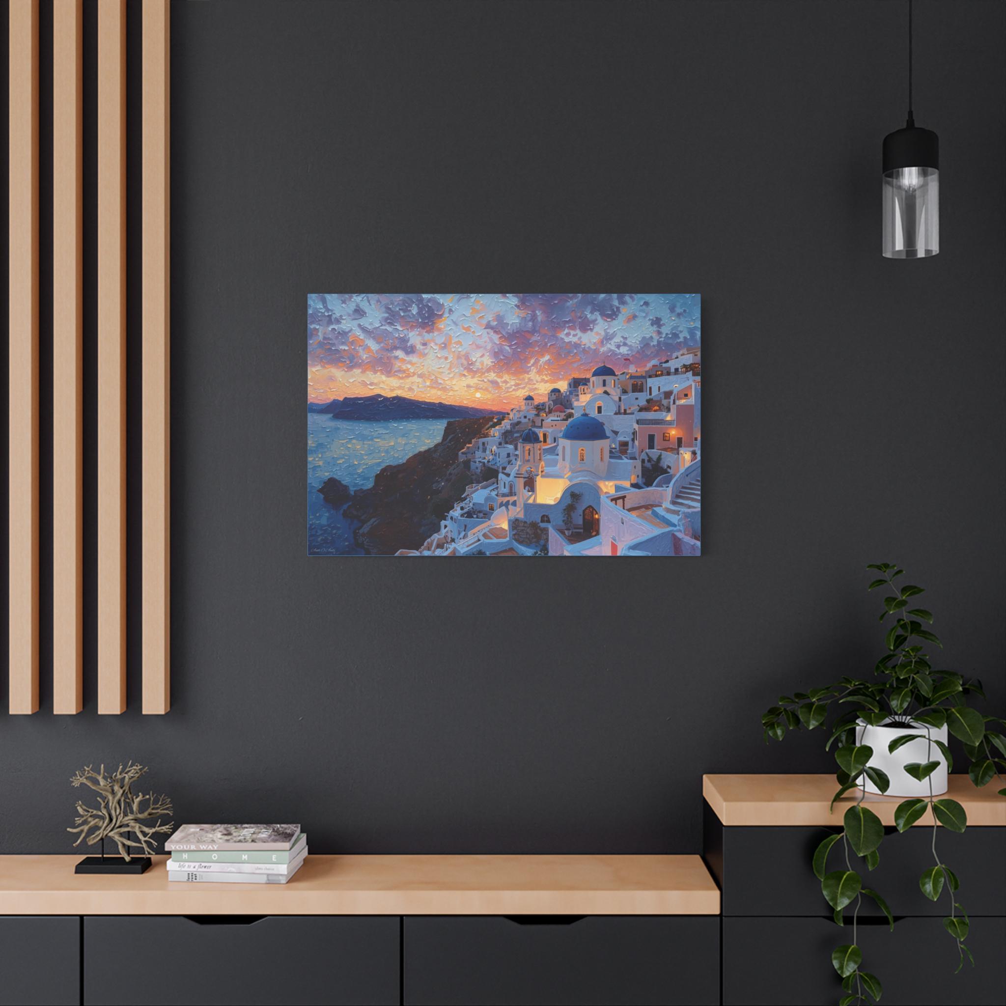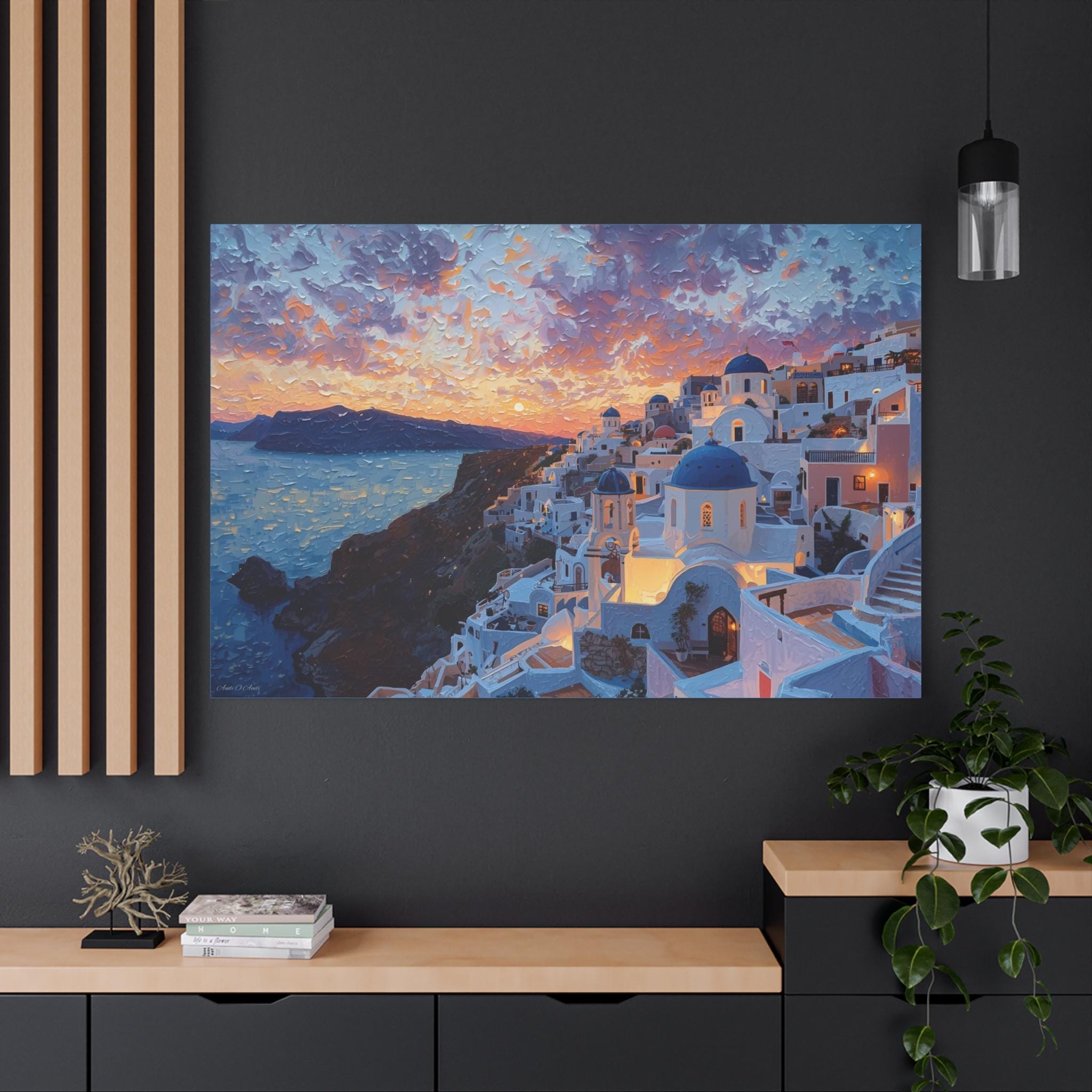 Santorini at Dusk, Sunset Canvas Art, Colorful Stretched Wall Decor for Home, Living Room, Office, Gift, Abstract Landscape