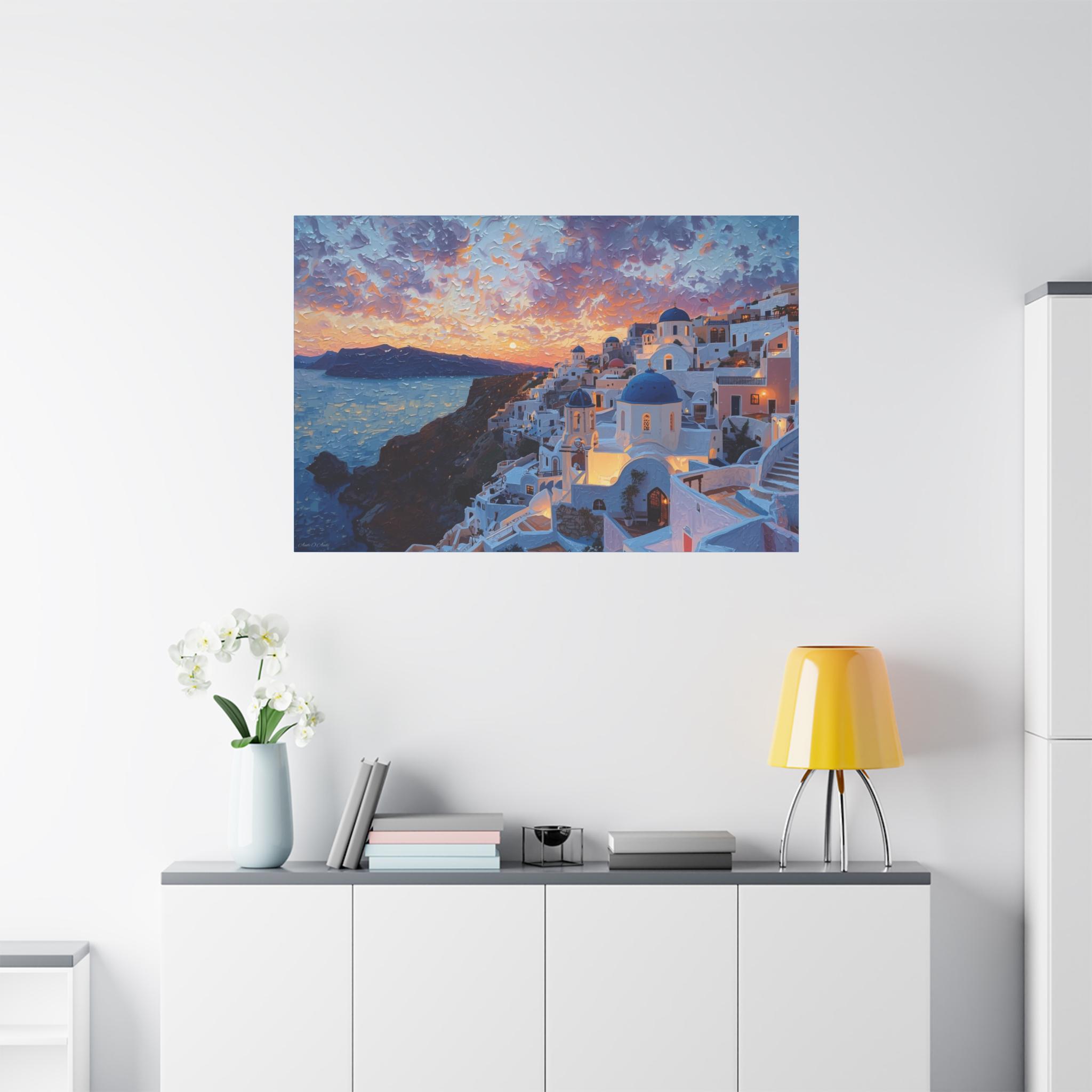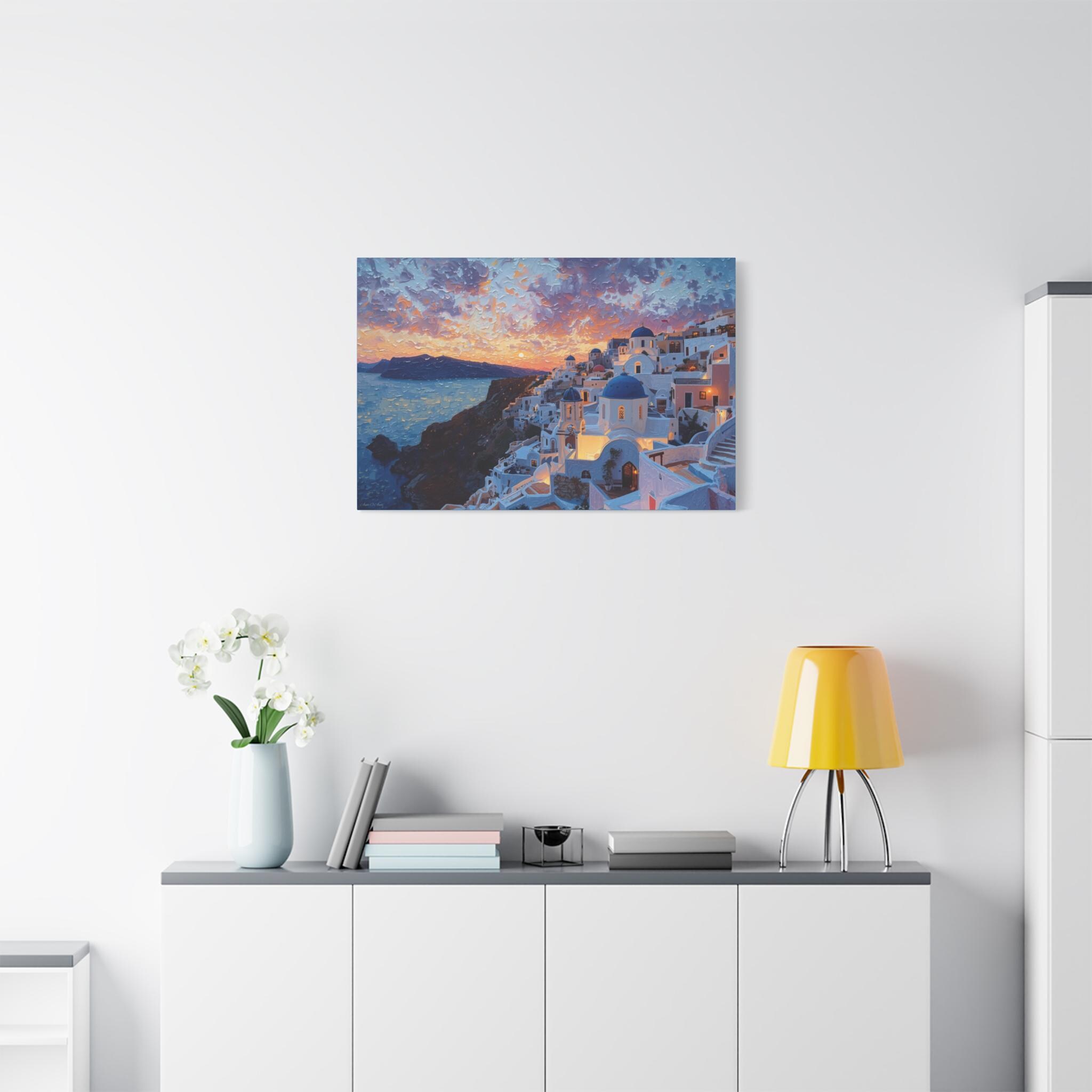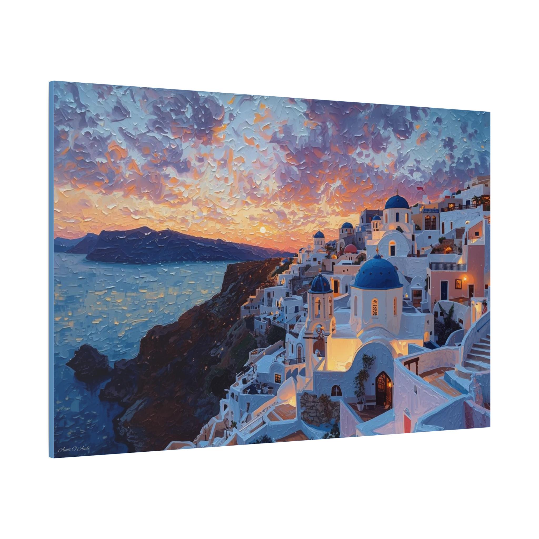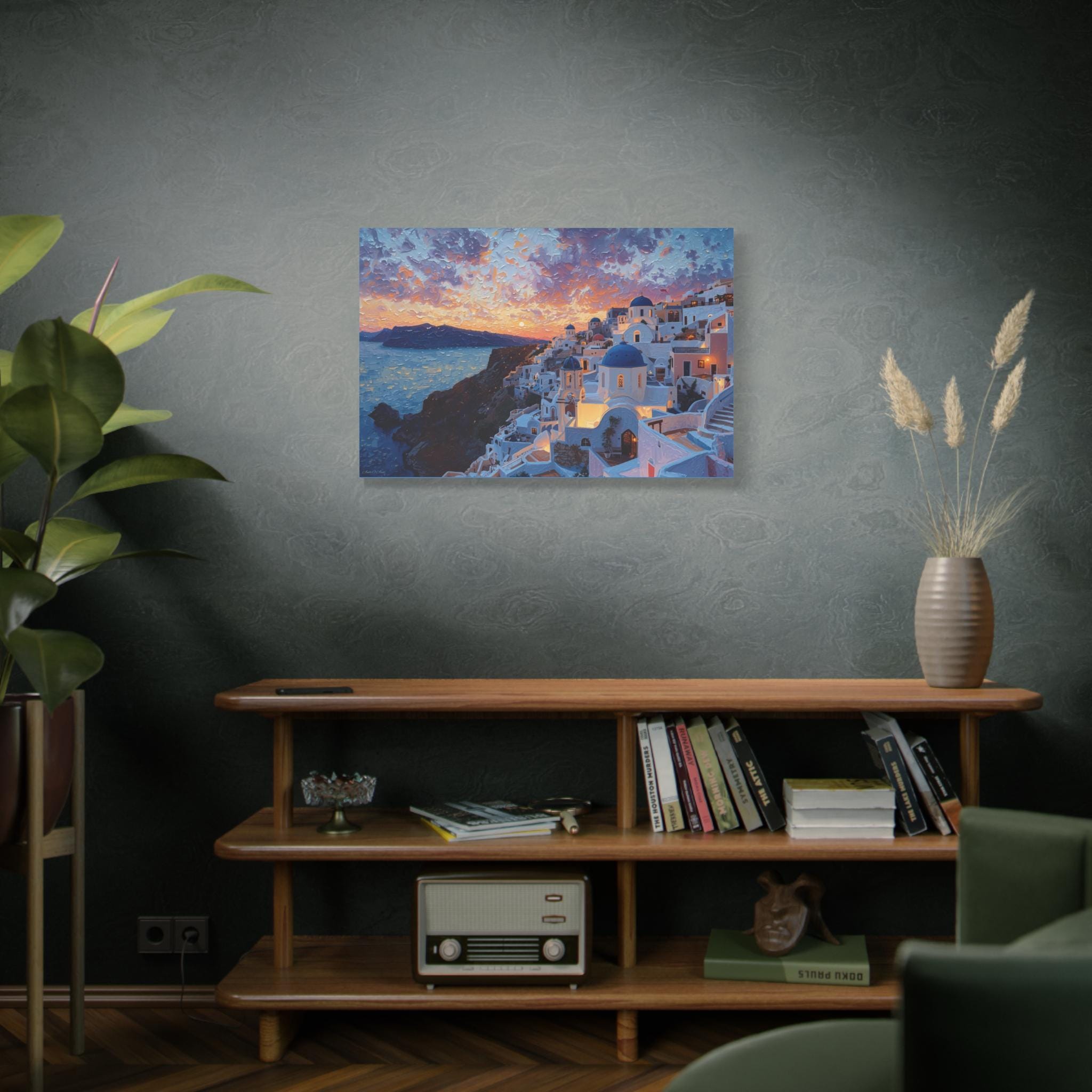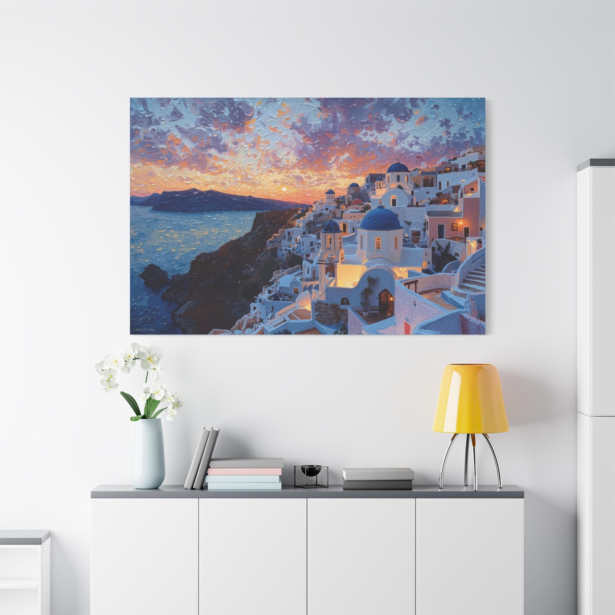 Santorini at Dusk, Sunset Canvas Art, Colorful Stretched Wall Decor for Home, Living Room, Office, Gift, Abstract Landscape