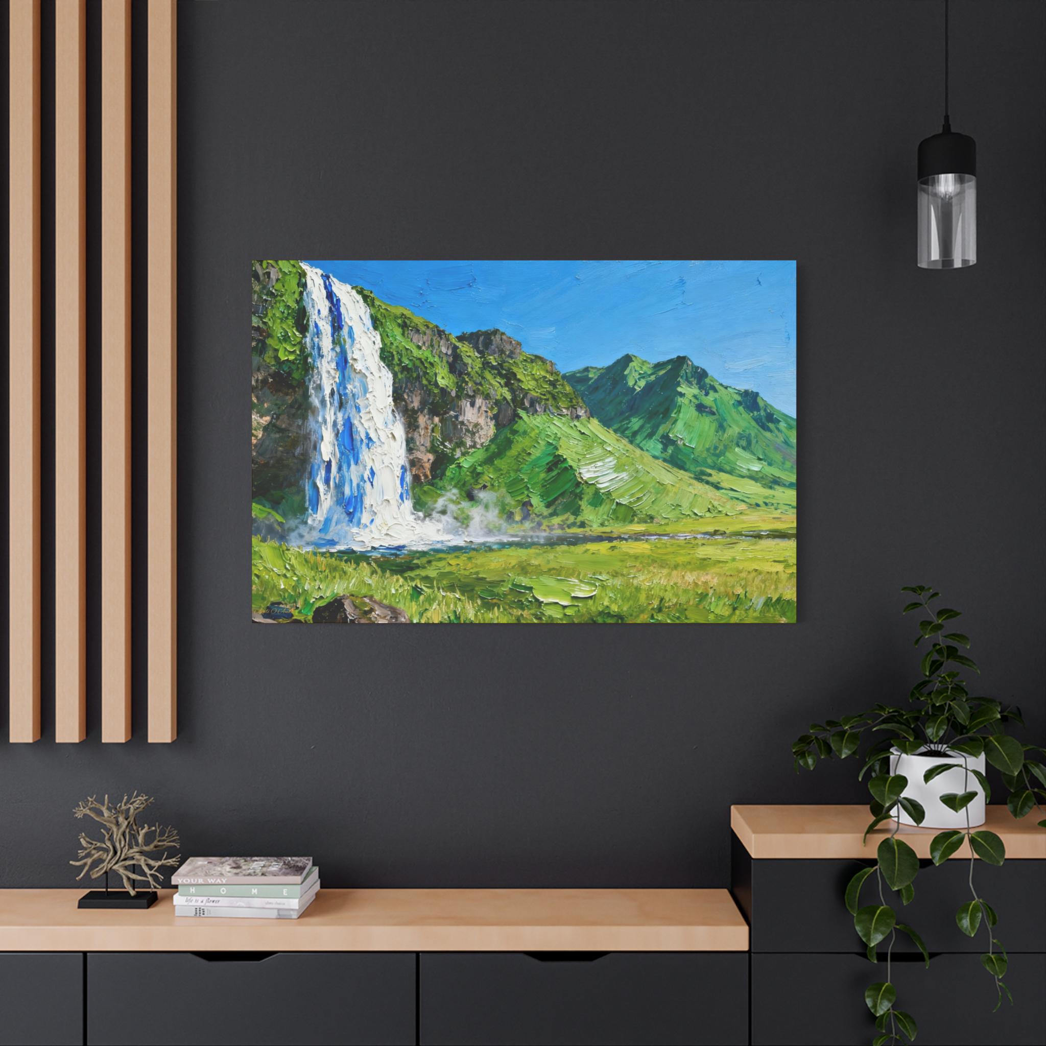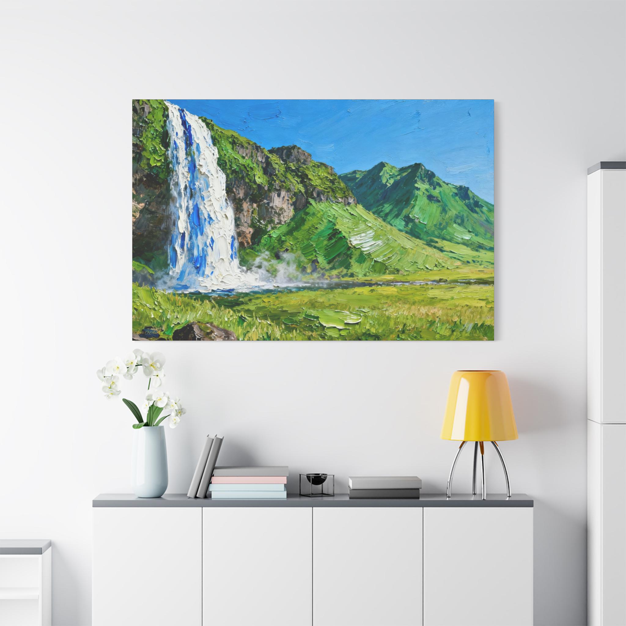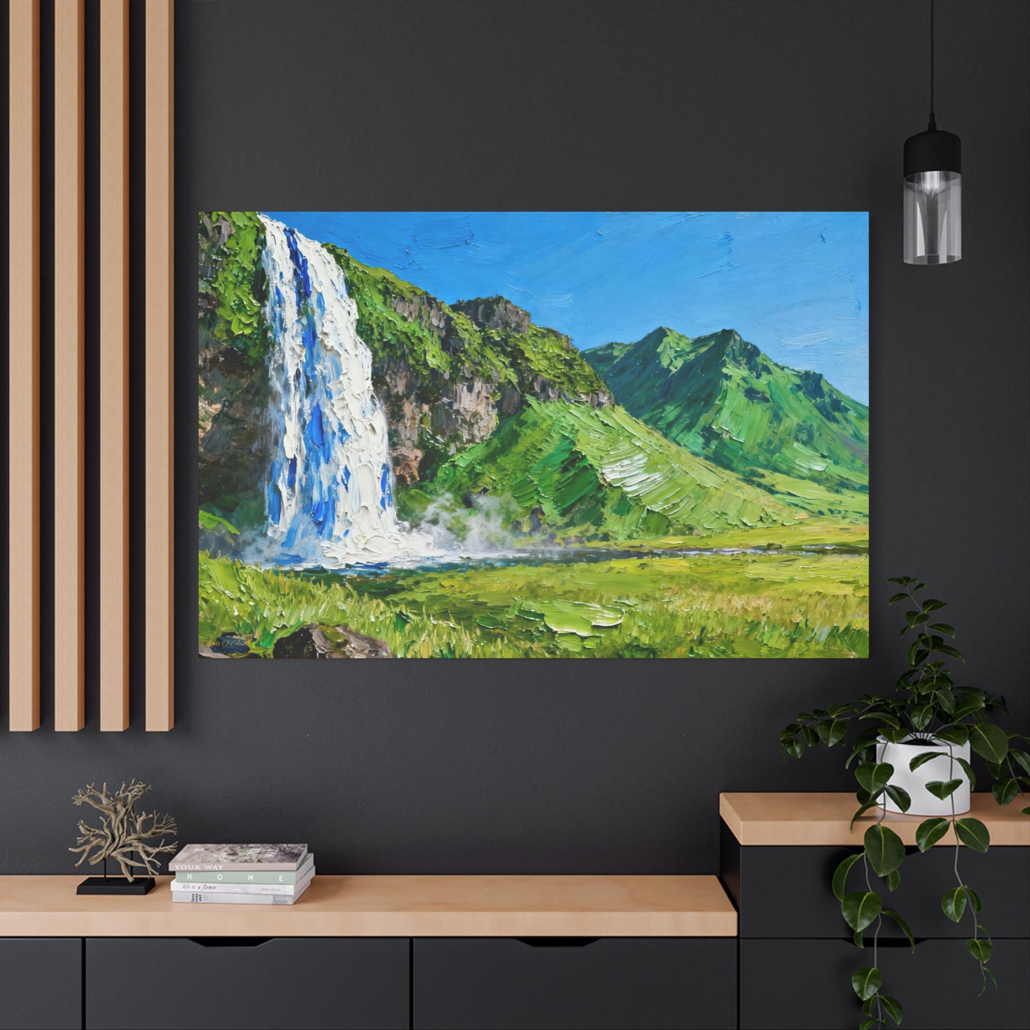 Veil of the Cascade, Stretched Canvas Art Print of Majestic Waterfall, Home Decor, Nature Wall Art, Landscape Art, Living Room Decor