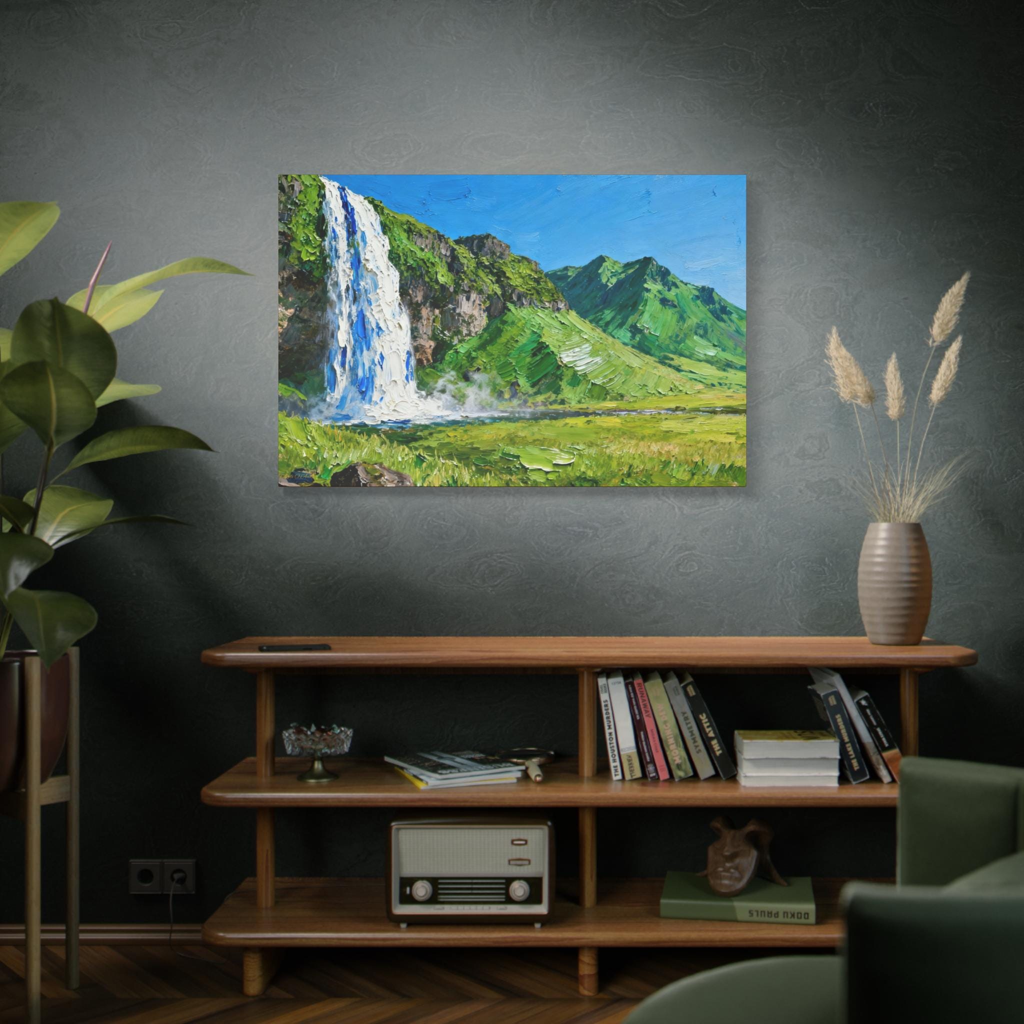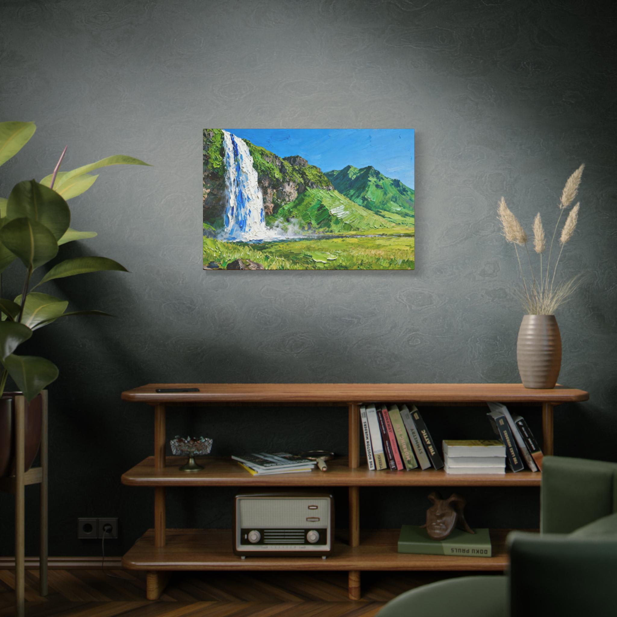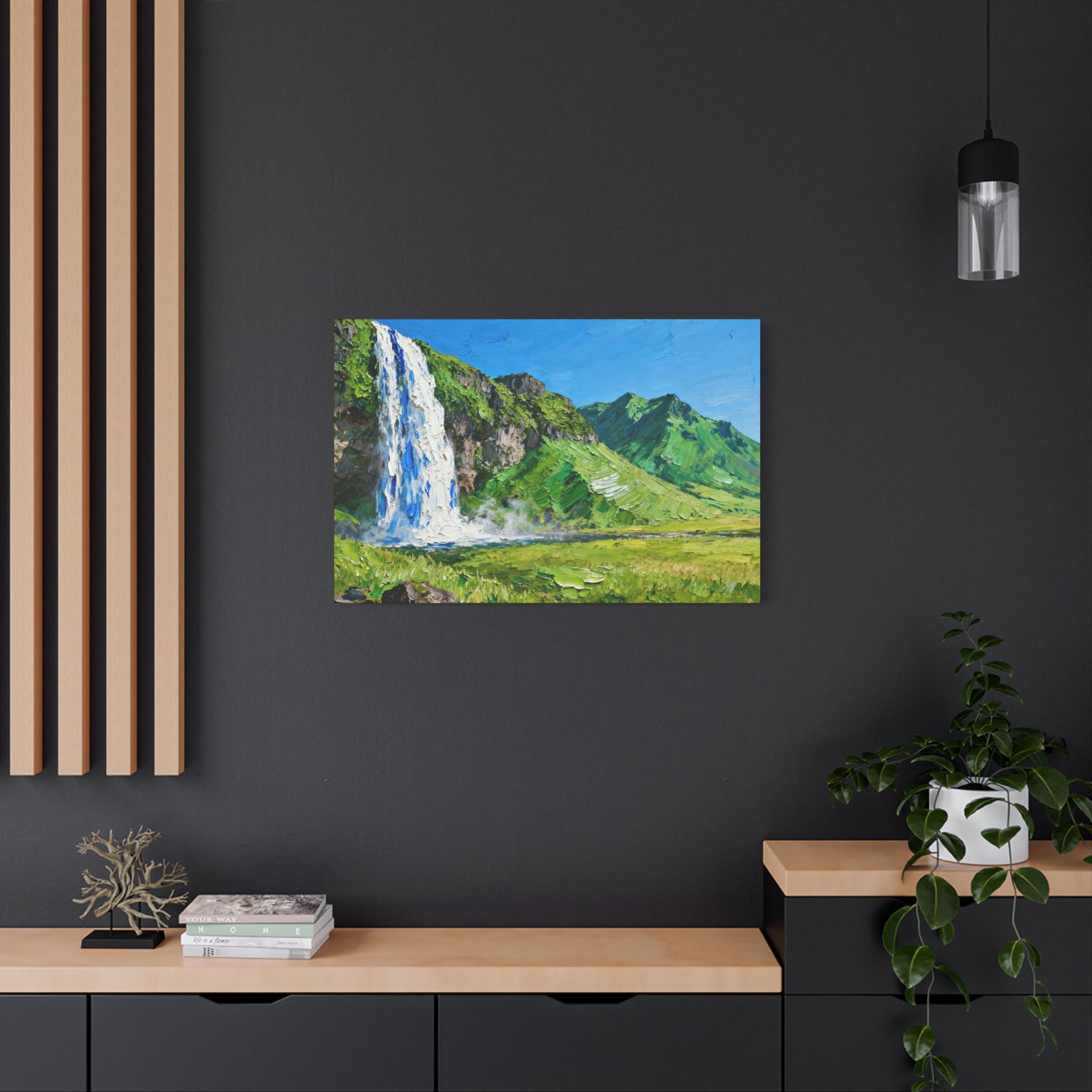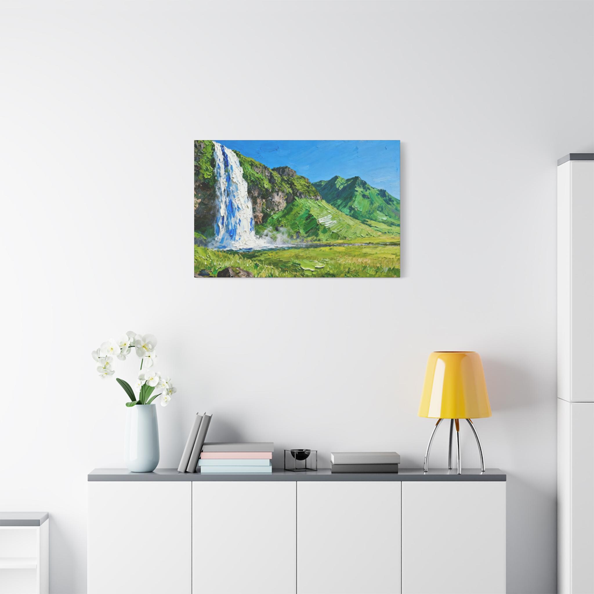 Veil of the Cascade, Stretched Canvas Art Print of Majestic Waterfall, Home Decor, Nature Wall Art, Landscape Art, Living Room Decor