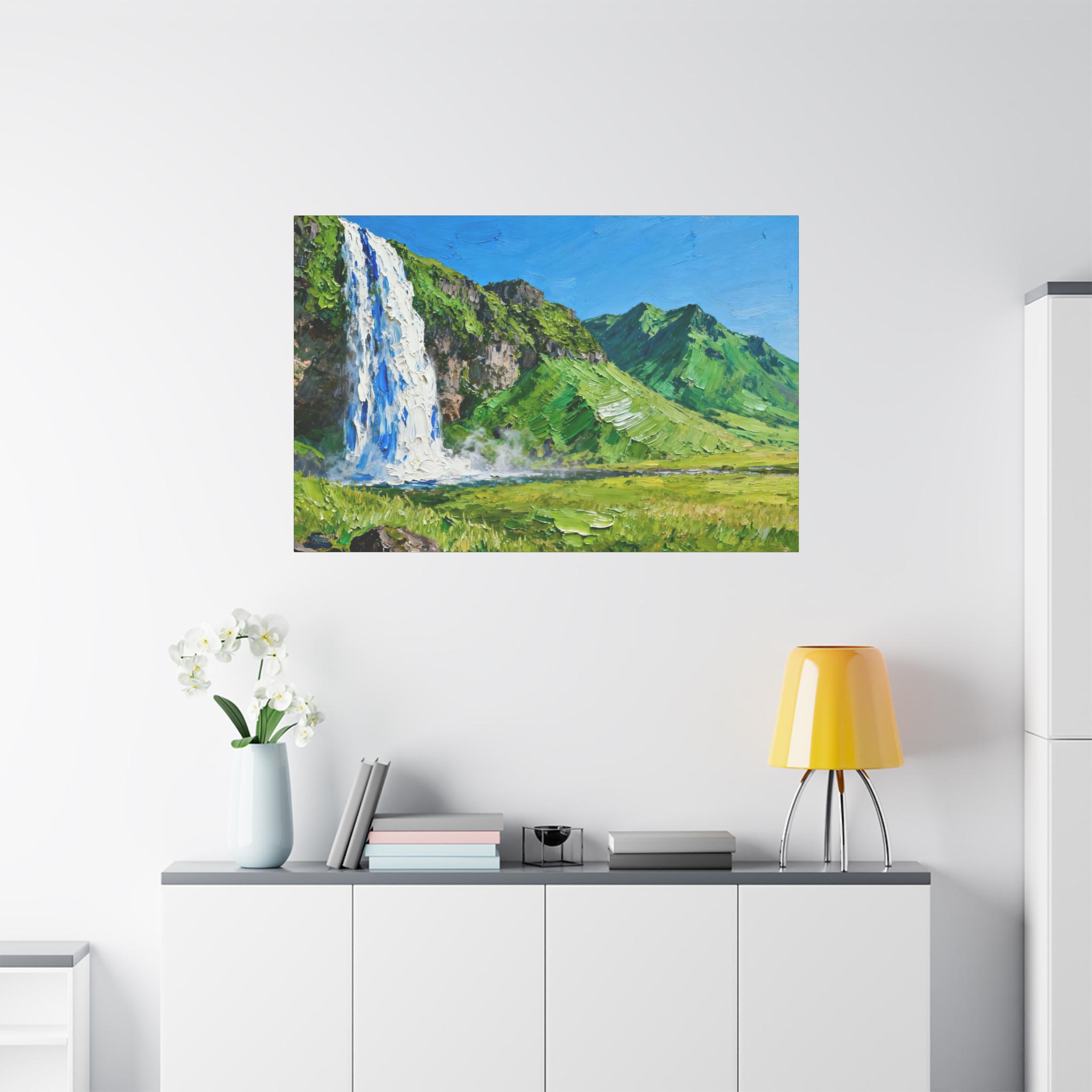 Transform your space with this exquisite Matte Canvas Art, perfect for any nature lover or art enthusiast. Featuring a stunning depiction of a waterfall cascading against a backdrop of lush mountains, this canvas captures the serene beauty of the great outdoors. The vibrant colors and intricate details evoke a sense of peace and tranquility, making it an ideal addition to your living room, bedroom, or office. It's a great gift for anyone celebrating housewarmings, birthdays, or special occasions. The Matte Canvas Art is not just decor; it's a source of inspiration that enhances the atmosphere in any setting.