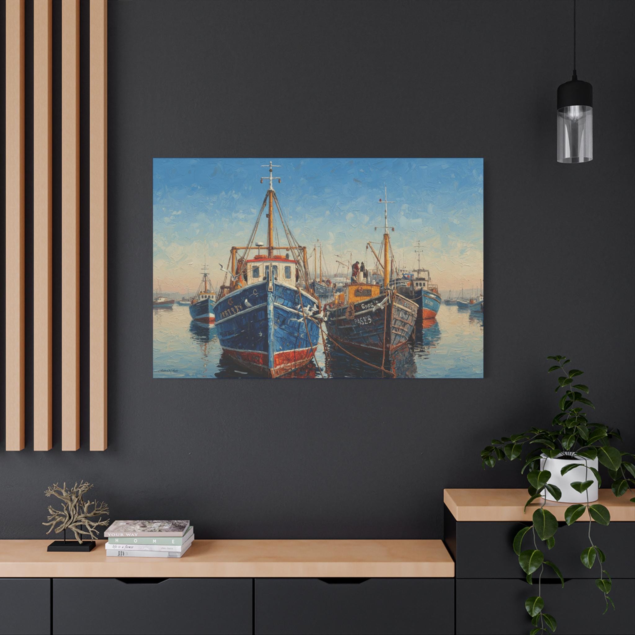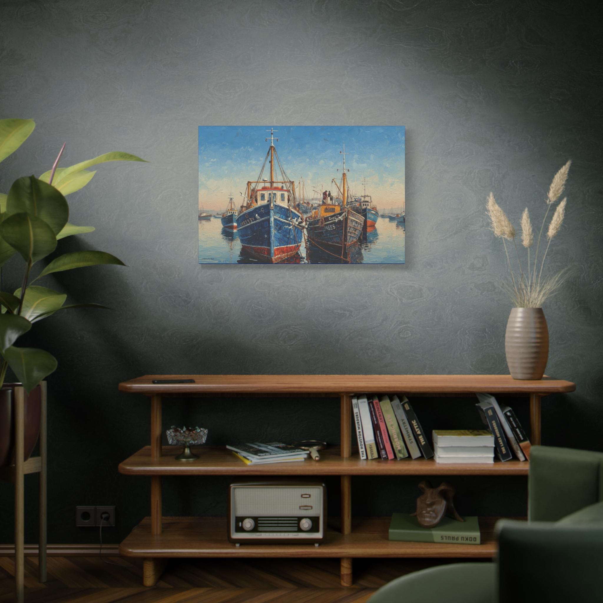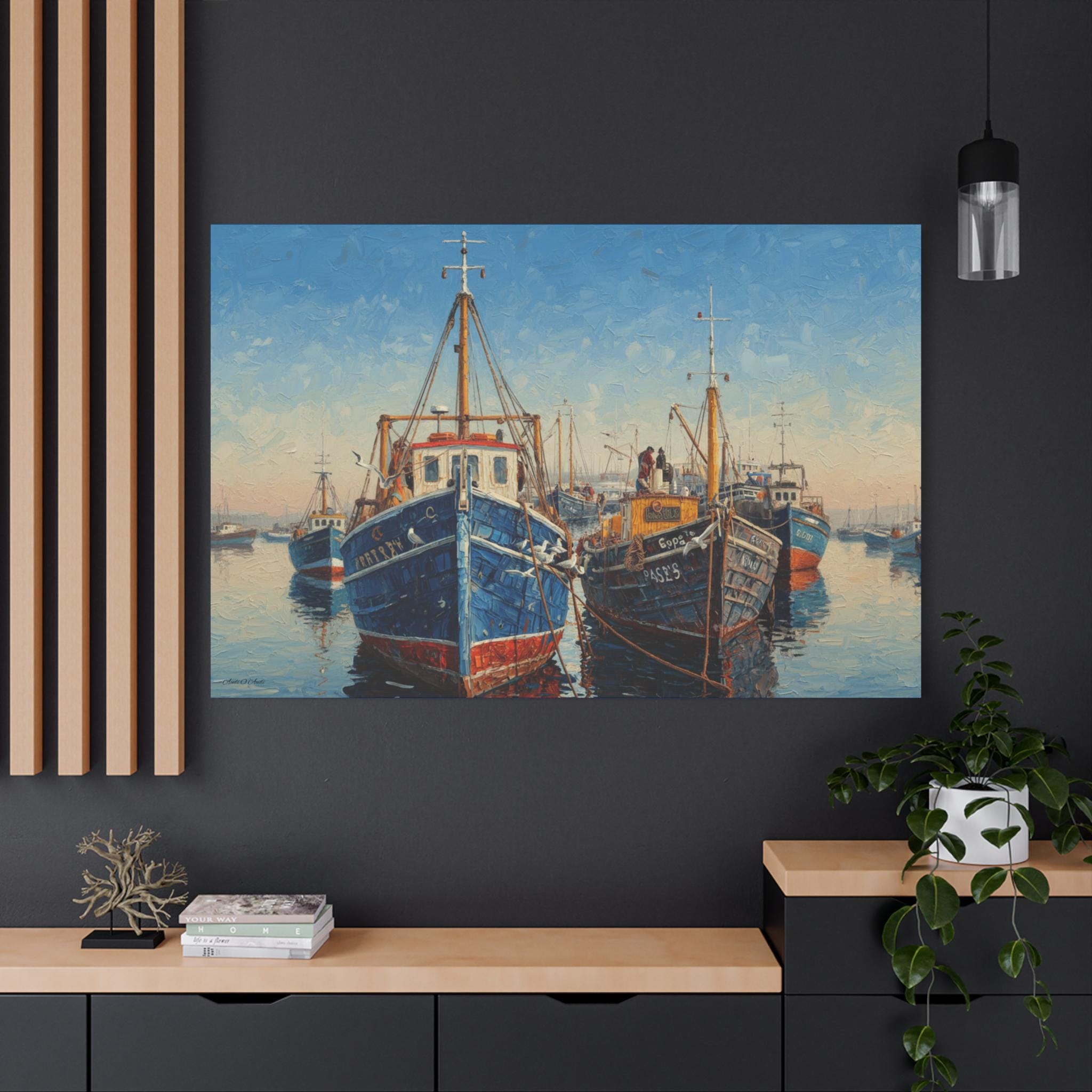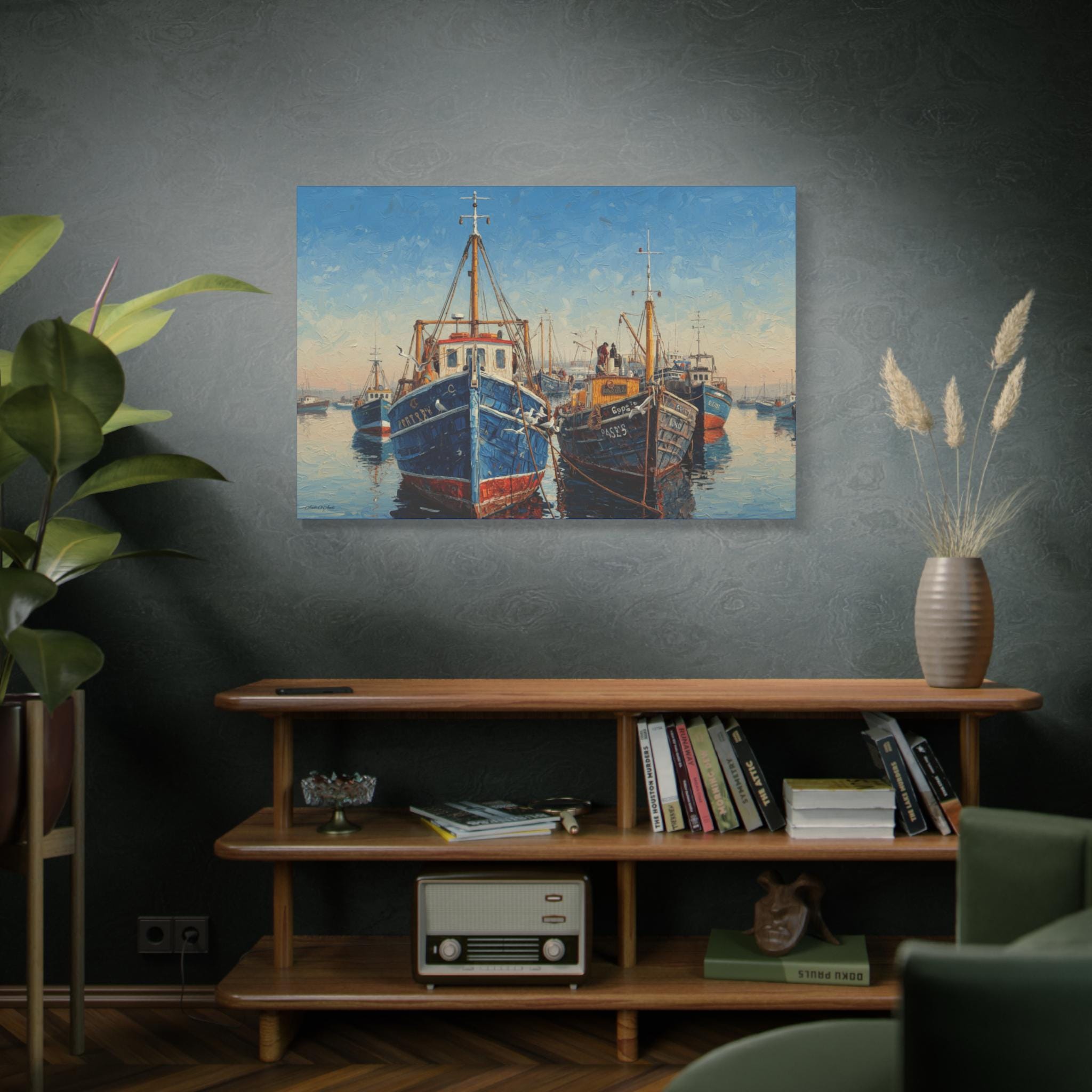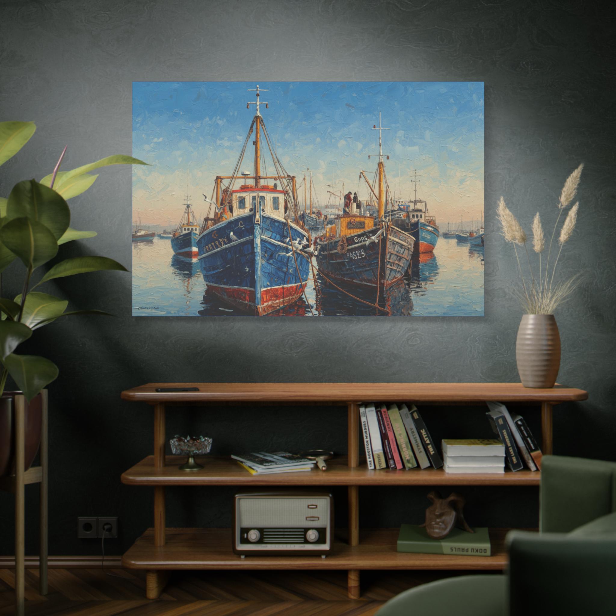 Salt and Stillness, Fishing Boat Canvas Wall Art, Nautical Décor, Coastal Art Print, Interior Design, Gift for Ocean Lovers