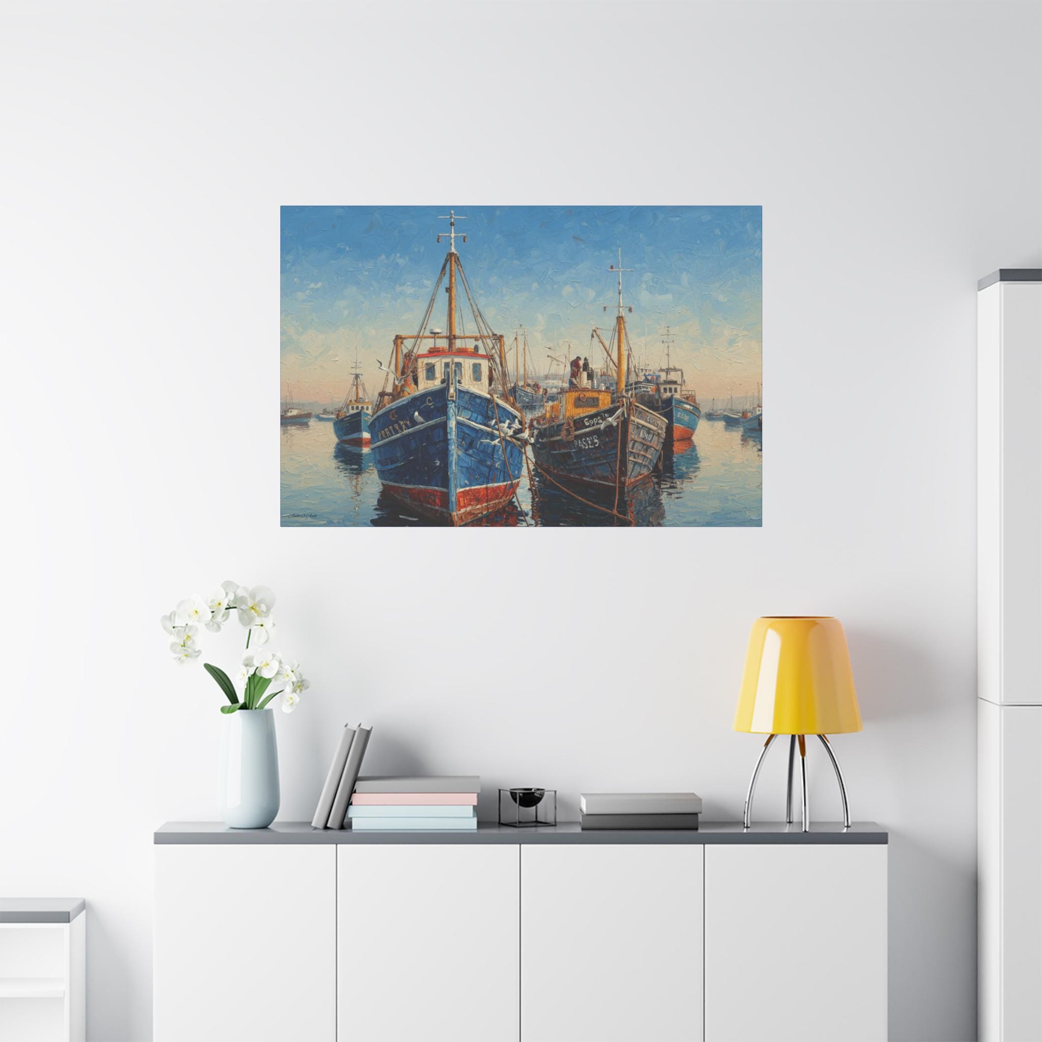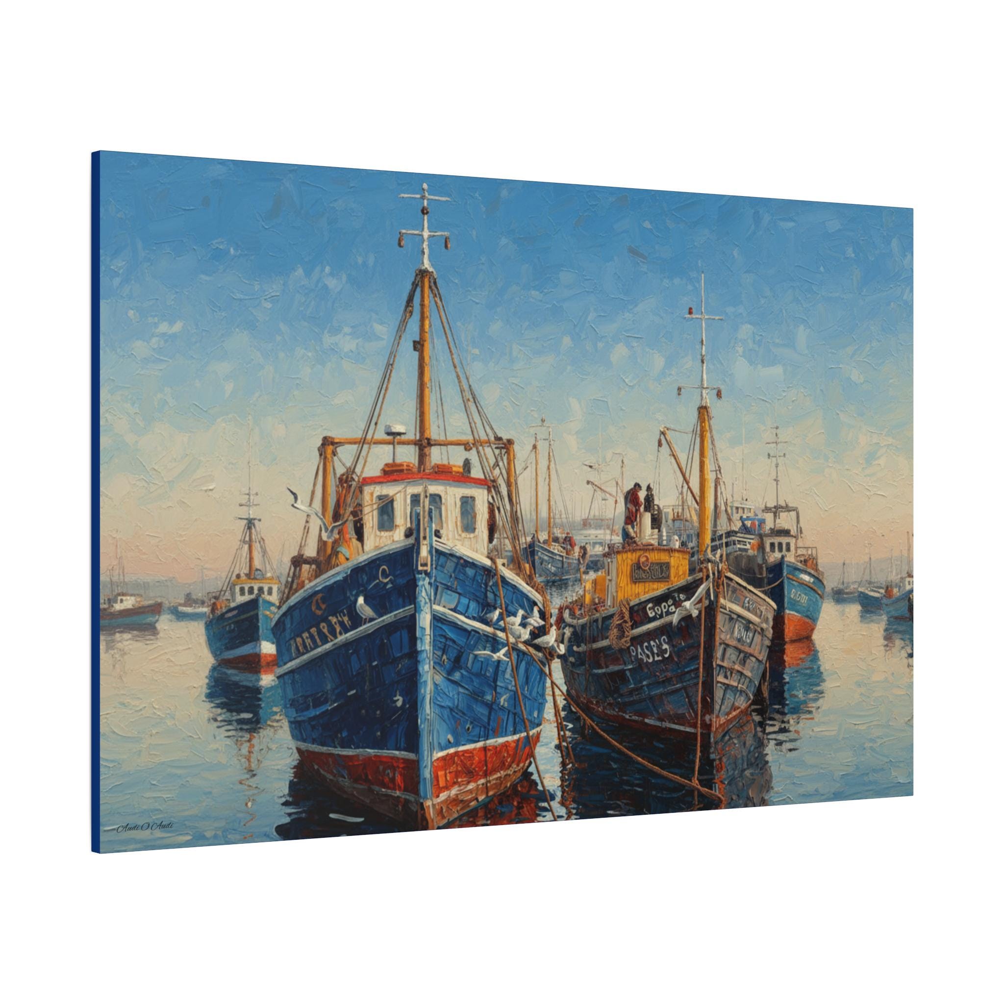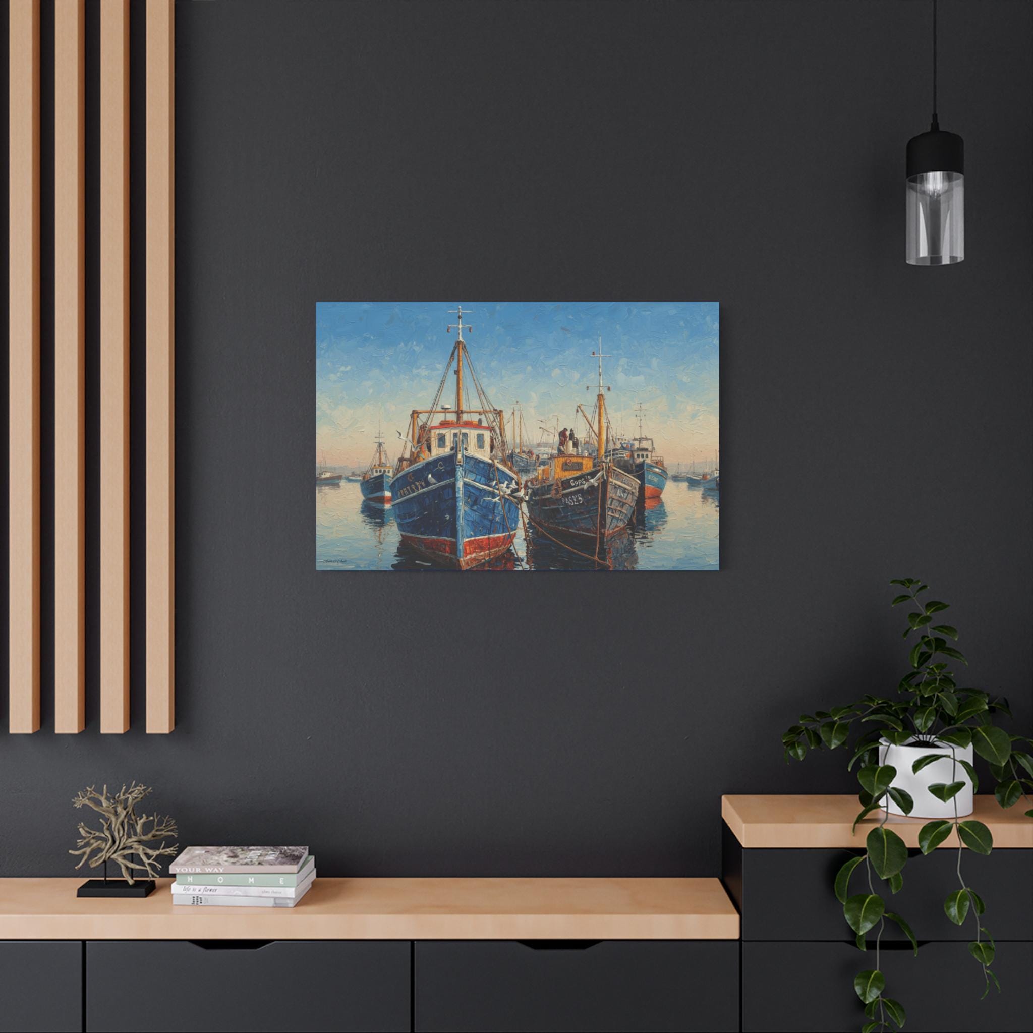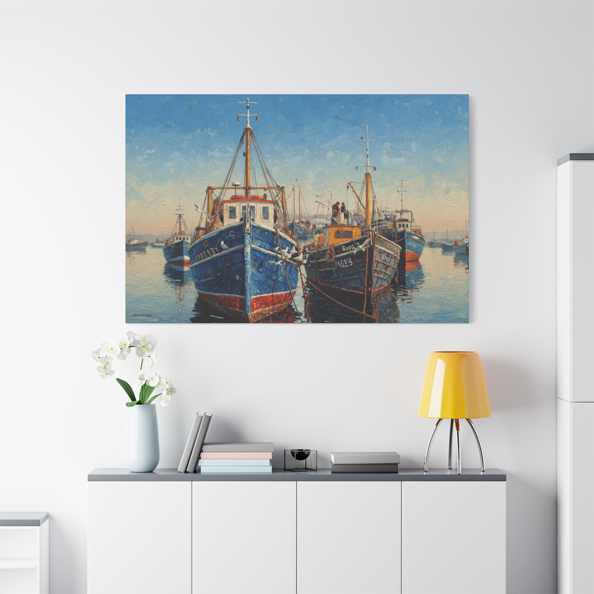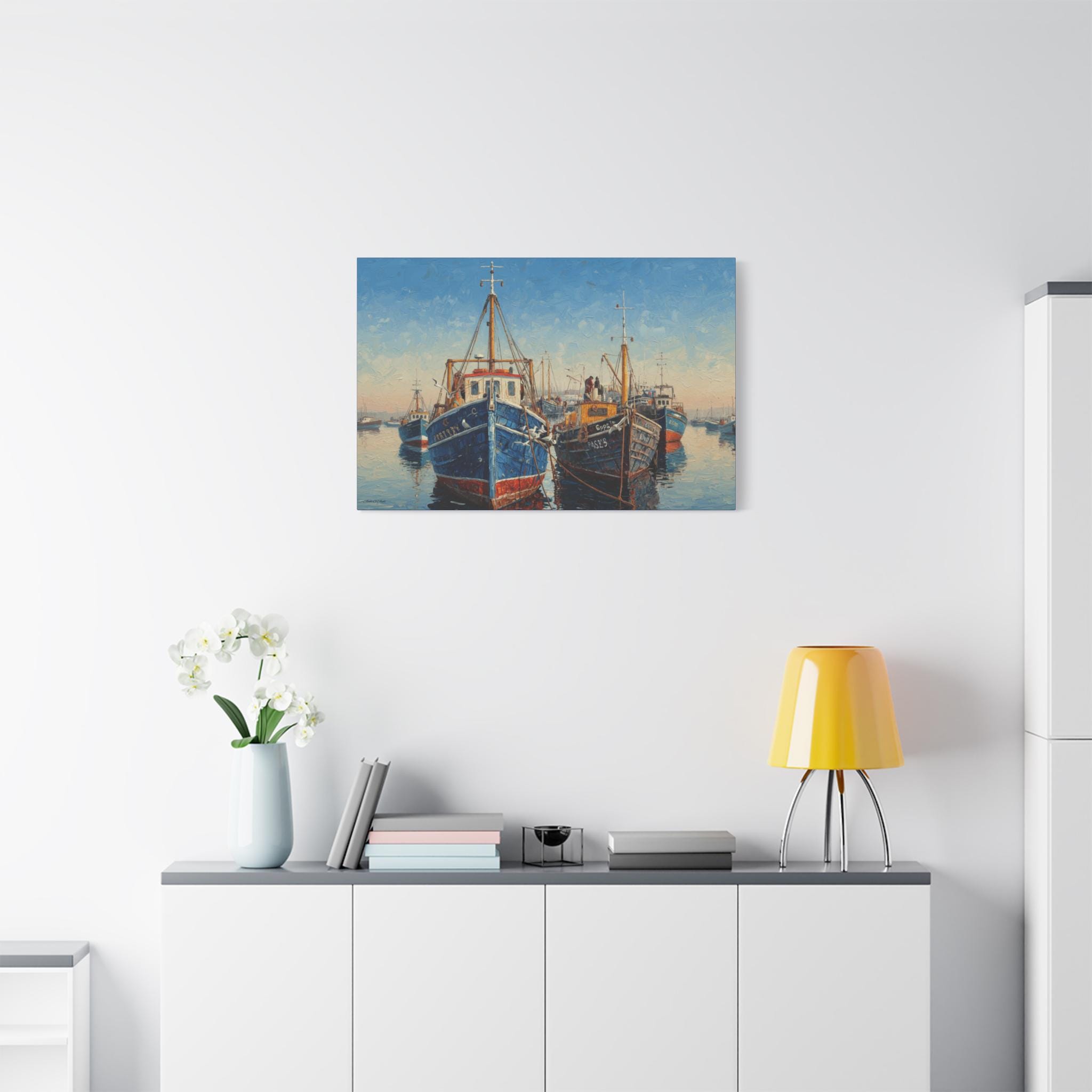 Salt and Stillness, Fishing Boat Canvas Wall Art, Nautical Décor, Coastal Art Print, Interior Design, Gift for Ocean Lovers