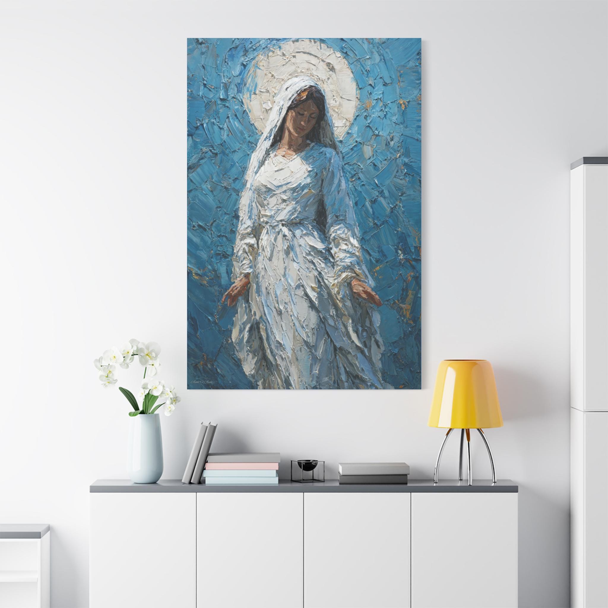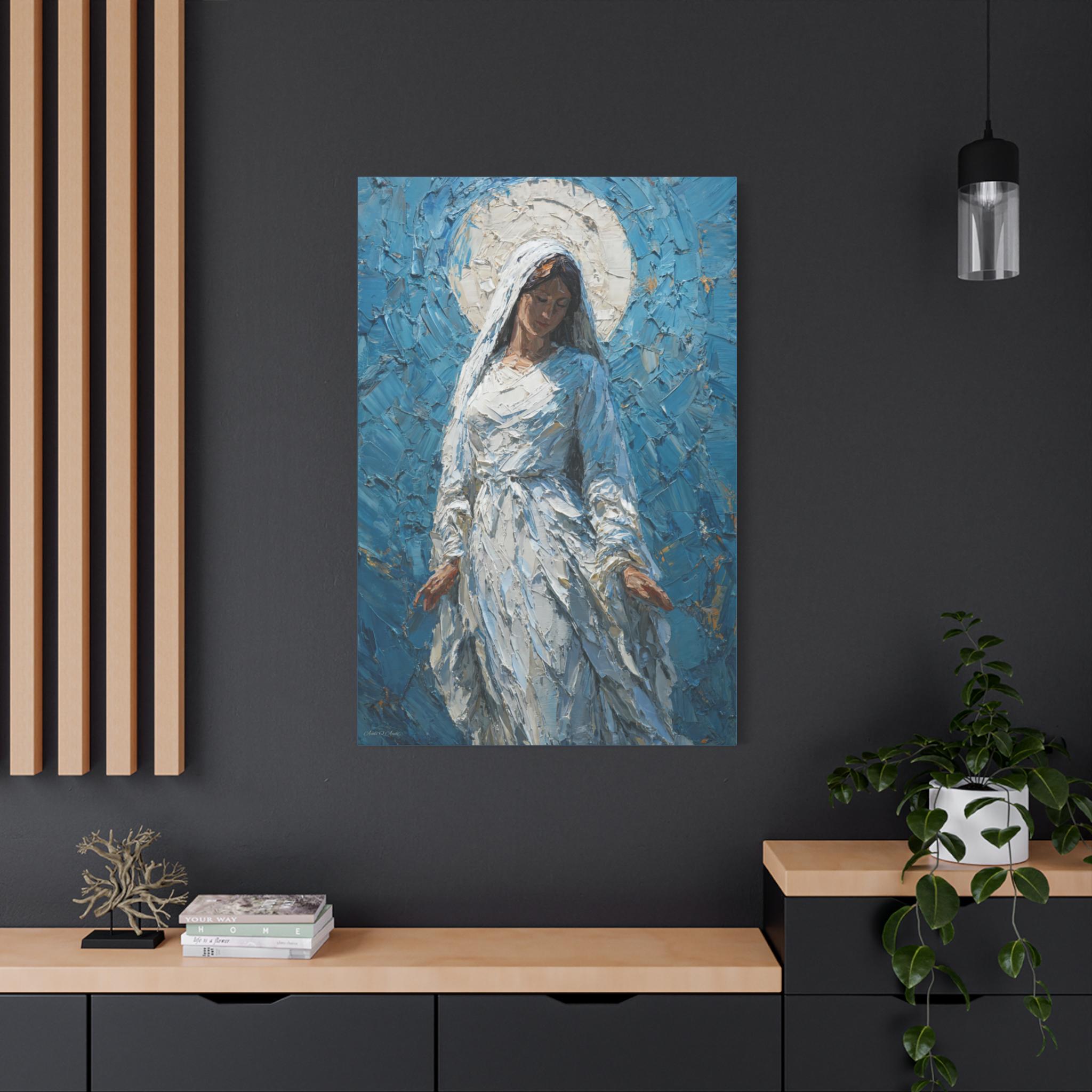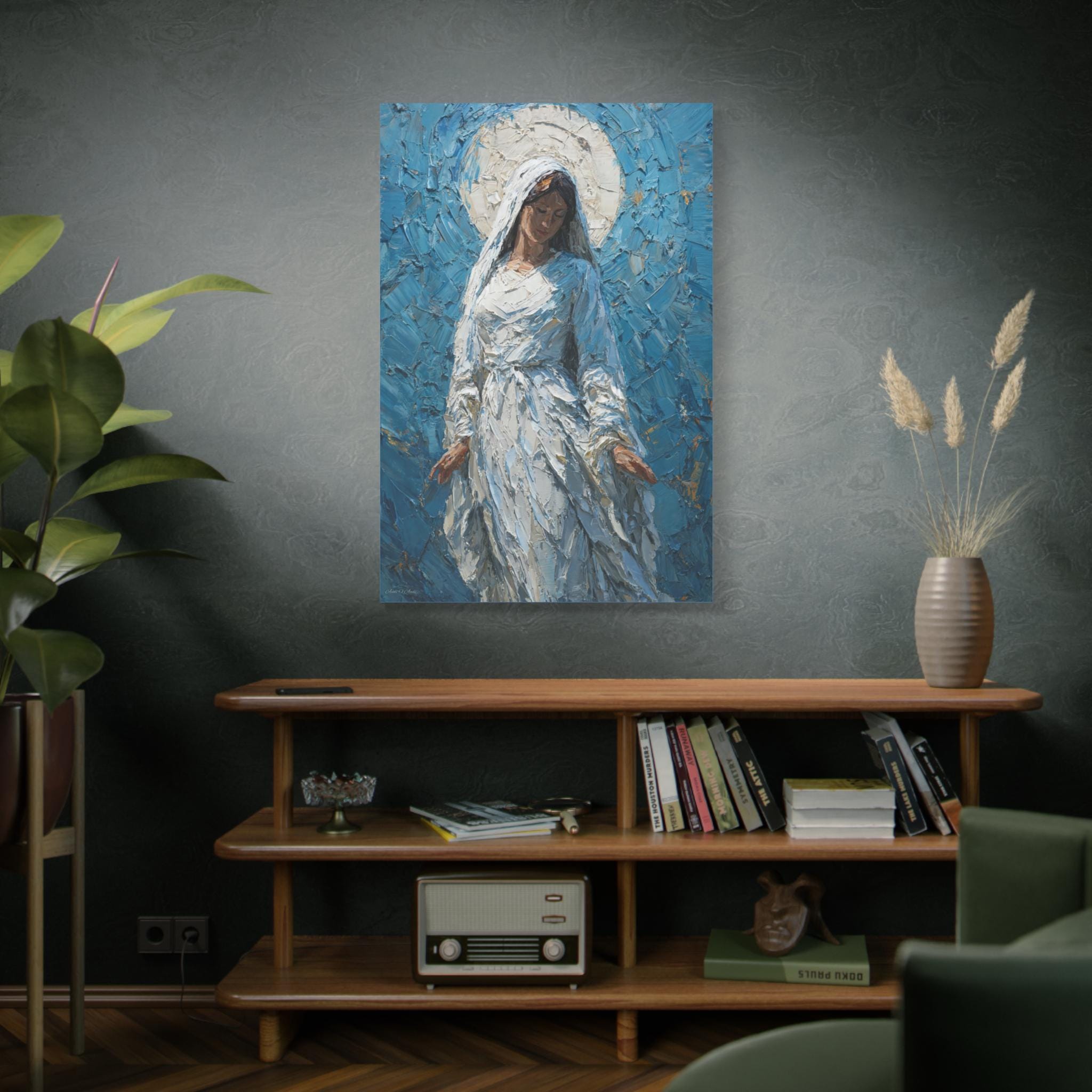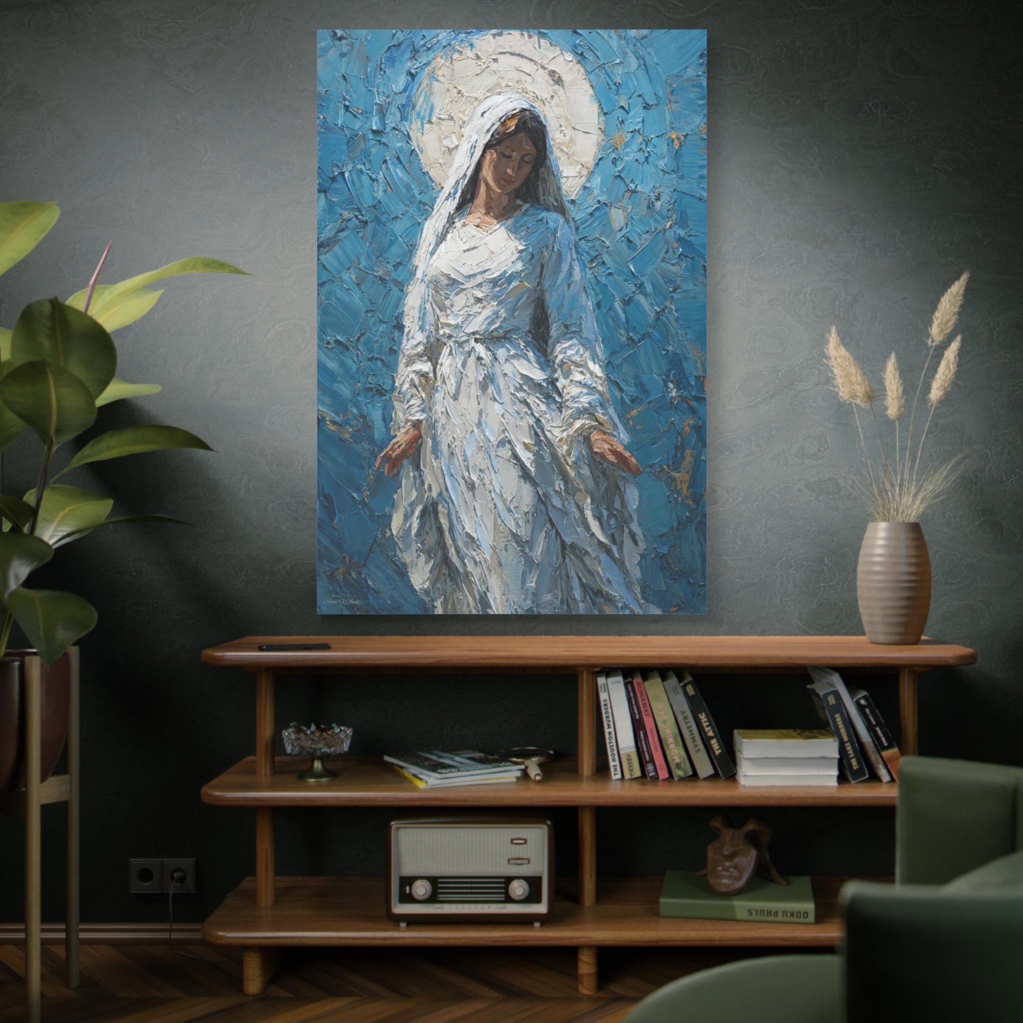 Quiet Grace in Blue, Virgin Mary Canvas Art, Religious Home Decor, Inspirational Gift for Her, Church Art, Spiritual Art Print