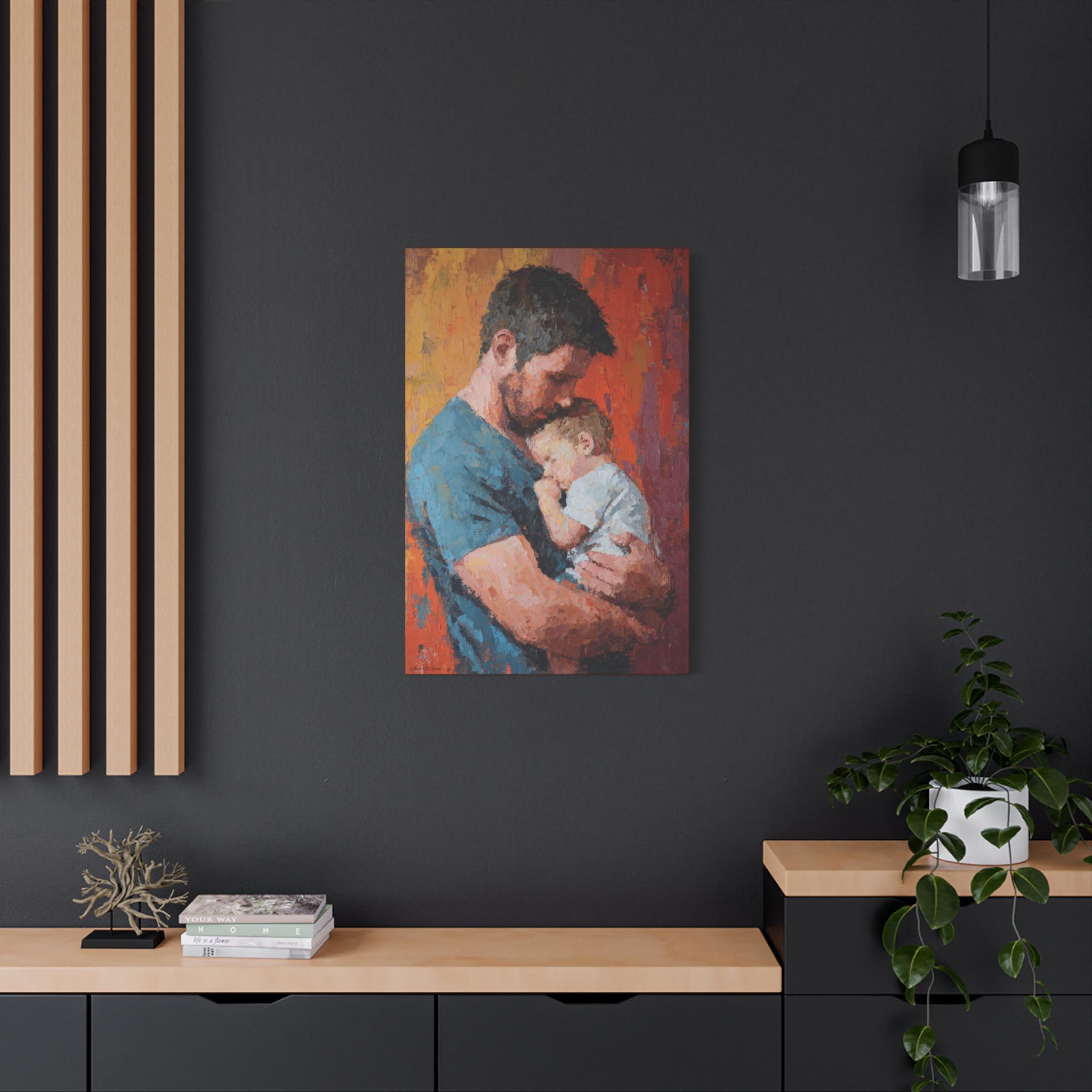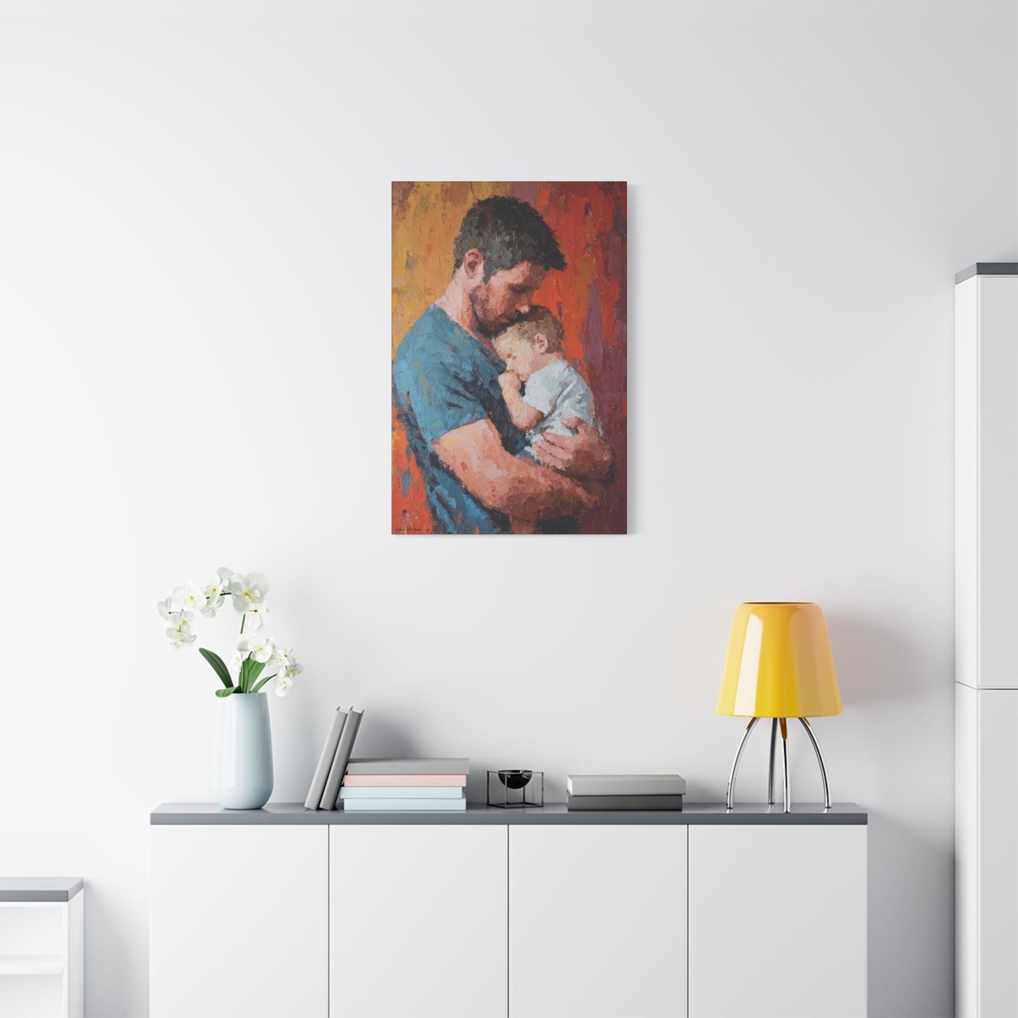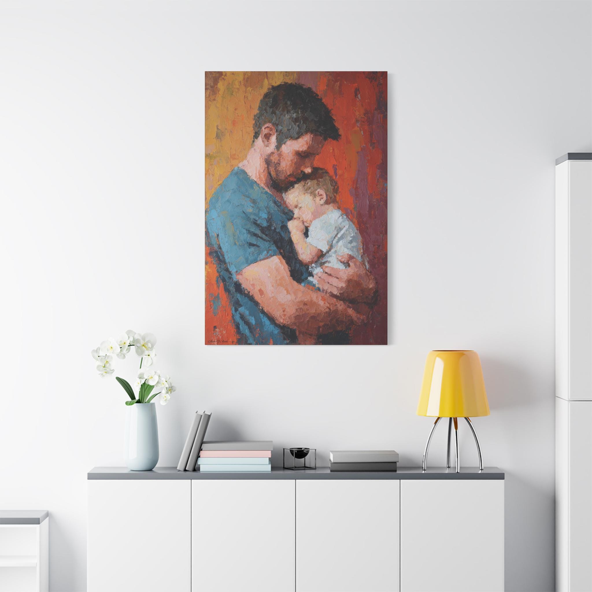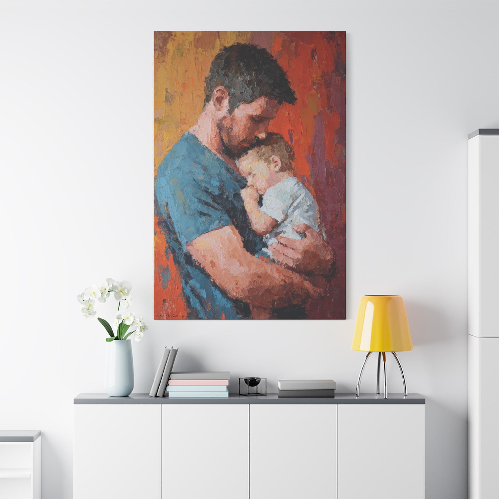 Transform your space with this stunning Stretched Canvas Art, perfect for adding a warm, heartfelt touch to your home. Featuring a beautifully captured moment between a parent and child, this artwork radiates love and affection, making it an ideal focal point for any room. It effortlessly complements various decor styles, creating a cozy atmosphere that's inviting and serene. Perfect for family-oriented individuals, new parents, or anyone looking to celebrate the bond of parenthood. This canvas is suitable for gifting on special occasions such as Father's Day, birthdays, baby showers, or holidays when cherishing family is at the forefront. A remarkable addition to your home or as a thoughtful gift that speaks volumes about connection and love.