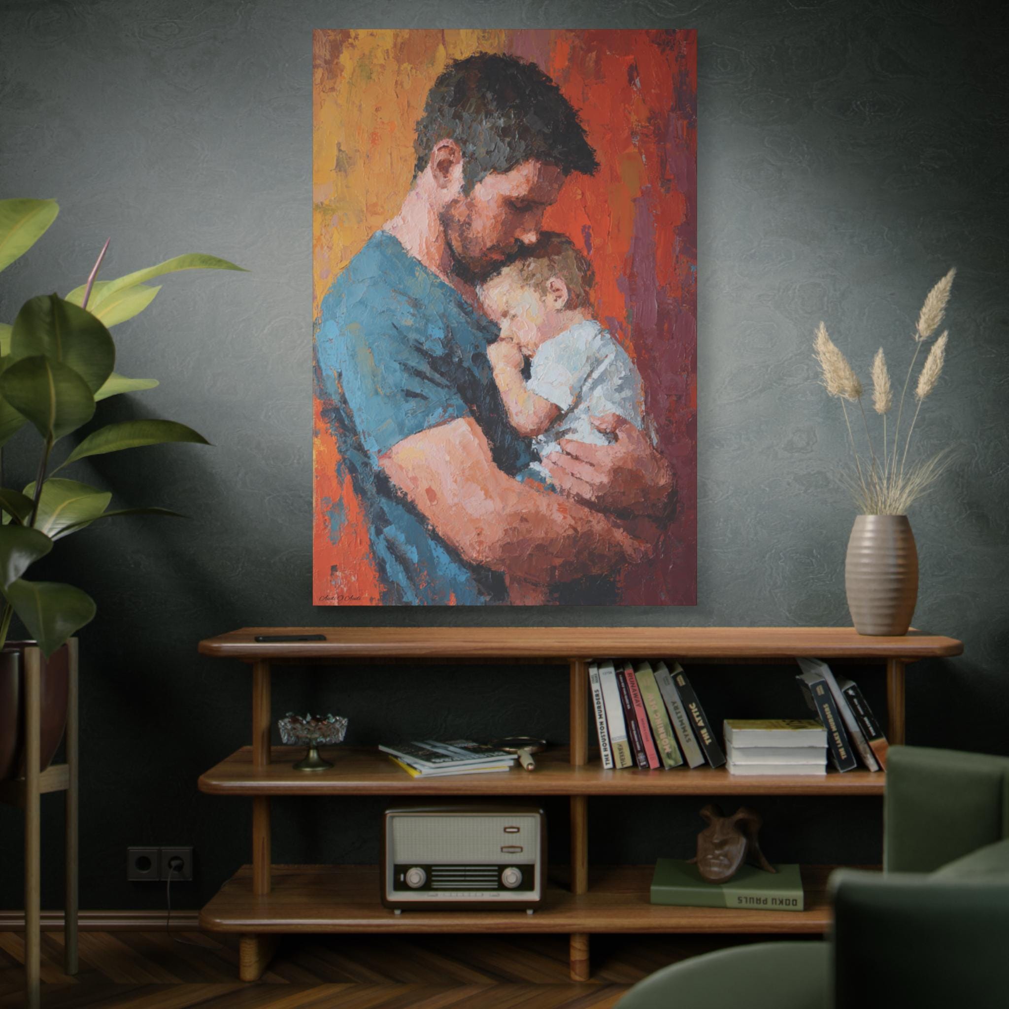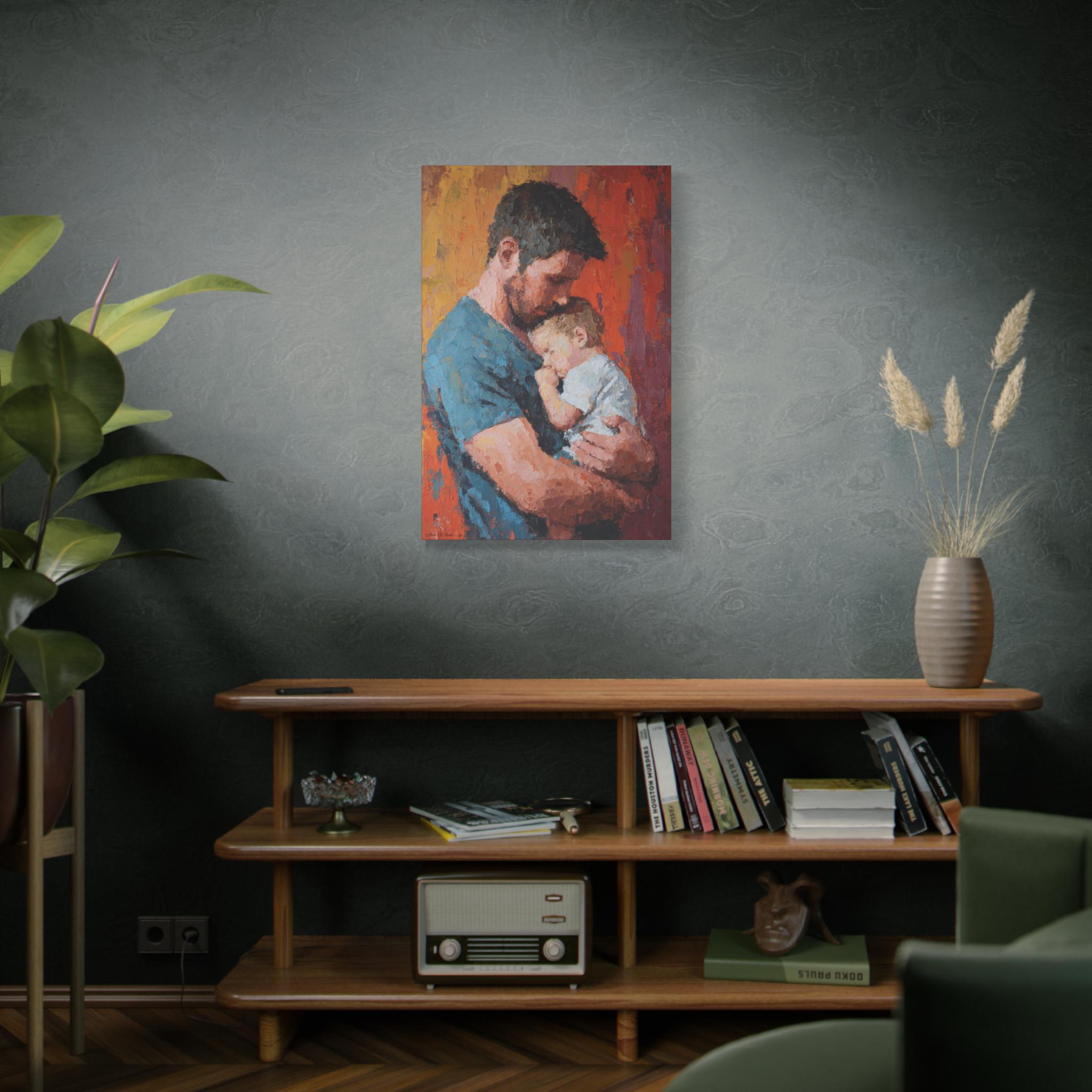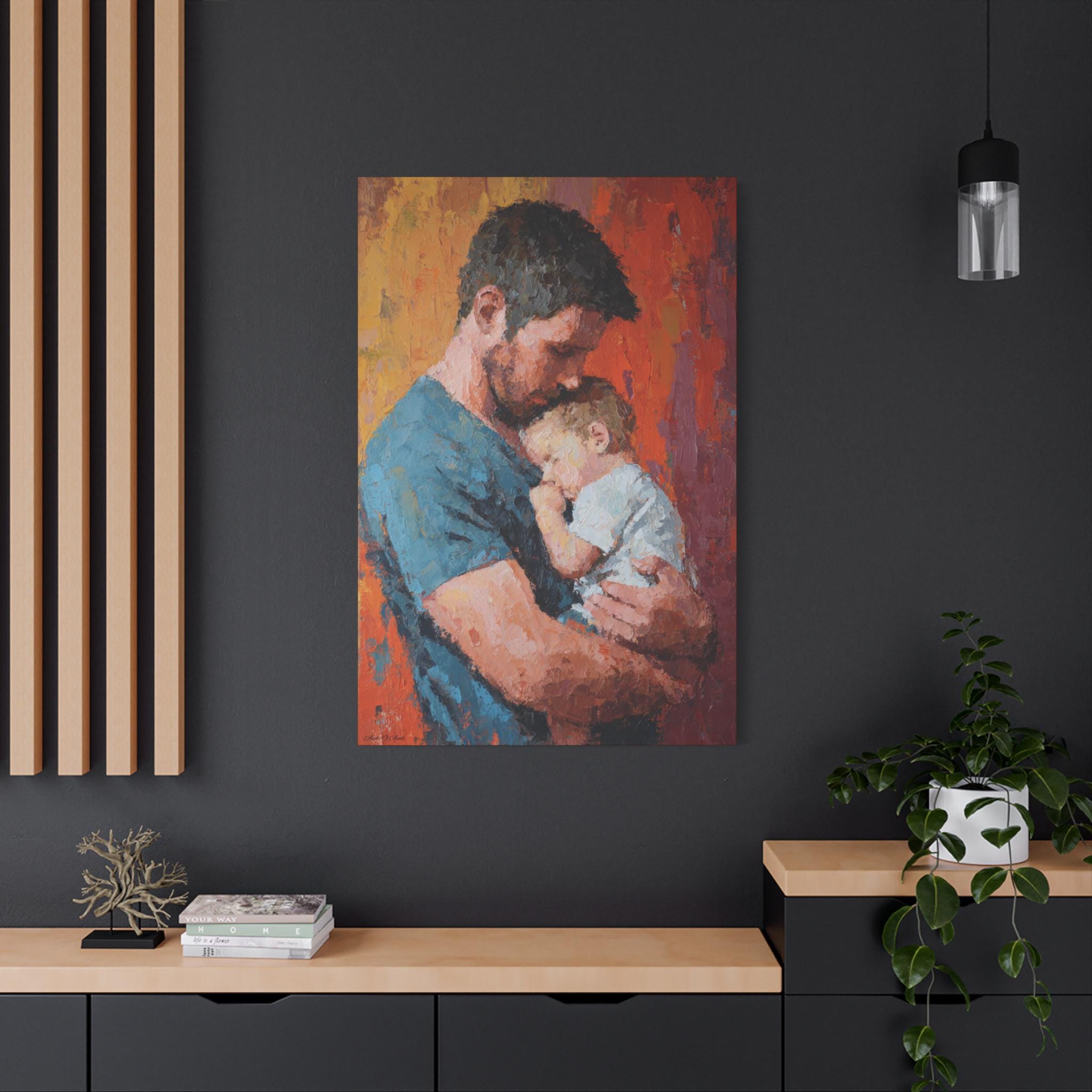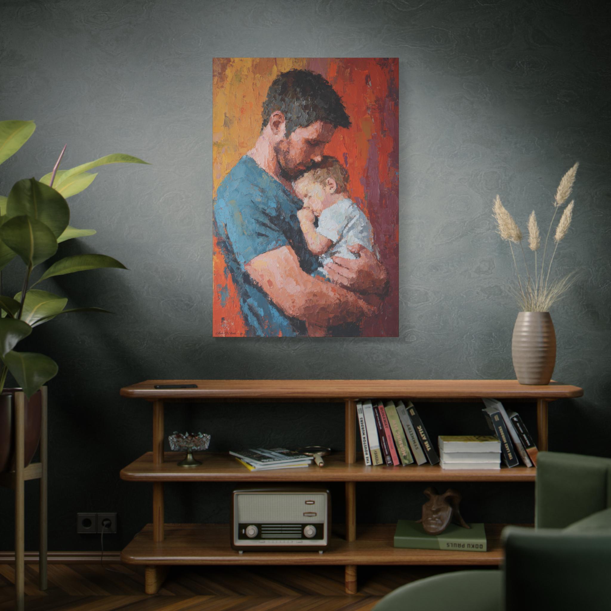 Transform your space with this stunning Stretched Canvas Art, perfect for adding a warm, heartfelt touch to your home. Featuring a beautifully captured moment between a parent and child, this artwork radiates love and affection, making it an ideal focal point for any room. It effortlessly complements various decor styles, creating a cozy atmosphere that's inviting and serene. Perfect for family-oriented individuals, new parents, or anyone looking to celebrate the bond of parenthood. This canvas is suitable for gifting on special occasions such as Father's Day, birthdays, baby showers, or holidays when cherishing family is at the forefront. A remarkable addition to your home or as a thoughtful gift that speaks volumes about connection and love.