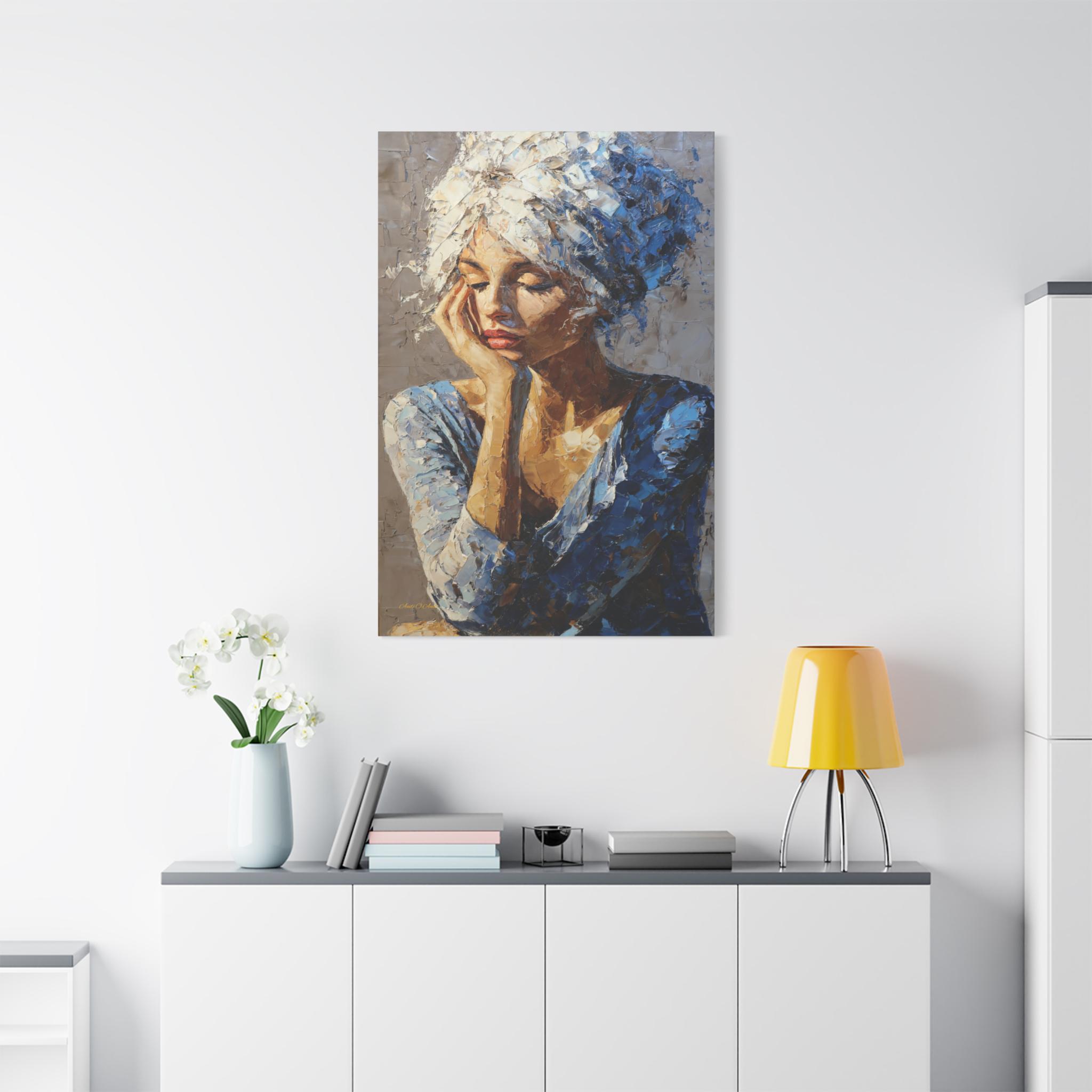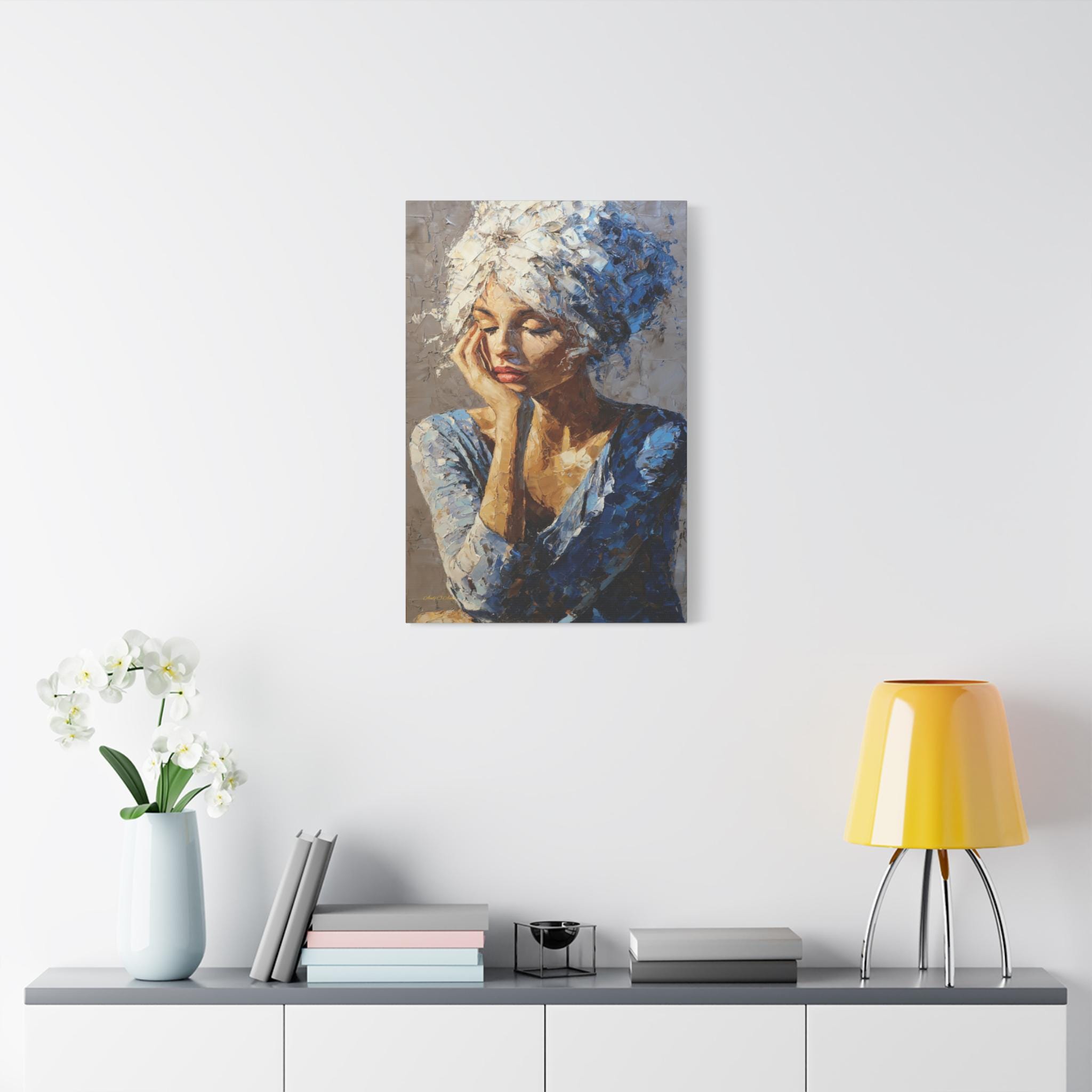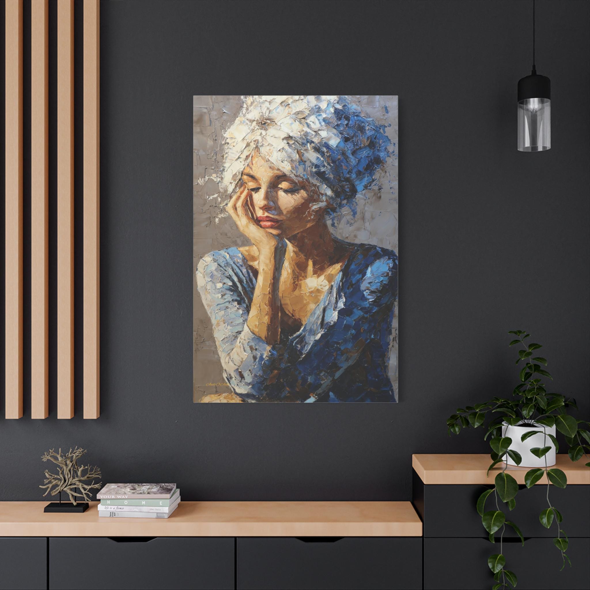 Gallery-Quality Canvas: Printed on 100% cotton fabric (400gsm) which provides a substantial, museum-grade feel and ensures the rich blues and warm skin tones look incredibly vibrant.