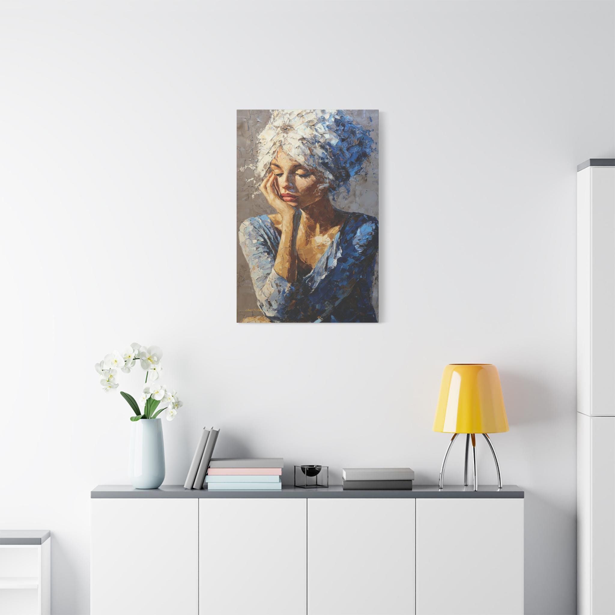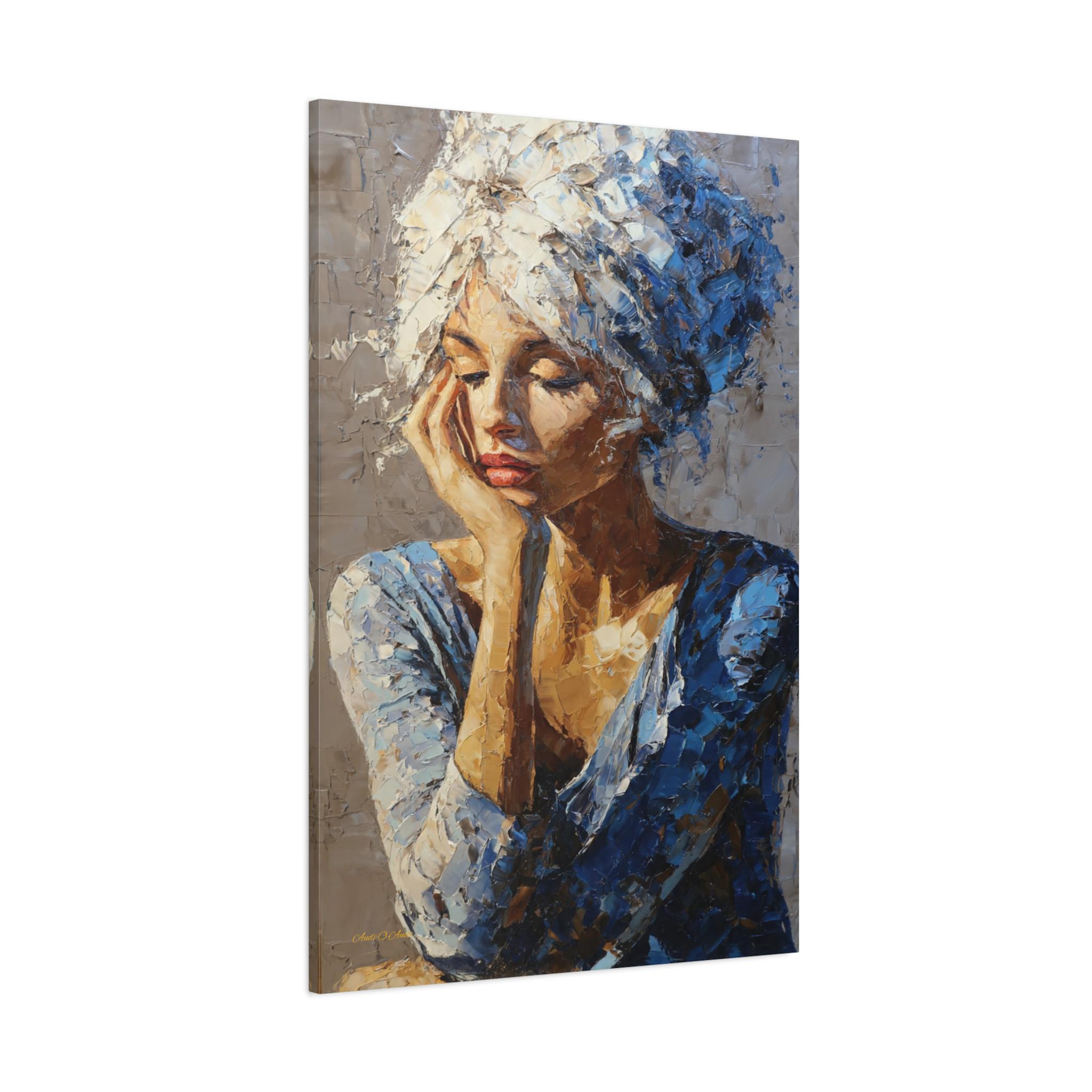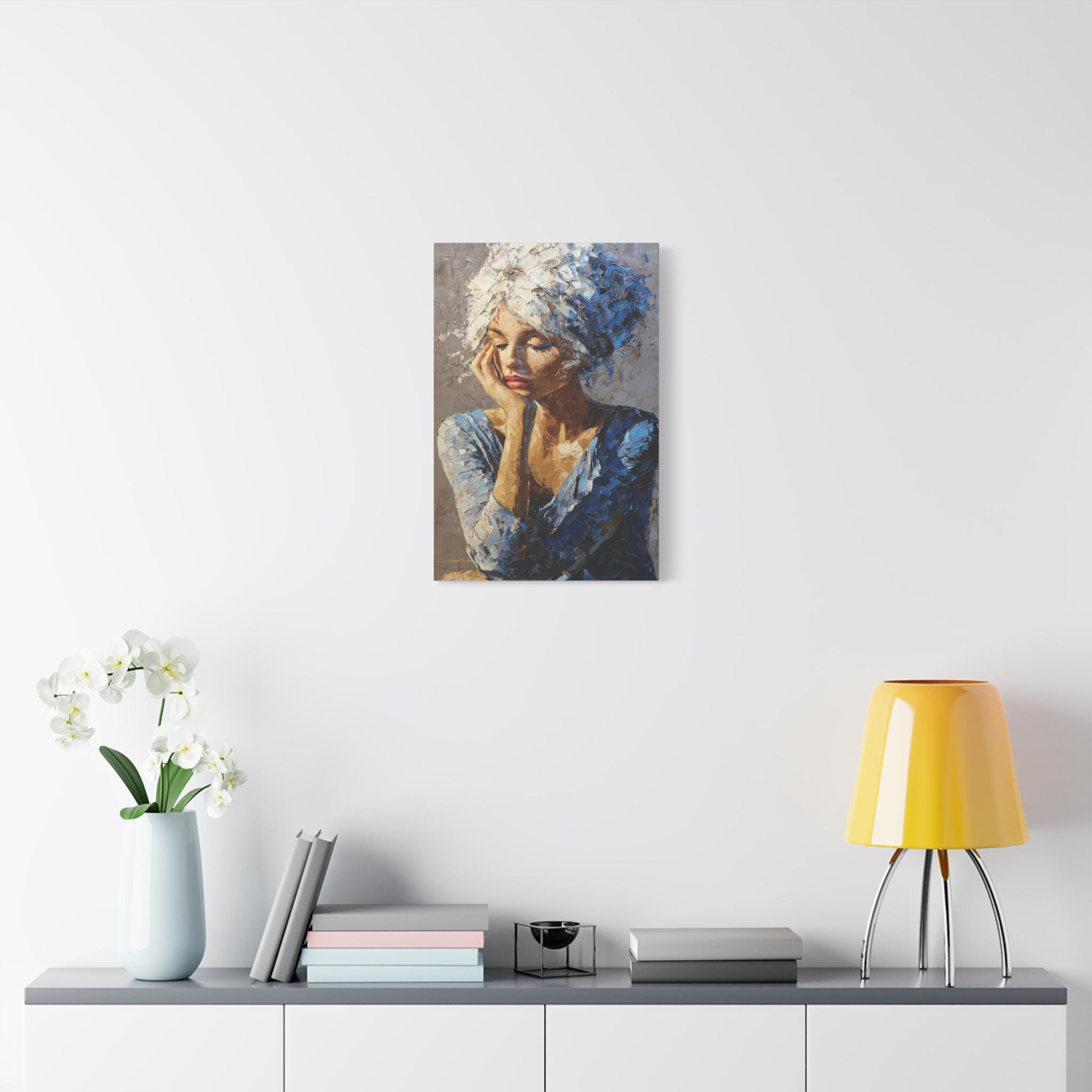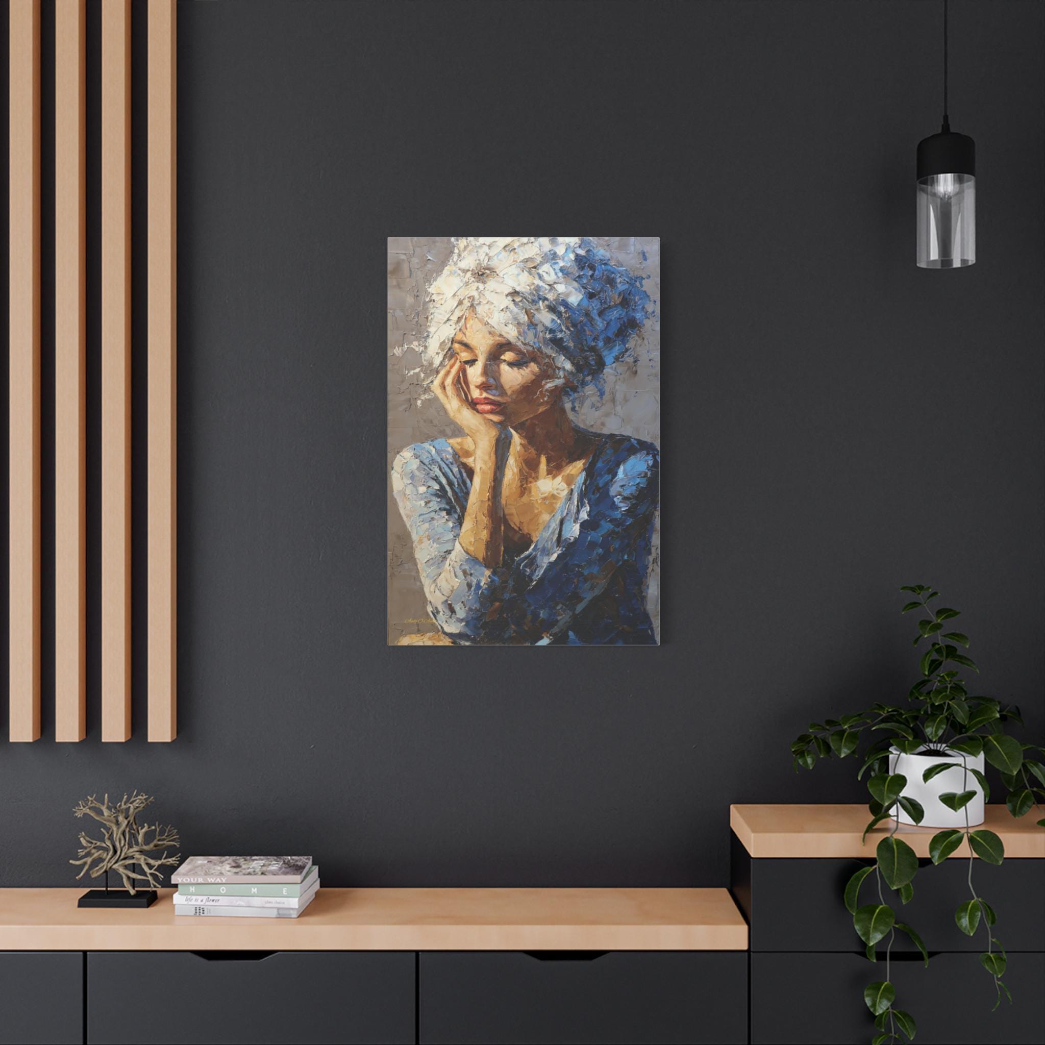 Gallery-Quality Canvas: Printed on 100% cotton fabric (400gsm) which provides a substantial, museum-grade feel and ensures the rich blues and warm skin tones look incredibly vibrant.