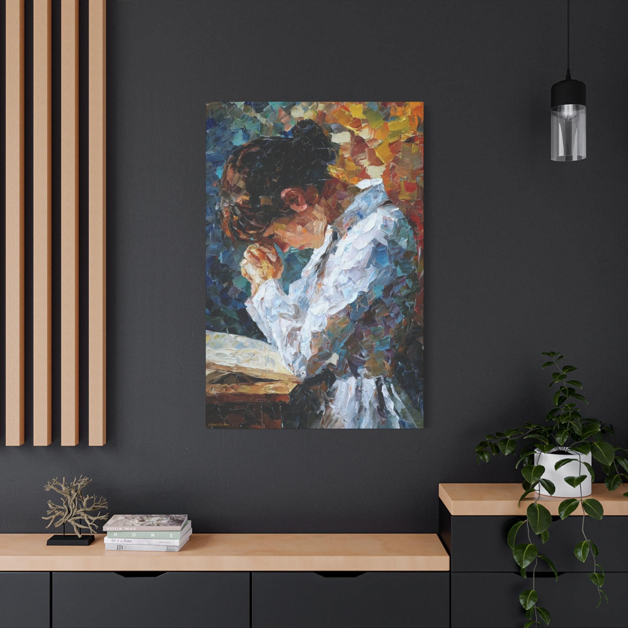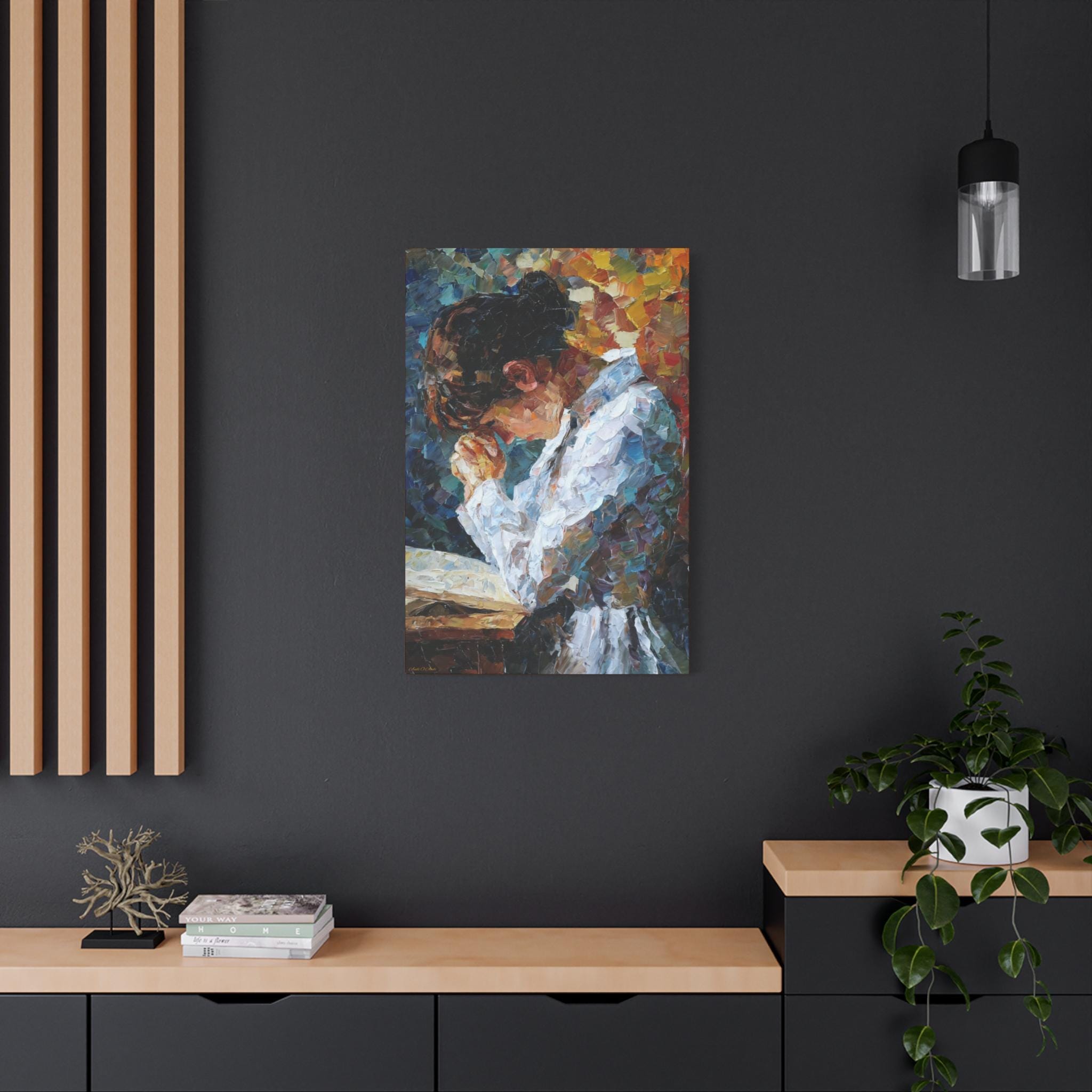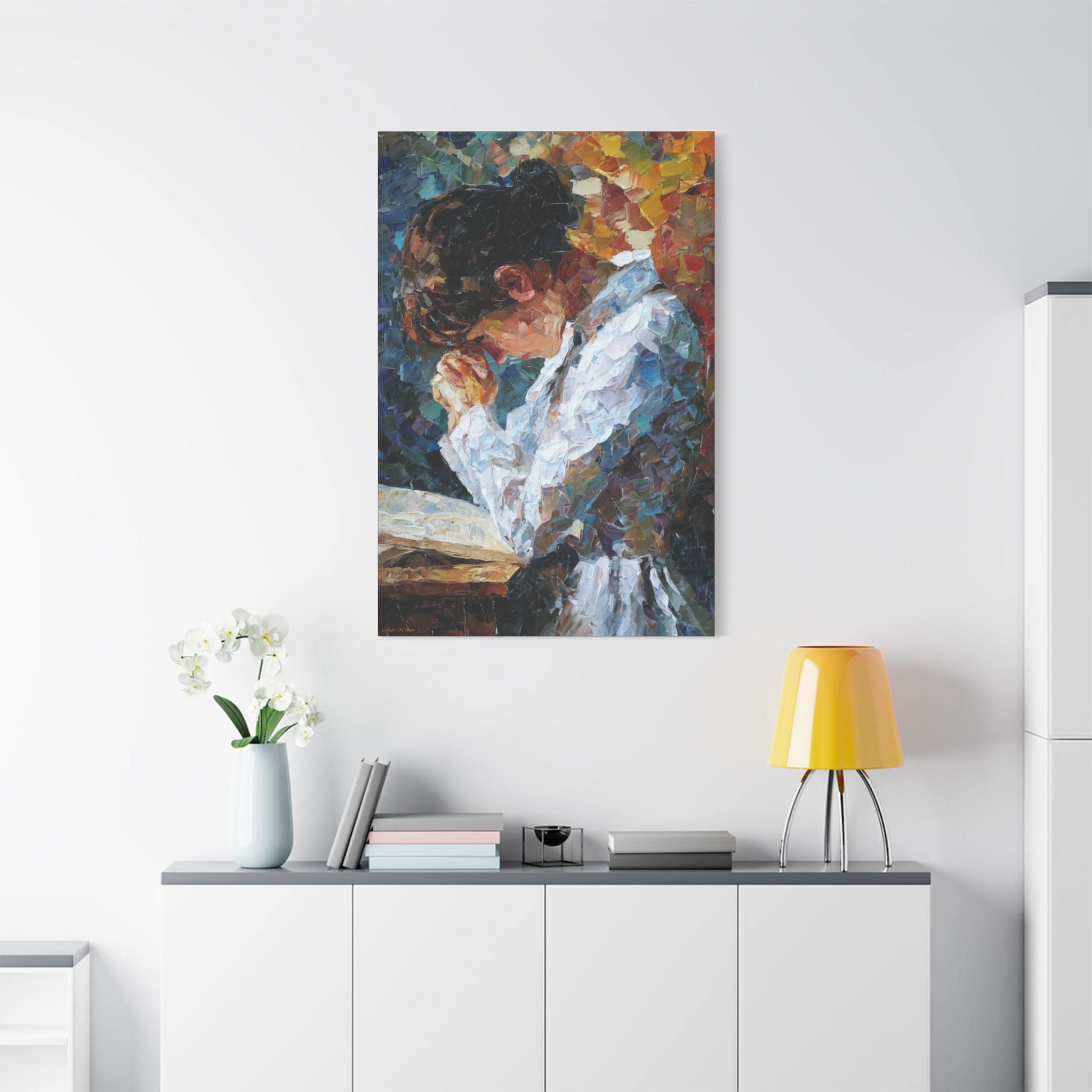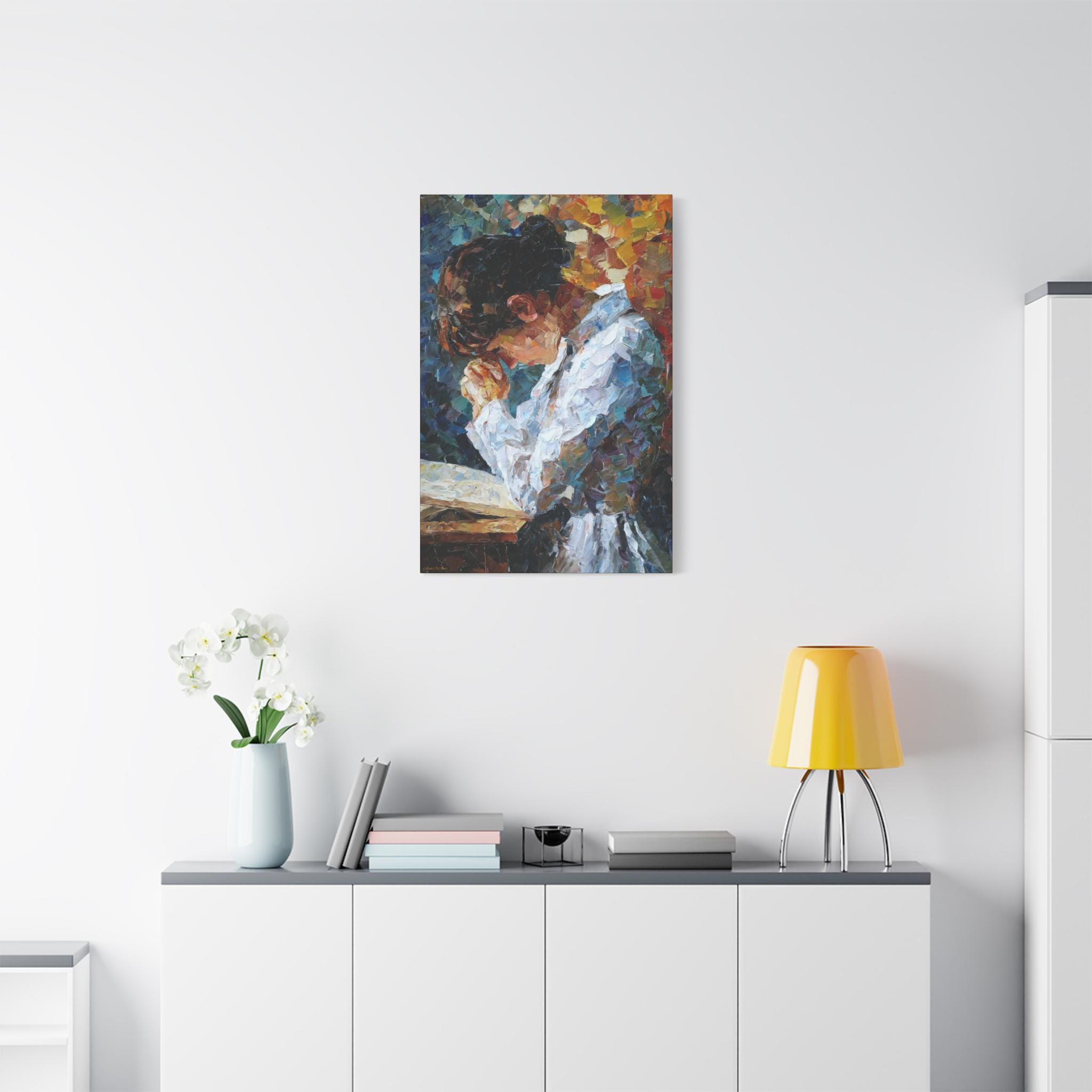 Elevate your living space with this Prayer of Color Canvas Print featuring a praying woman, perfect for adding a touch of spirituality and inspiration to your home decor. This print makes a meaningful gift for someone who values prayer and spiritual art, ideal for occasions like Christmas, Easter, birthdays, or housewarmings.