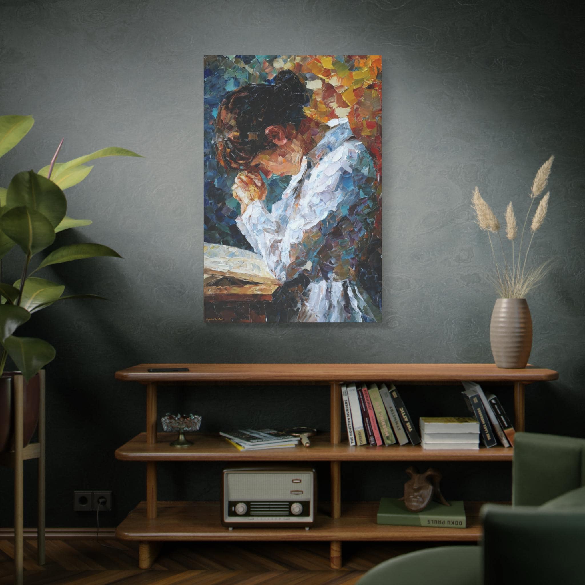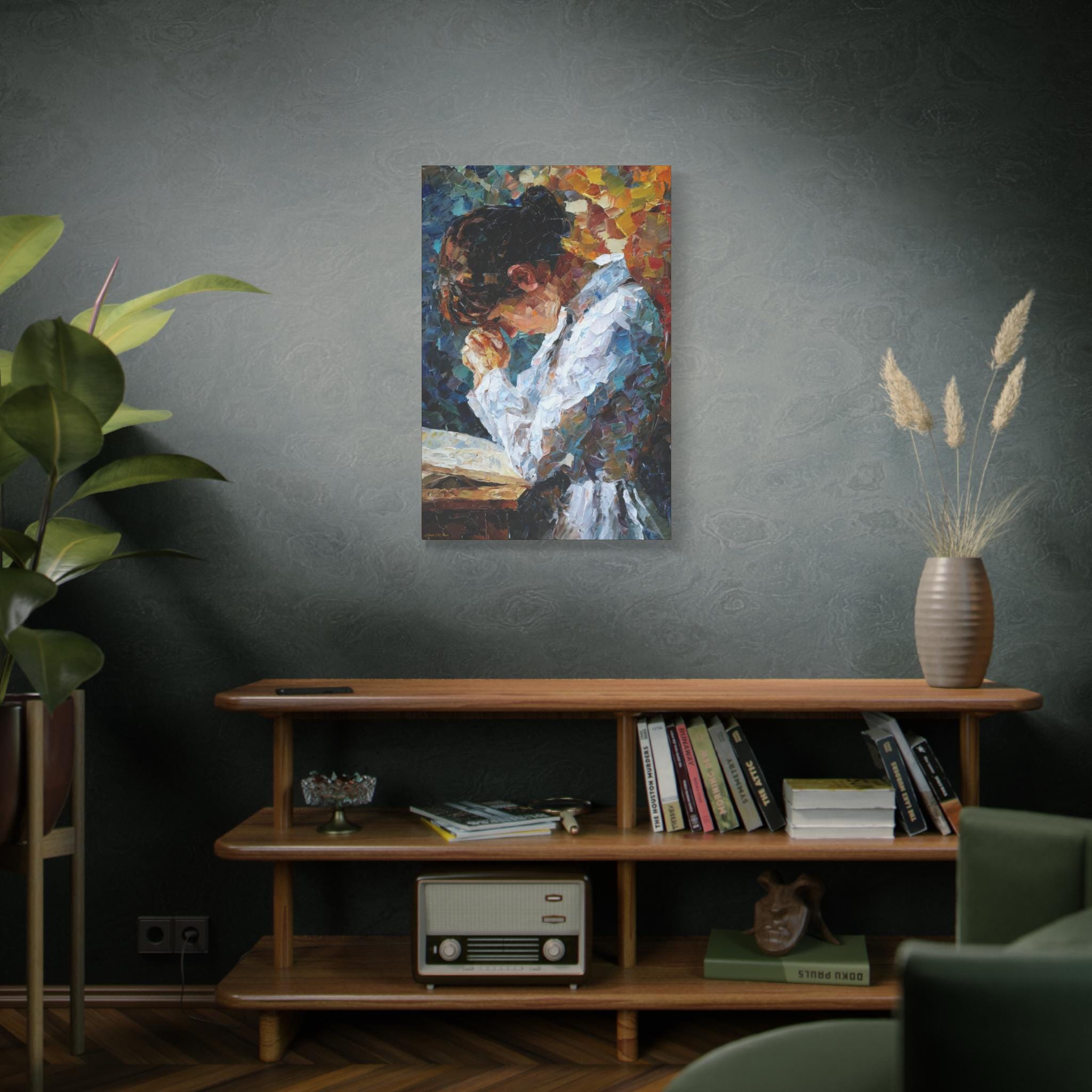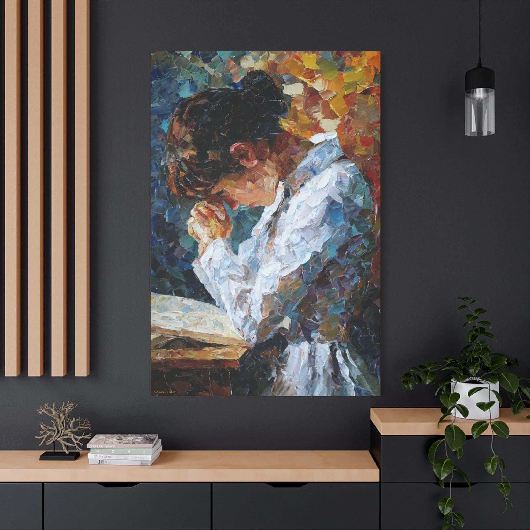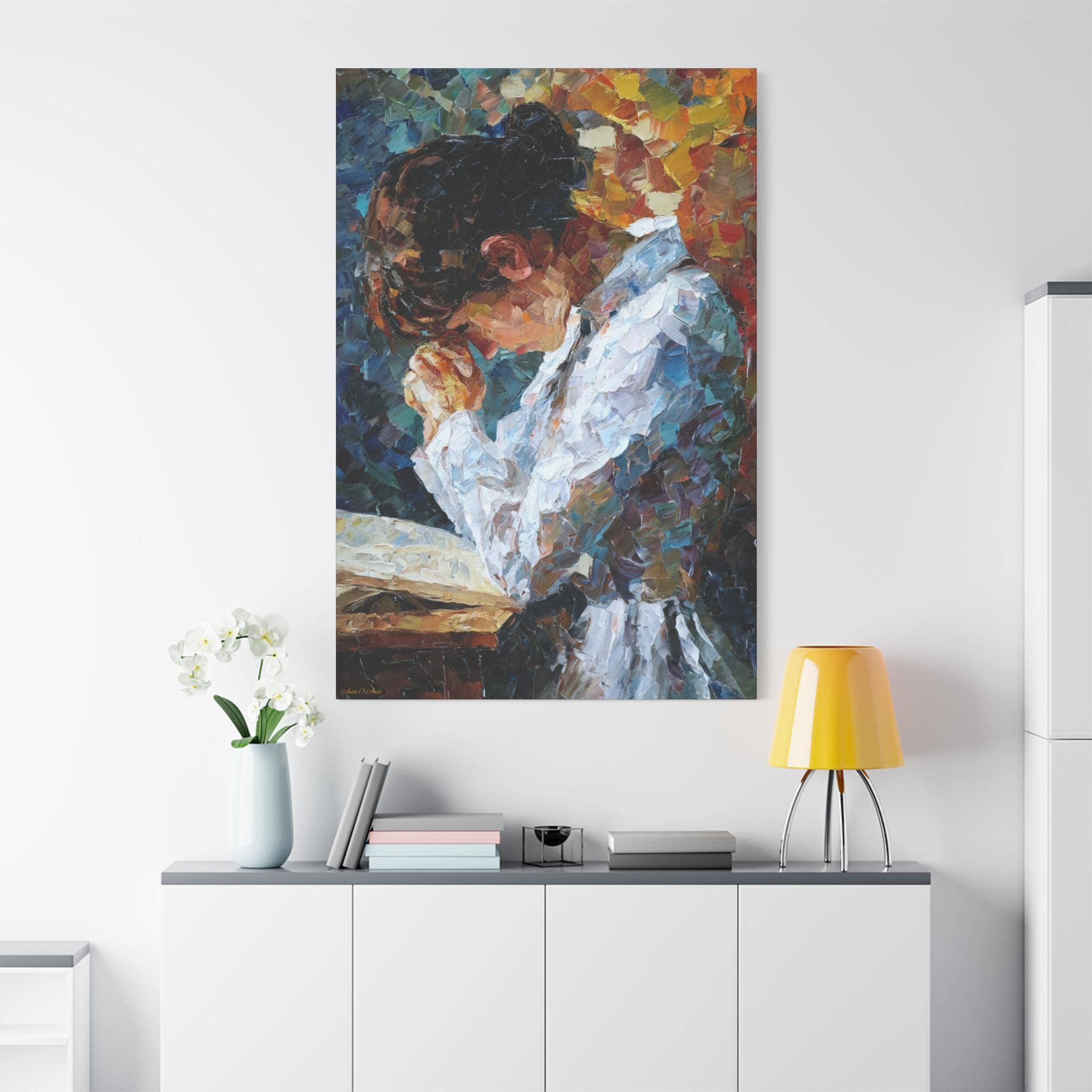 Elevate your living space with this Prayer of Color Canvas Print featuring a praying woman, perfect for adding a touch of spirituality and inspiration to your home decor. This print makes a meaningful gift for someone who values prayer and spiritual art, ideal for occasions like Christmas, Easter, birthdays, or housewarmings.