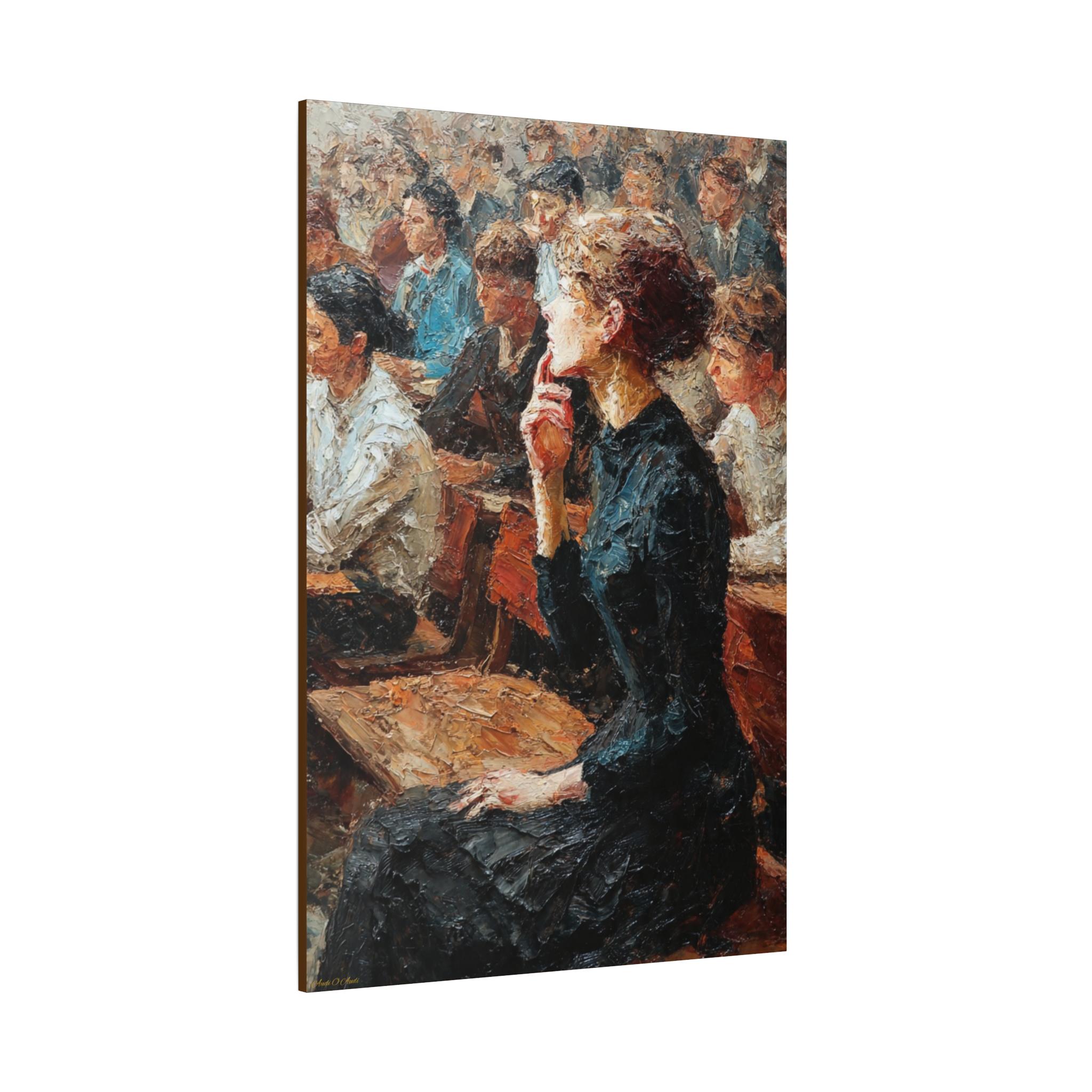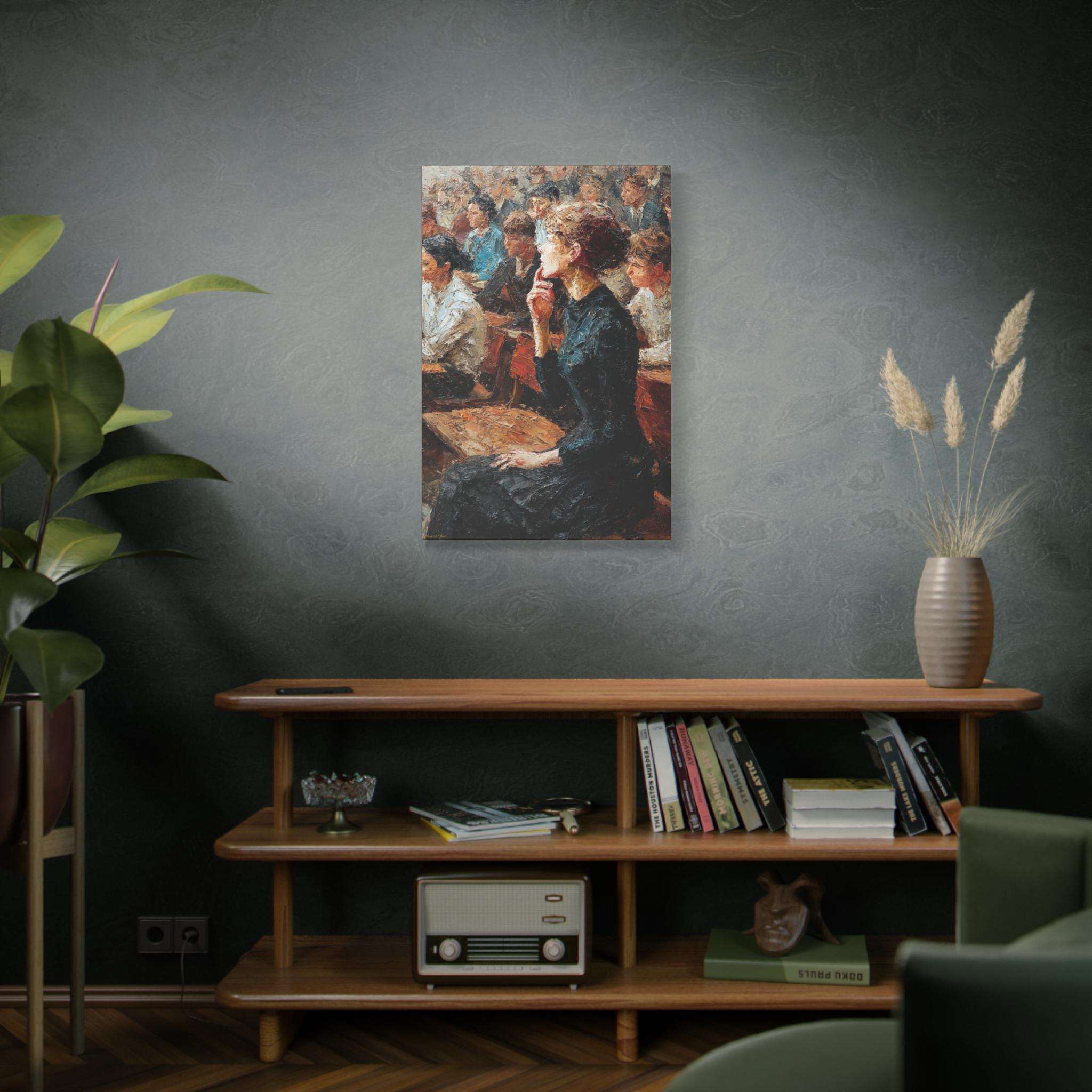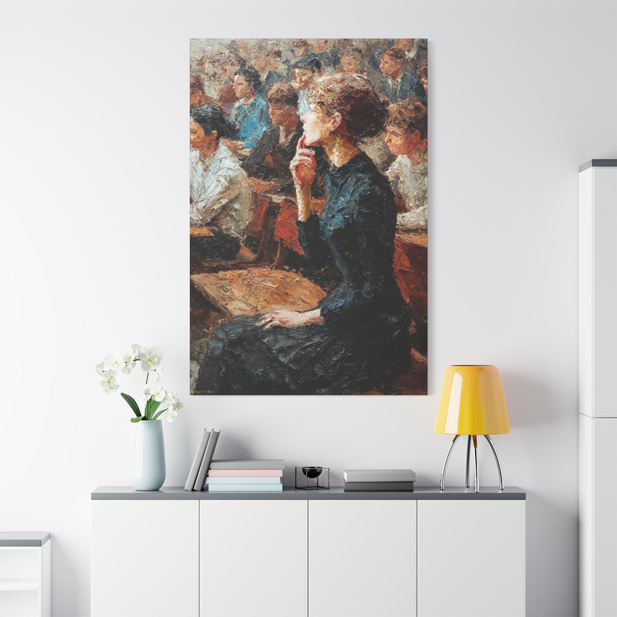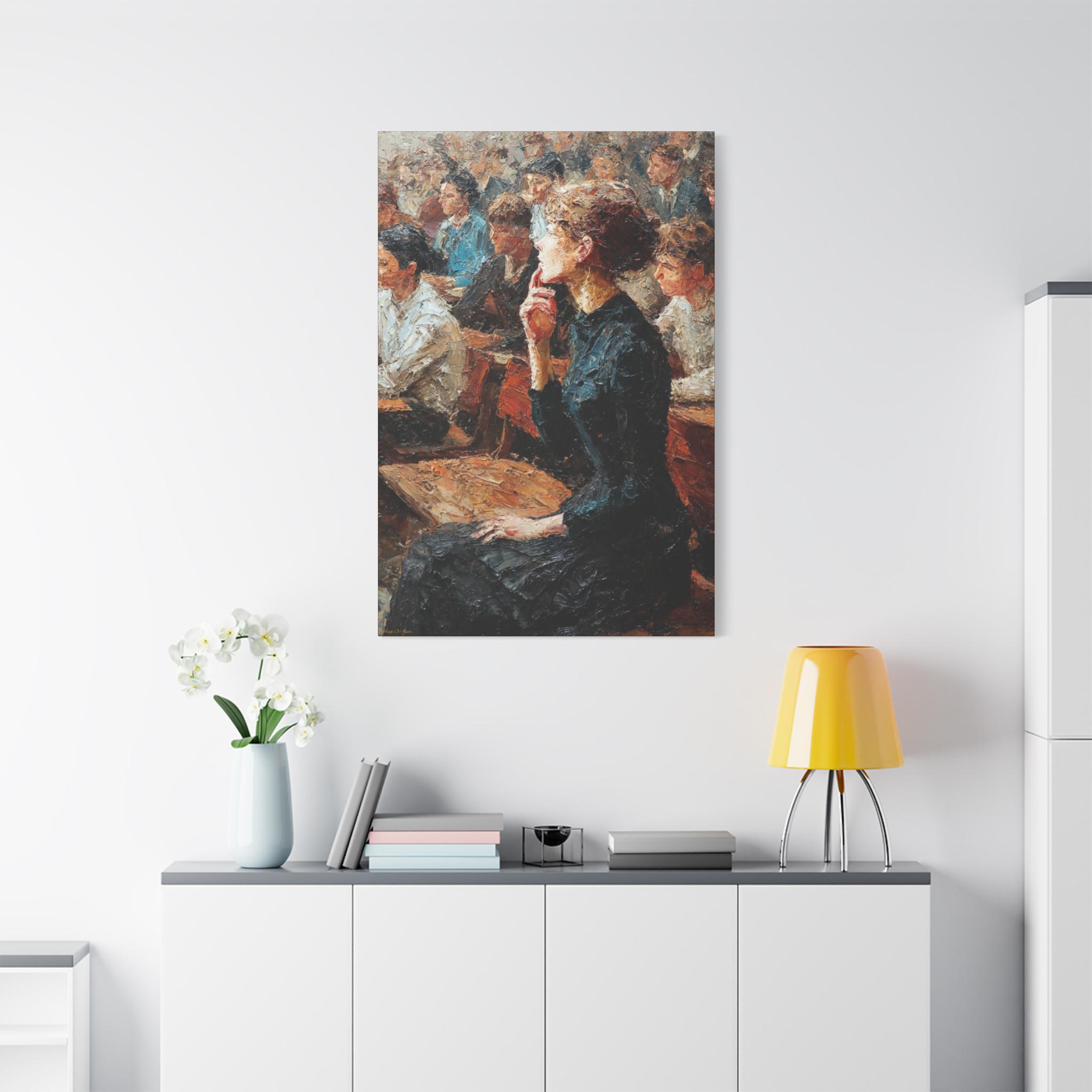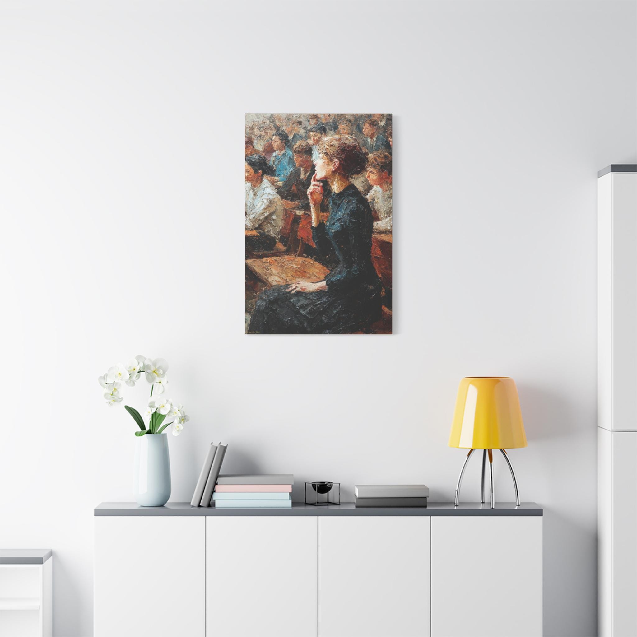 Lecture Light, Elegant Stretched Canvas Artwork - Thoughtful Woman in Class, Art Decor for Home, Office, or Gallery, Gift for Art Lovers.